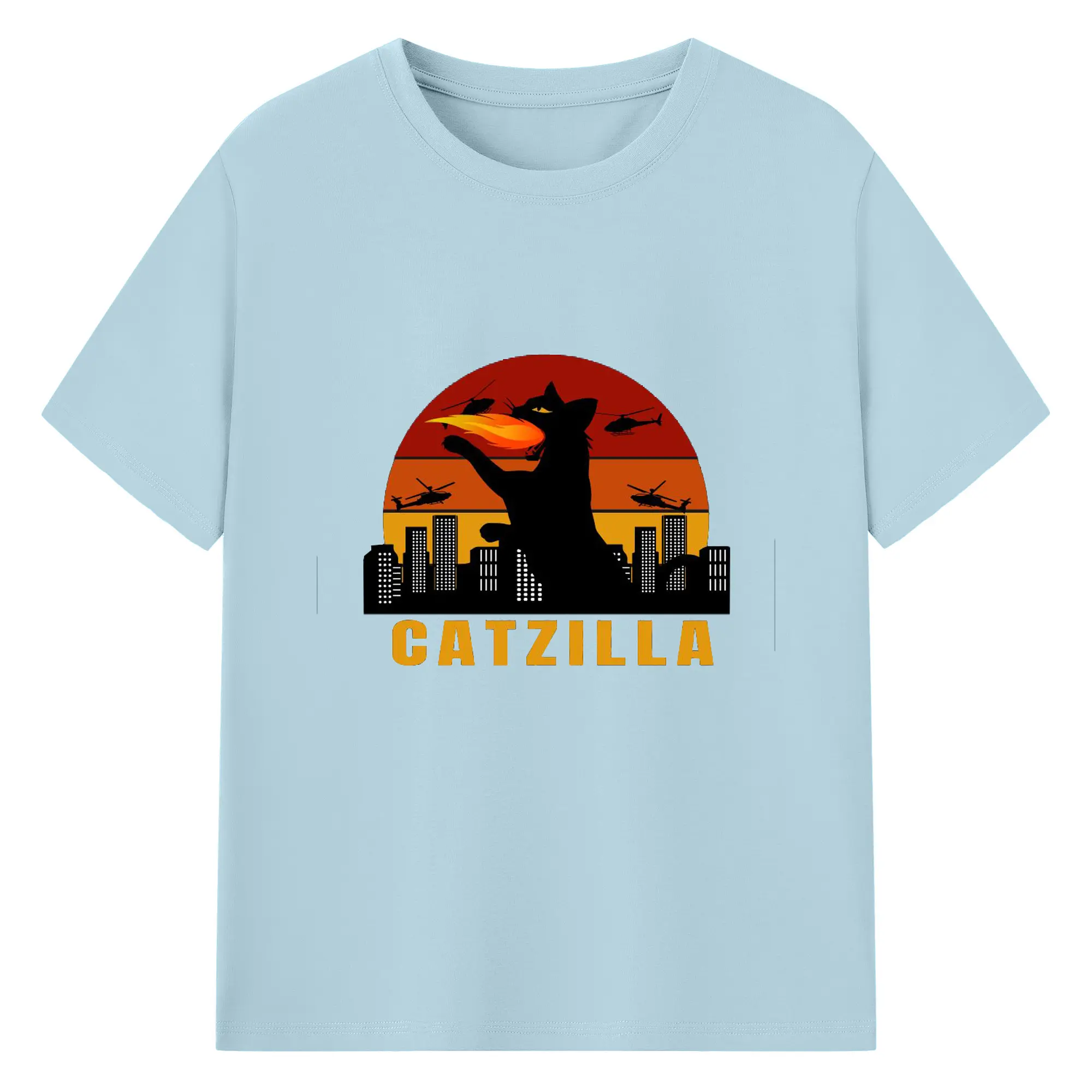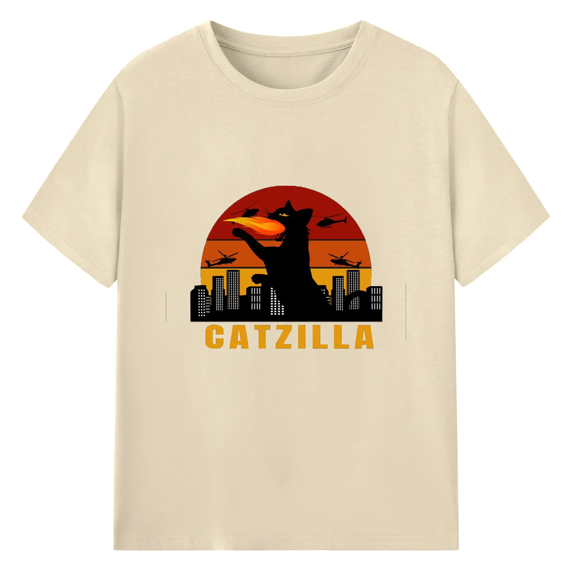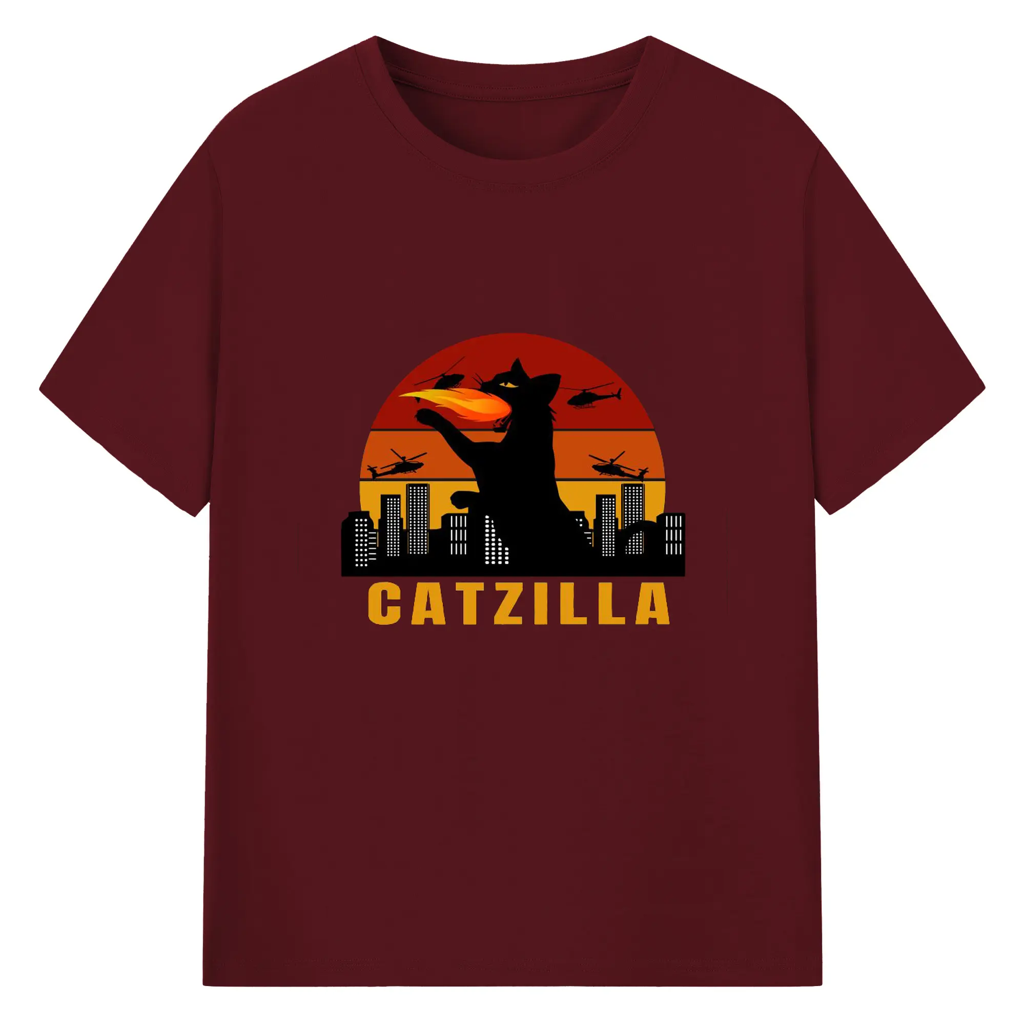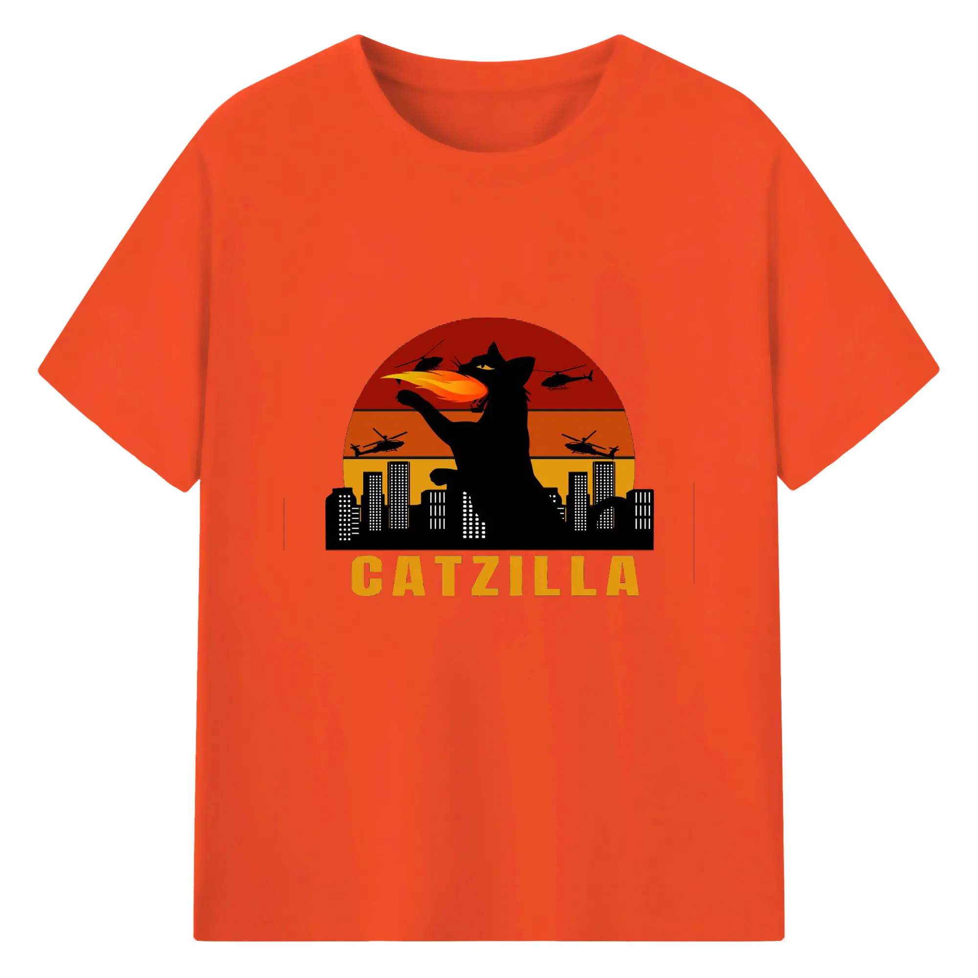 ゴジラ キャットジラ CATZILLA - 綿100% 半袖Tシャツ ・ フロントプリント ・ 快適 通気性 ・ 日常使い 散歩 スポーツ用