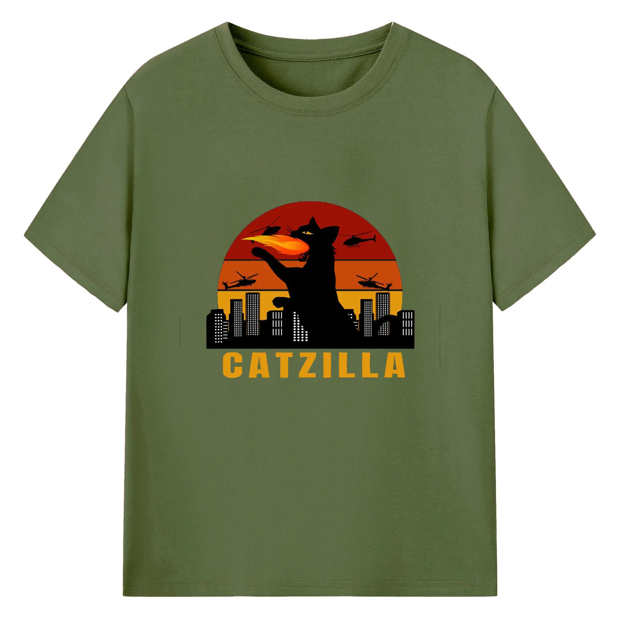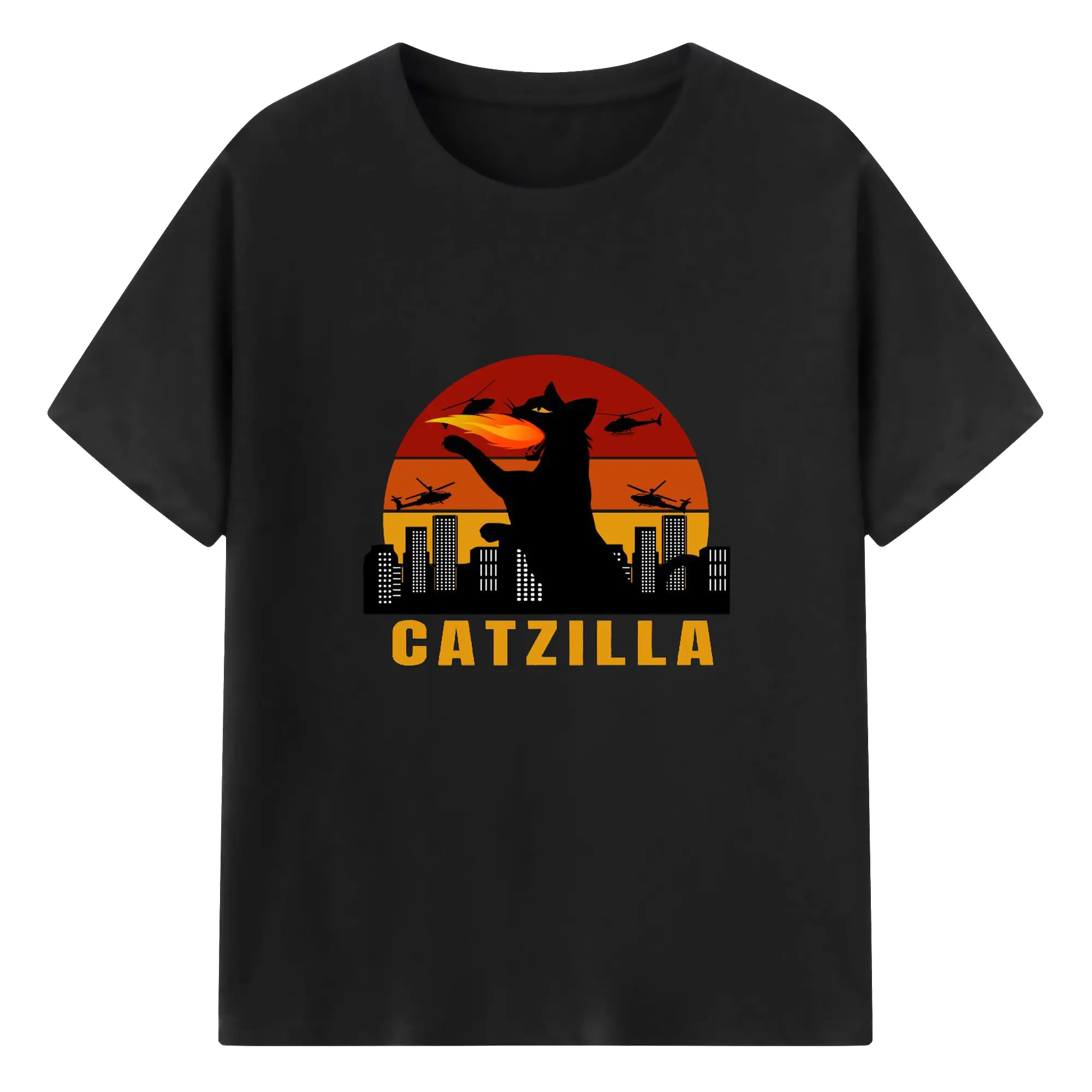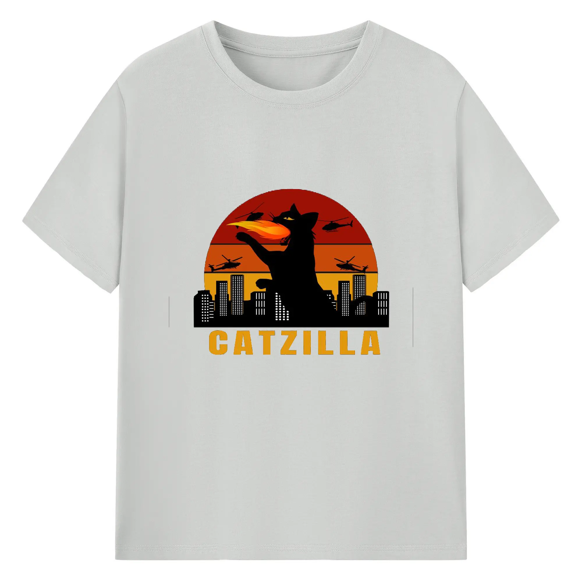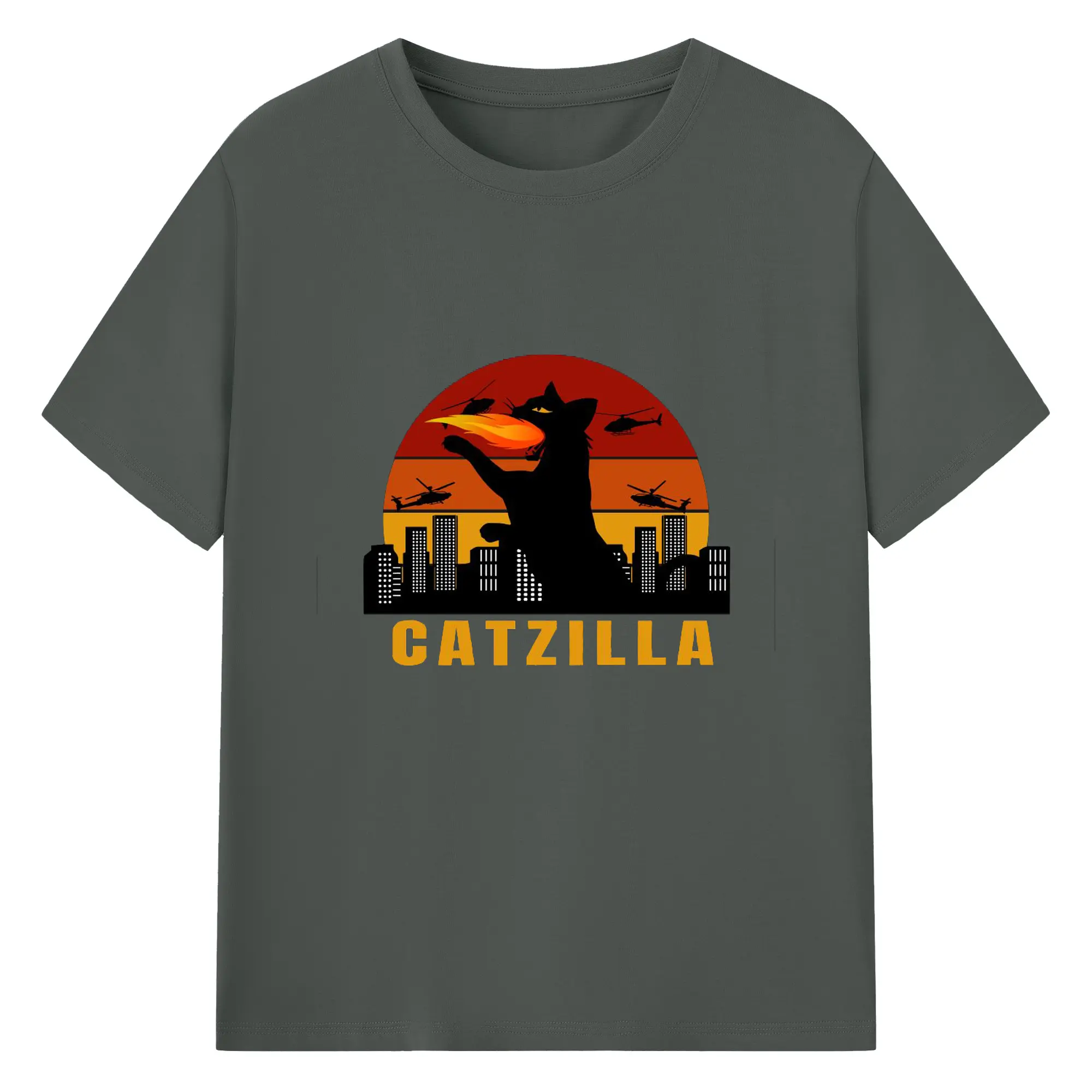 ゴジラ キャットジラ CATZILLA - 綿100% 半袖Tシャツ ・ フロントプリント ・ 快適 通気性 ・ 日常使い 散歩 スポーツ用