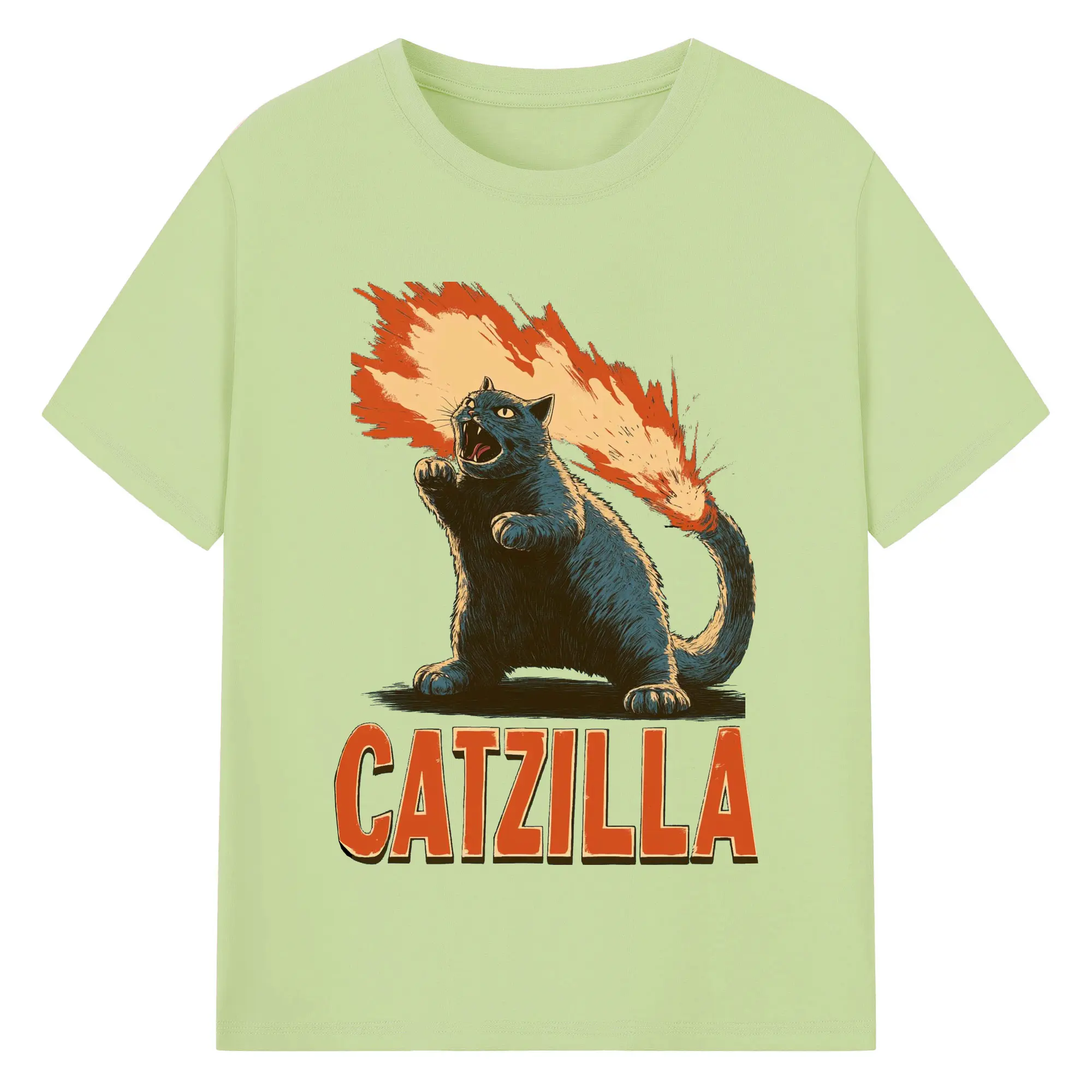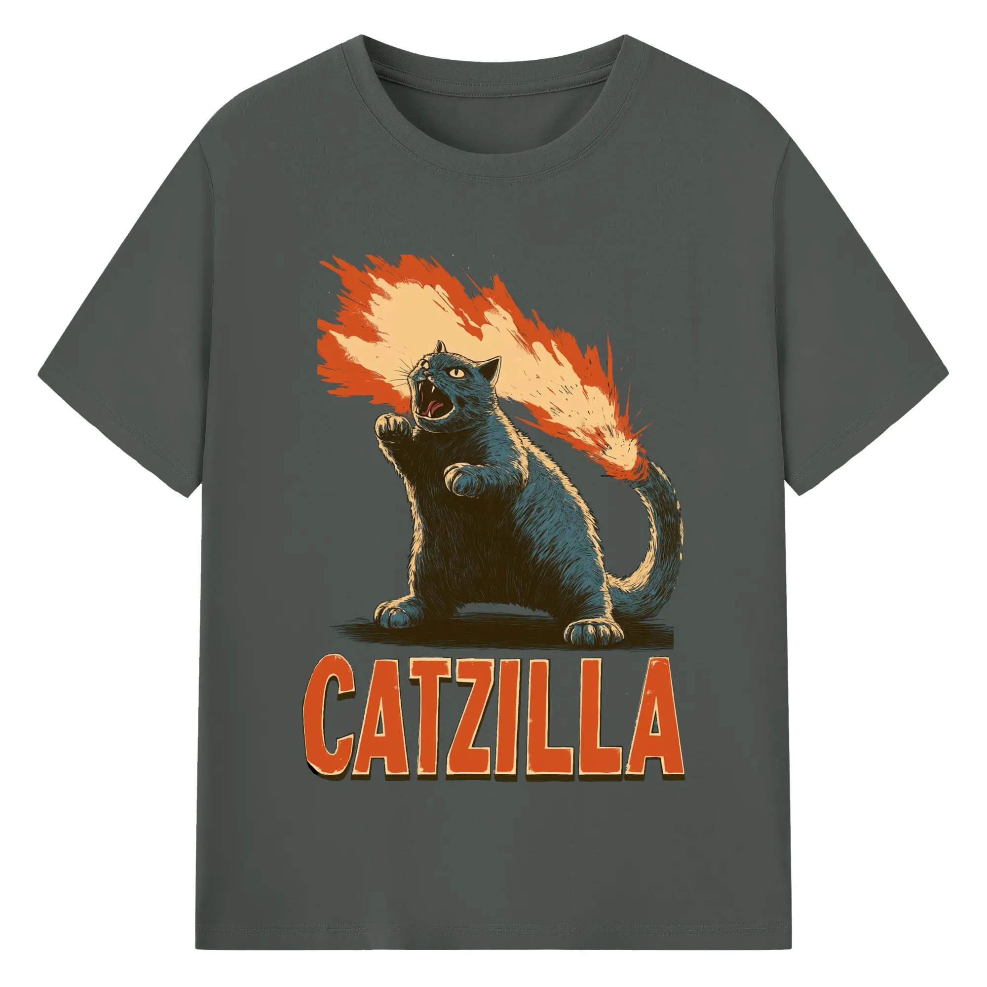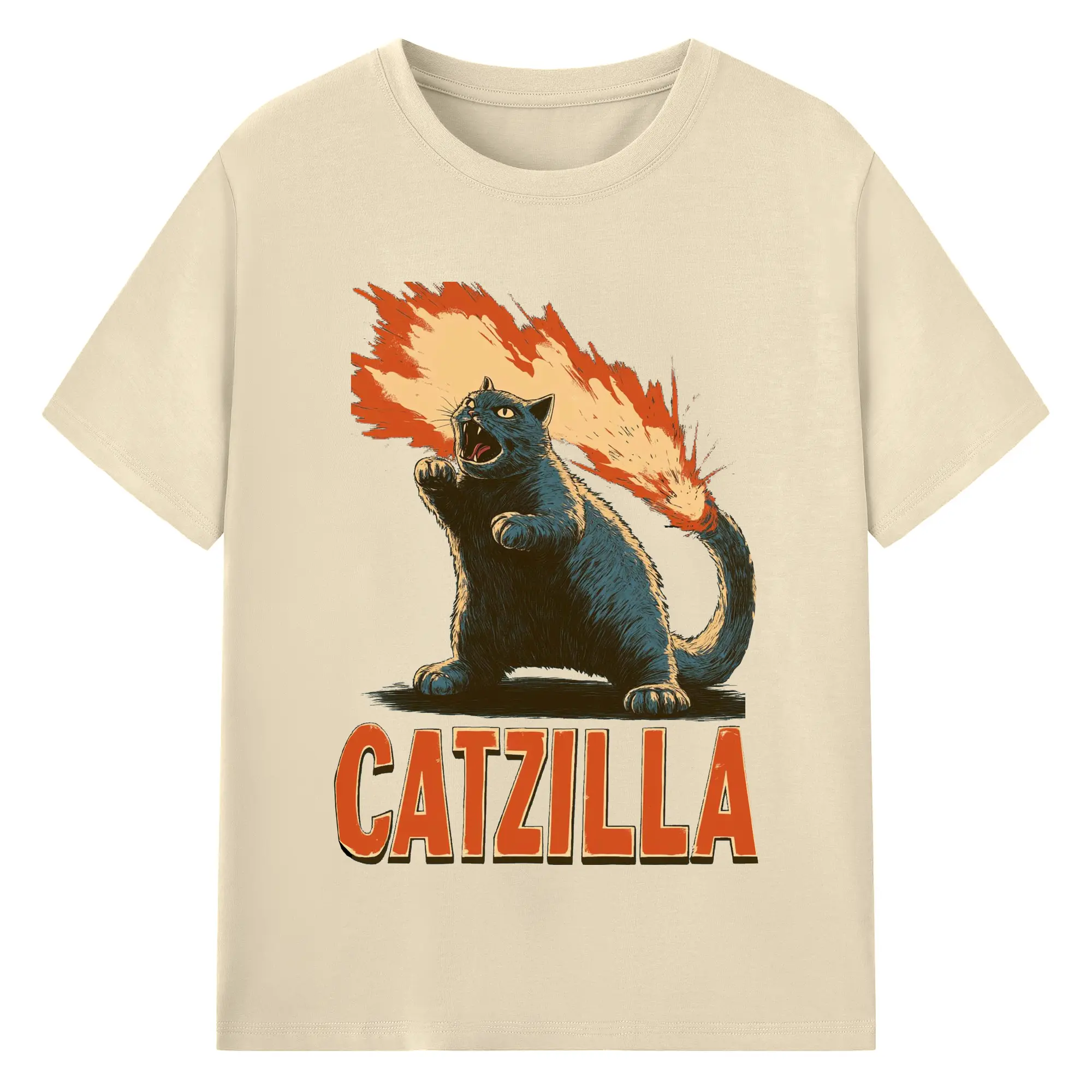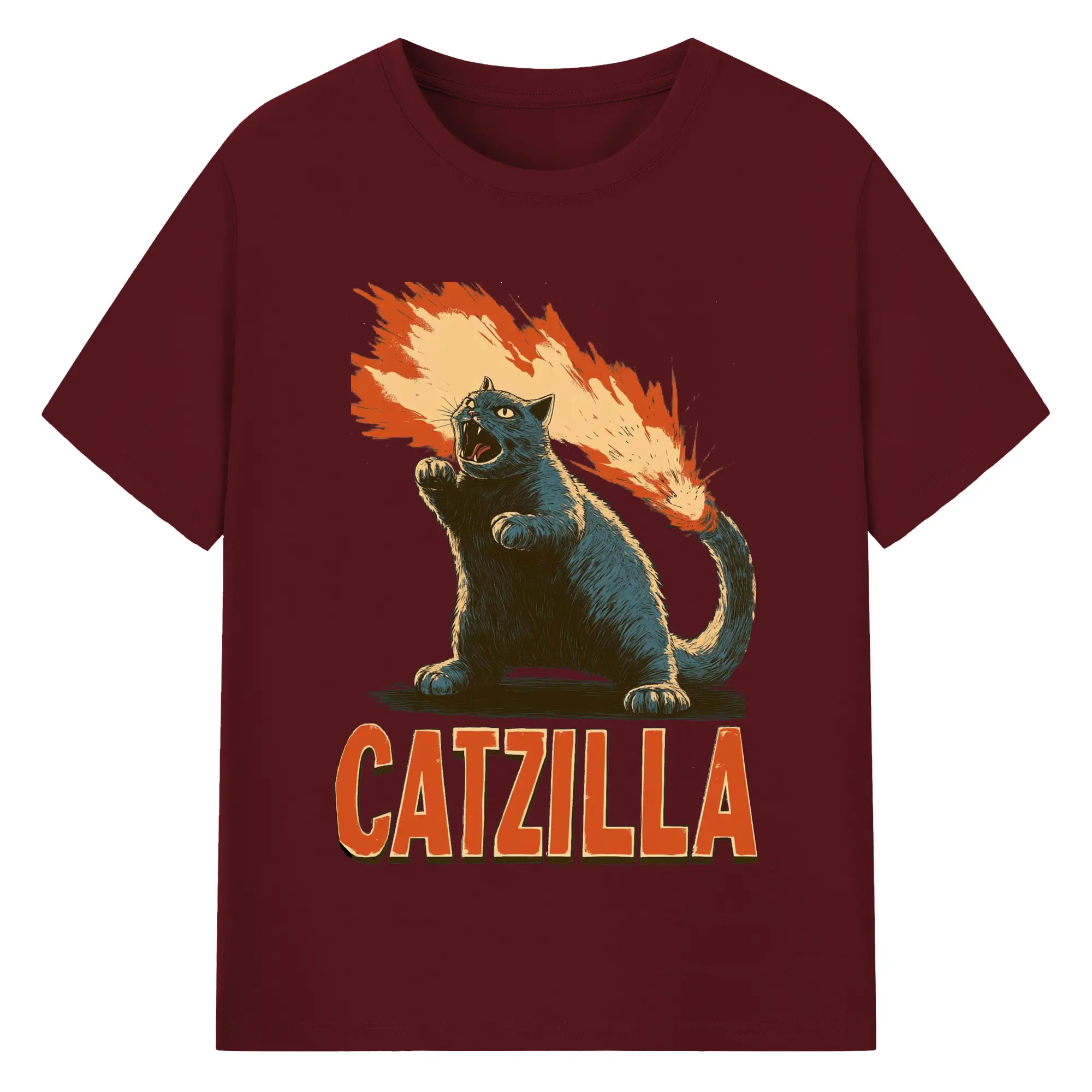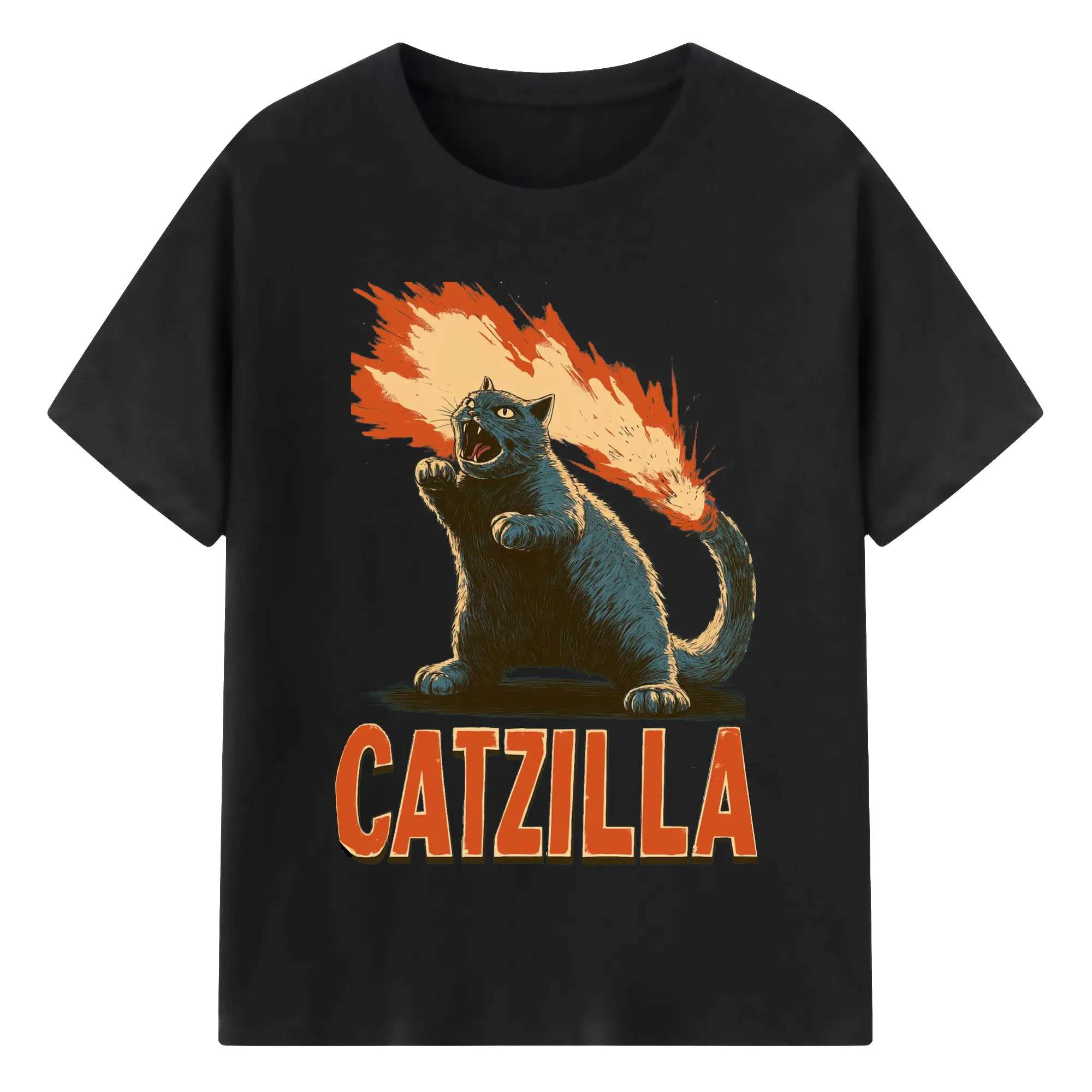 ゴジラ キャットジラ CATZILLA - 綿100% 半袖Tシャツ ・ フロントプリント ・ 快適 通気性 ・ 日常使い 散歩 スポーツ用