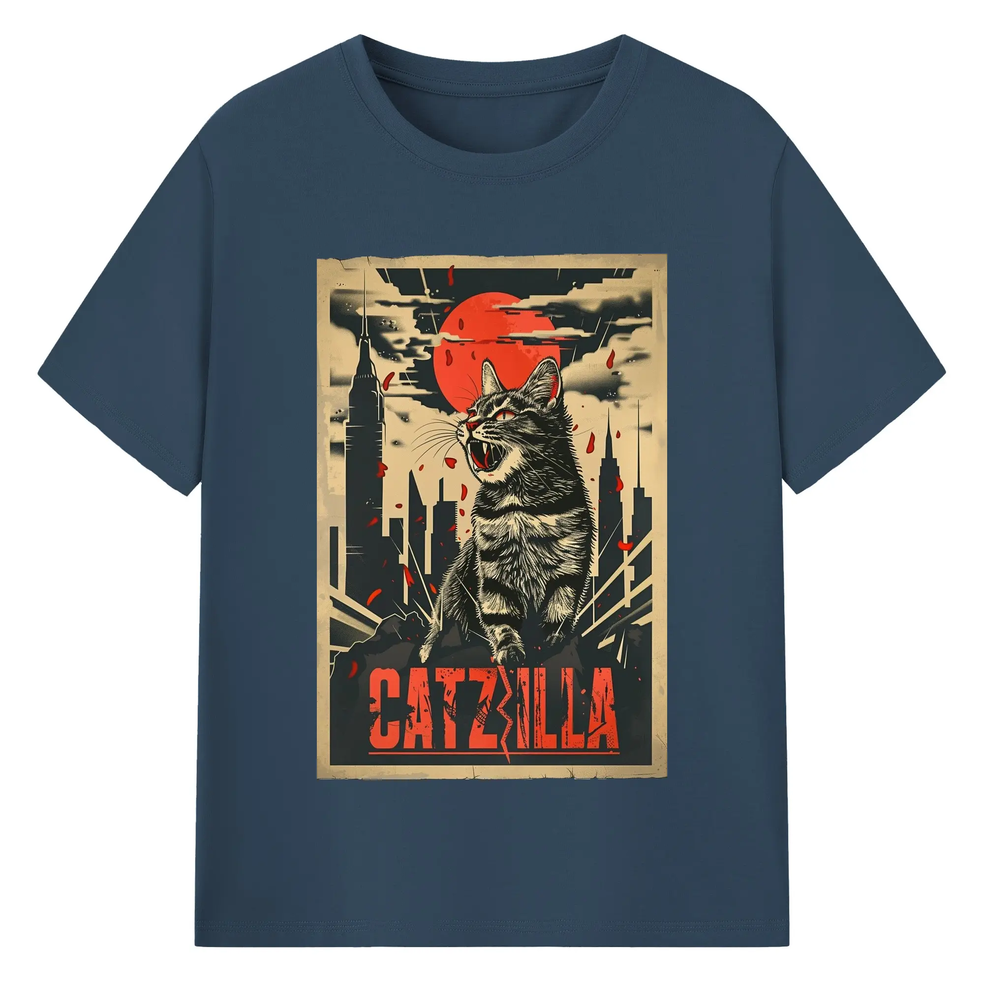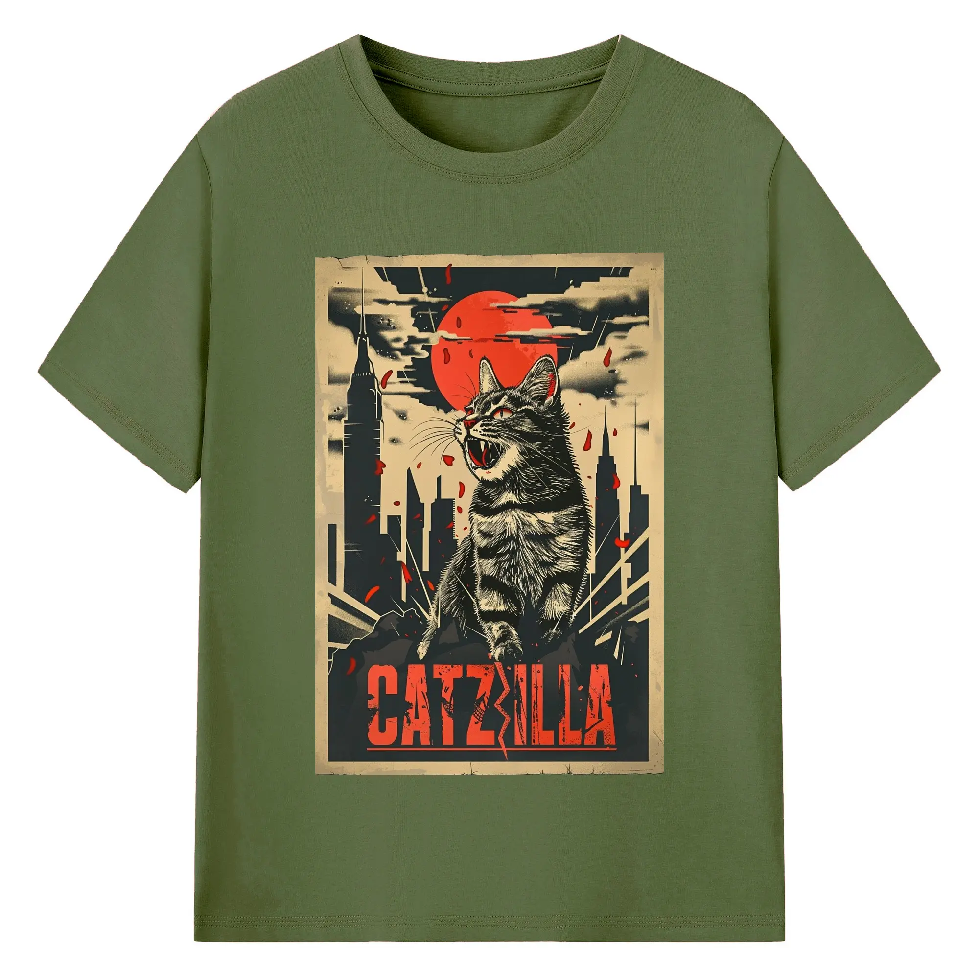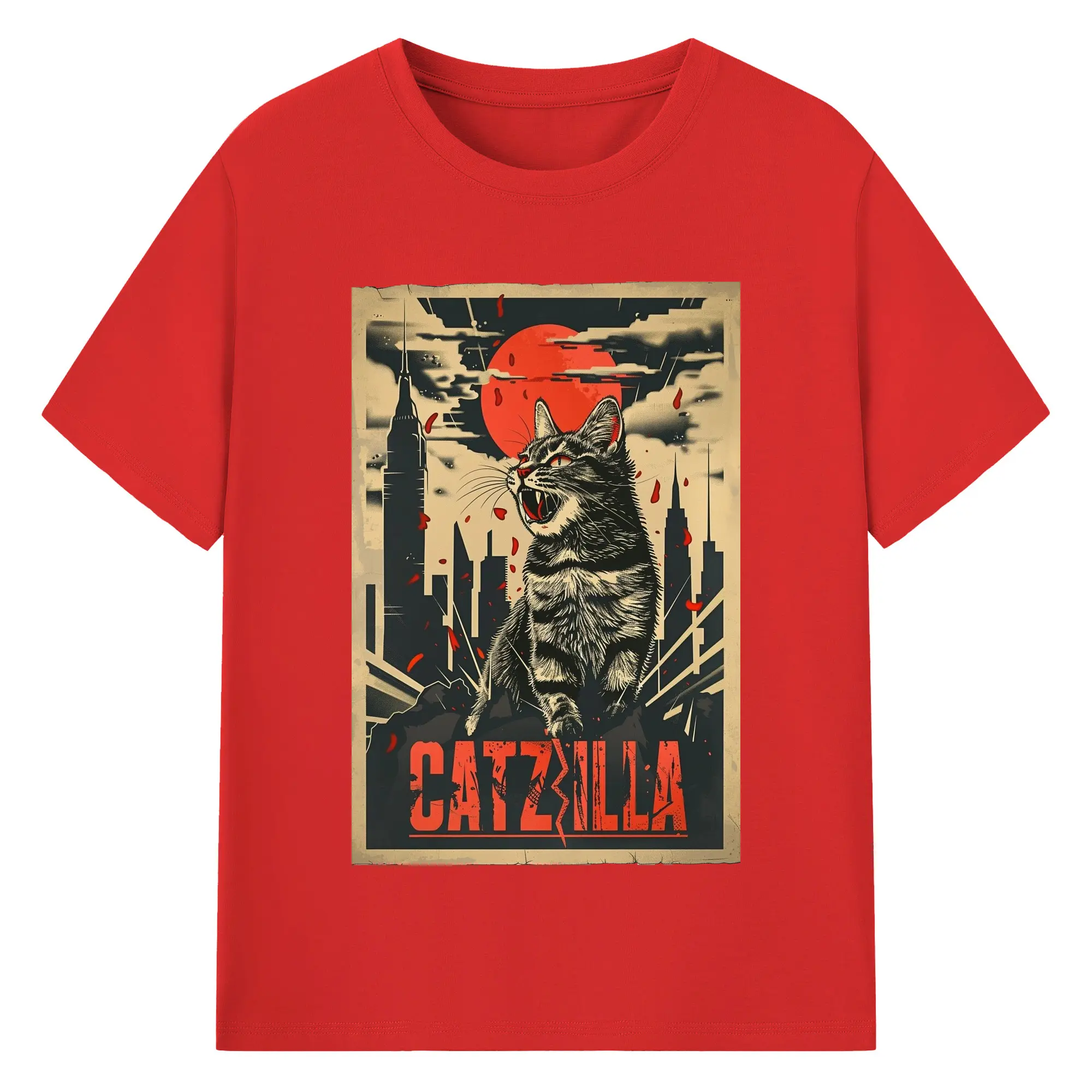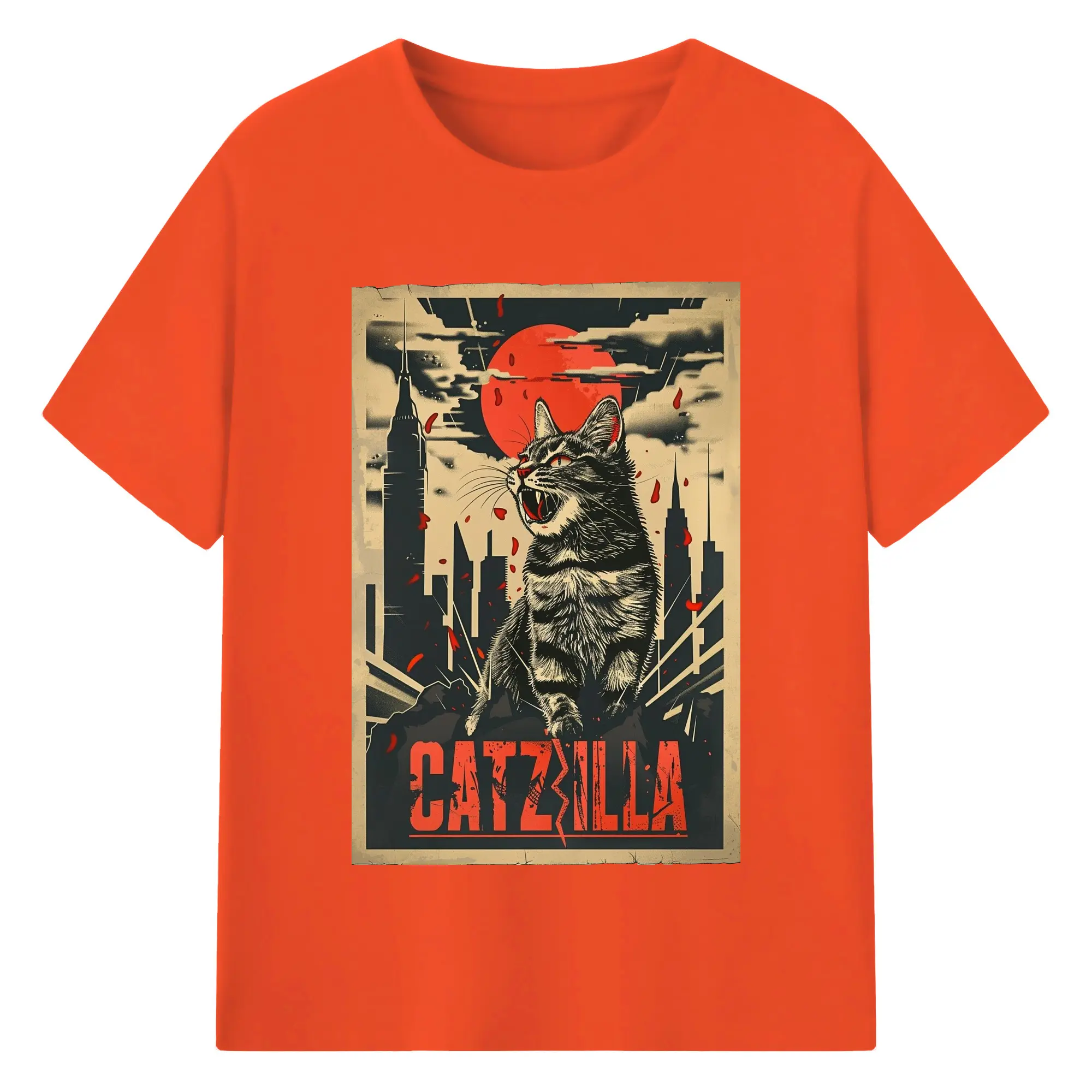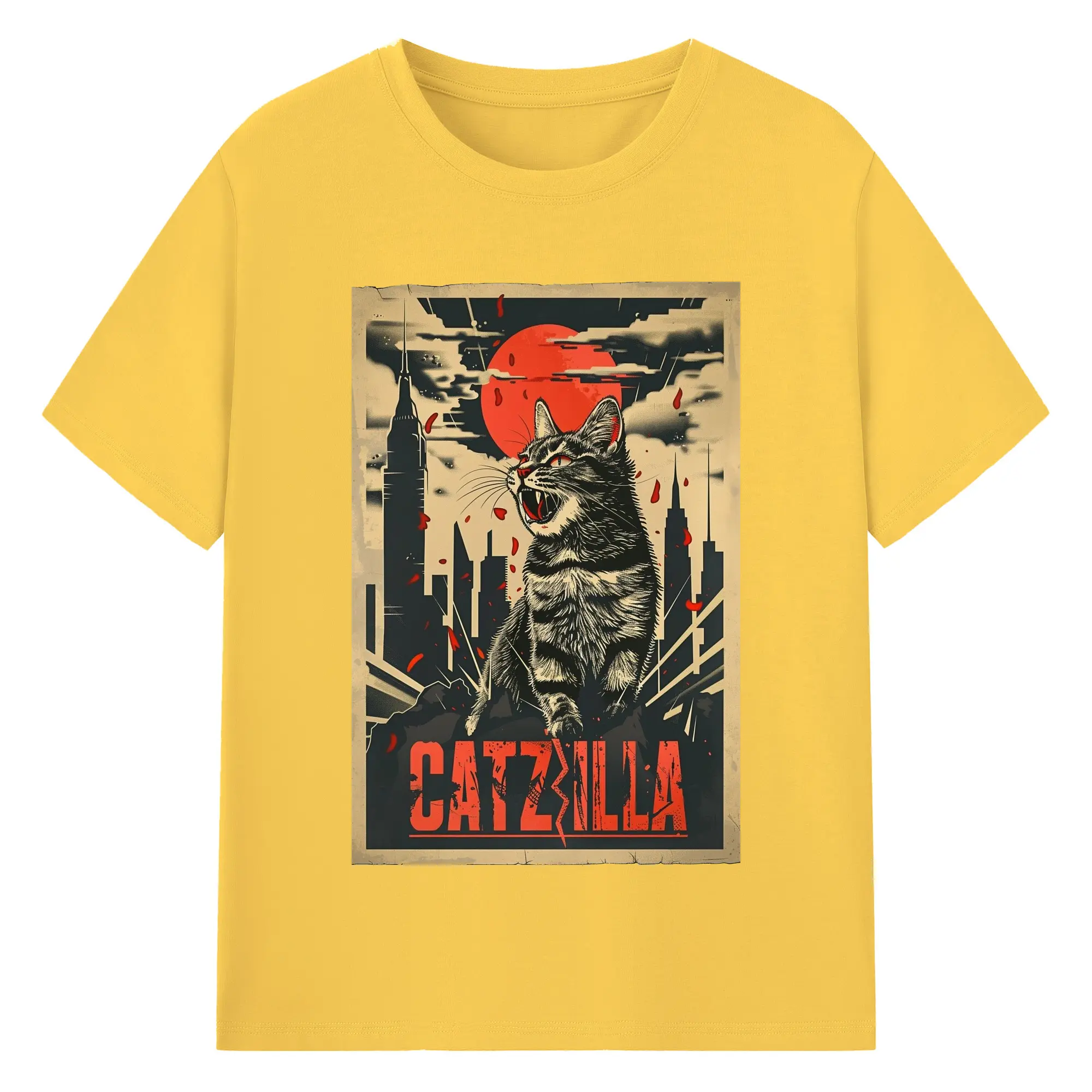 ゴジラ キャットジラ CATZILLA - 綿100% 半袖Tシャツ ・ フロントプリント ・ 快適 通気性 ・ 日常使い 散歩 スポーツ用
