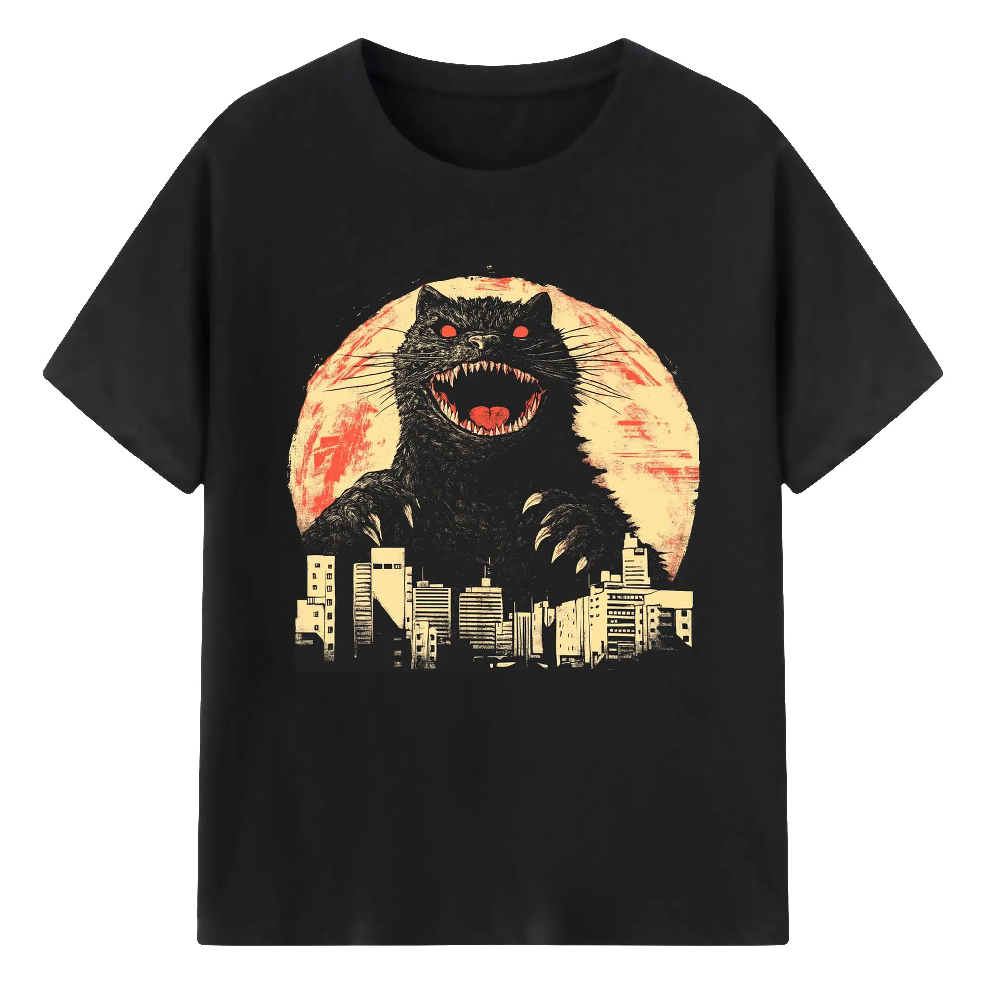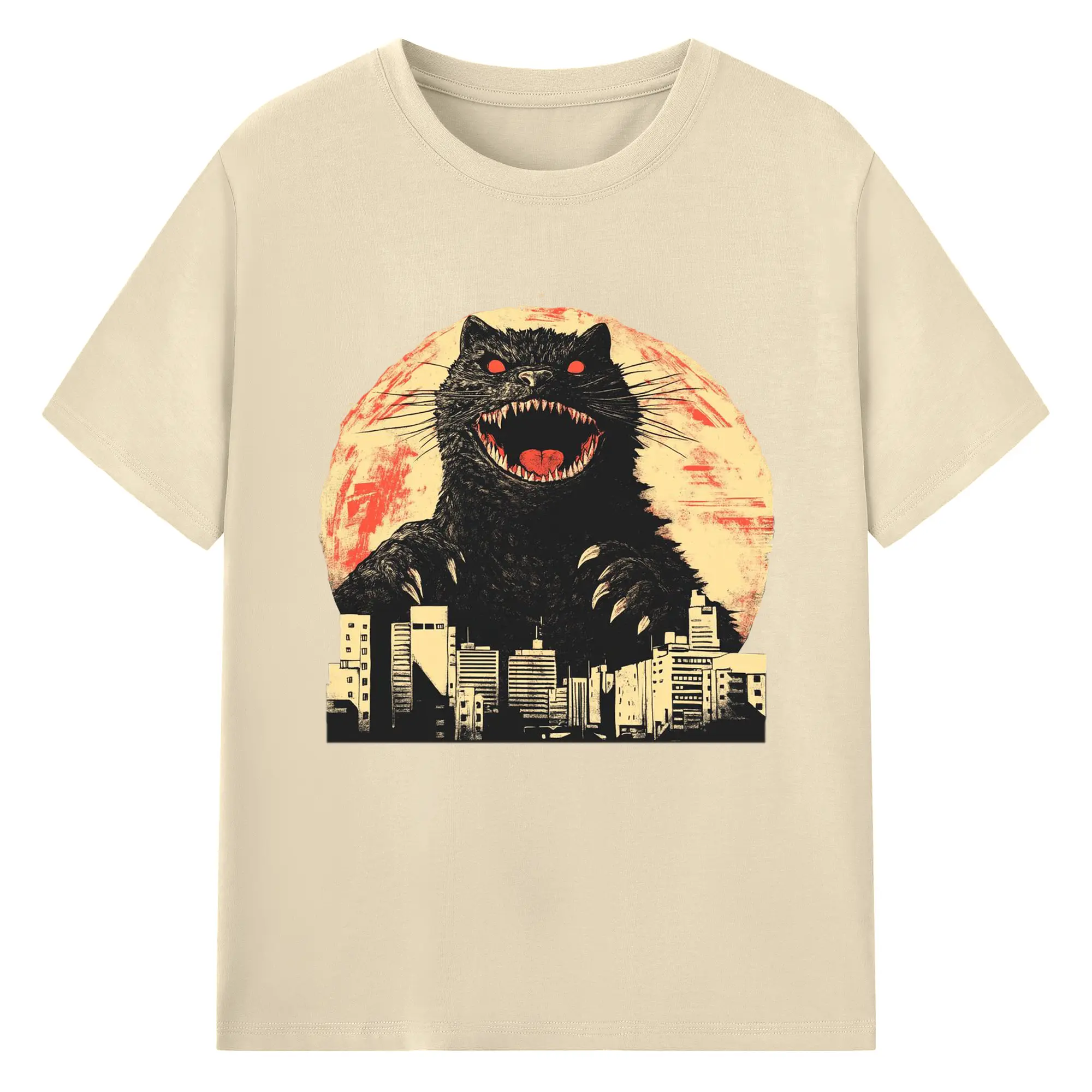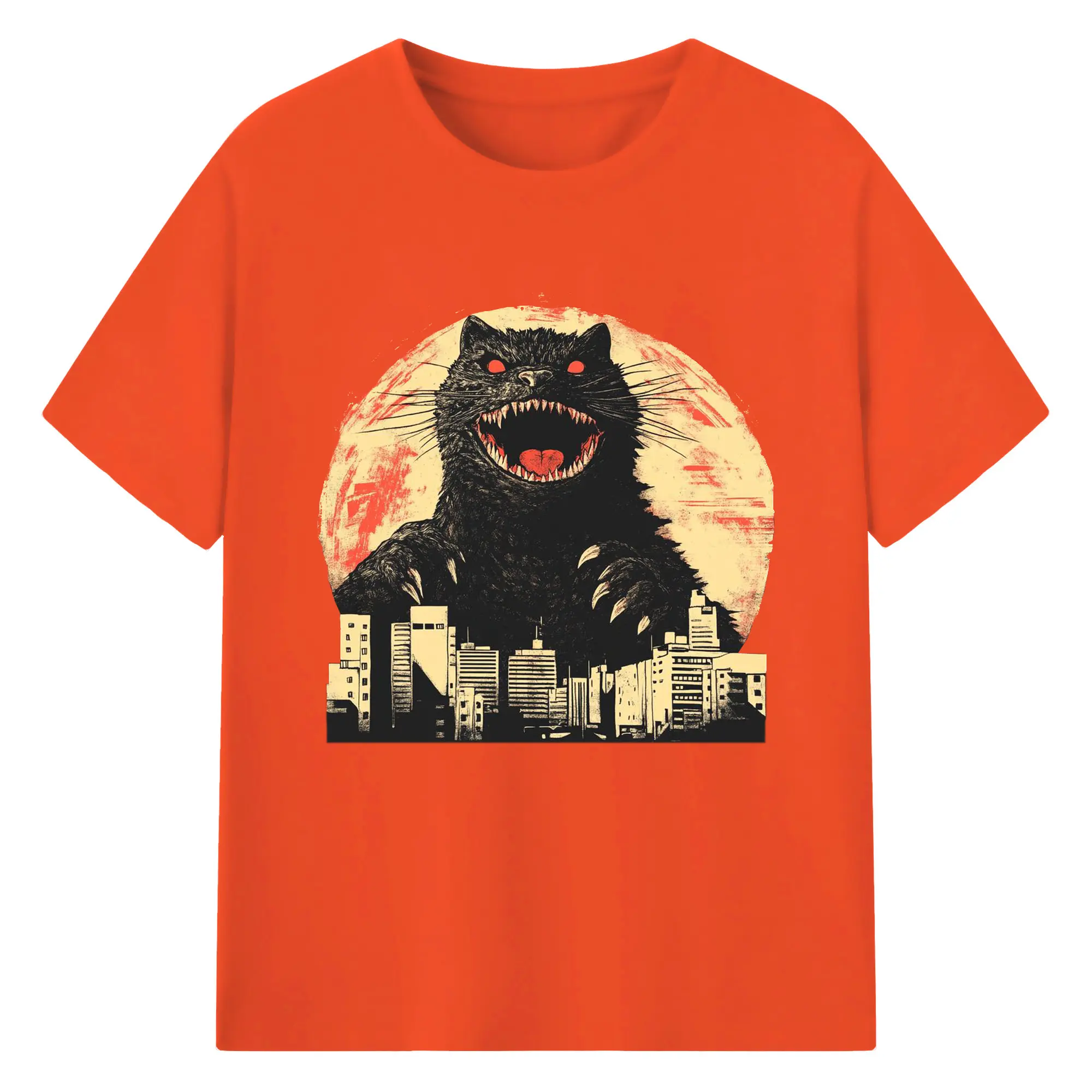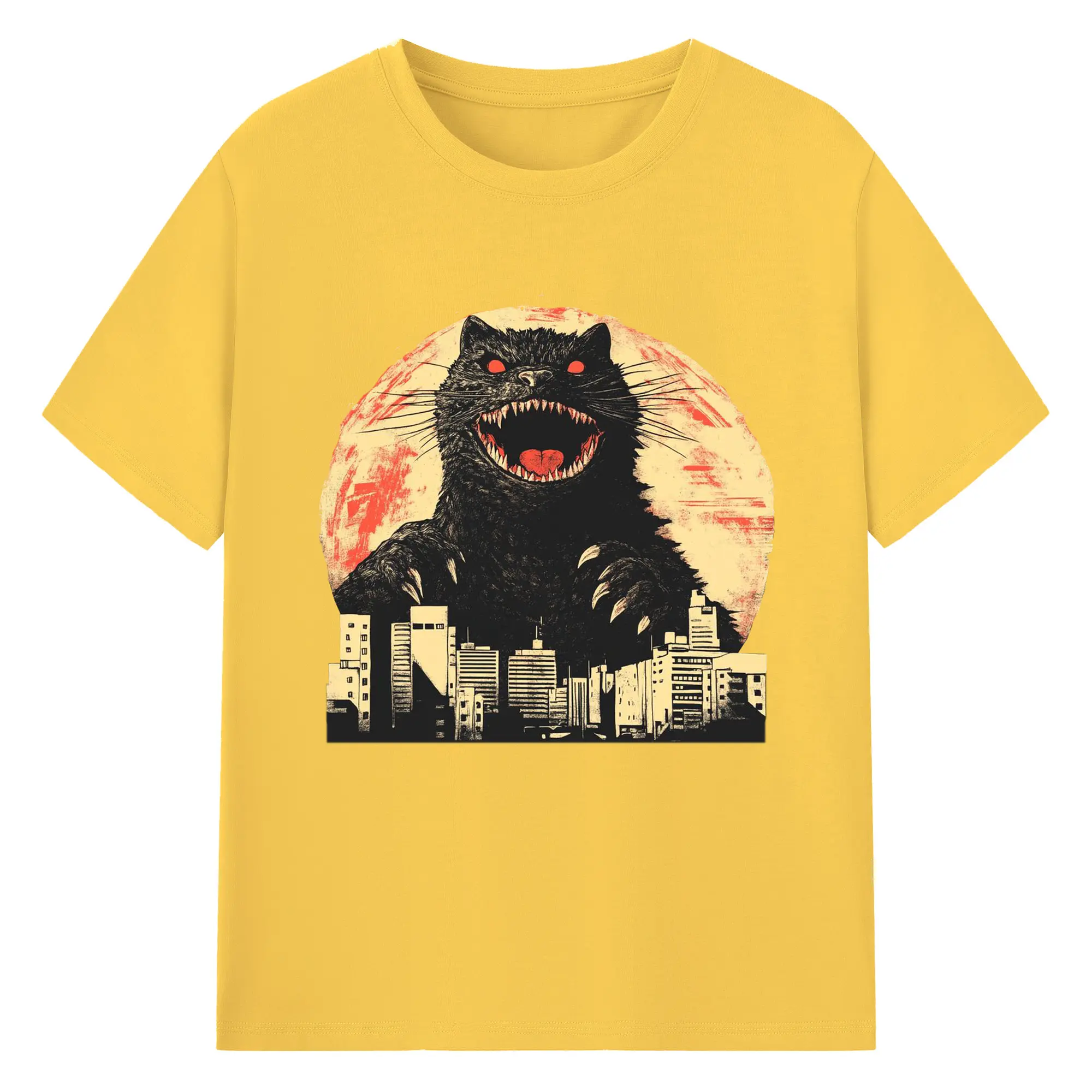 ゴジラ キャットジラ CATZILLA - 綿100% 半袖Tシャツ ・ フロントプリント ・ 快適 通気性 ・ 日常使い 散歩 スポーツ用
