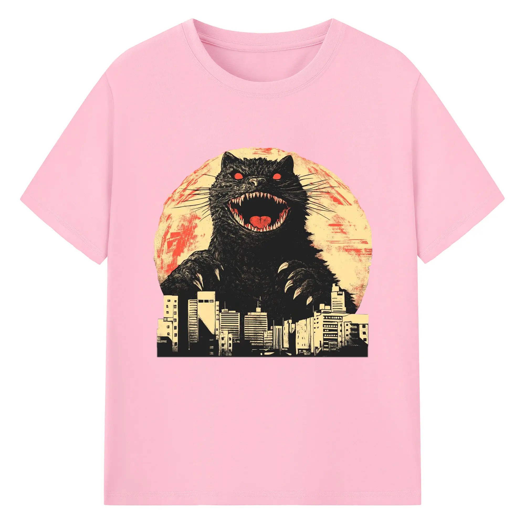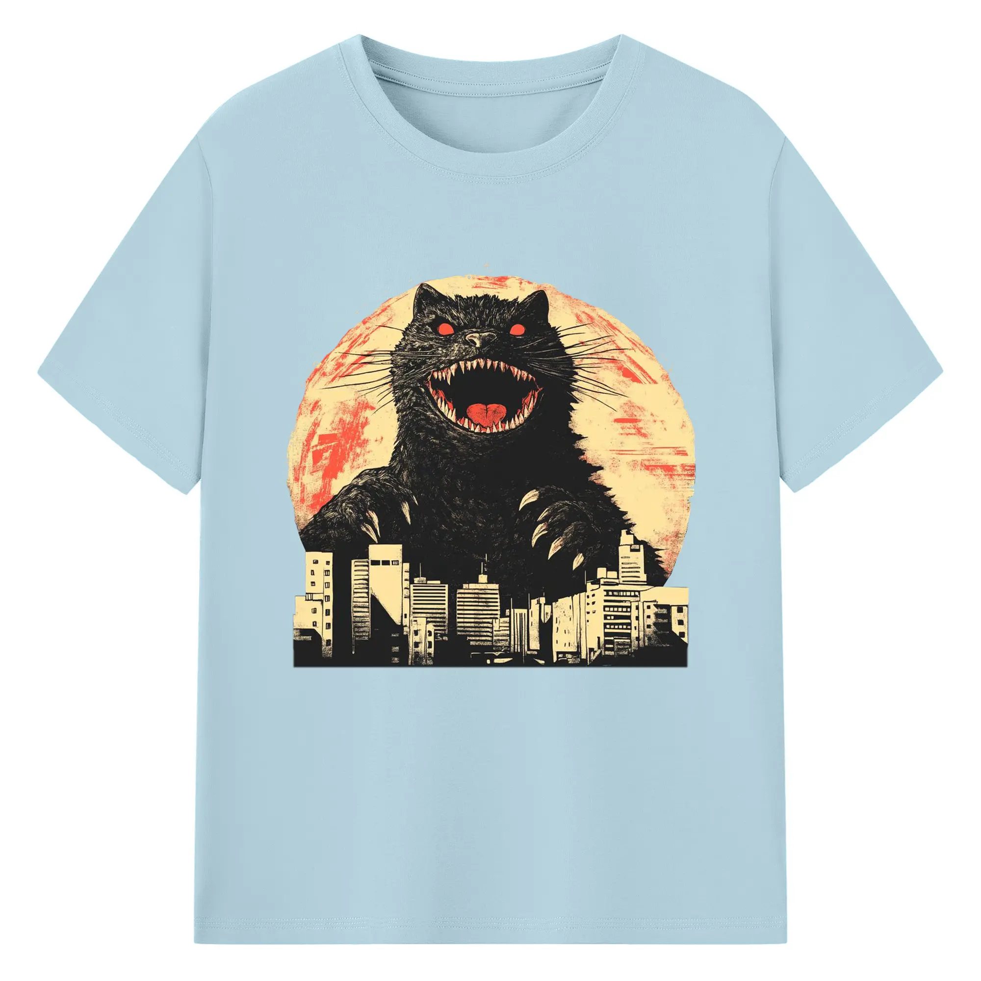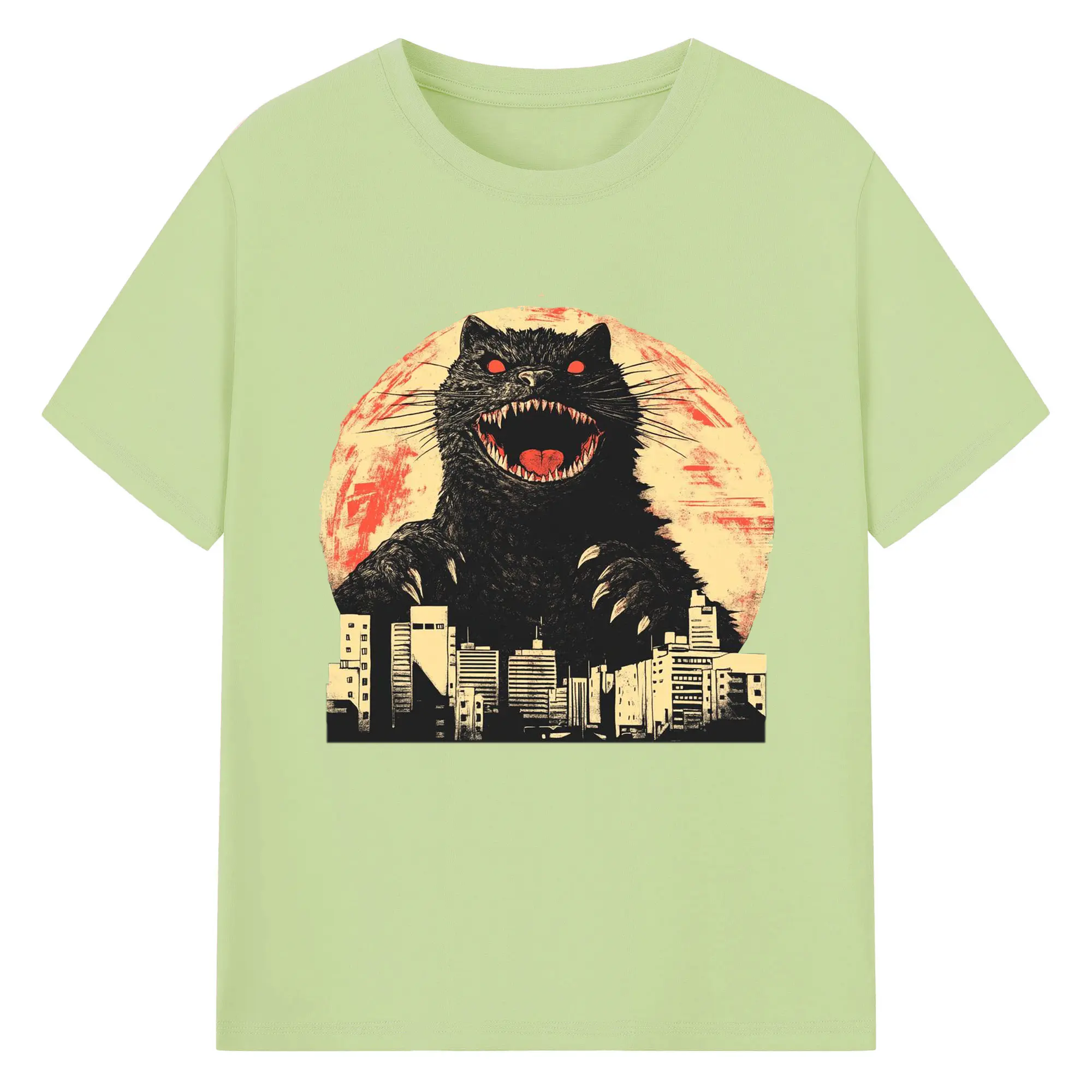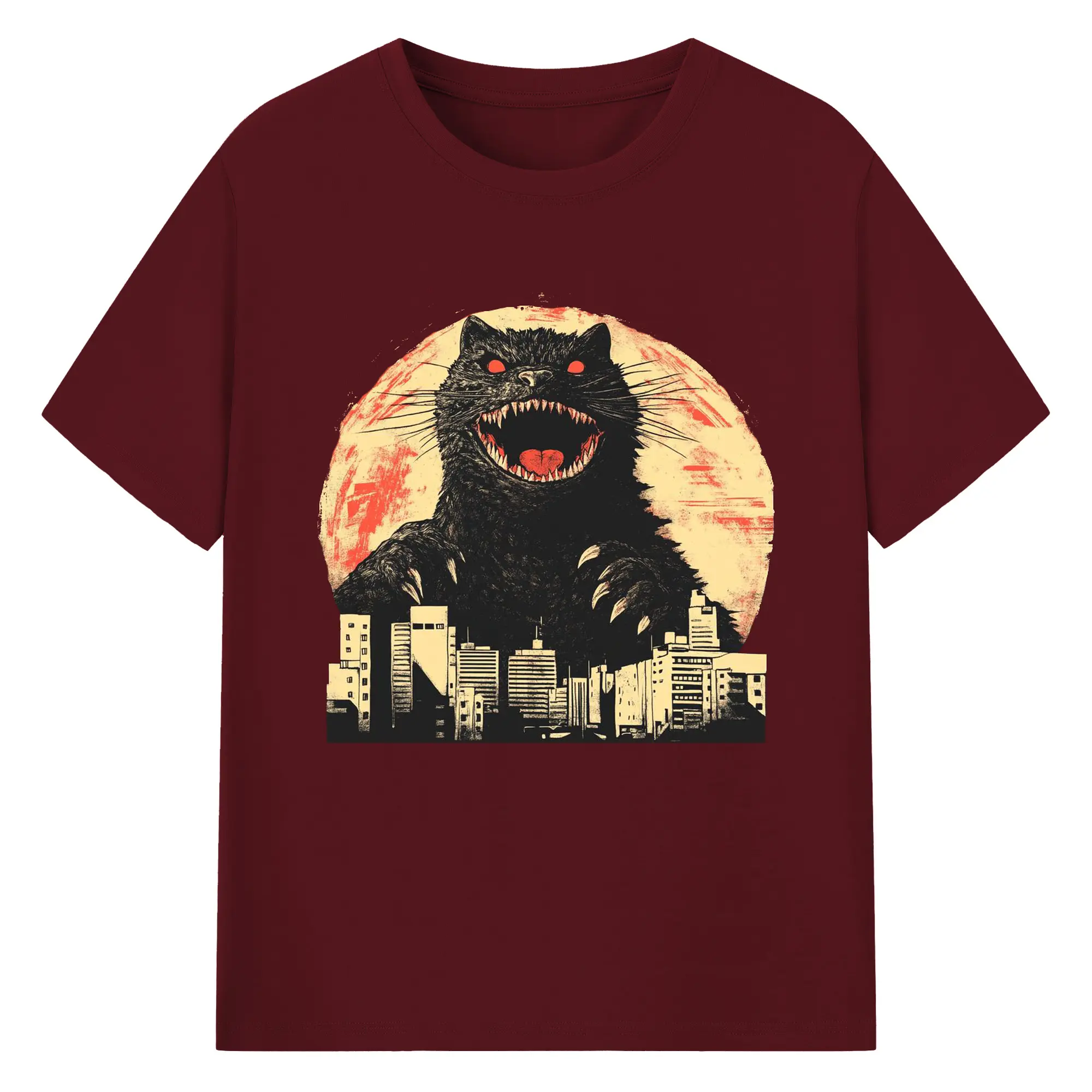ゴジラ キャットジラ CATZILLA - 綿100% 半袖Tシャツ ・ フロントプリント ・ 快適 通気性 ・ 日常使い 散歩 スポーツ用