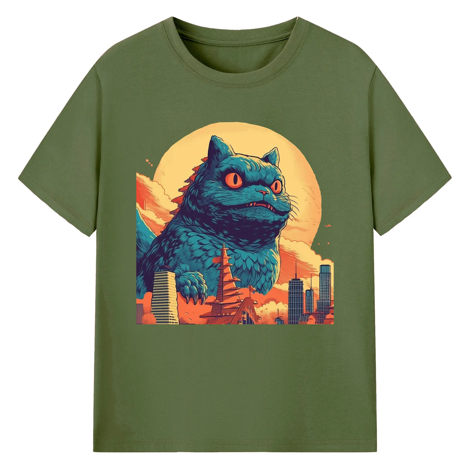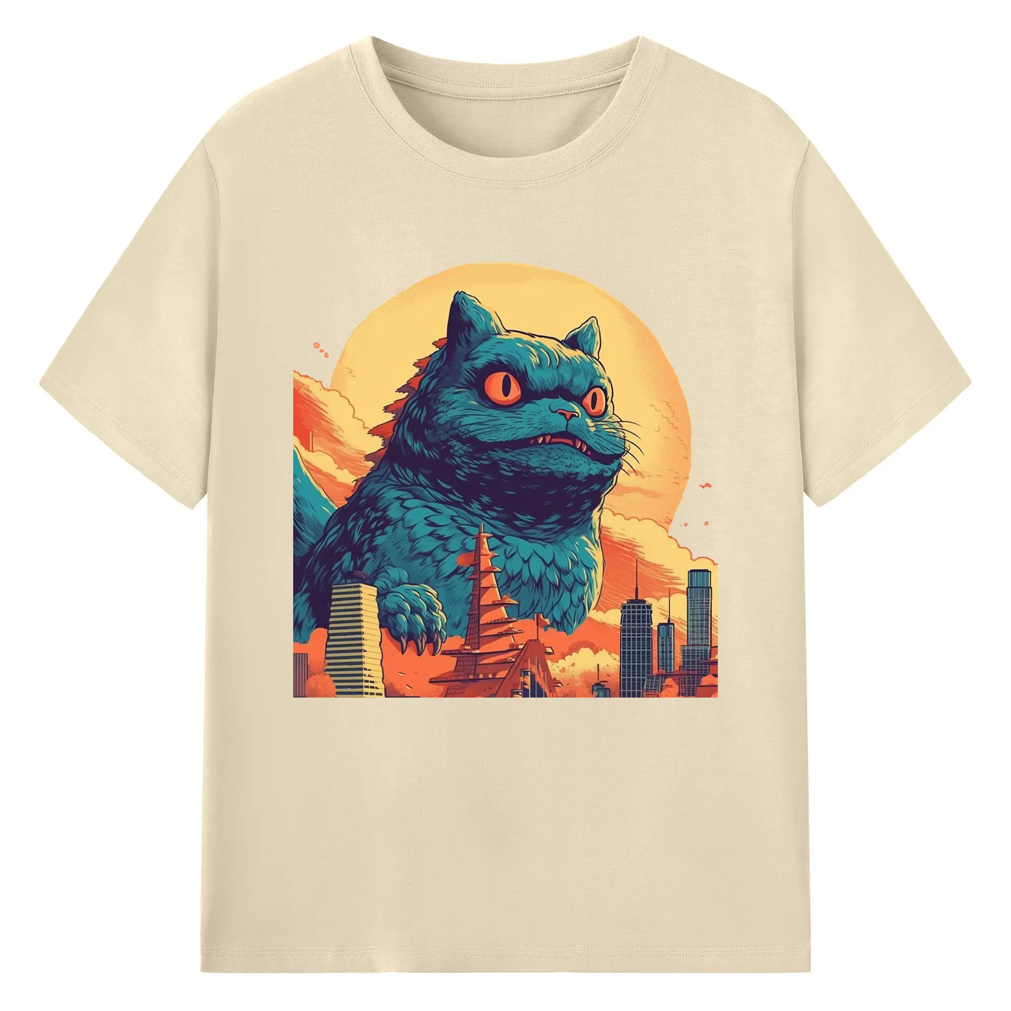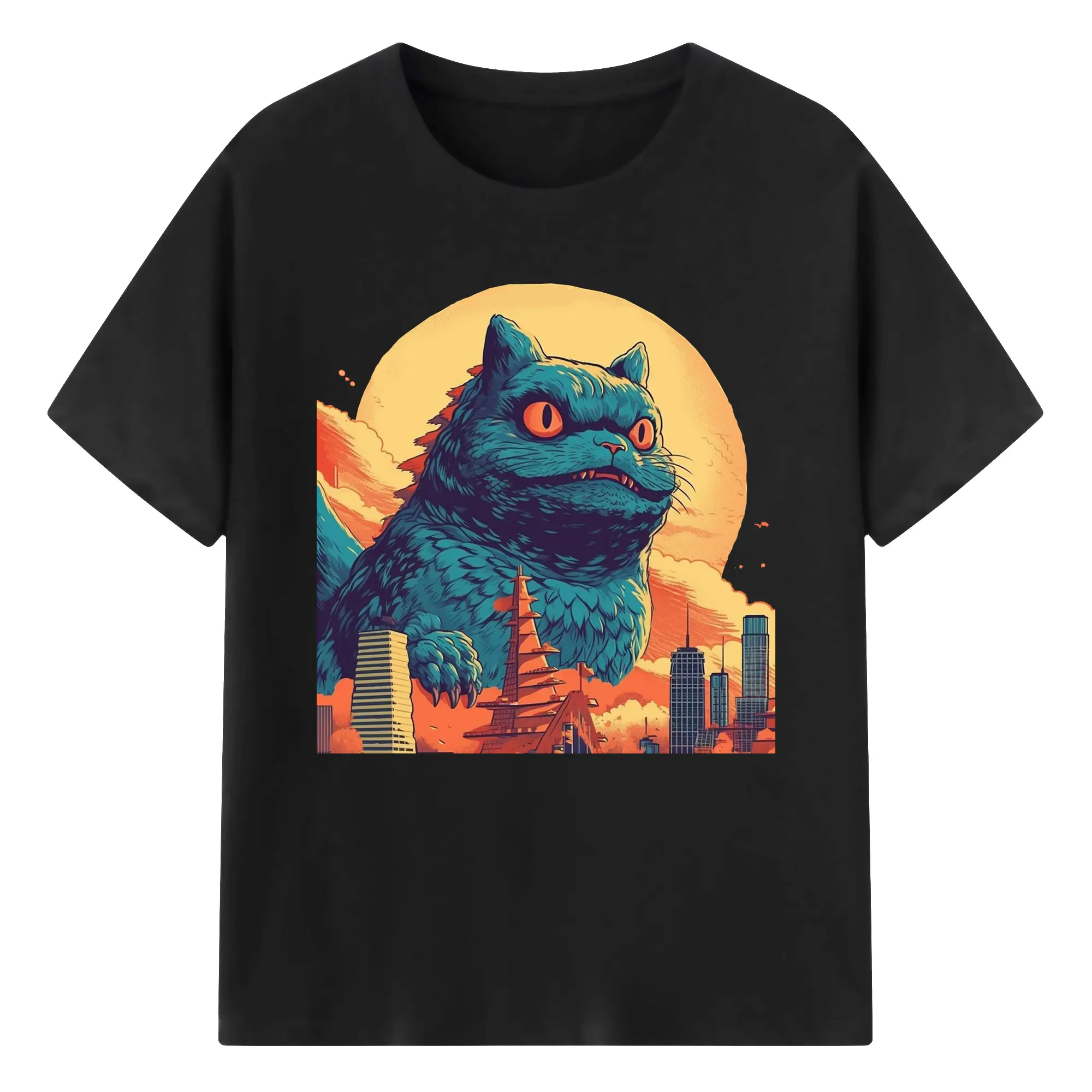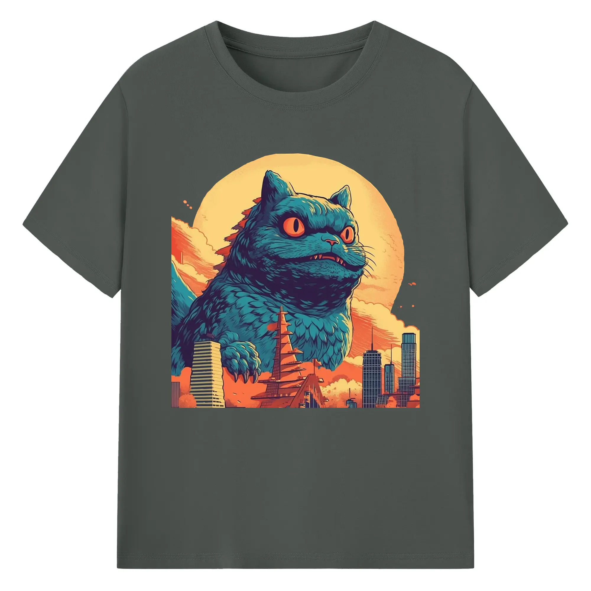 ゴジラ キャットジラ CATZILLA - 綿100% 半袖Tシャツ ・ フロントプリント ・ 快適 通気性 ・ 日常使い 散歩 スポーツ用