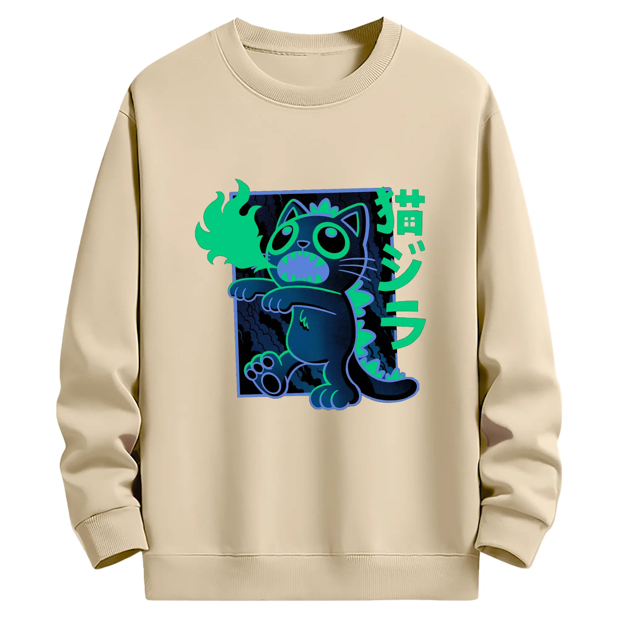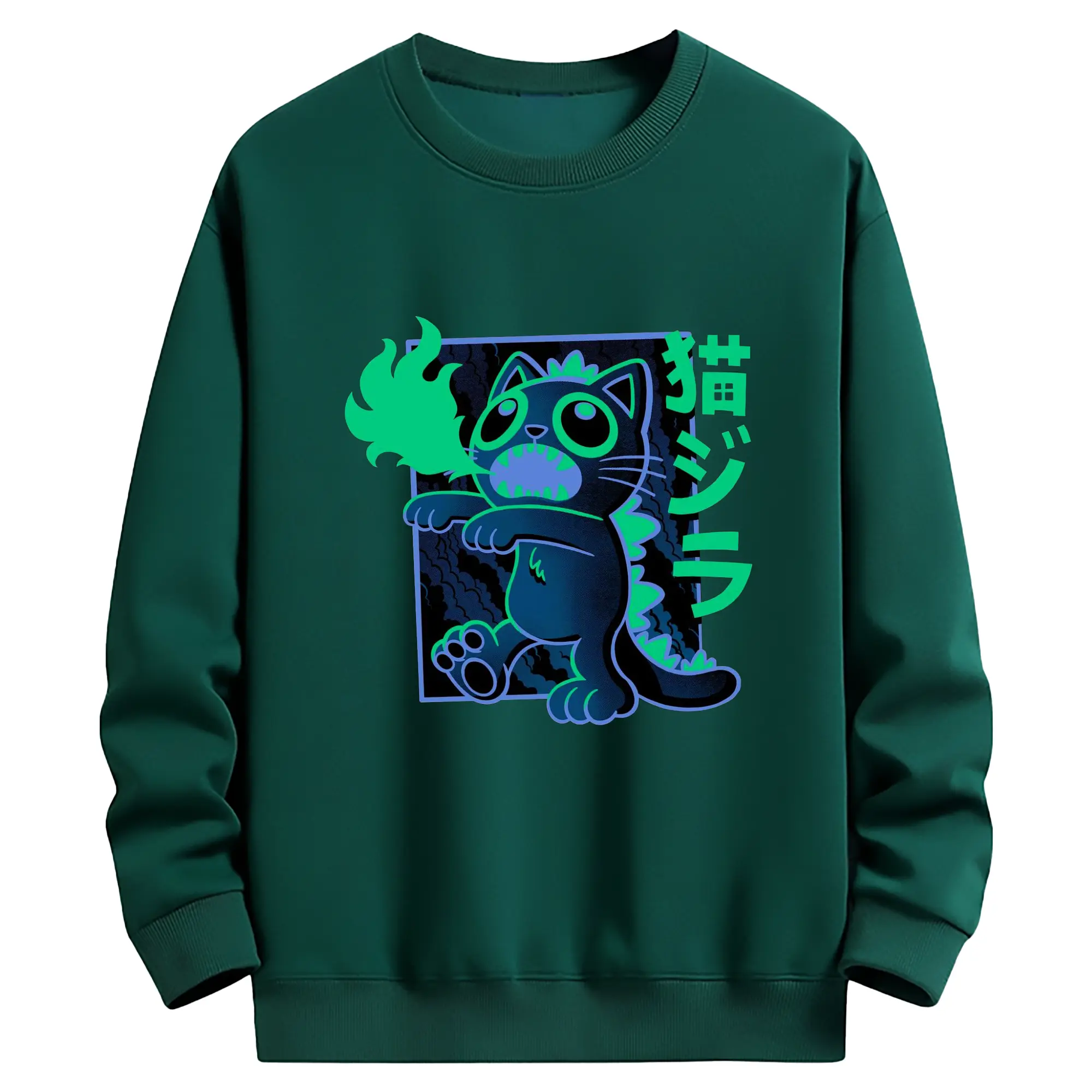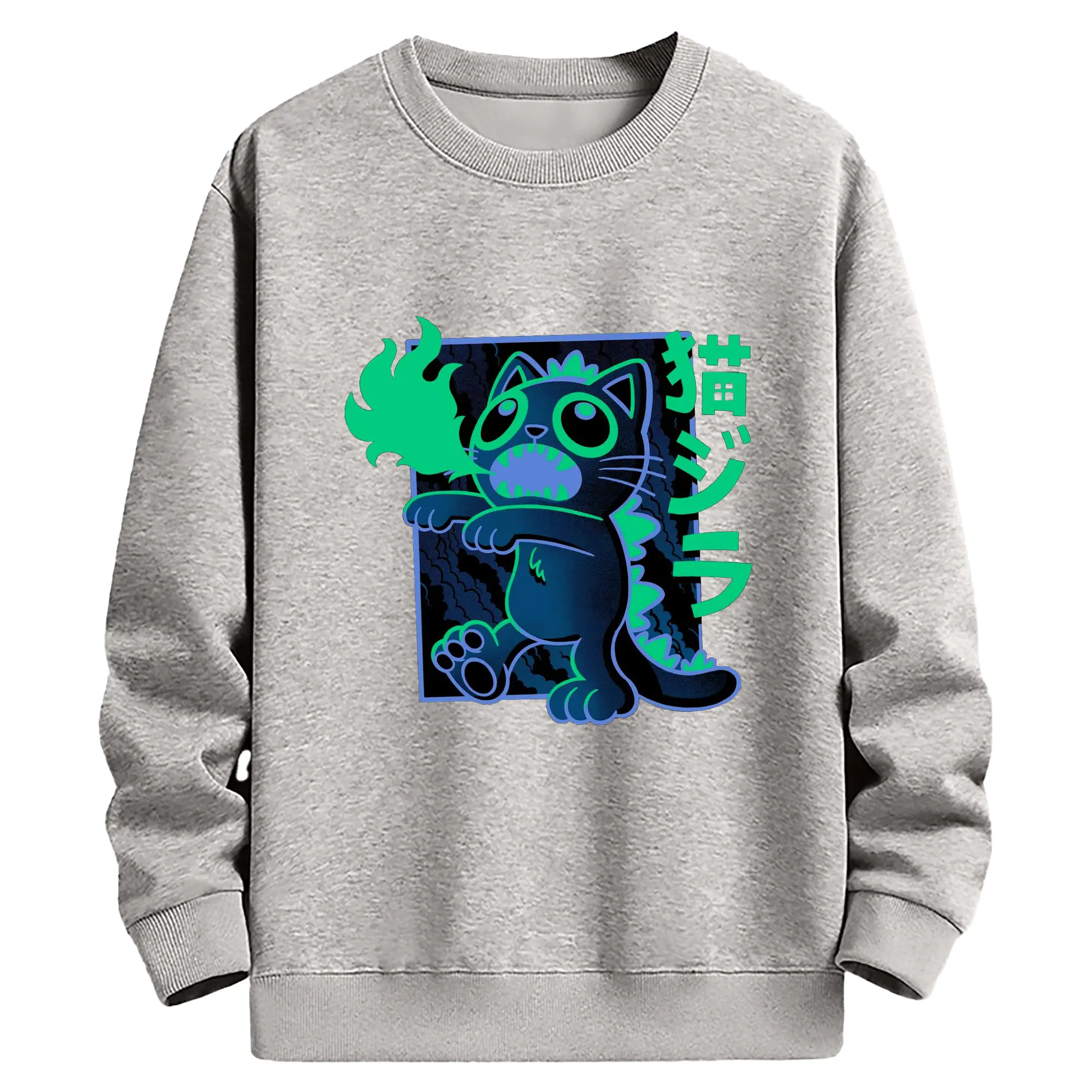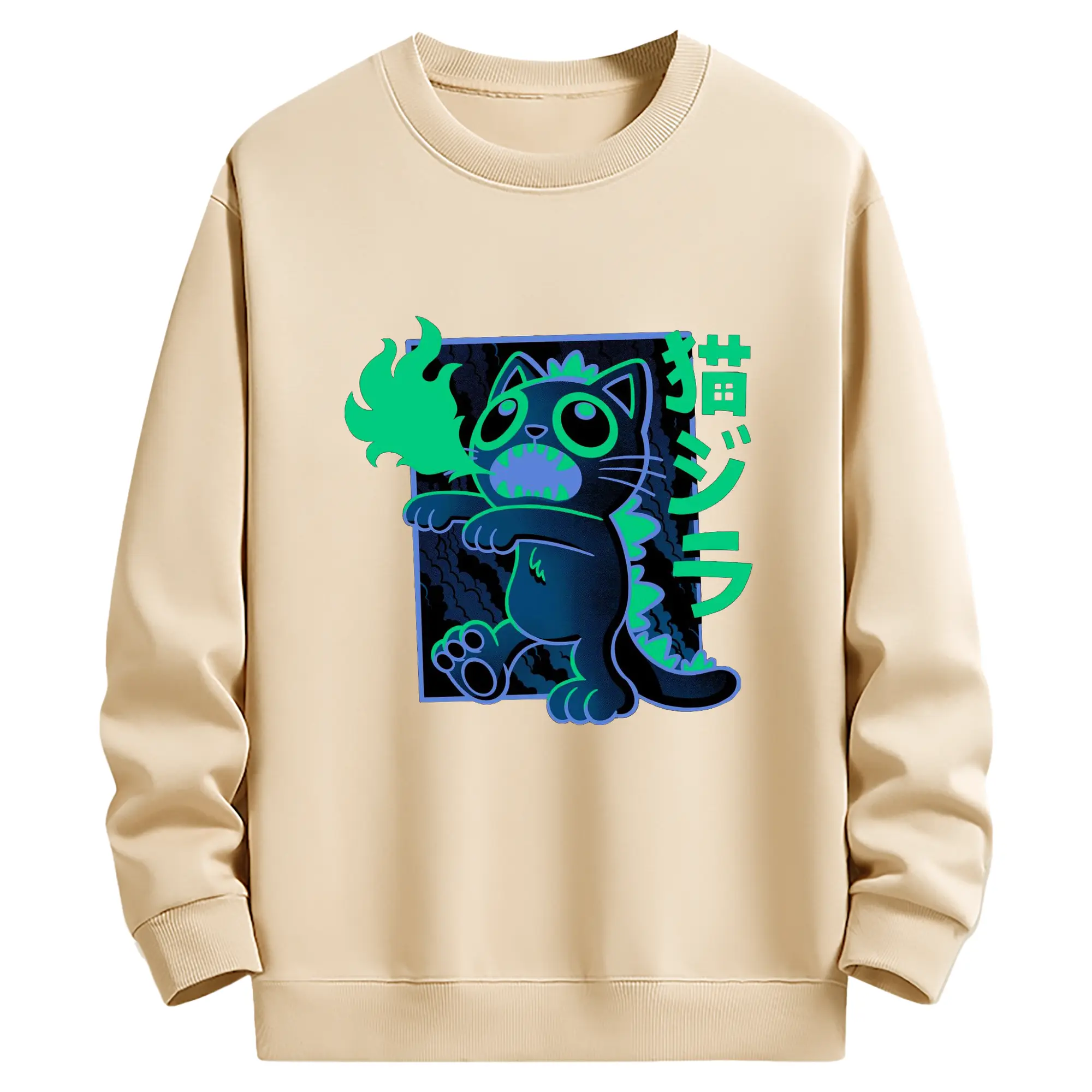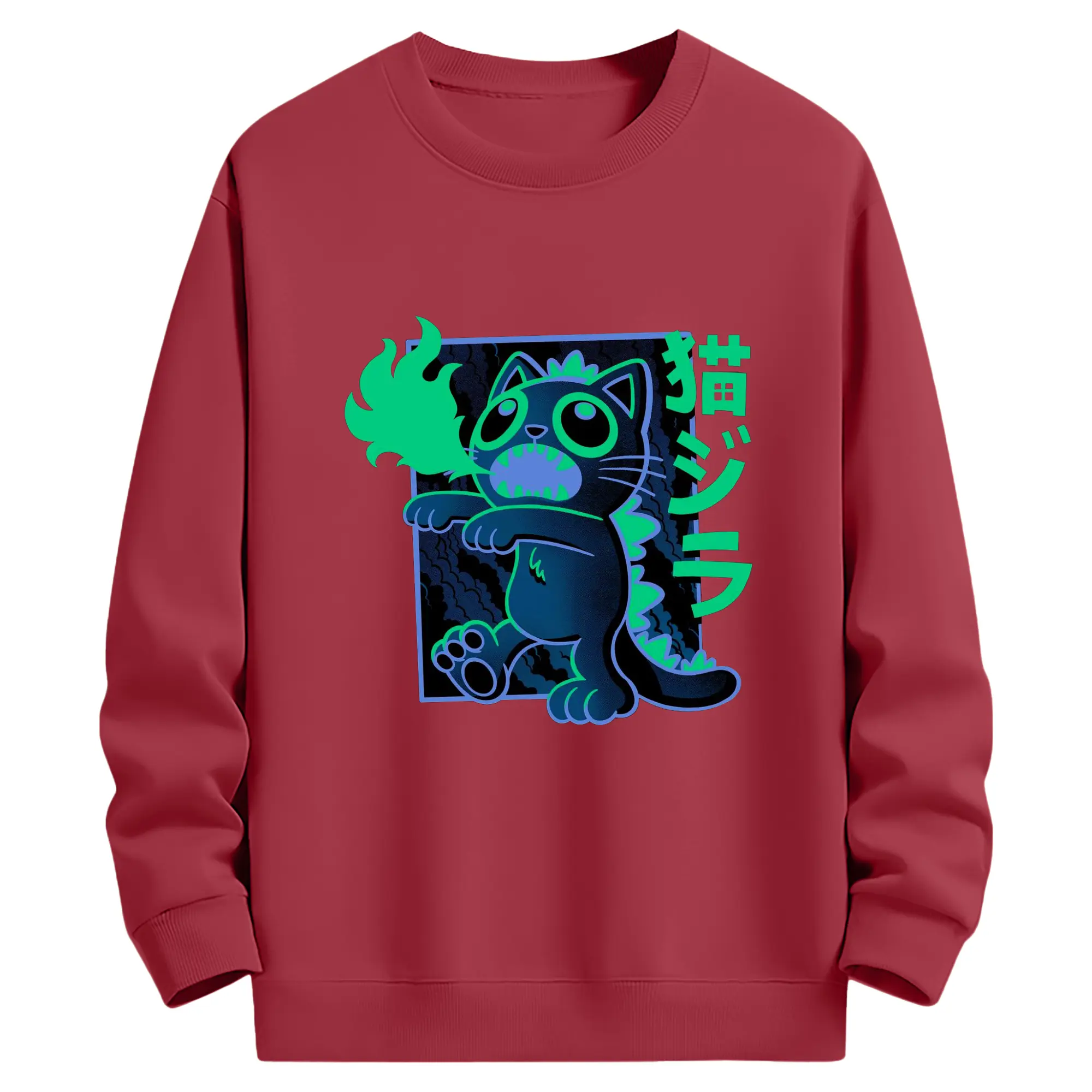 ゴジラ キャットジラ CATZILLA - 高品質 クルーネック スウェット ・ コットン59% ポリエステル41% ・ ユニセックス 長袖 トレーナー ・ カジュアル デイリー スポーツ 散歩用