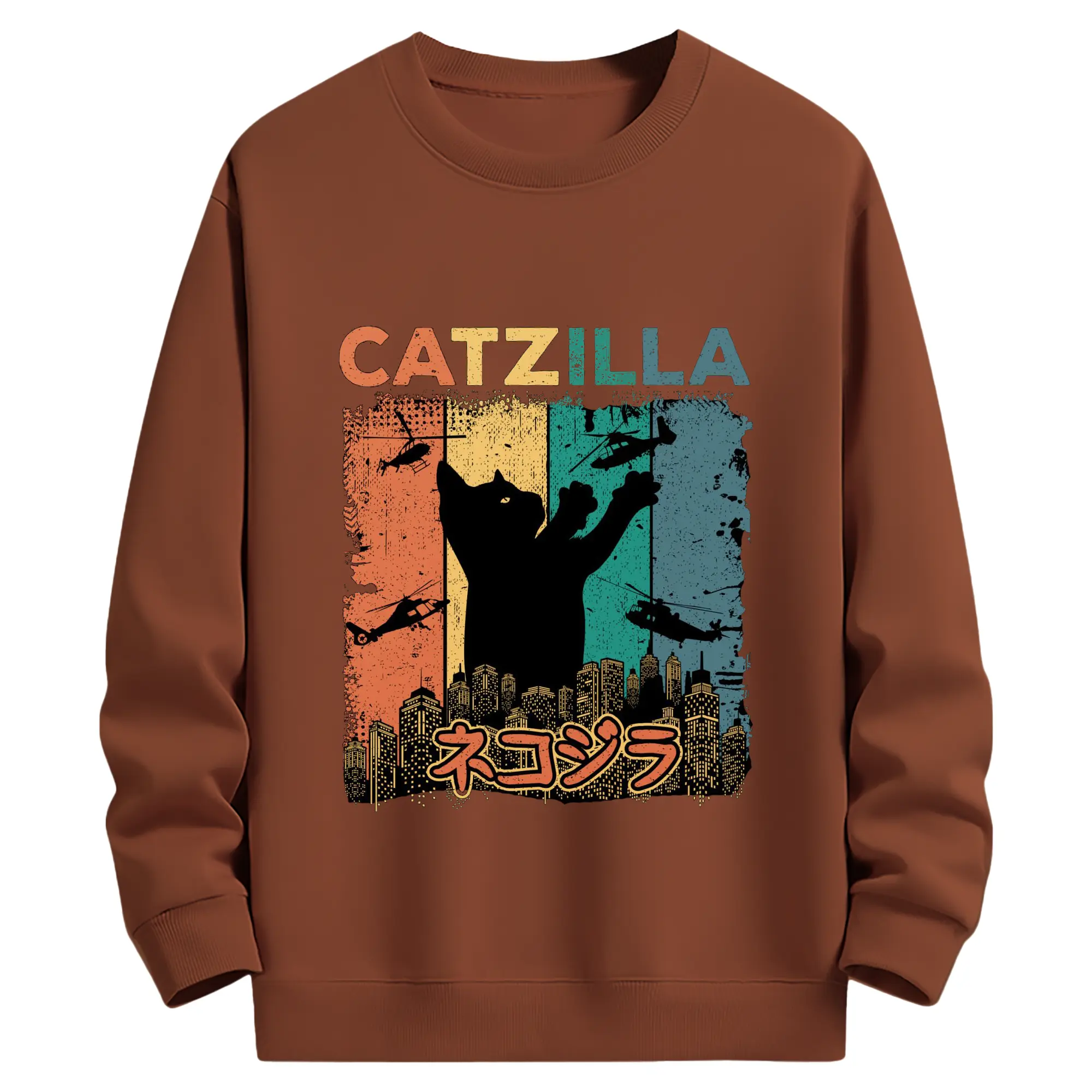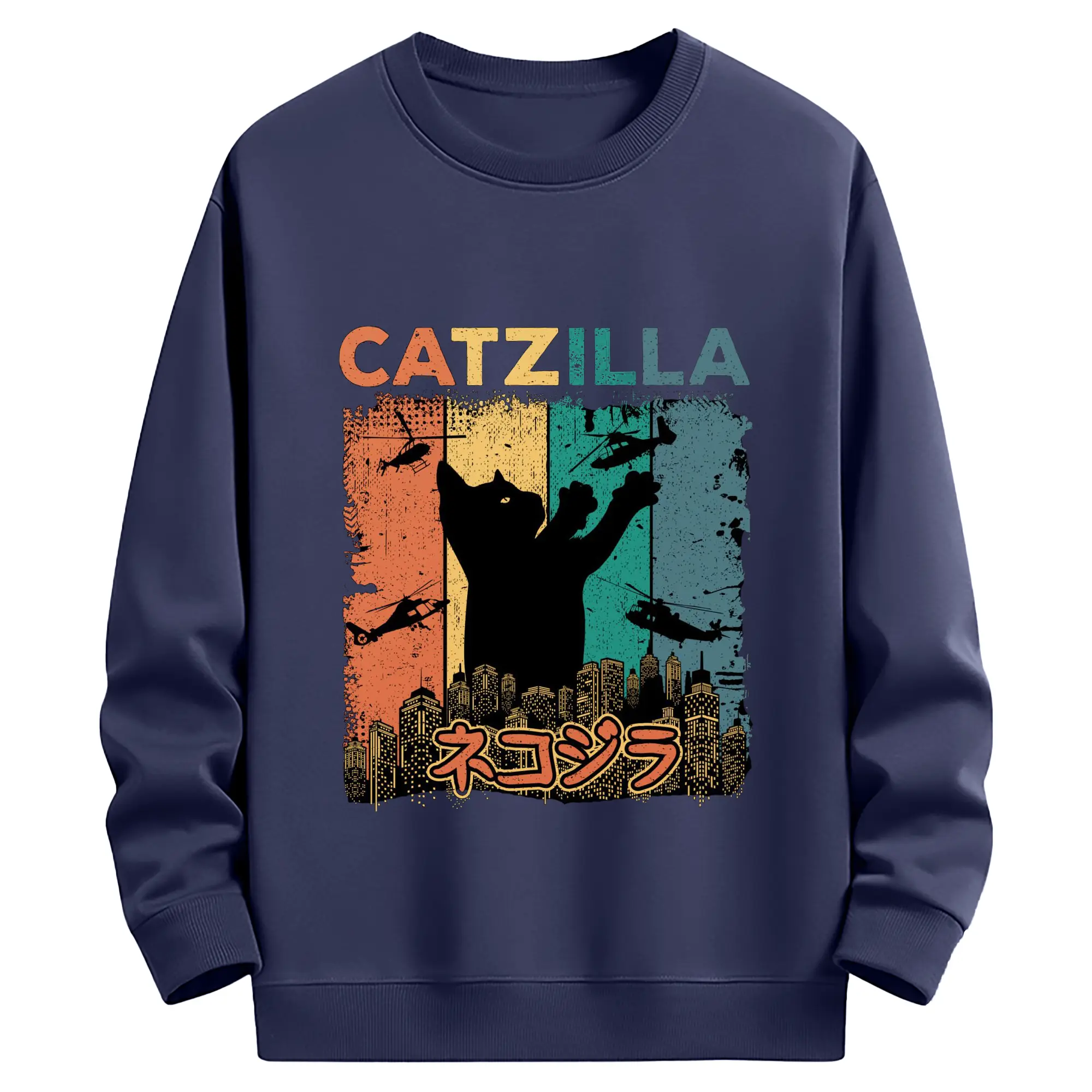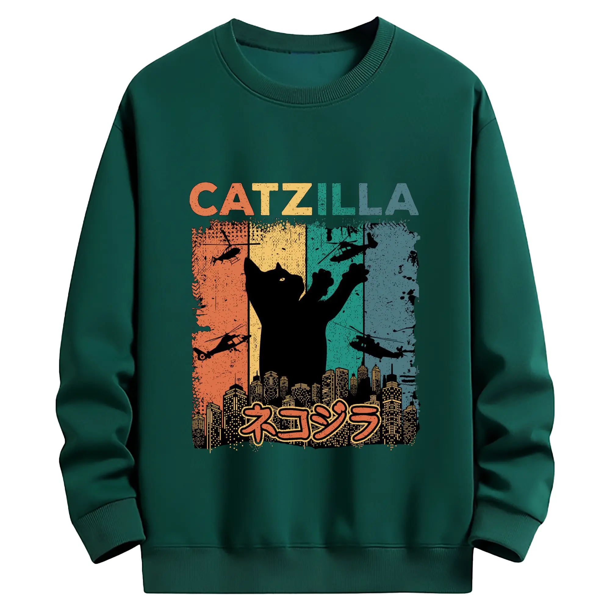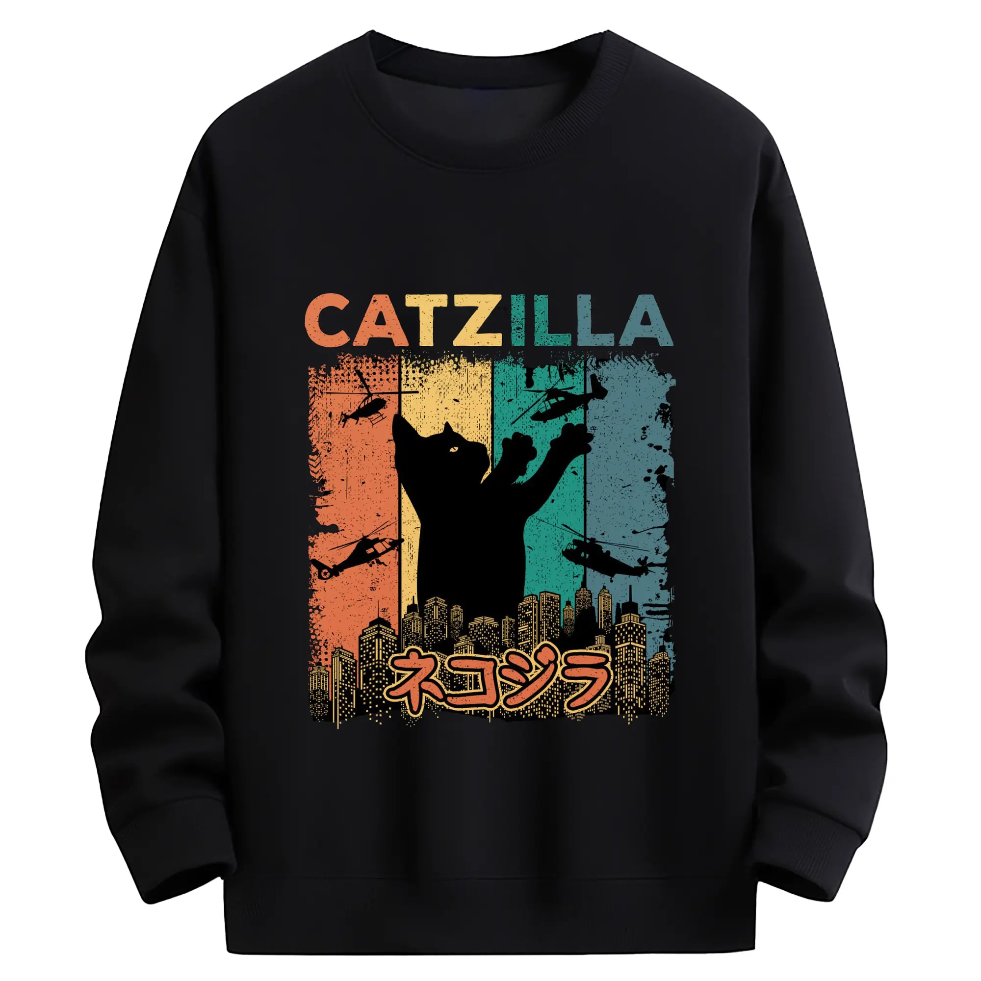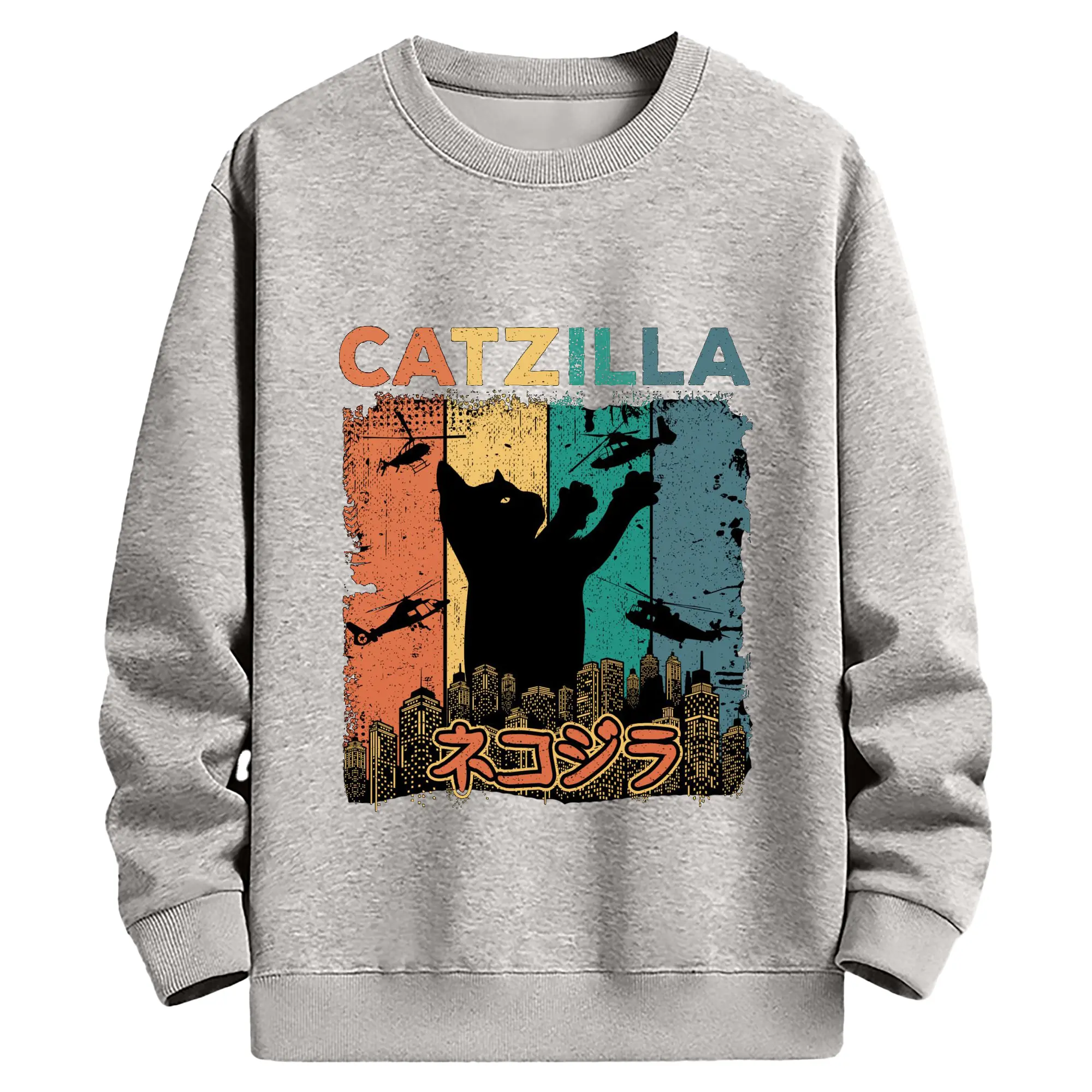 ゴジラ キャットジラ CATZILLA - 高品質 クルーネック スウェット ・ コットン59% ポリエステル41% ・ ユニセックス 長袖 トレーナー ・ カジュアル デイリー スポーツ 散歩用