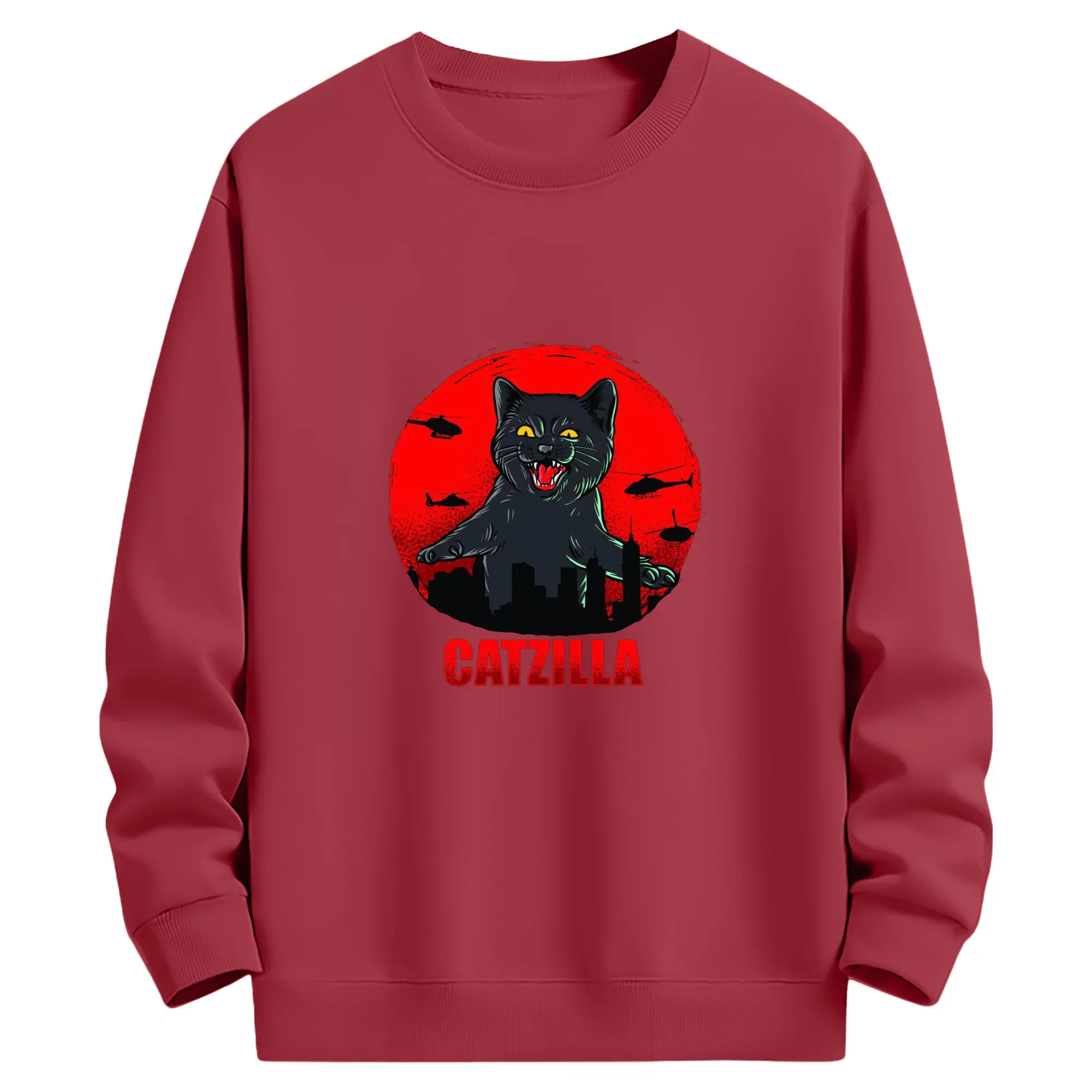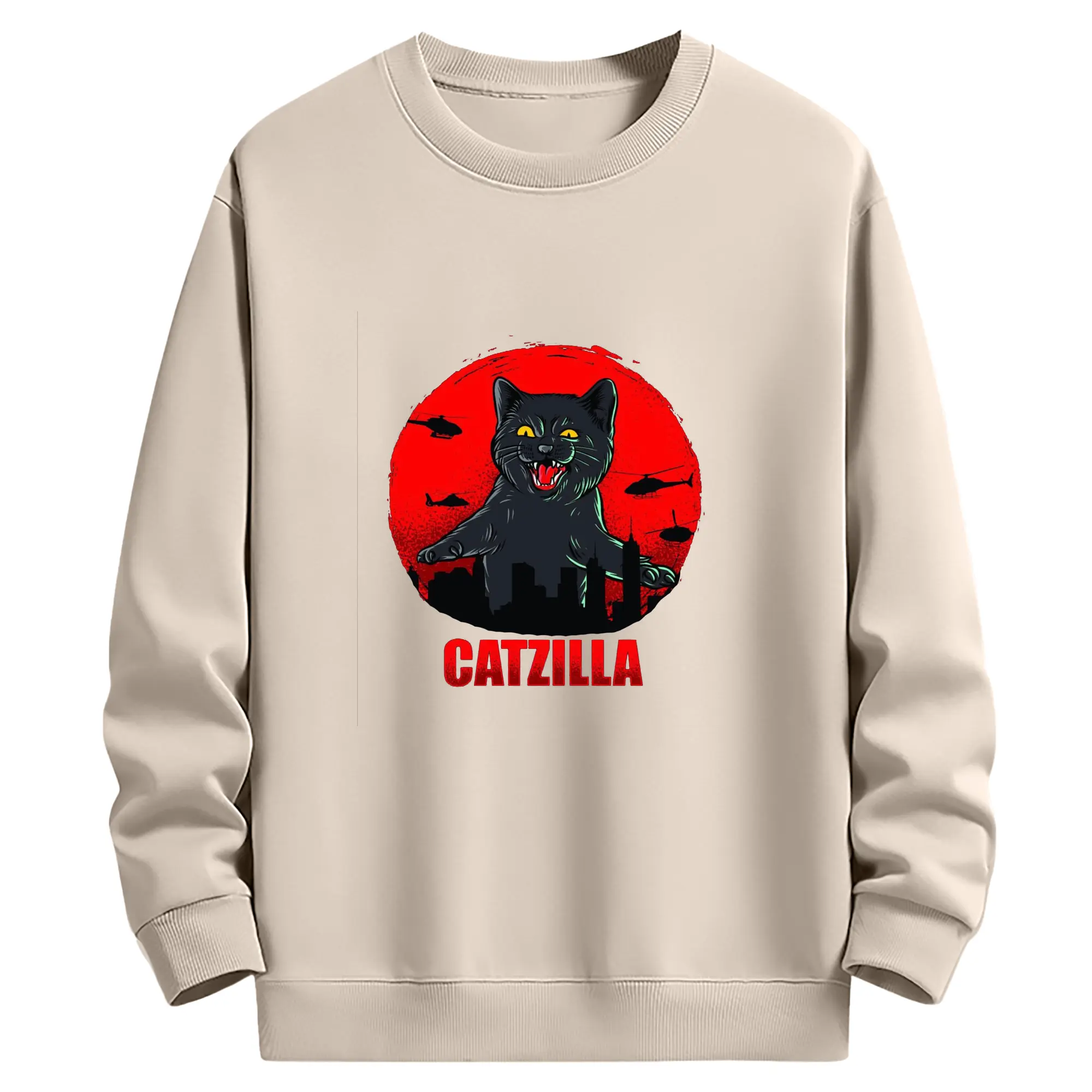 ゴジラ キャットジラ CATZILLA - 高品質 クルーネック スウェット ・ コットン59% ポリエステル41% ・ ユニセックス 長袖 トレーナー ・ カジュアル デイリー スポーツ 散歩用