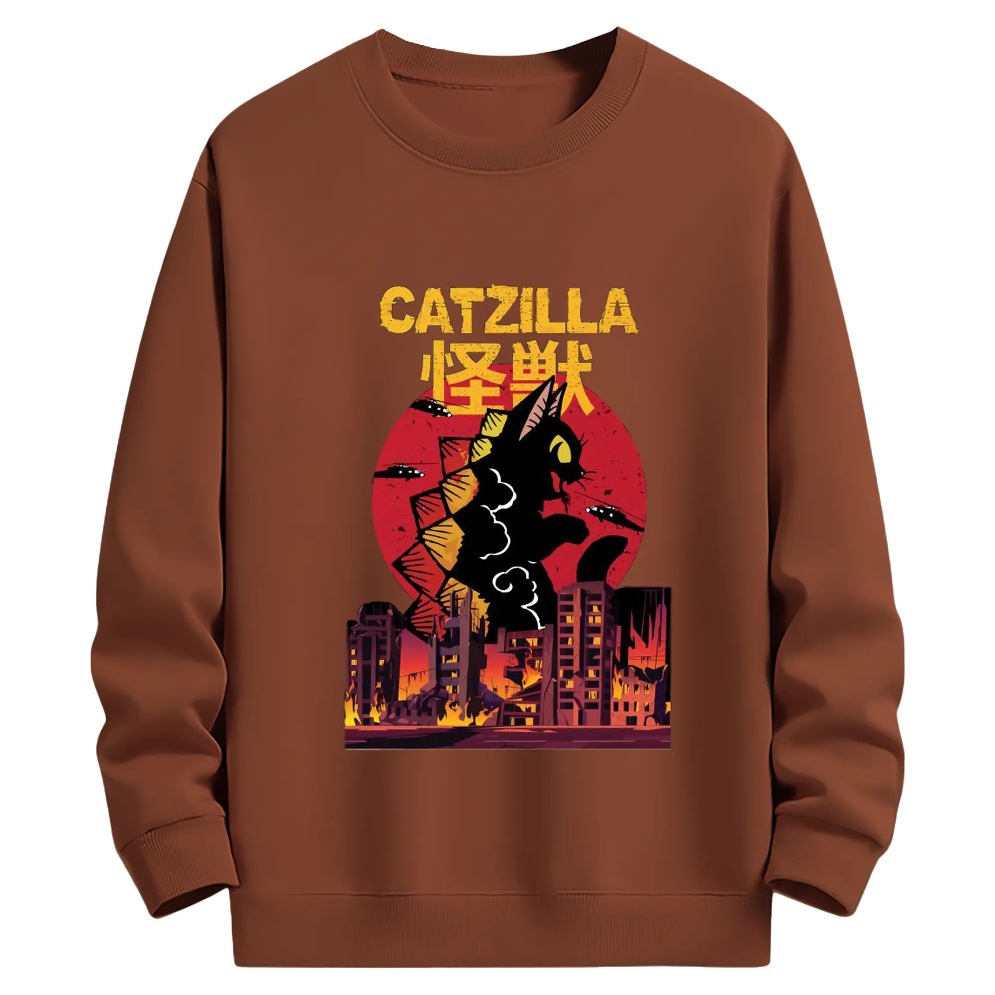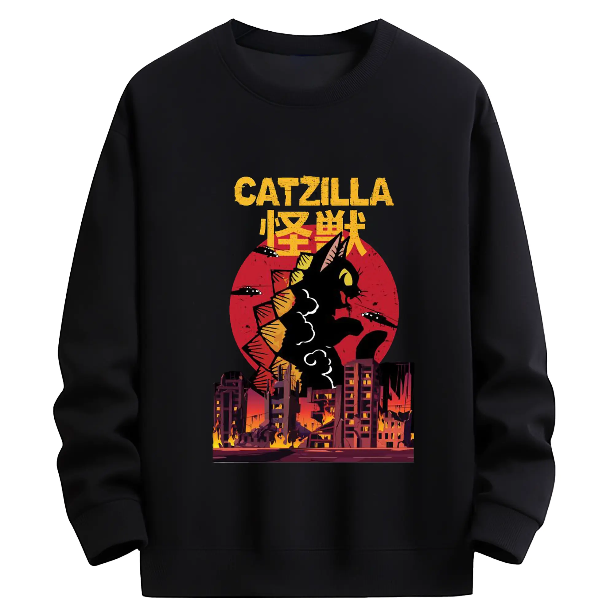 ゴジラ キャットジラ CATZILLA - 高品質 クルーネック スウェット ・ コットン59% ポリエステル41% ・ ユニセックス 長袖 トレーナー ・ カジュアル デイリー スポーツ 散歩用