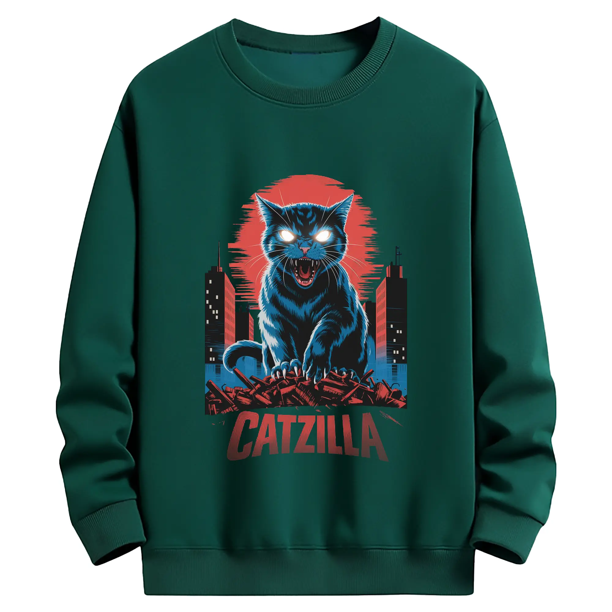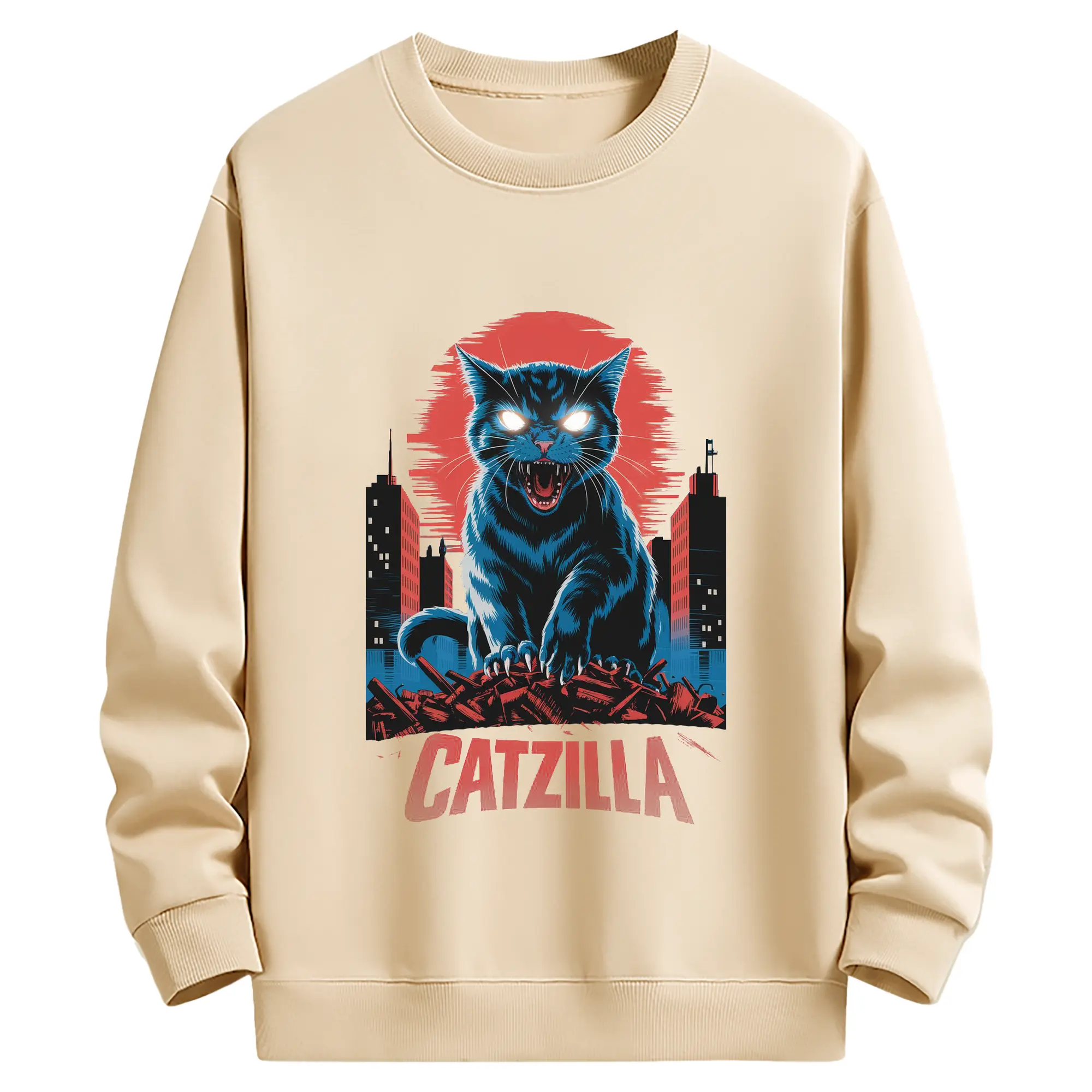 ゴジラ キャットジラ CATZILLA - 高品質 クルーネック スウェット ・ コットン59% ポリエステル41% ・ ユニセックス 長袖 トレーナー ・ カジュアル デイリー スポーツ 散歩用