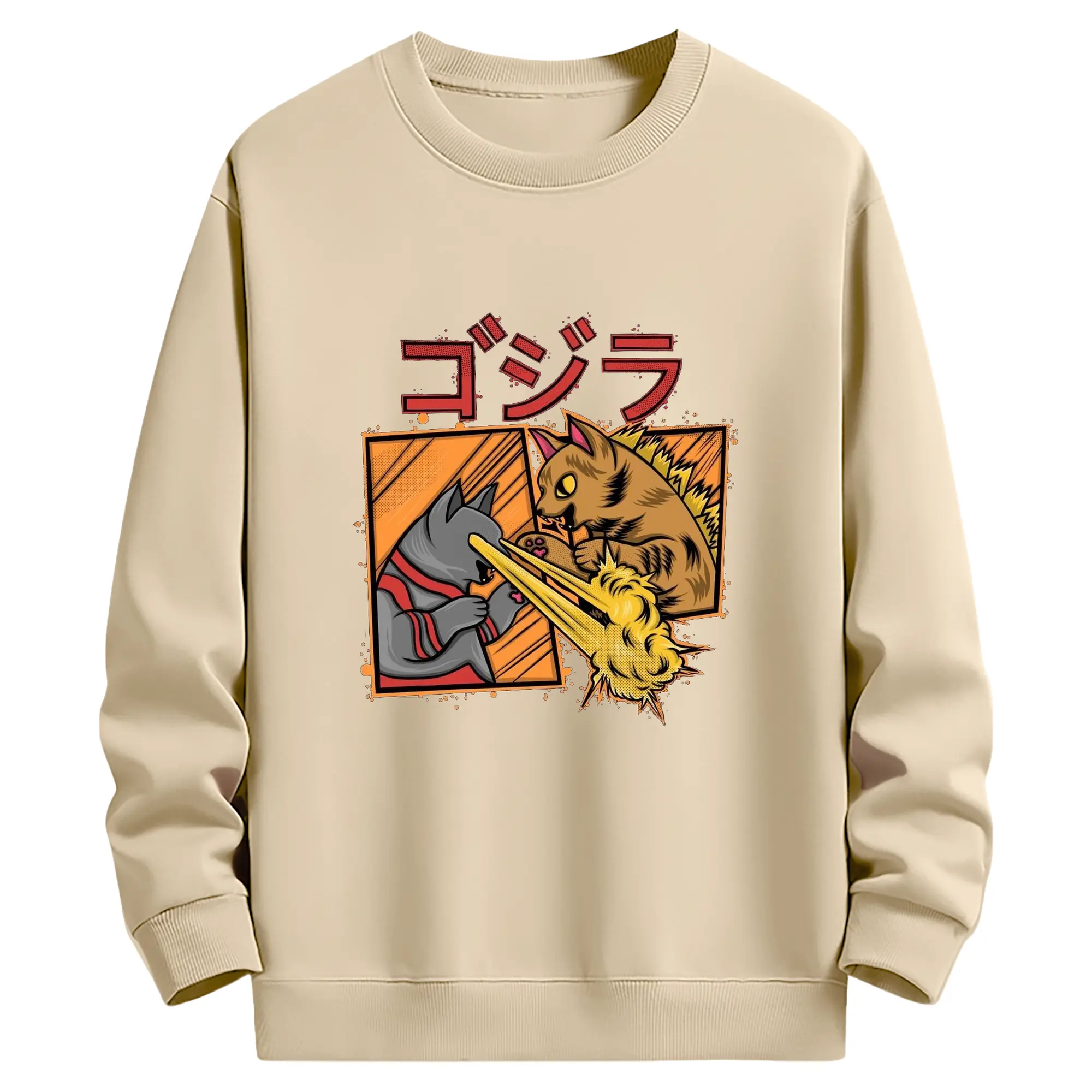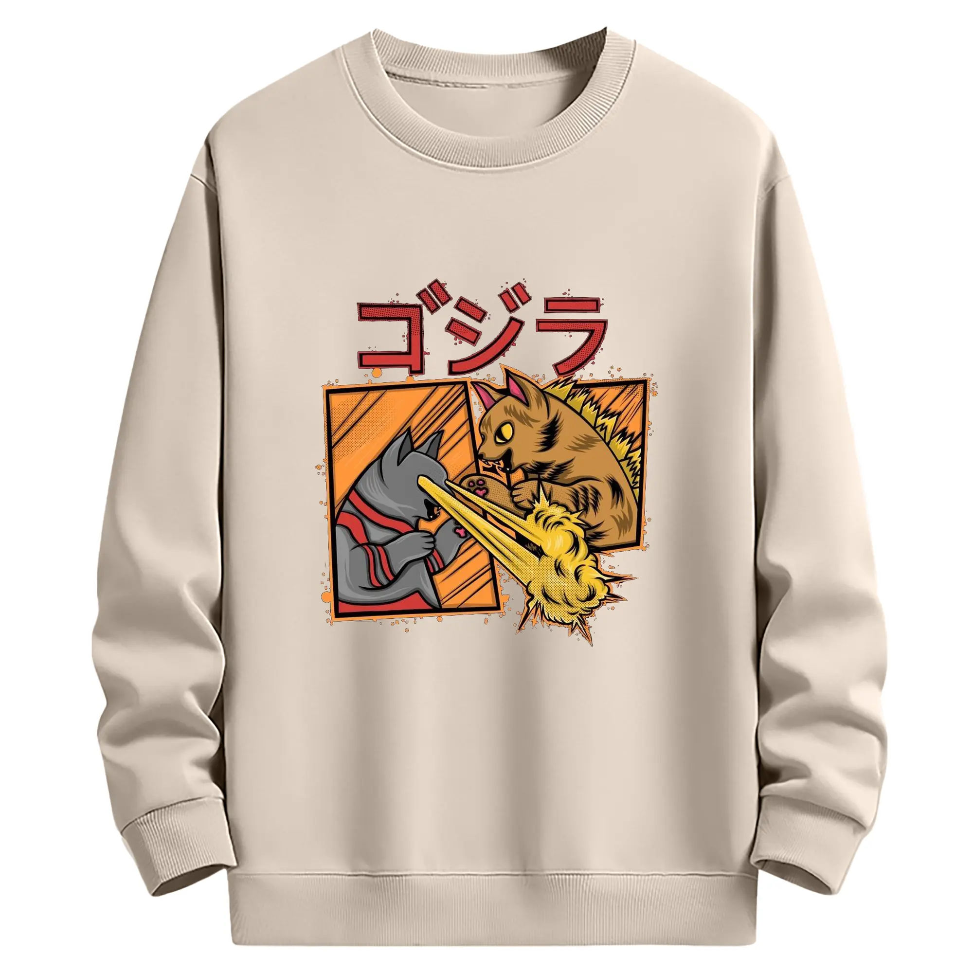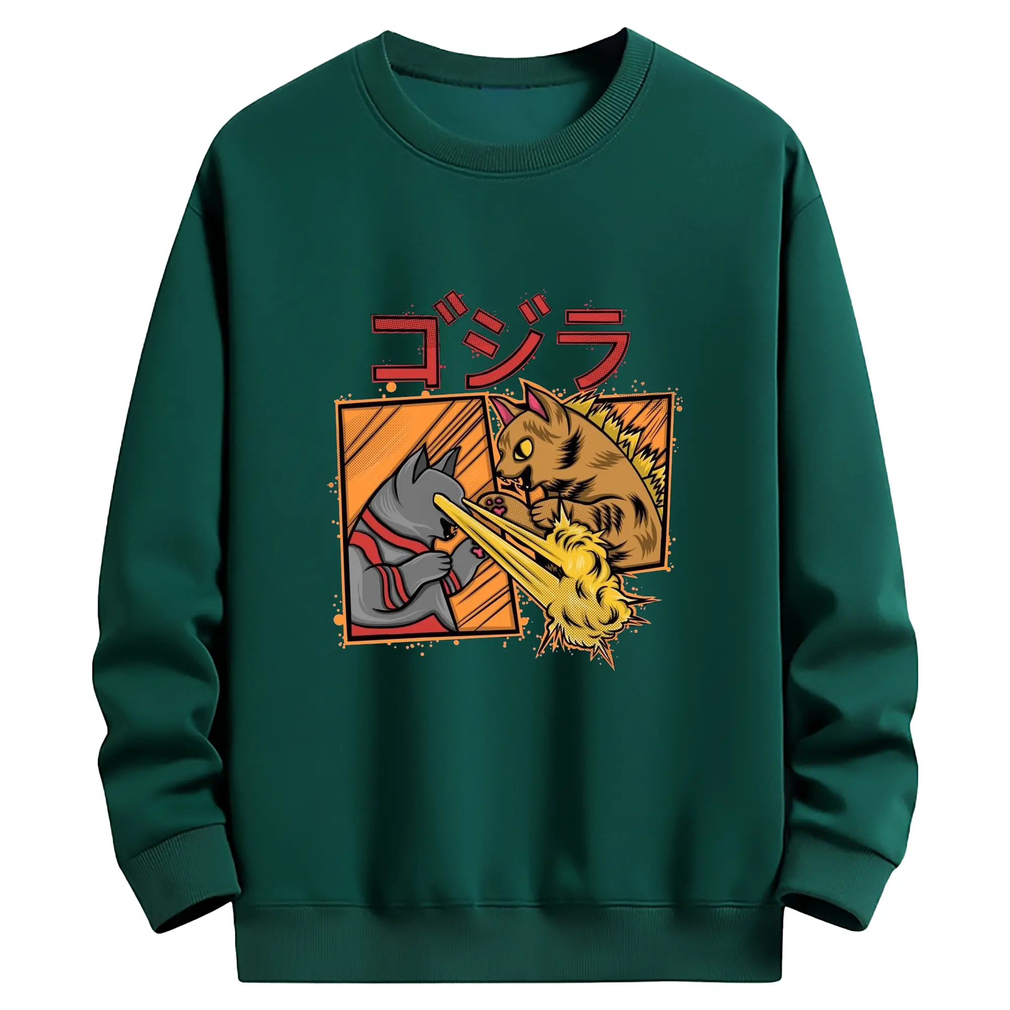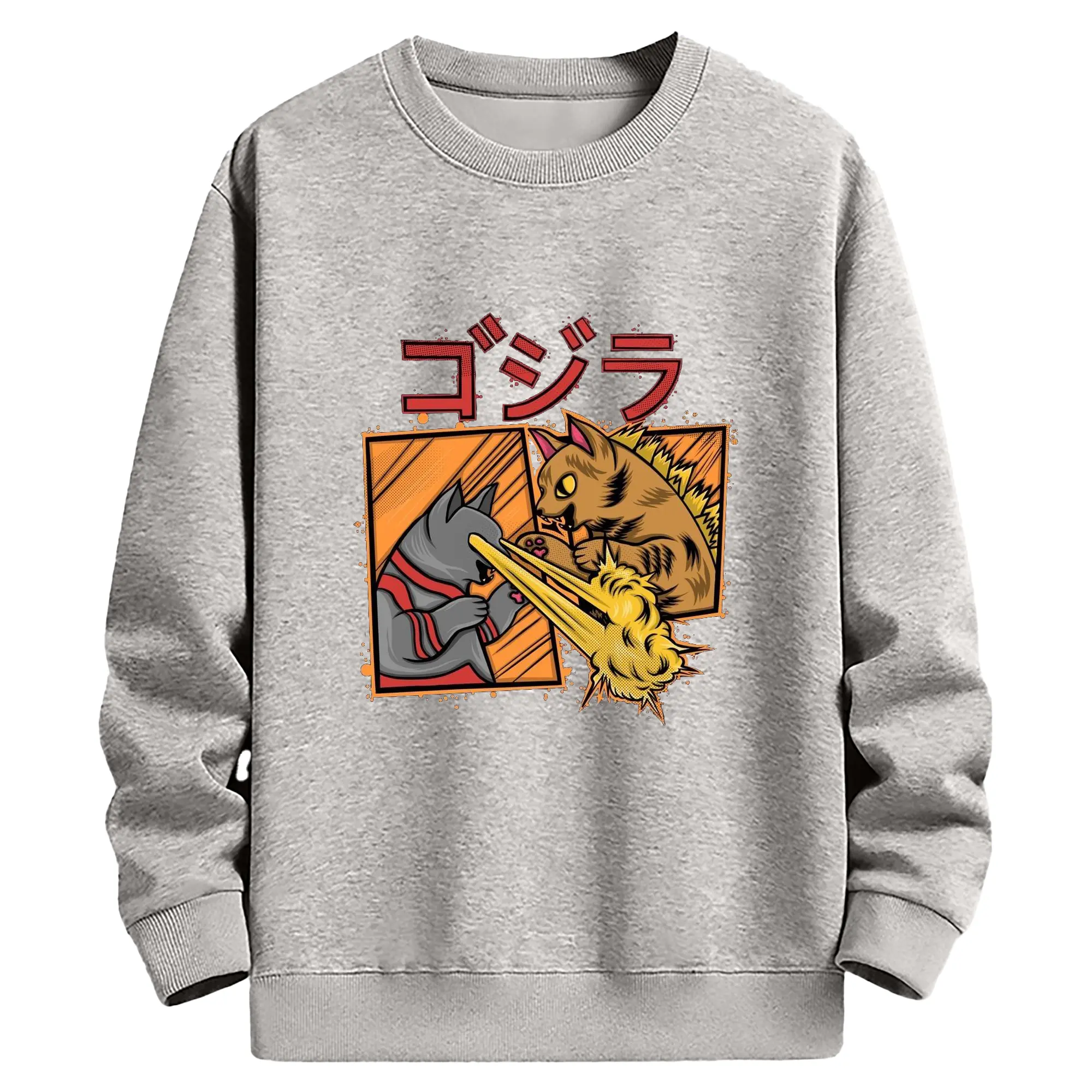 ゴジラ キャットジラ CATZILLA 怪獣ねこ - 高品質 クルーネック スウェット ・ コットン59% ポリエステル41% ・ ユニセックス 長袖 トレーナー ・ カジュアル デイリー スポーツ 散歩用