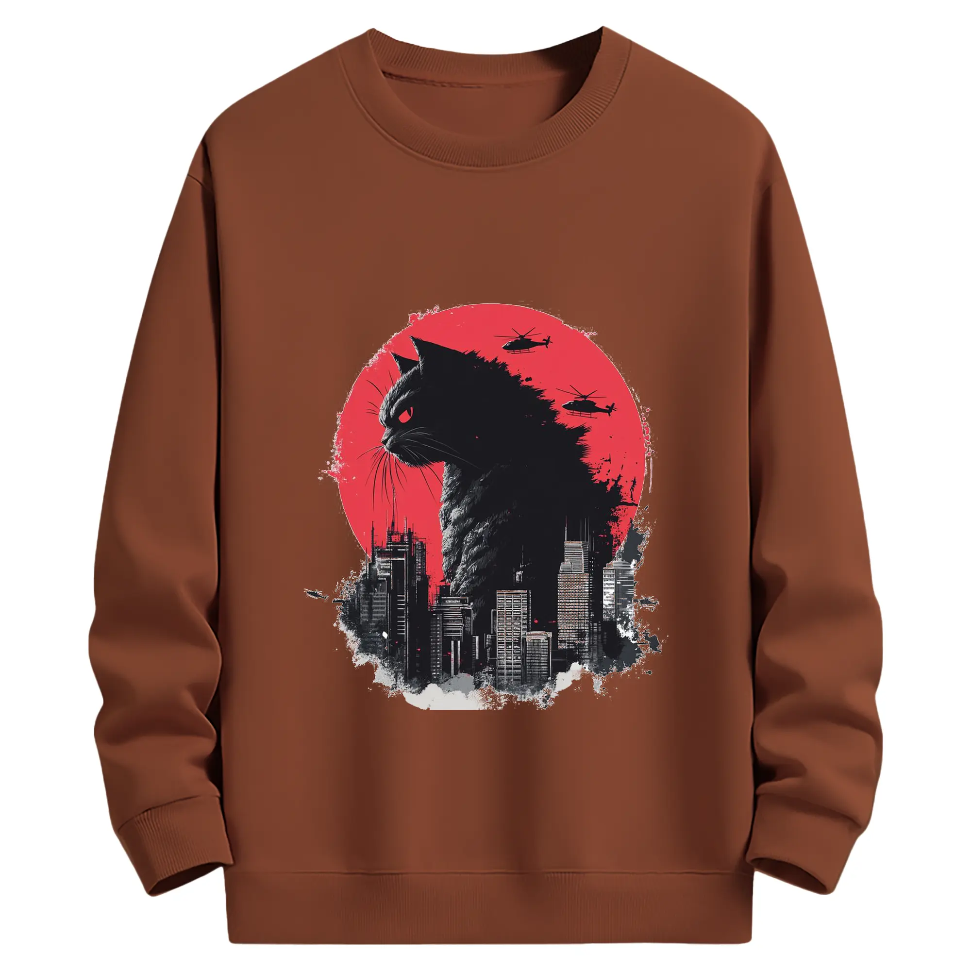 ゴジラ キャットジラ CATZILLA - 高品質 クルーネック スウェット ・ コットン59% ポリエステル41% ・ ユニセックス 長袖 トレーナー ・ カジュアル デイリー スポーツ 散歩用