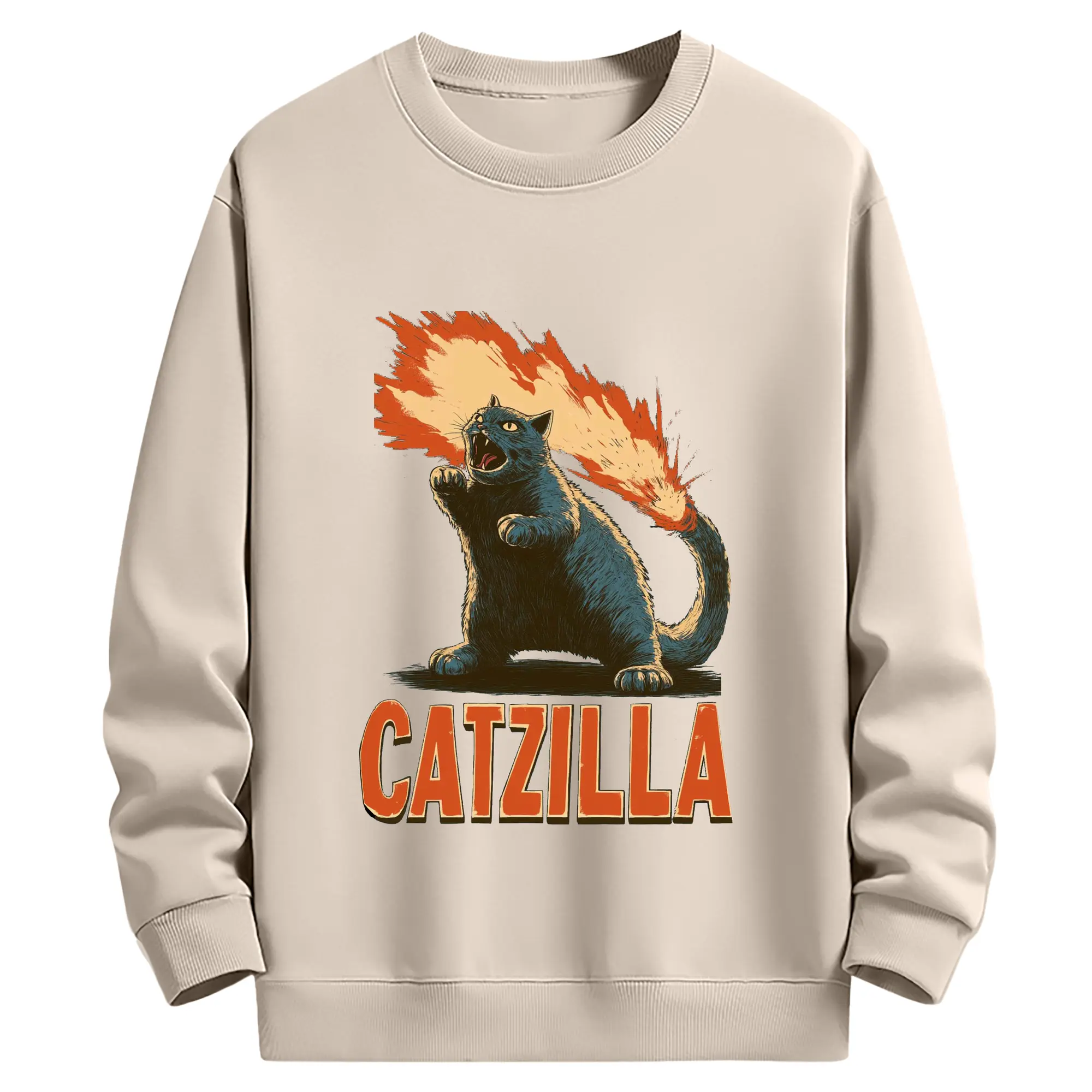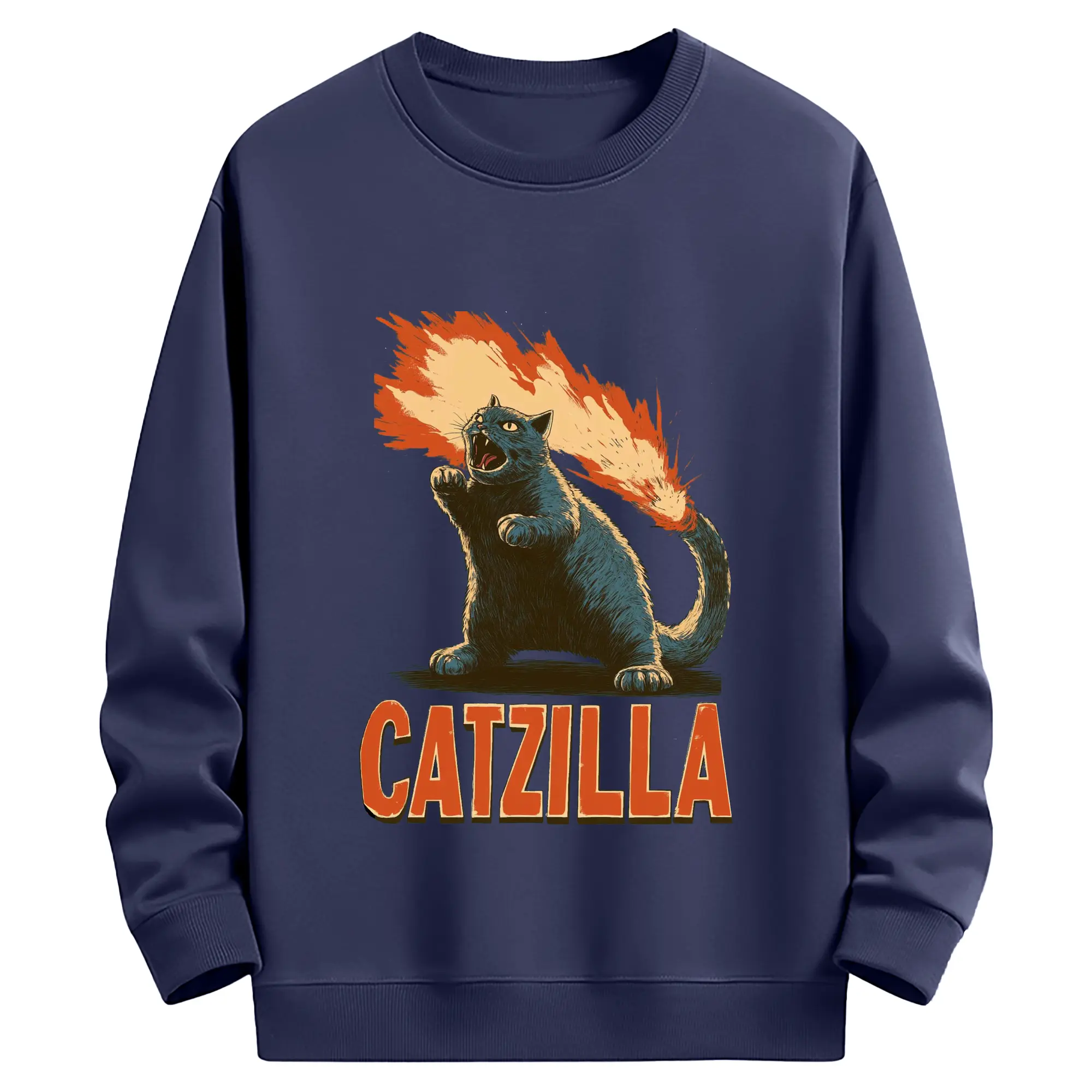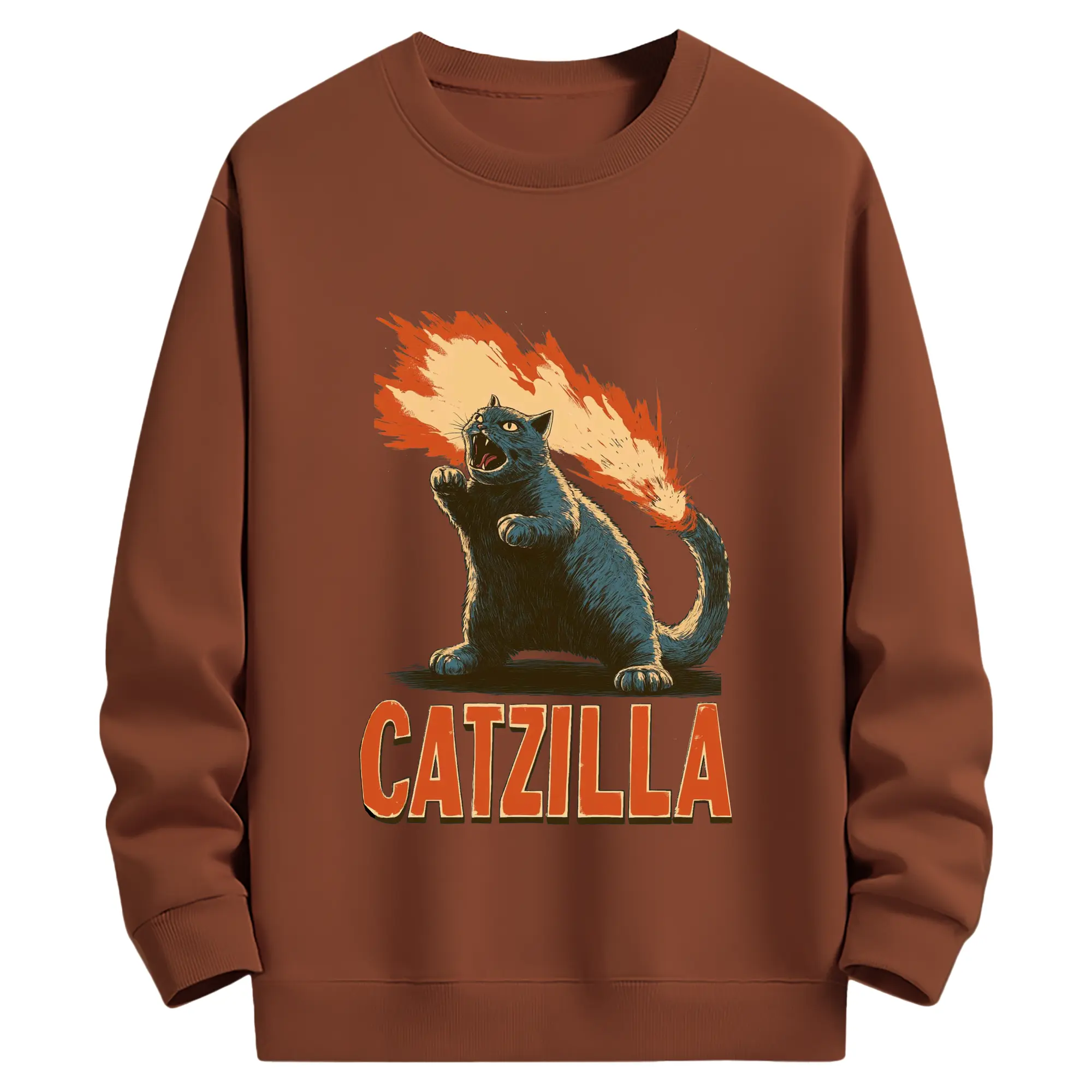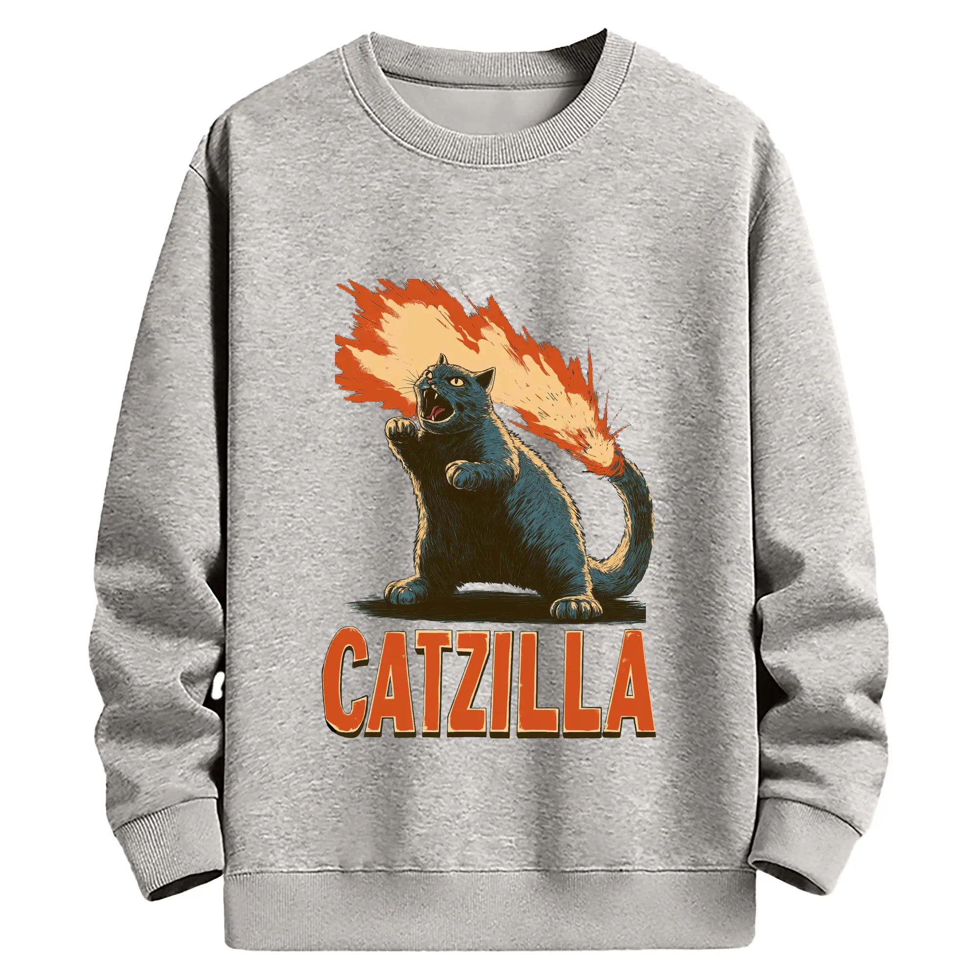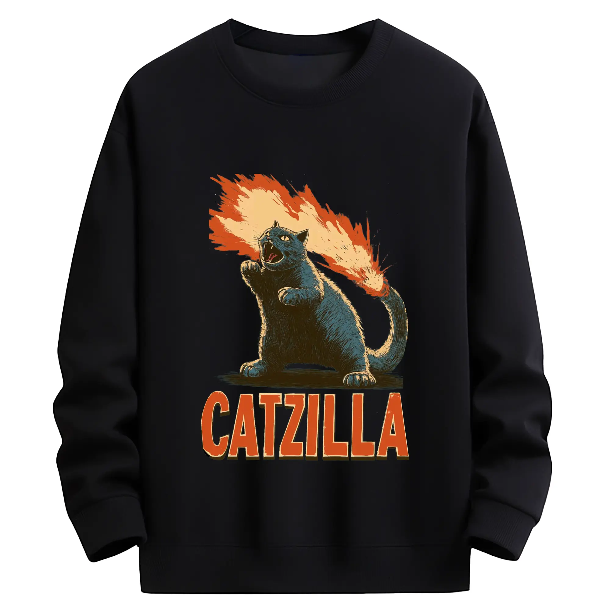ゴジラ キャットジラ CATZILLA - 高品質 クルーネック スウェット ・ コットン59% ポリエステル41% ・ ユニセックス 長袖 トレーナー ・ カジュアル デイリー スポーツ 散歩用