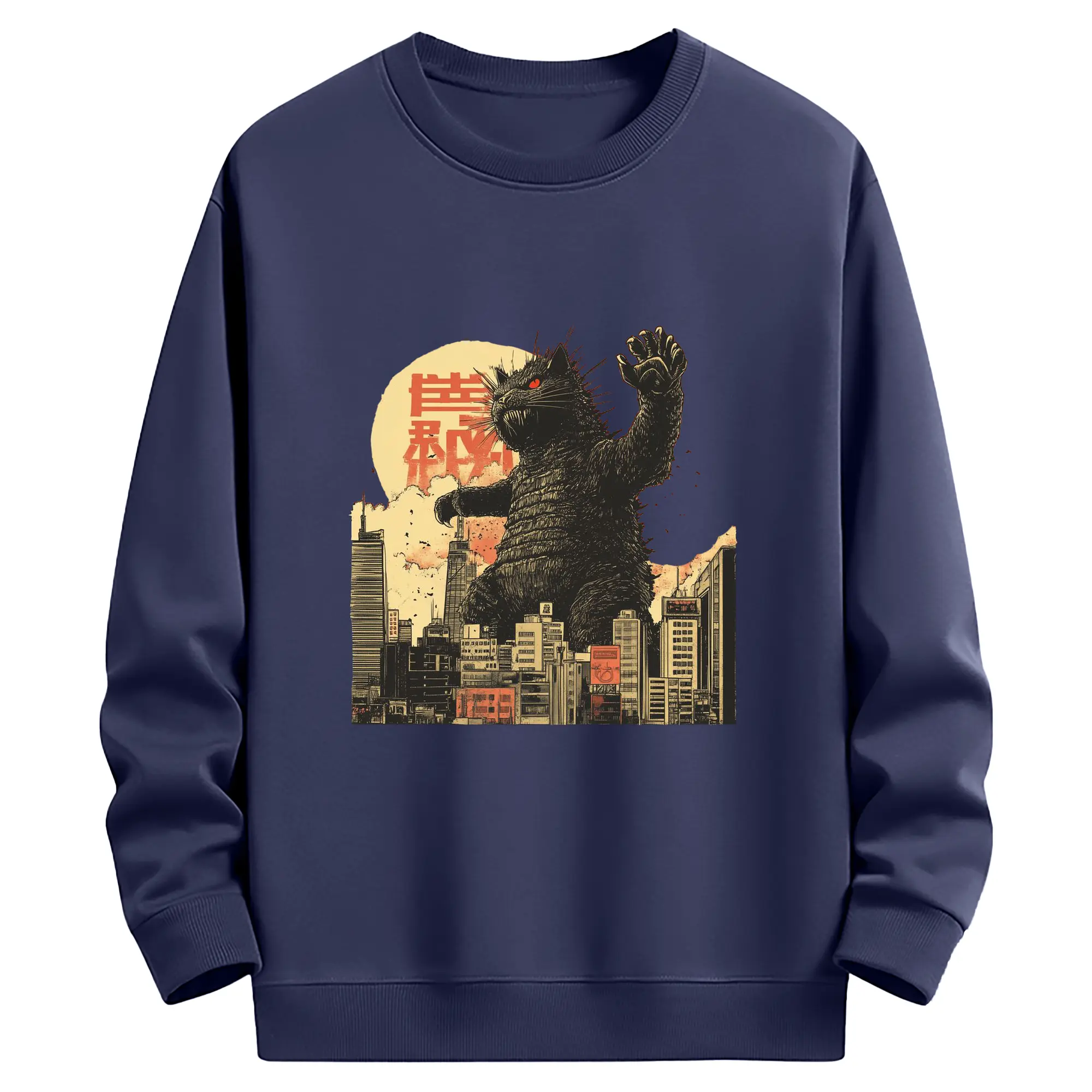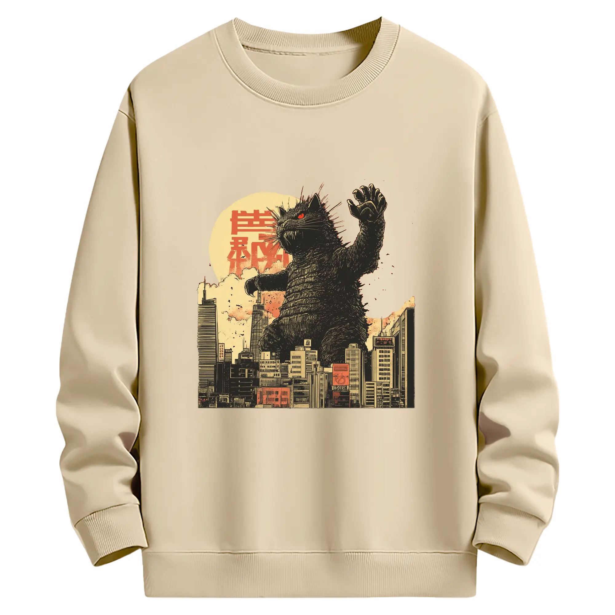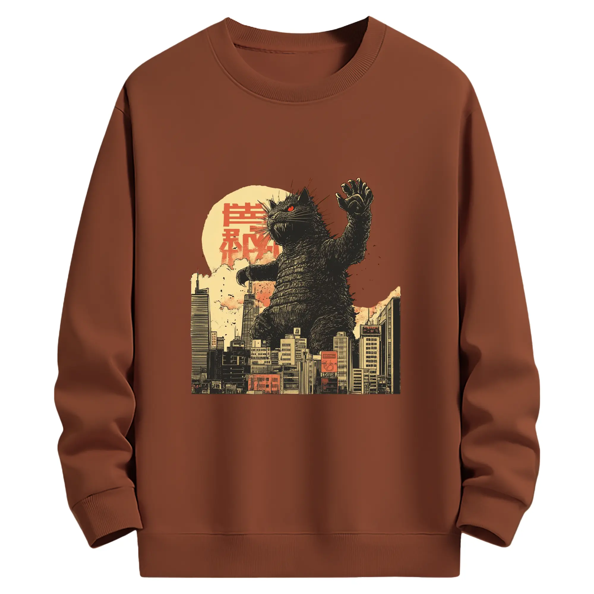 ゴジラ キャットジラ CATZILLA - 高品質 クルーネック スウェット ・ コットン59% ポリエステル41% ・ ユニセックス 長袖 トレーナー ・ カジュアル デイリー スポーツ 散歩用