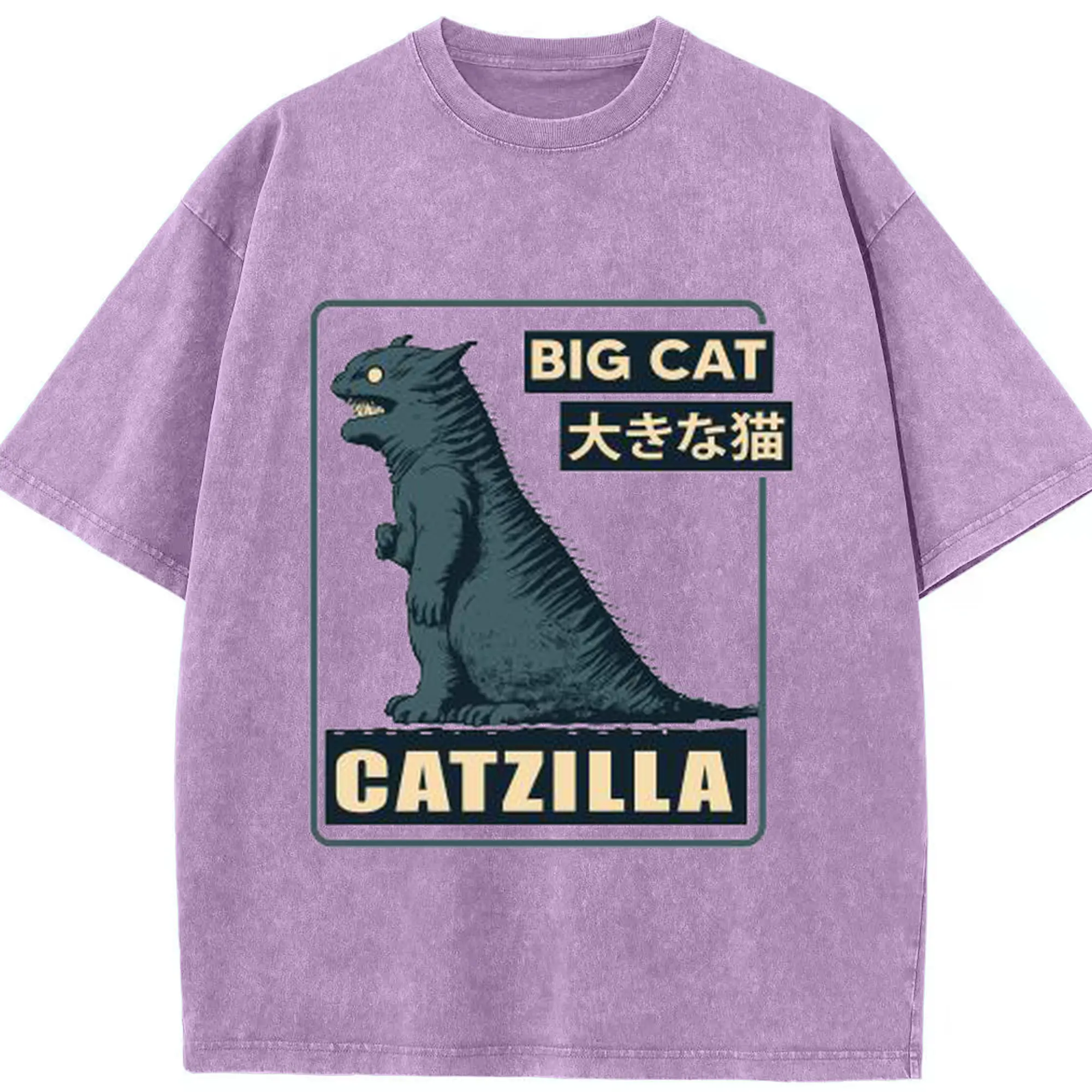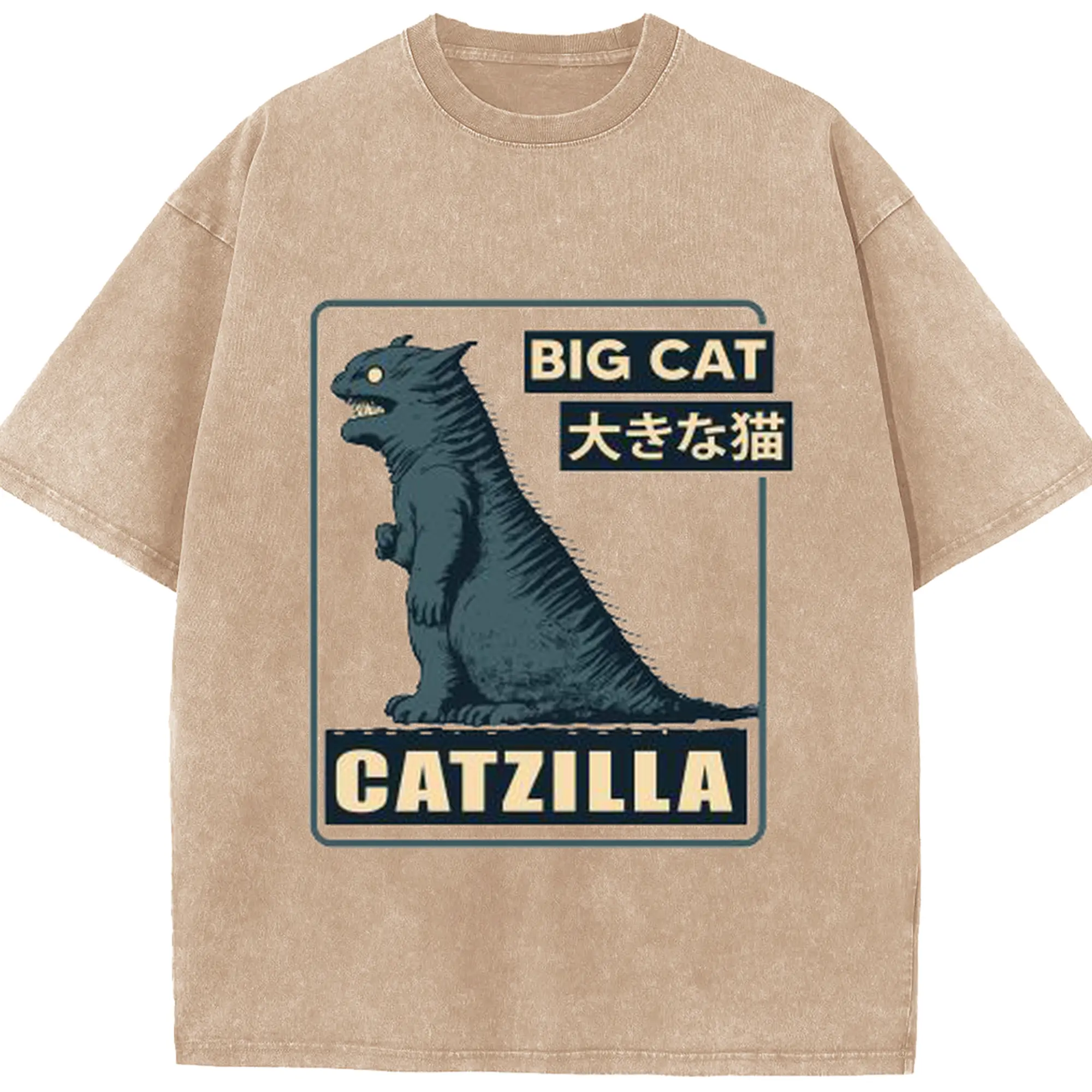 ゴジラ キャットジラ CATZILLA - 綿100% ヴィンテージ風 半袖Tシャツ ・ フロントプリント ・ 柔らか肌触り ・ 通気性 快適 ・ スポーツ カジュアル 外出用