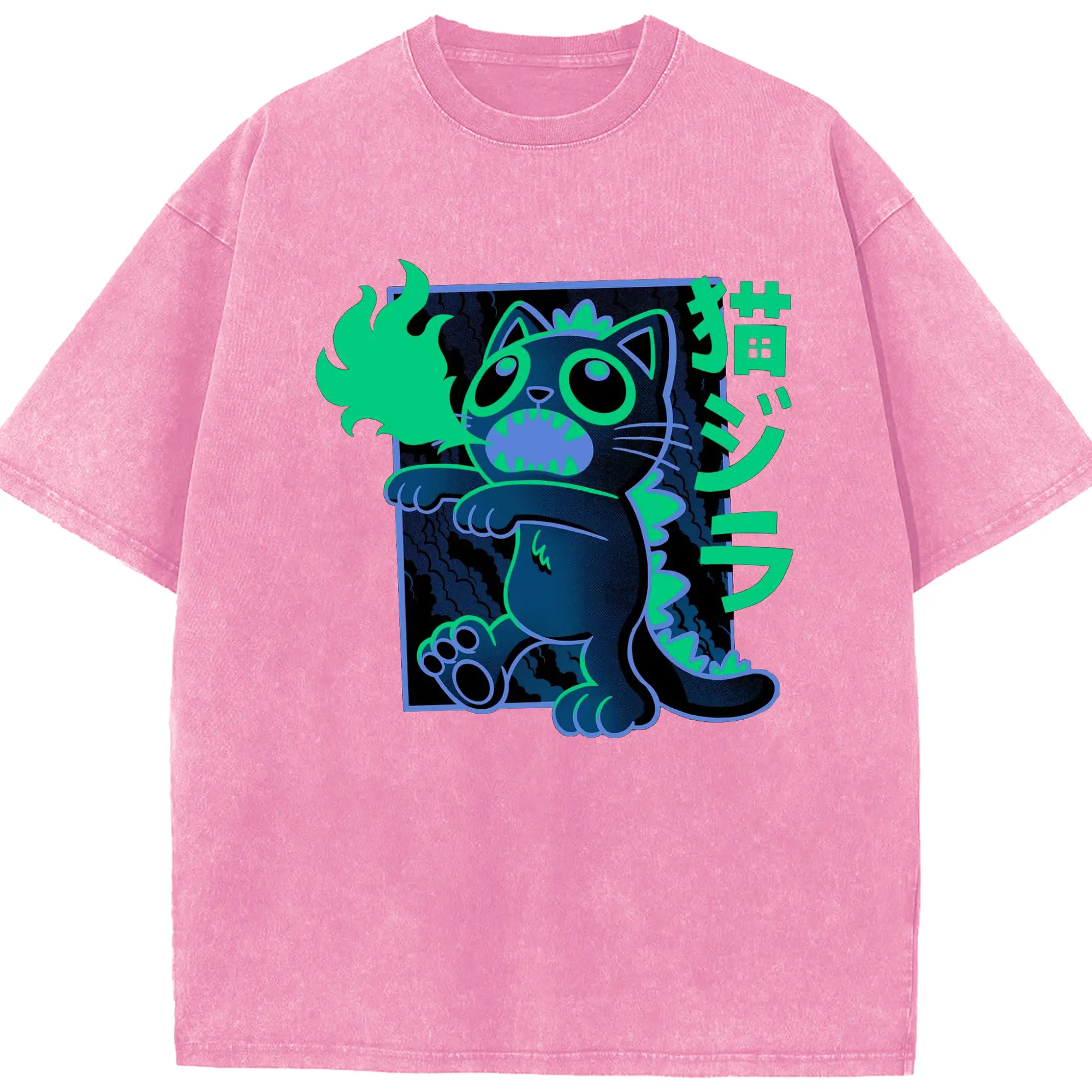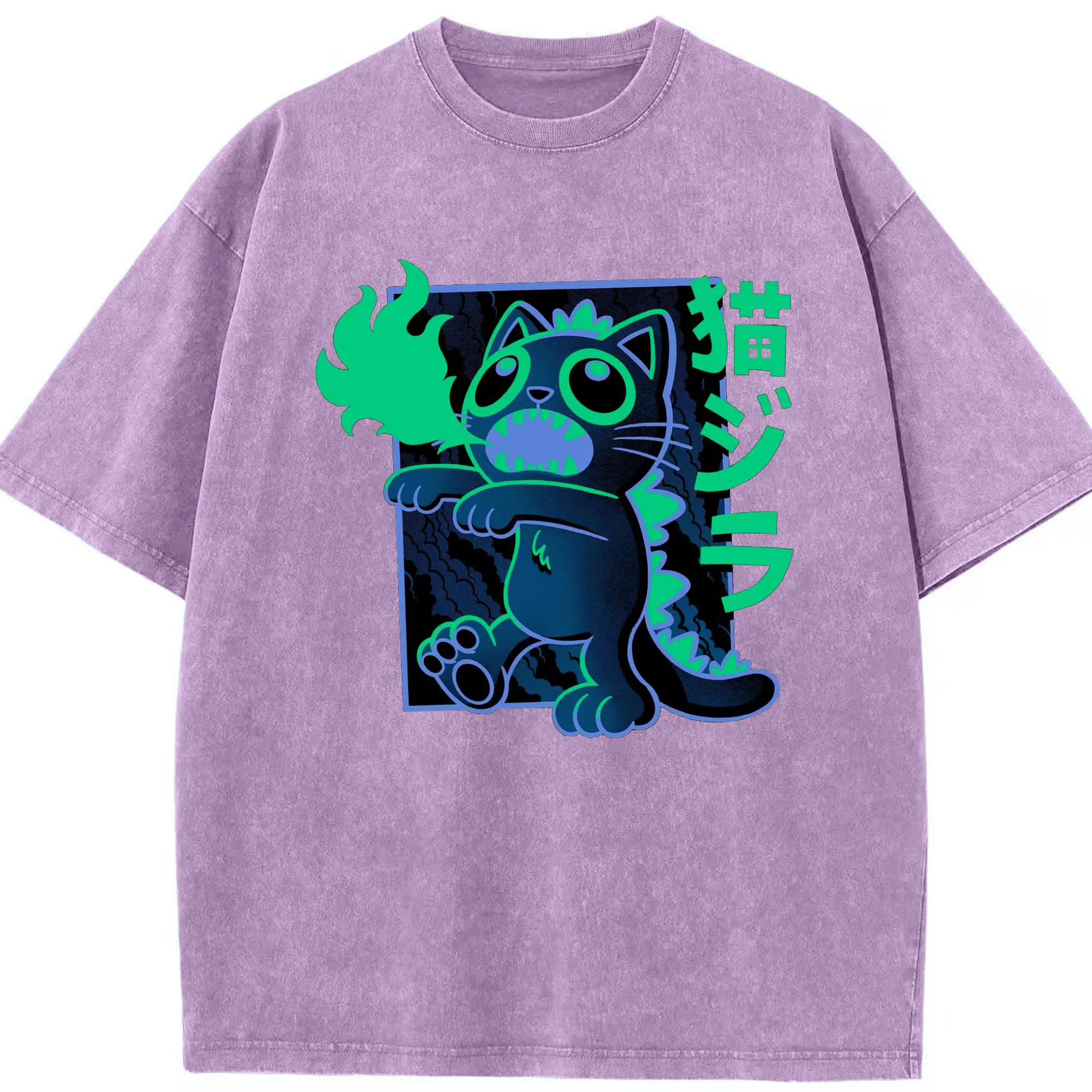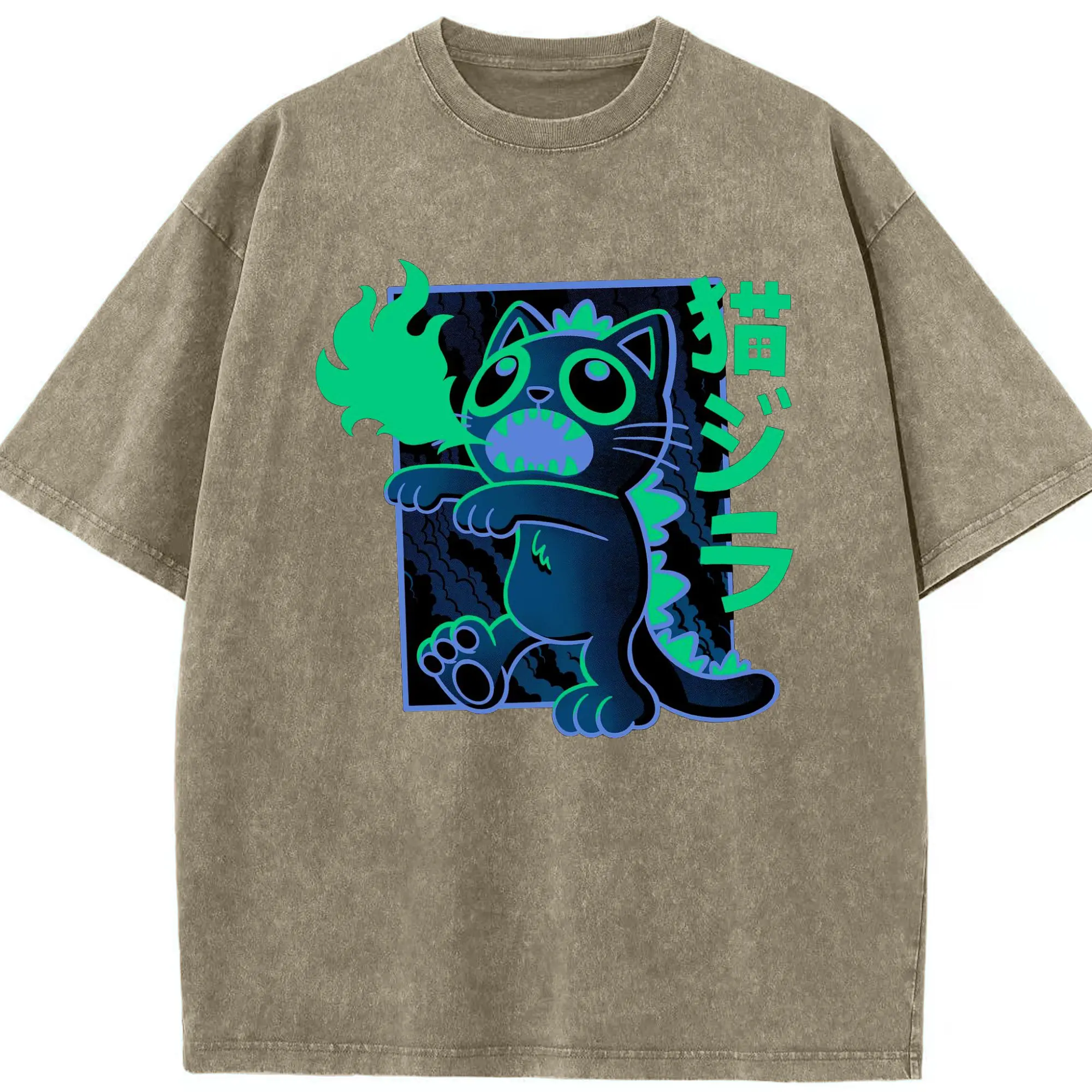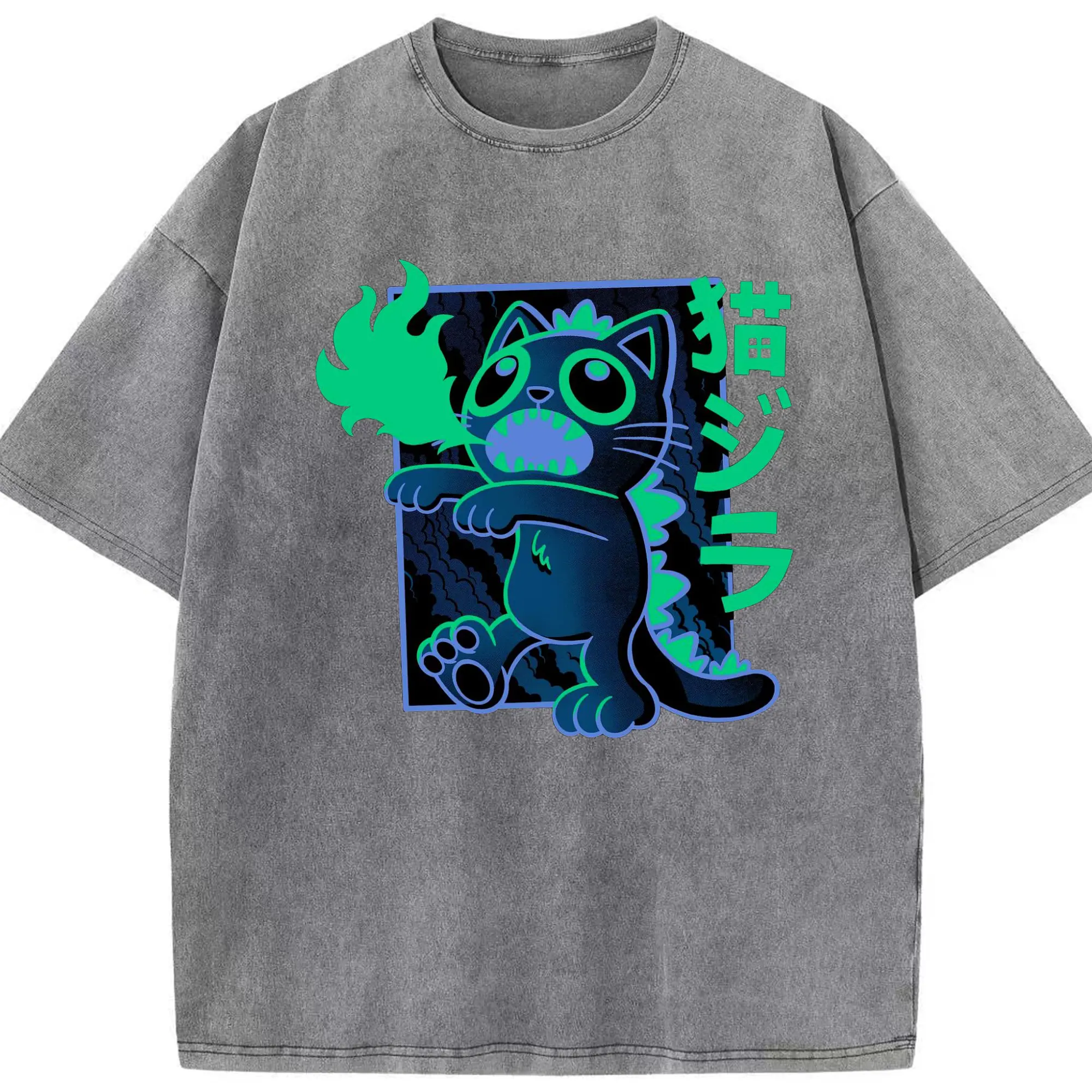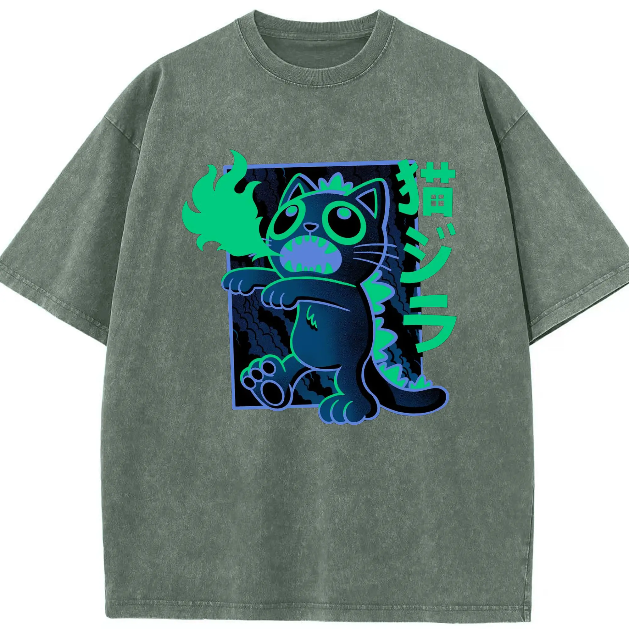 ゴジラ キャットジラ CATZILLA MonsterCat - 綿100% ヴィンテージ風 半袖Tシャツ ・ フロントプリント ・ 柔らか肌触り ・ 通気性 快適 ・ スポーツ カジュアル 外出用