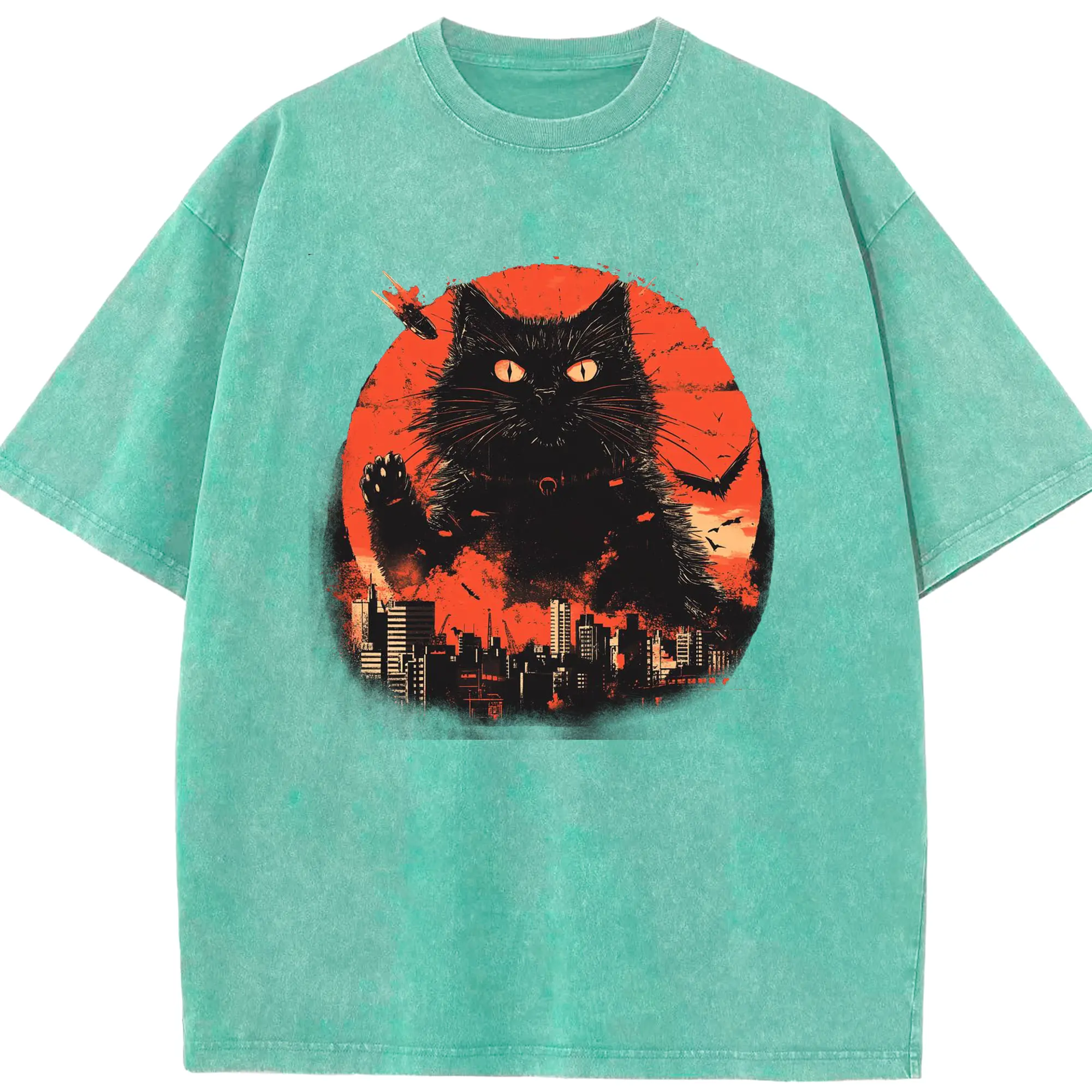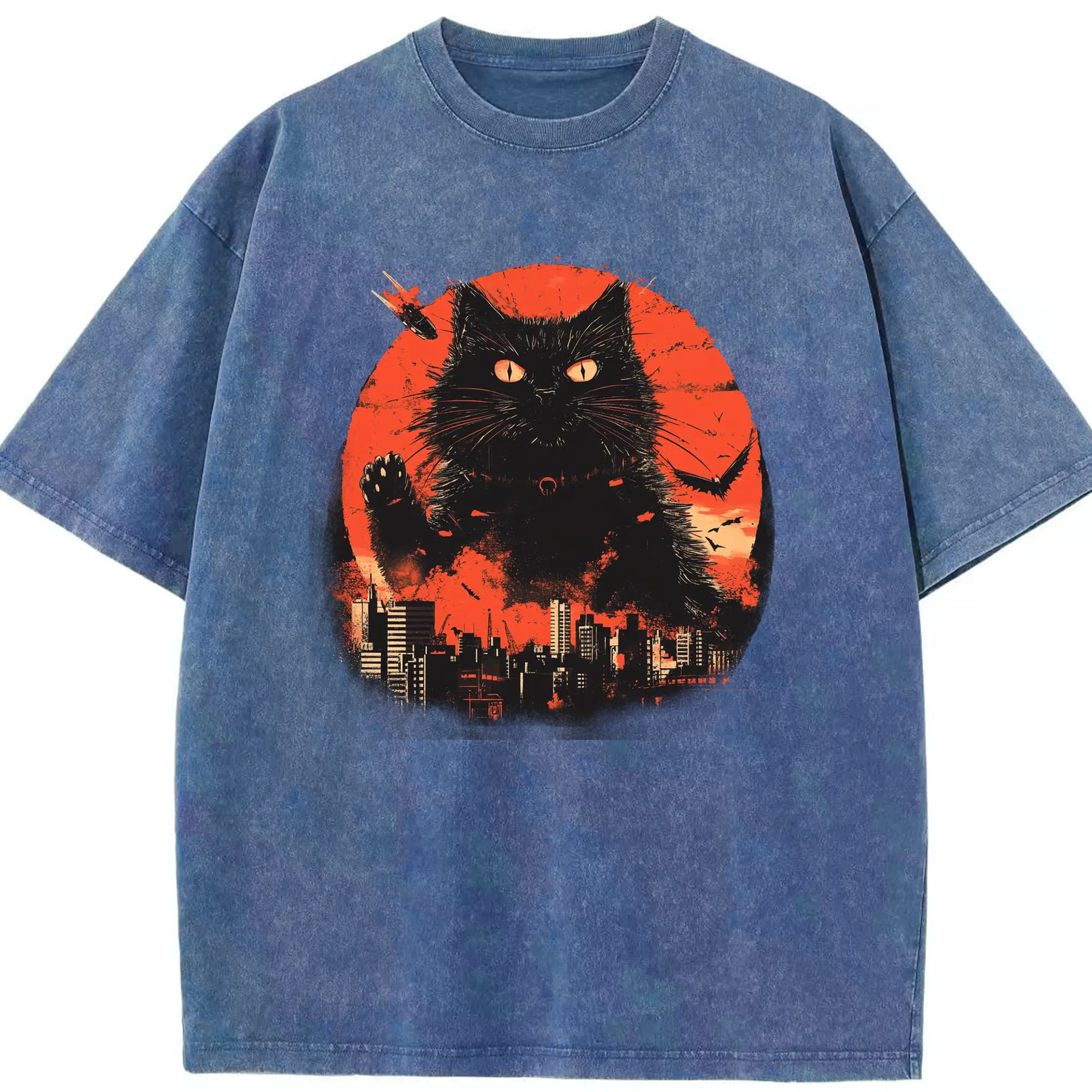 ゴジラ キャットジラ CATZILLA かわいい怪獣 - 綿100% ヴィンテージ風 半袖Tシャツ ・ フロントプリント ・ 柔らか肌触り ・ 通気性 快適 ・ スポーツ カジュアル 外出用