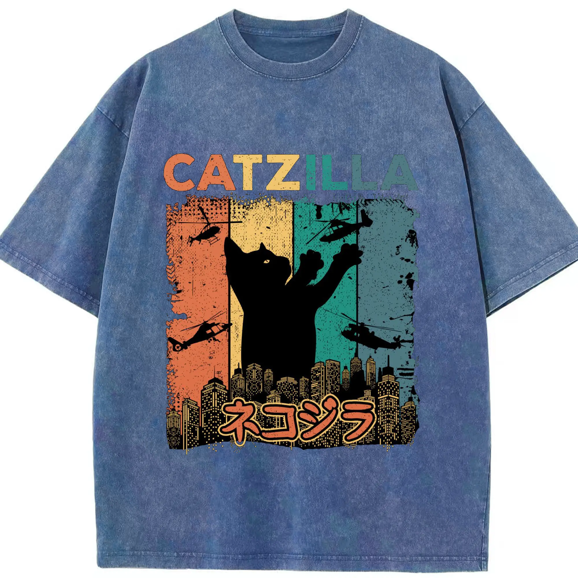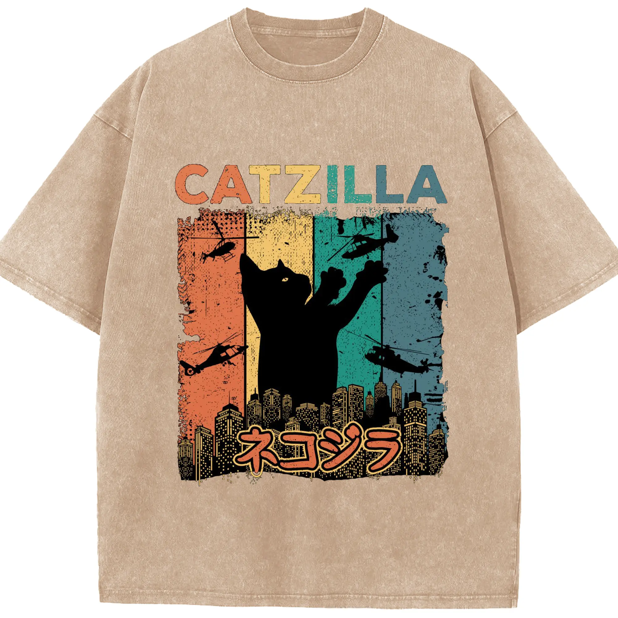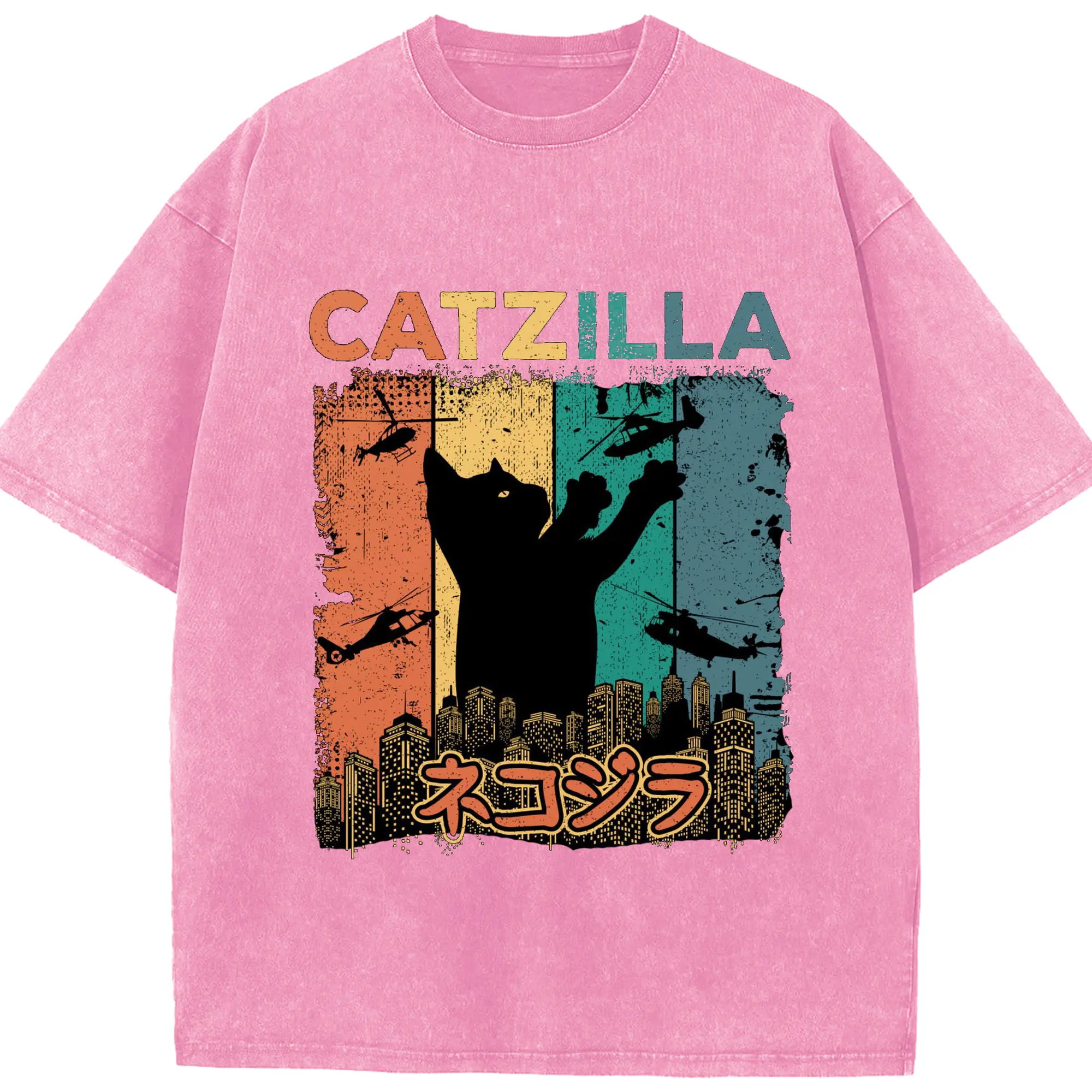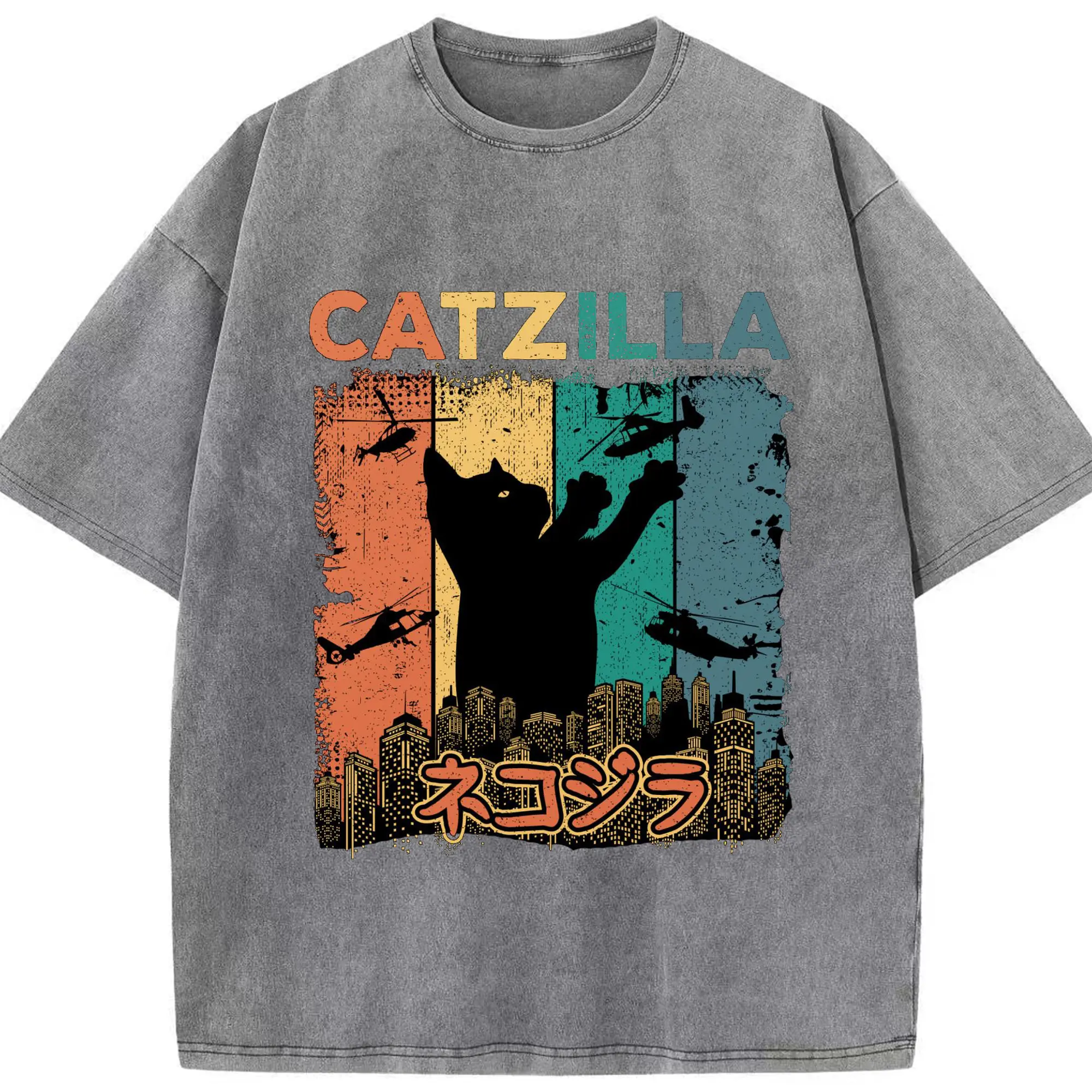 ゴジラ キャットジラ CATZILLA - 綿100% ヴィンテージ風 半袖Tシャツ ・ フロントプリント ・ 柔らか肌触り ・ 通気性 快適 ・ スポーツ カジュアル 外出用