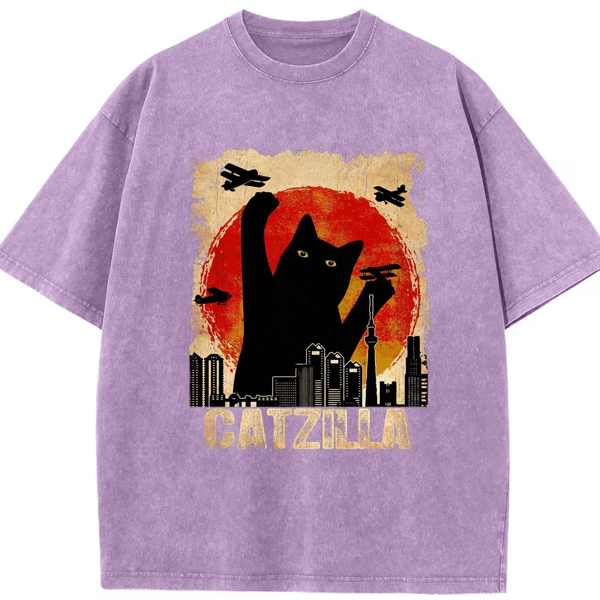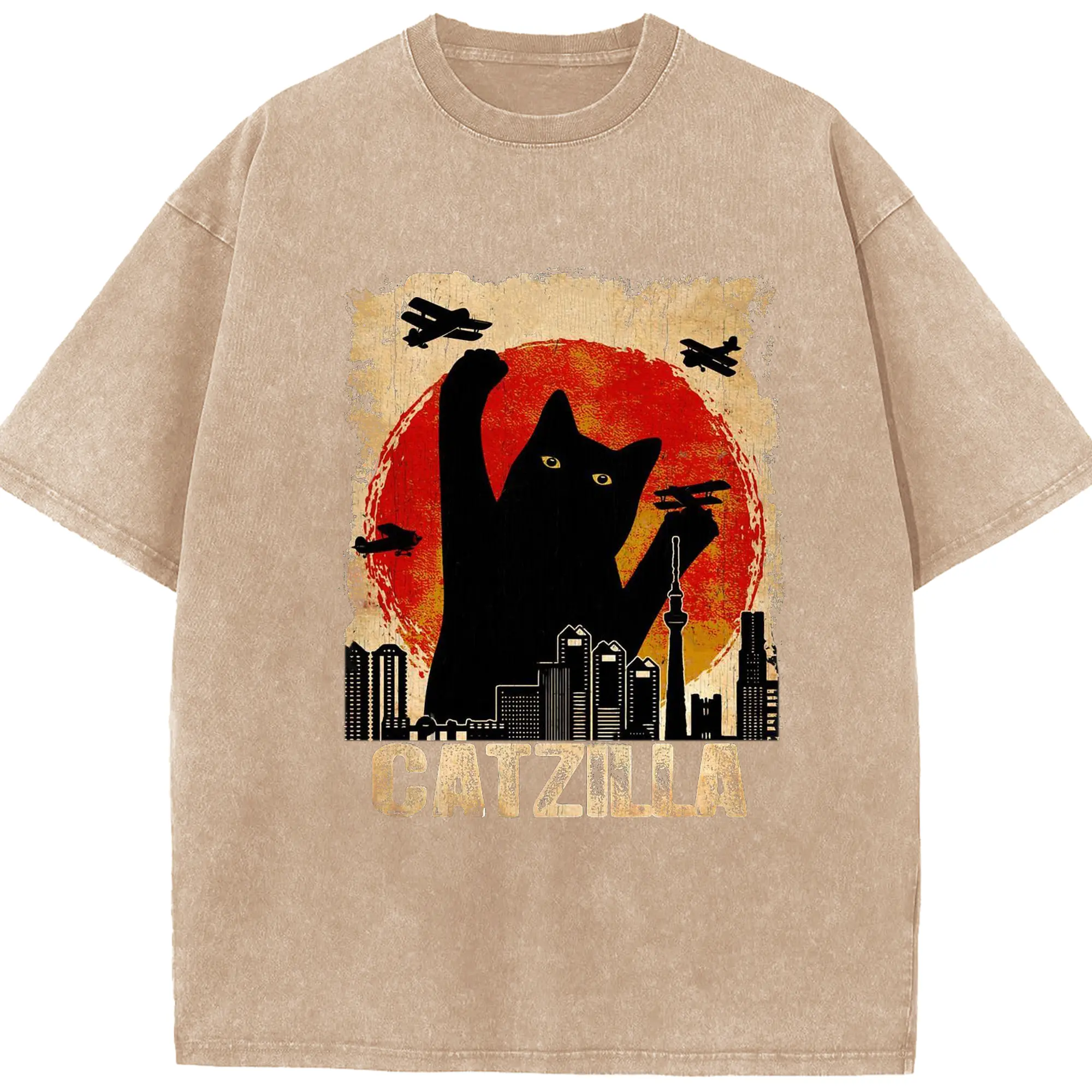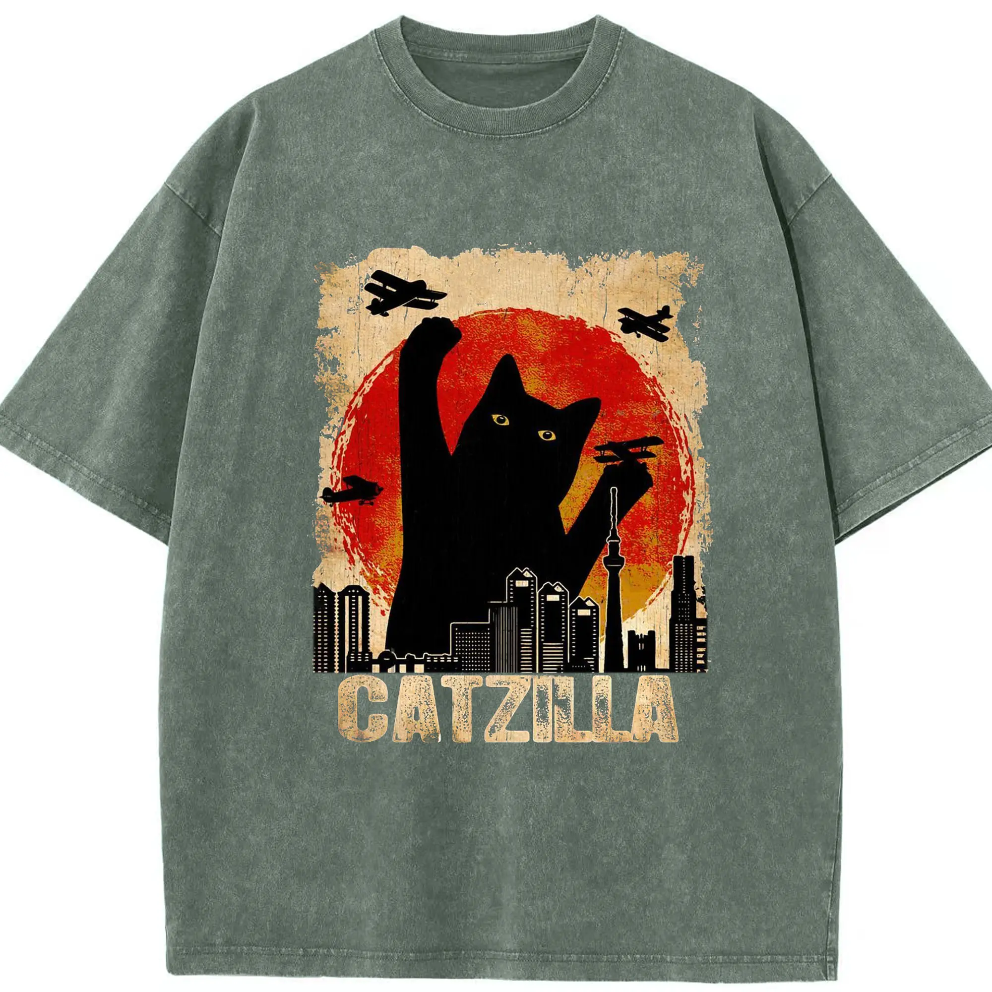 ゴジラ キャットジラ CATZILLA - 綿100% ヴィンテージ風 半袖Tシャツ ・ フロントプリント ・ 柔らか肌触り ・ 通気性 快適 ・ スポーツ カジュアル 外出用
