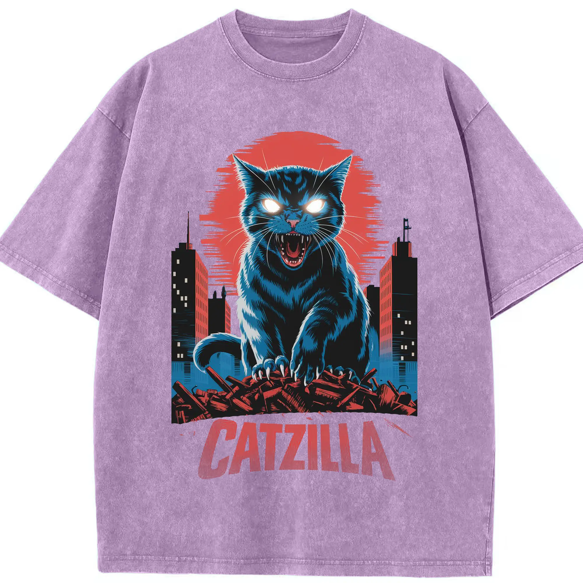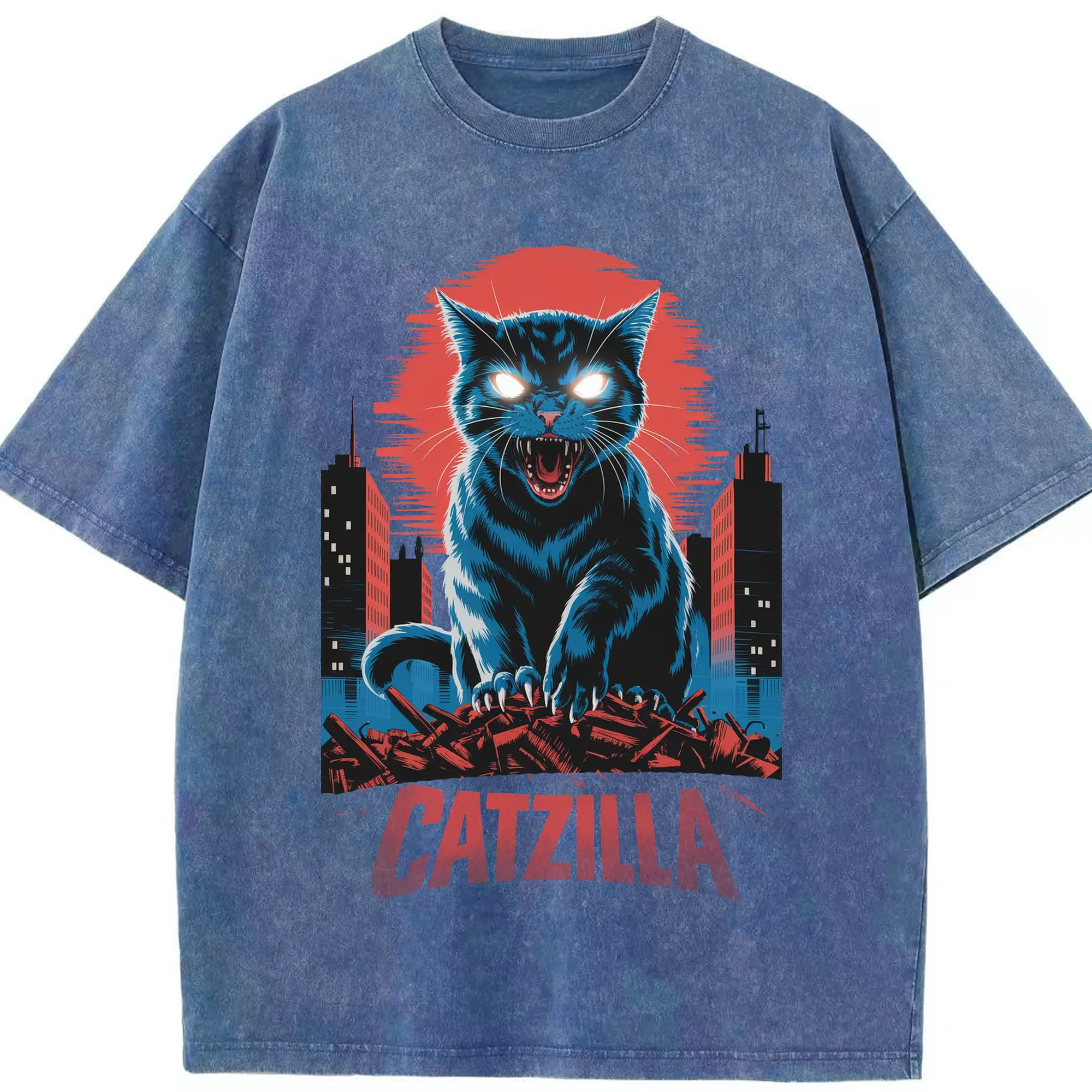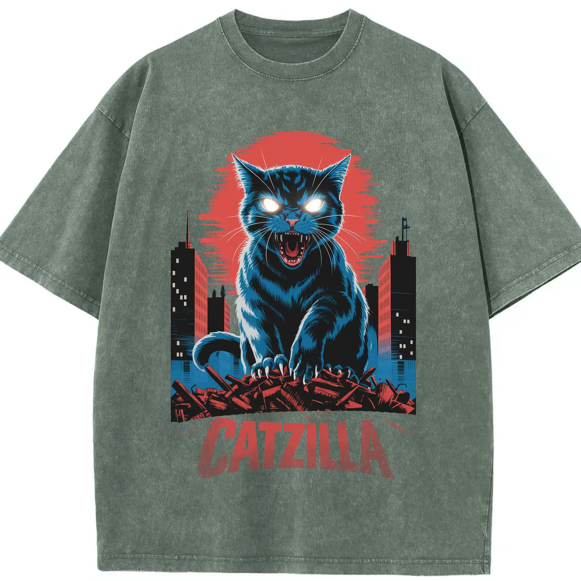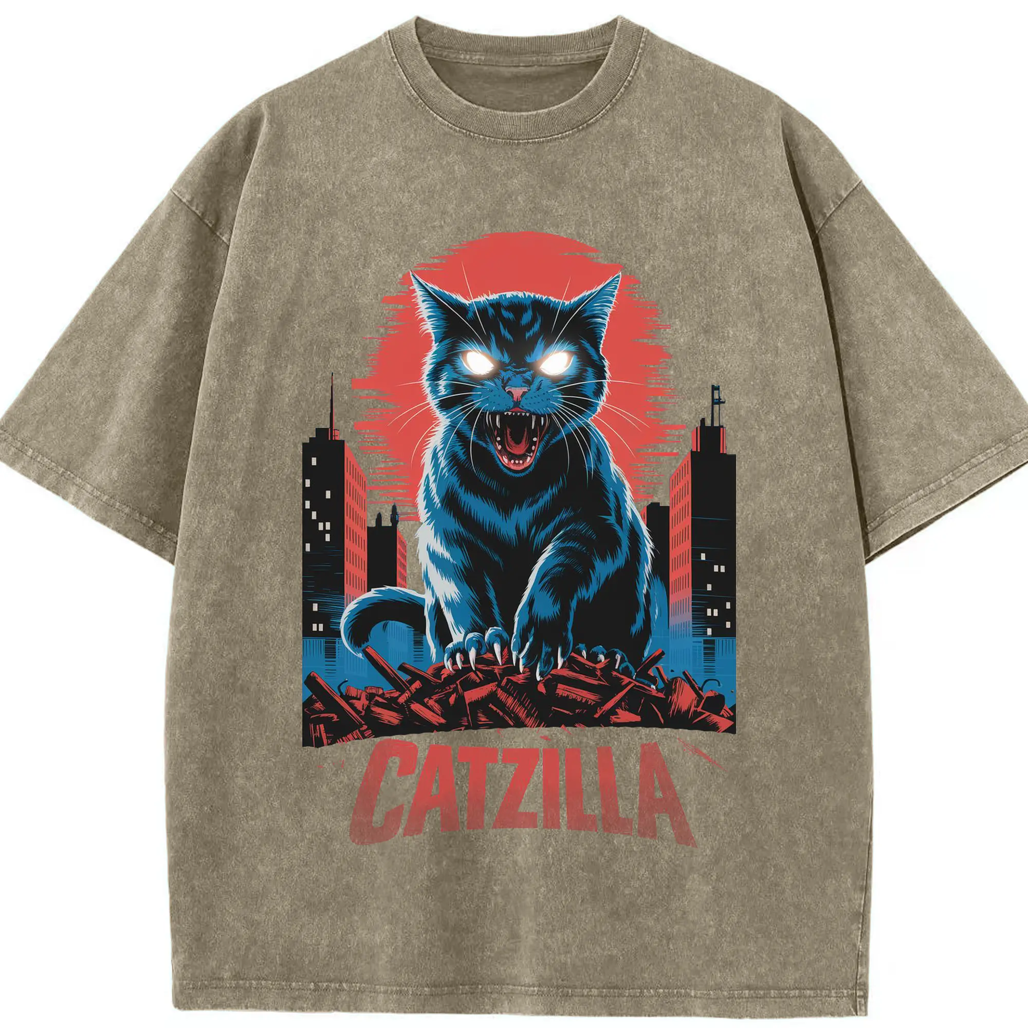 ゴジラ キャットジラ CATZILLA - 綿100% ヴィンテージ風 半袖Tシャツ ・ フロントプリント ・ 柔らか肌触り ・ 通気性 快適 ・ スポーツ カジュアル 外出用