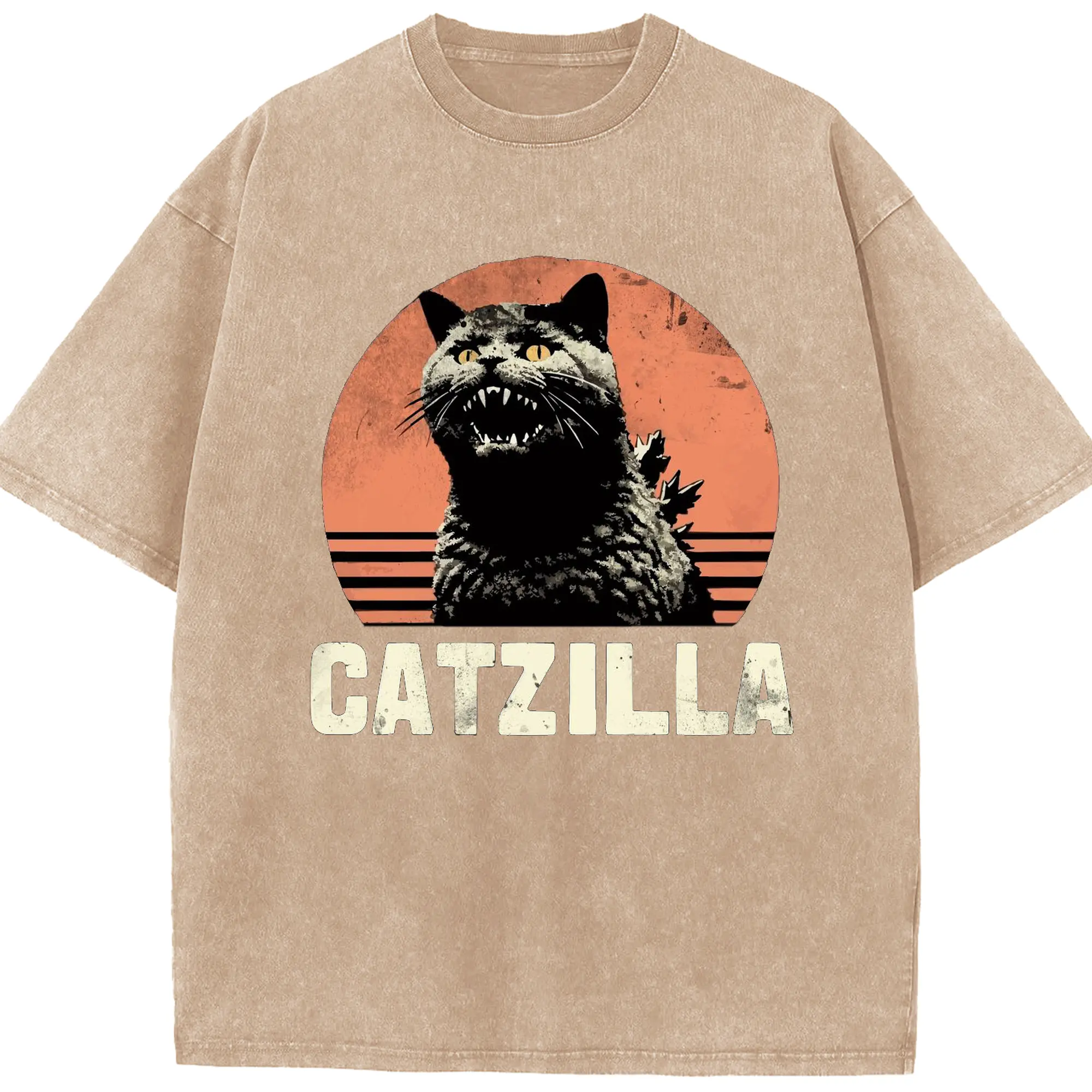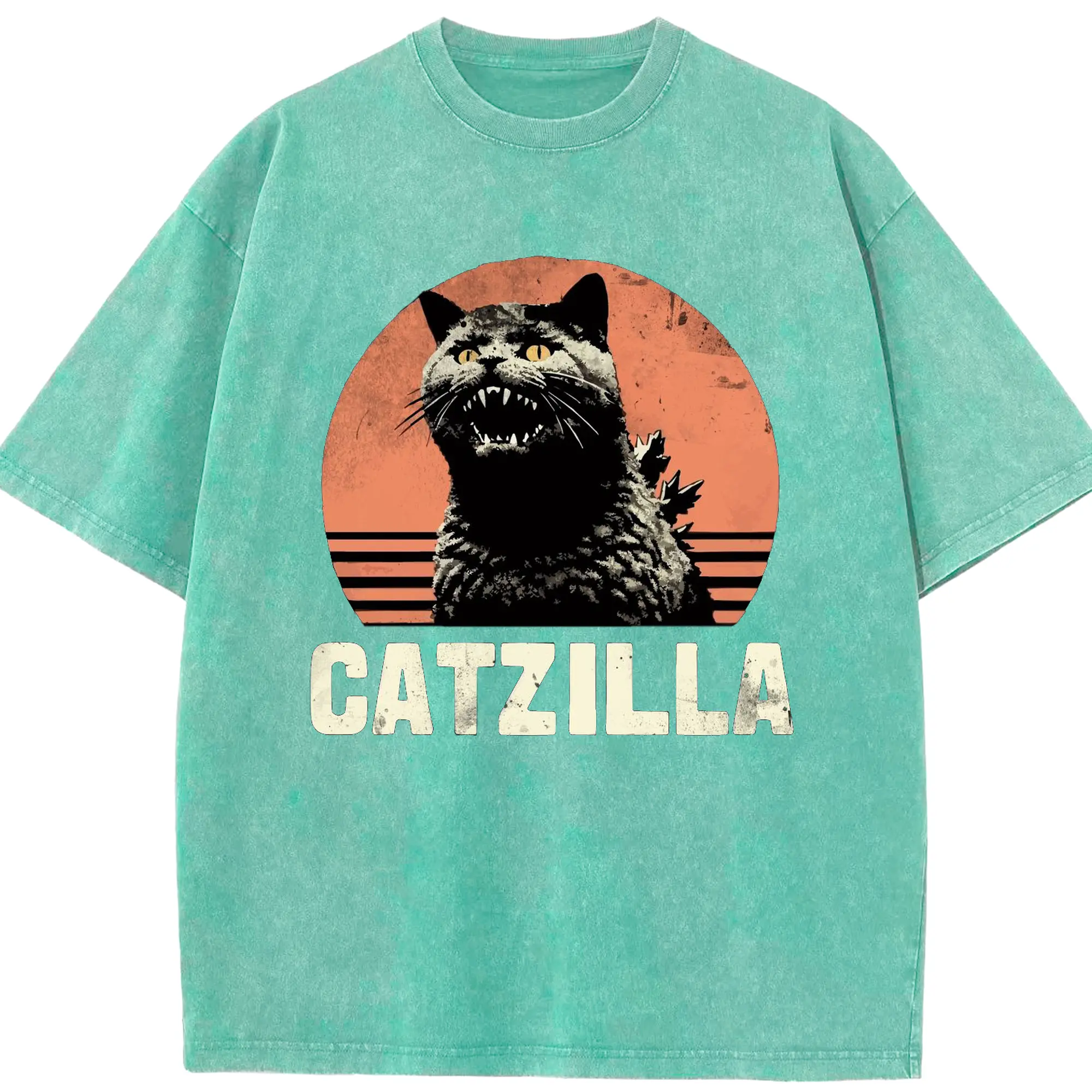 ゴジラ キャットジラ CATZILLA - 綿100% ヴィンテージ風 半袖Tシャツ ・ フロントプリント ・ 柔らか肌触り ・ 通気性 快適 ・ スポーツ カジュアル 外出用