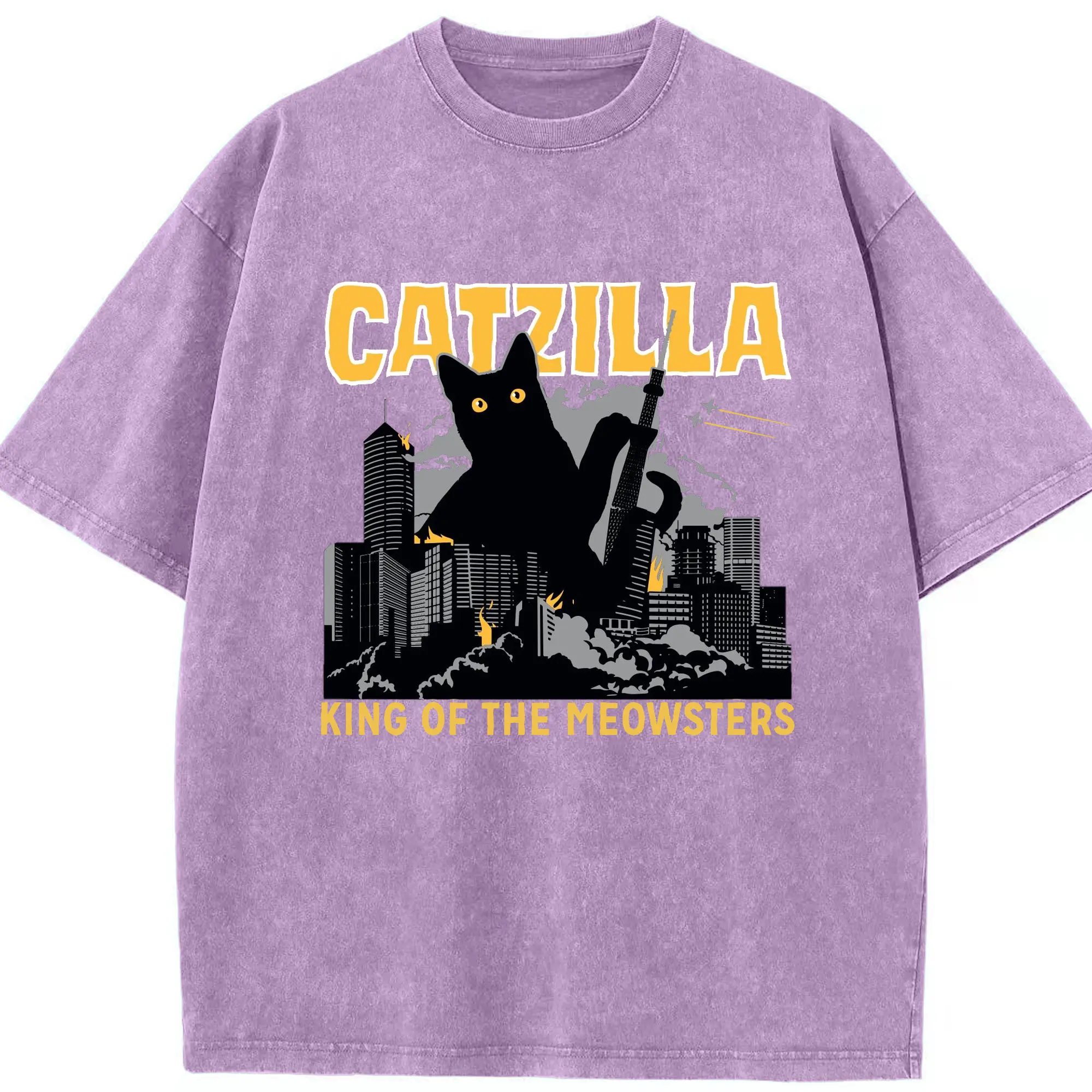 ゴジラ キャットジラ CATZILLA - 綿100% ヴィンテージ風 半袖Tシャツ ・ フロントプリント ・ 柔らか肌触り ・ 通気性 快適 ・ スポーツ カジュアル 外出用
