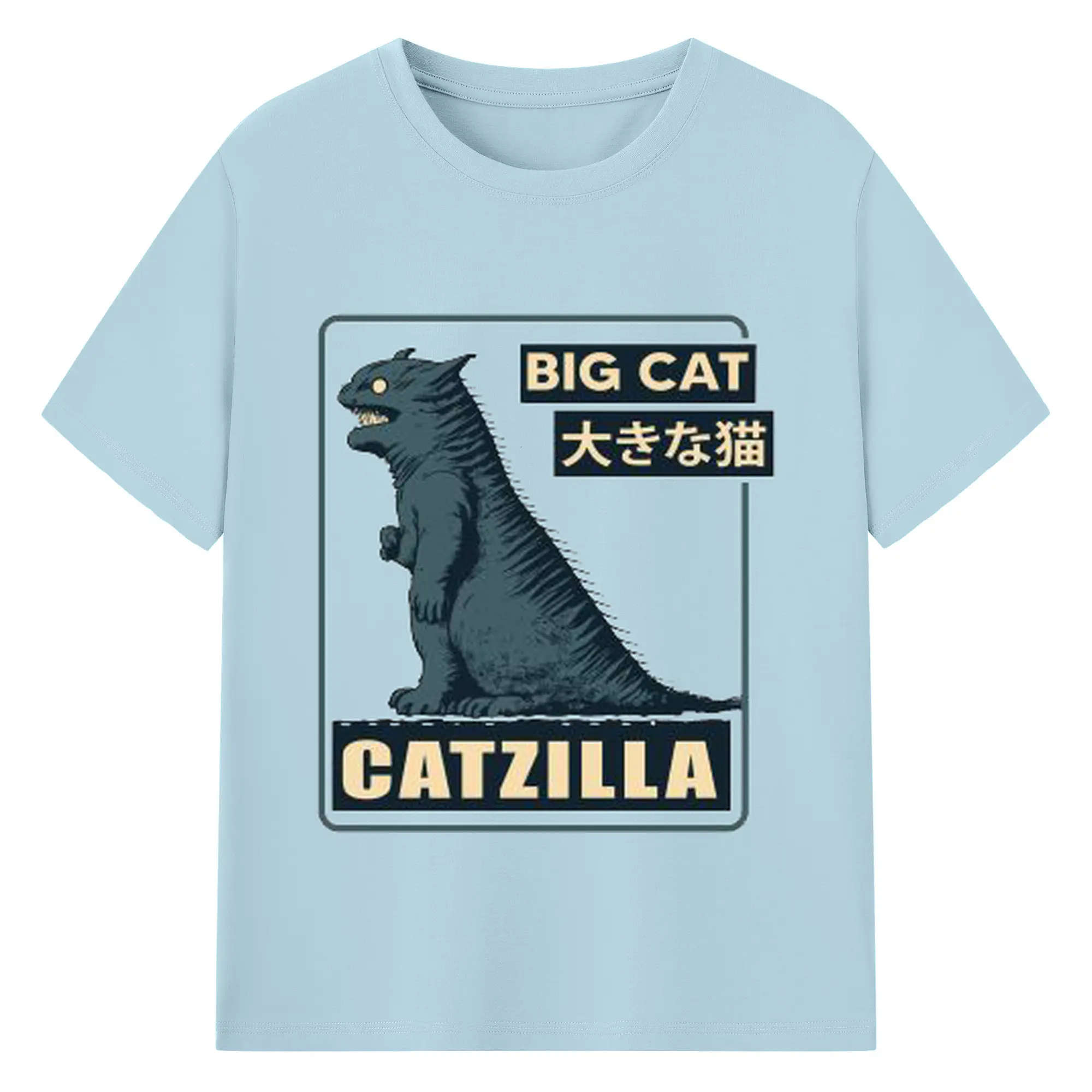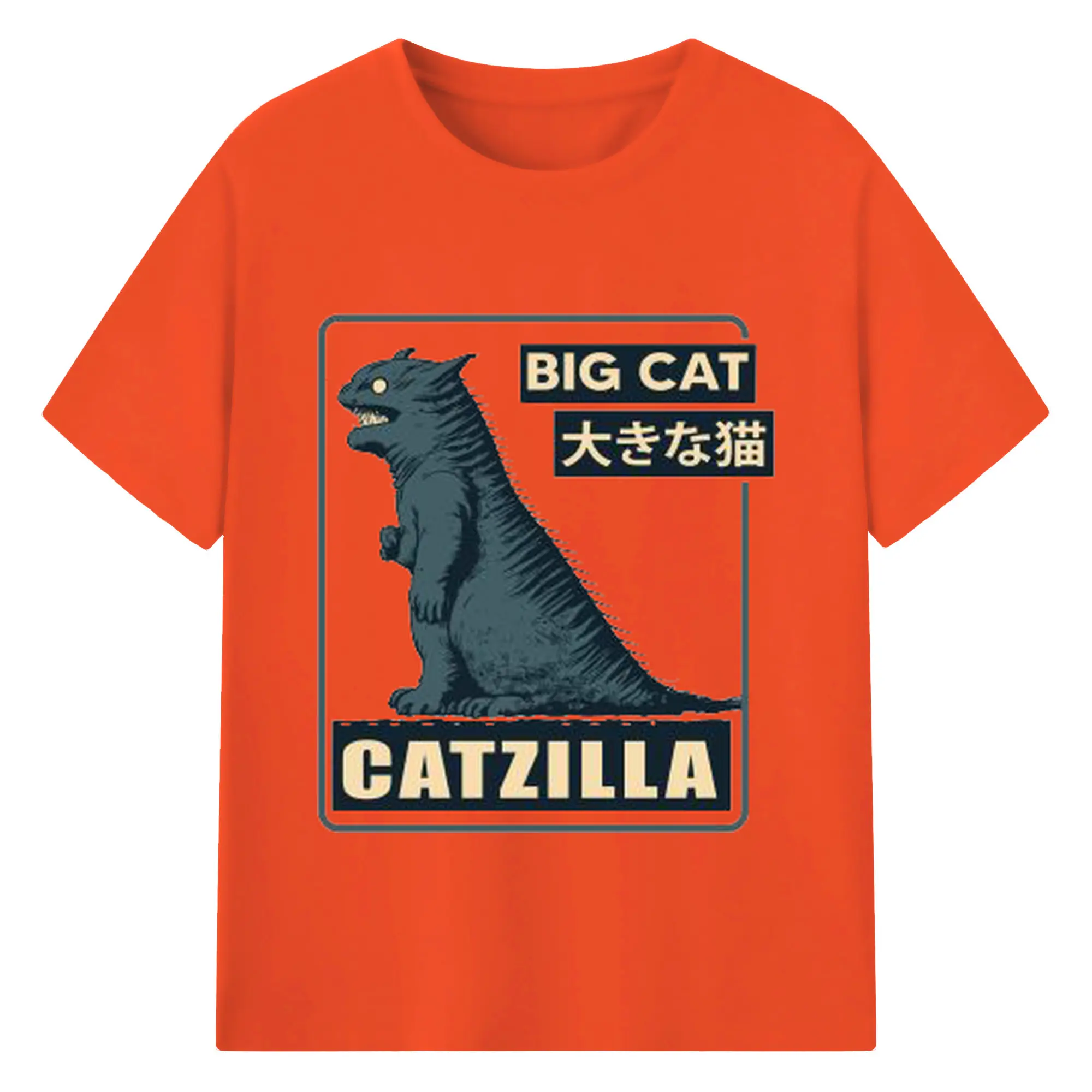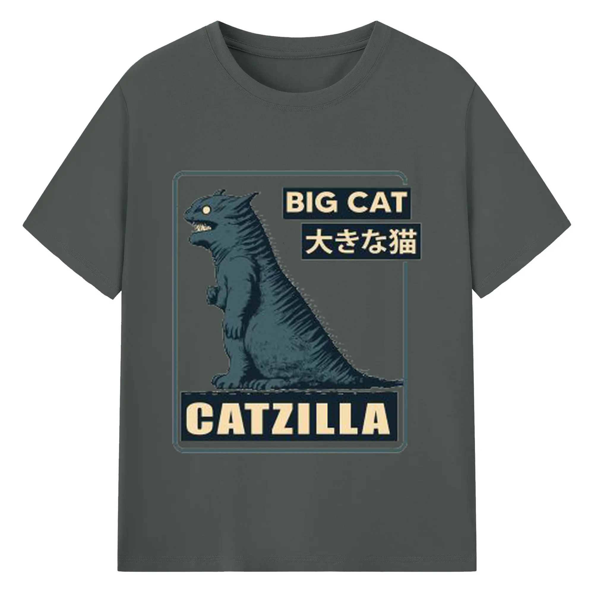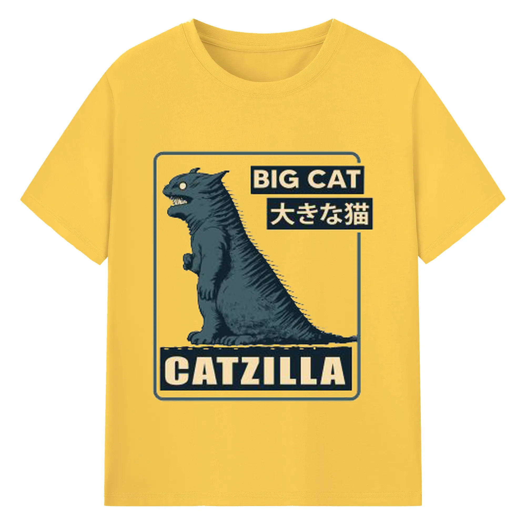 ゴジラ キャットジラ CATZILLA 怪獣ねこ - 綿100% 半袖Tシャツ ・ フロントプリント ・ 快適 通気性 ・ 日常使い 散歩 スポーツ用