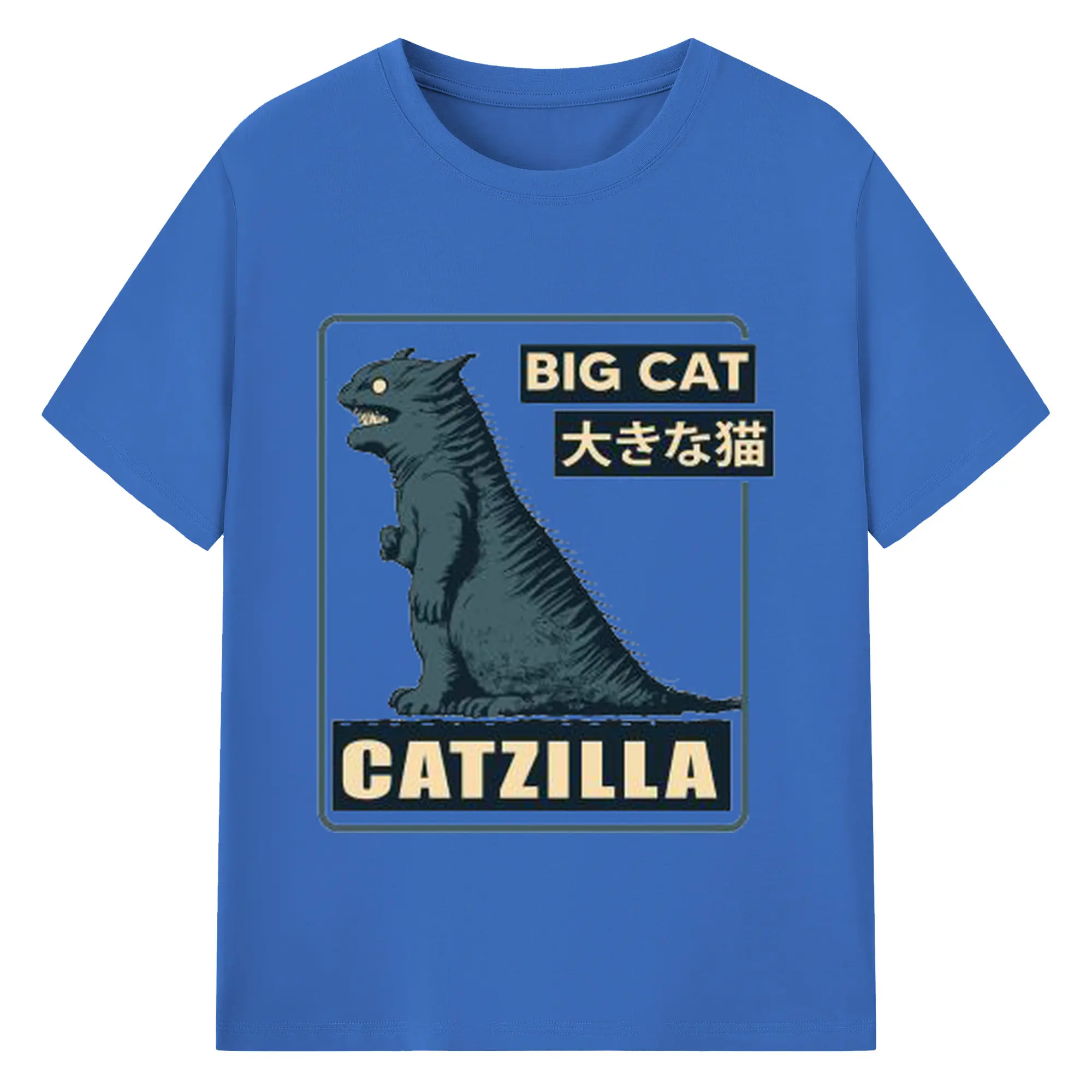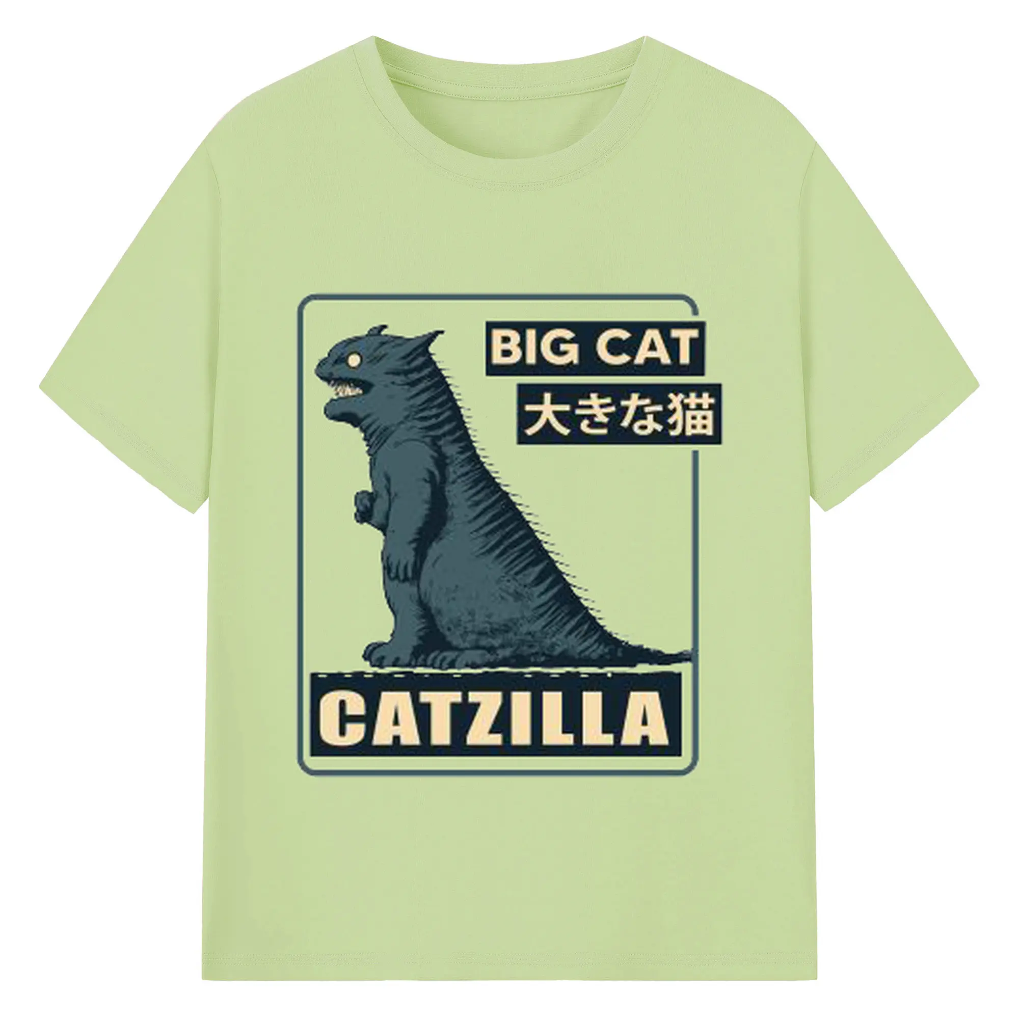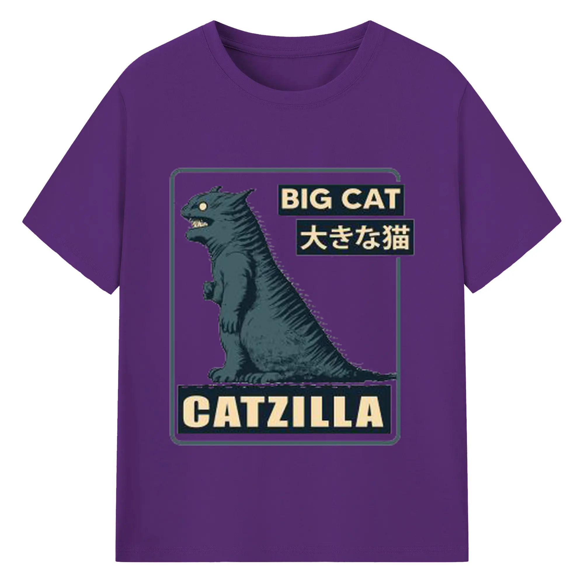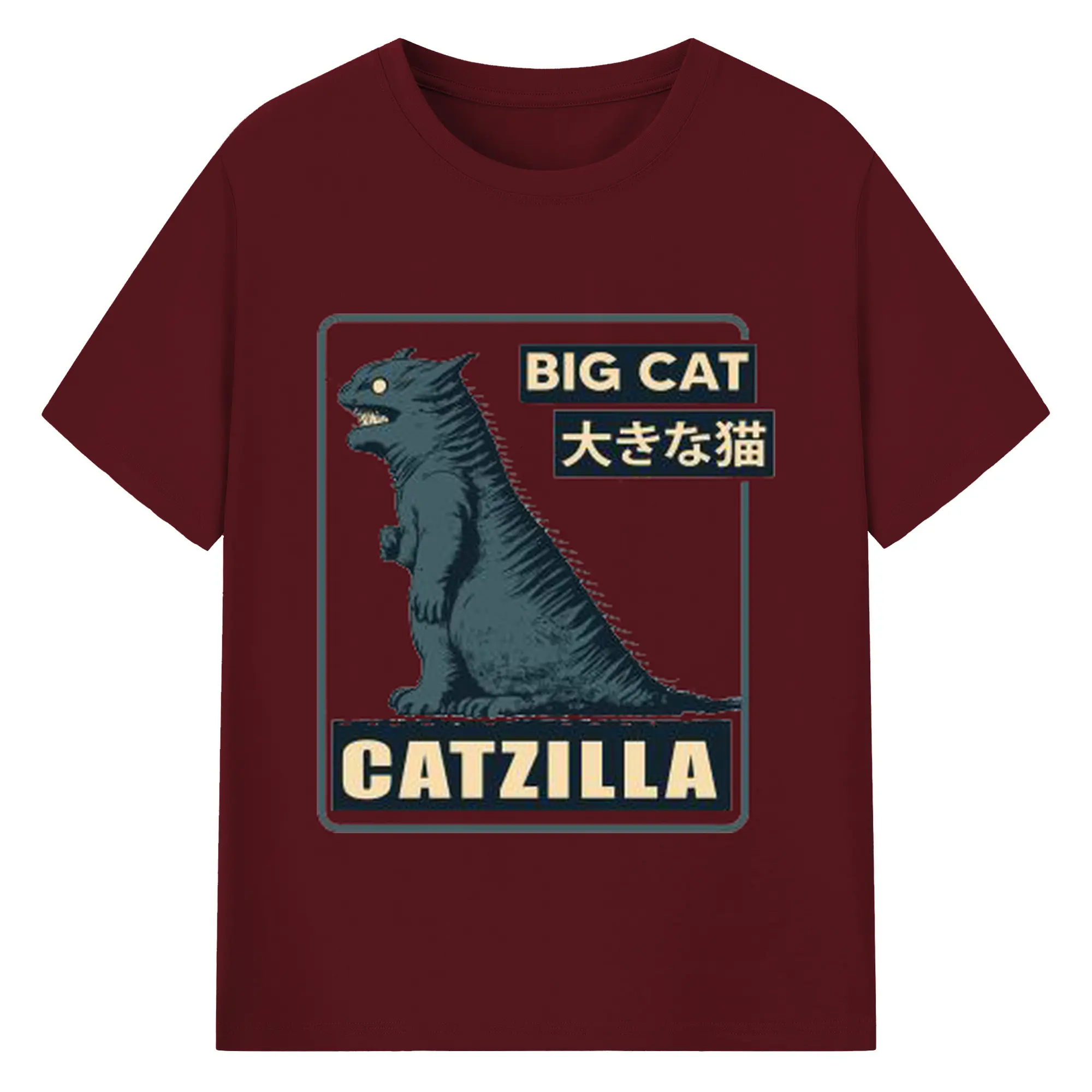 ゴジラ キャットジラ CATZILLA 怪獣ねこ - 綿100% 半袖Tシャツ ・ フロントプリント ・ 快適 通気性 ・ 日常使い 散歩 スポーツ用