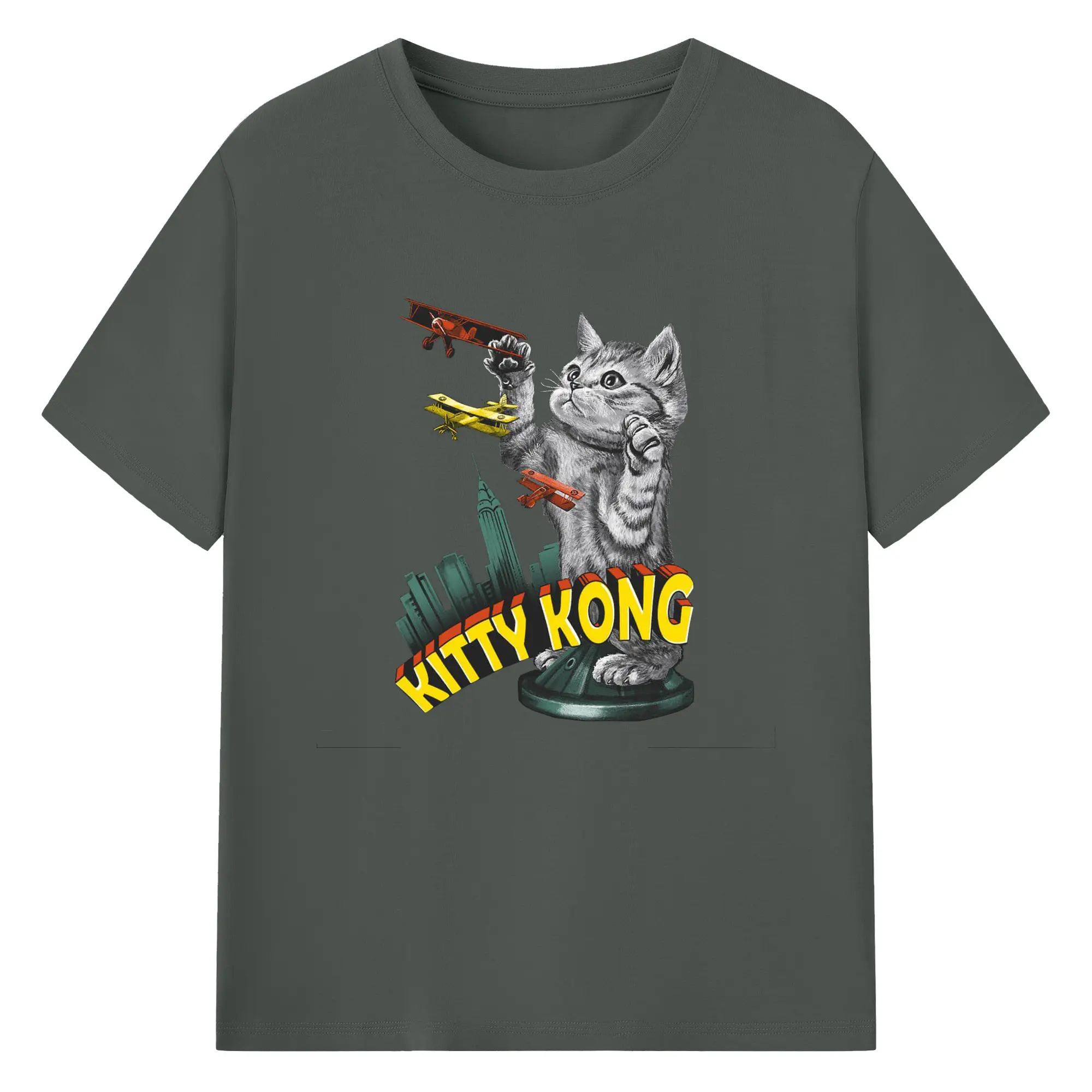 ゴジラ キャットジラ CATZILLA 怪獣ねこ - 綿100% 半袖Tシャツ ・ フロントプリント ・ 快適 通気性 ・ 日常使い 散歩 スポーツ用