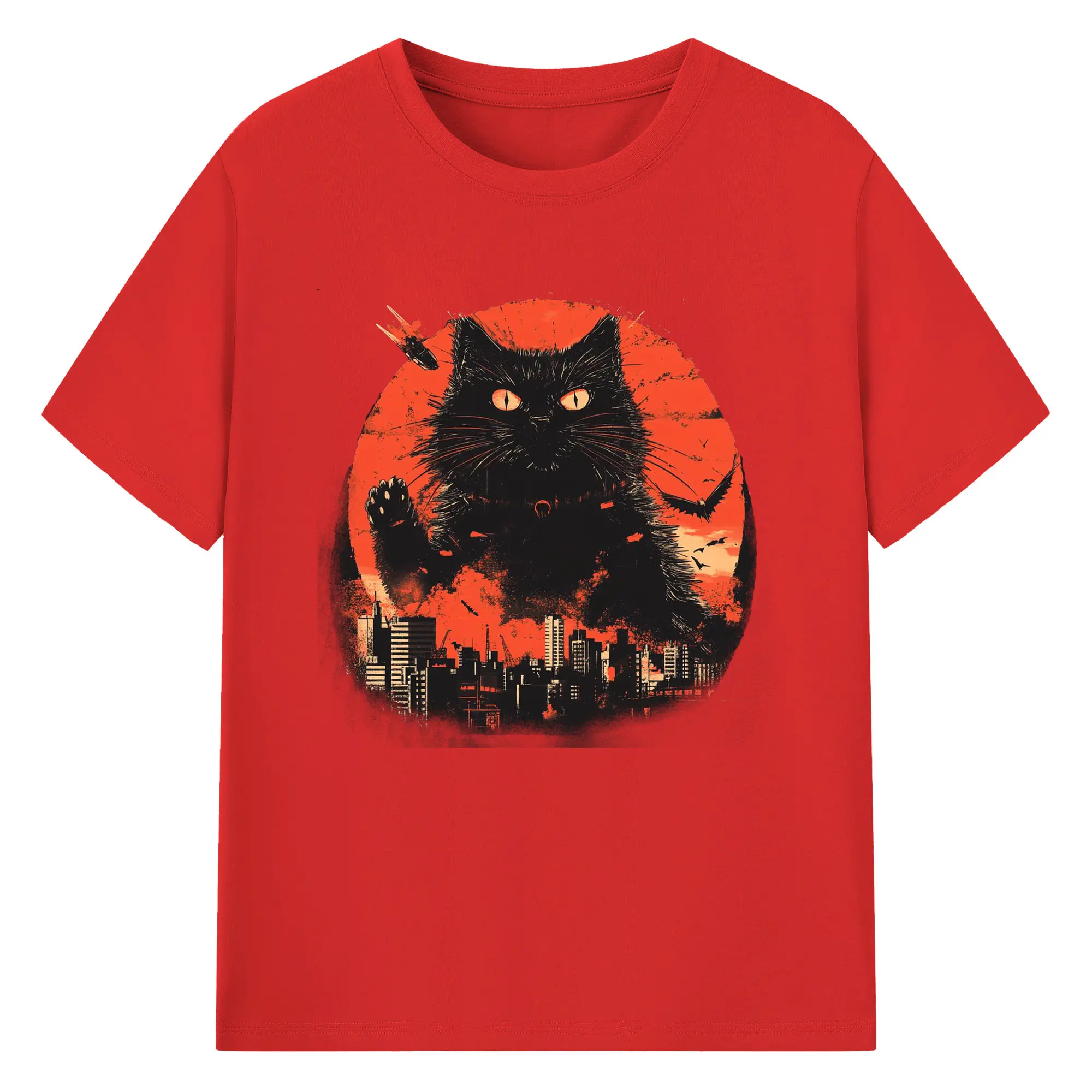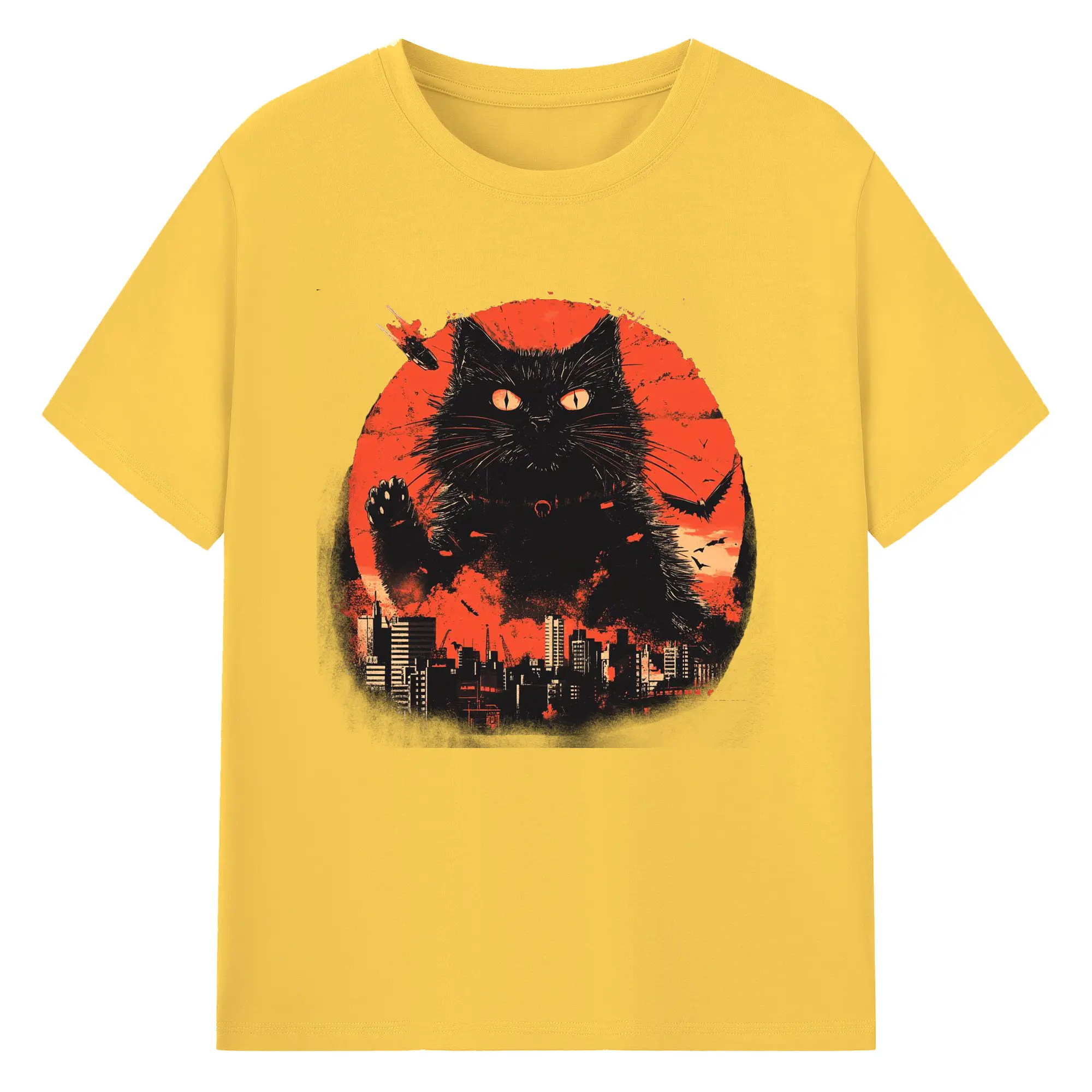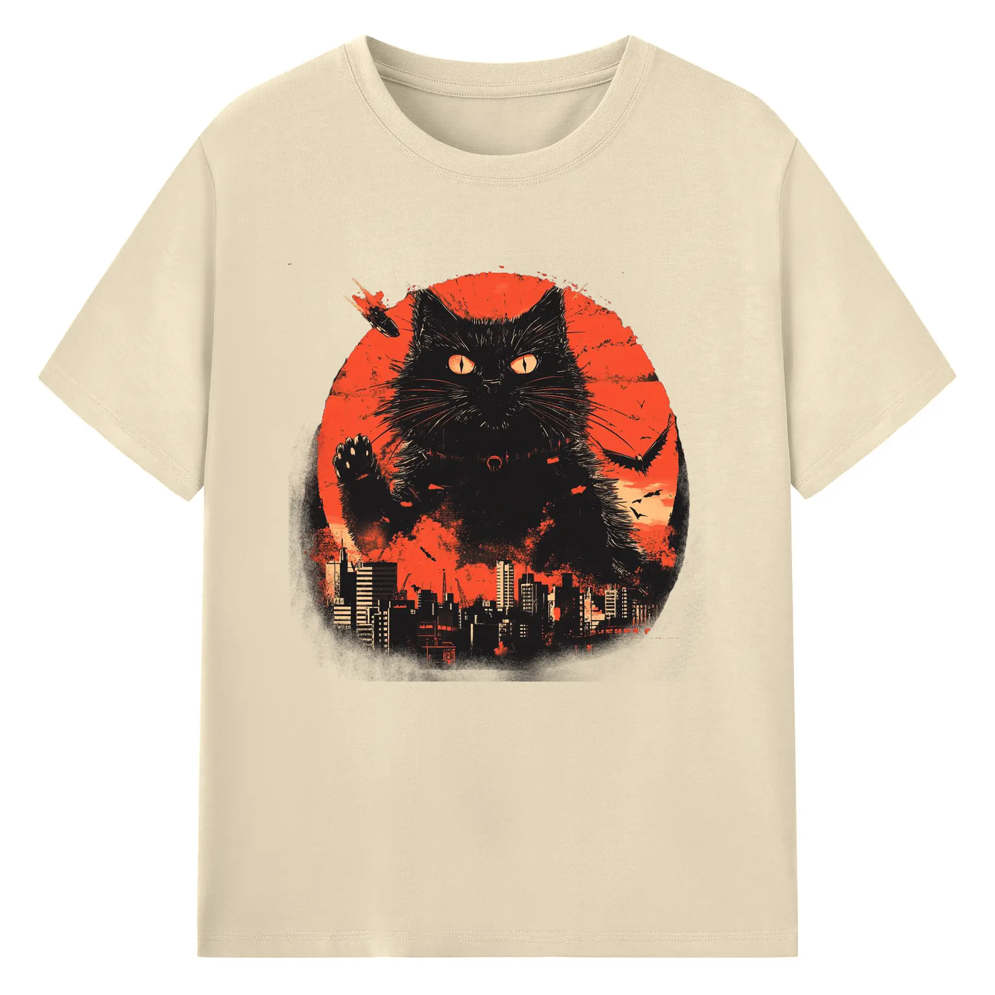ゴジラ キャットジラ CATZILLA かわいい怪獣 - 綿100% 半袖Tシャツ ・ フロントプリント ・ 快適 通気性 ・ 日常使い 散歩 スポーツ用