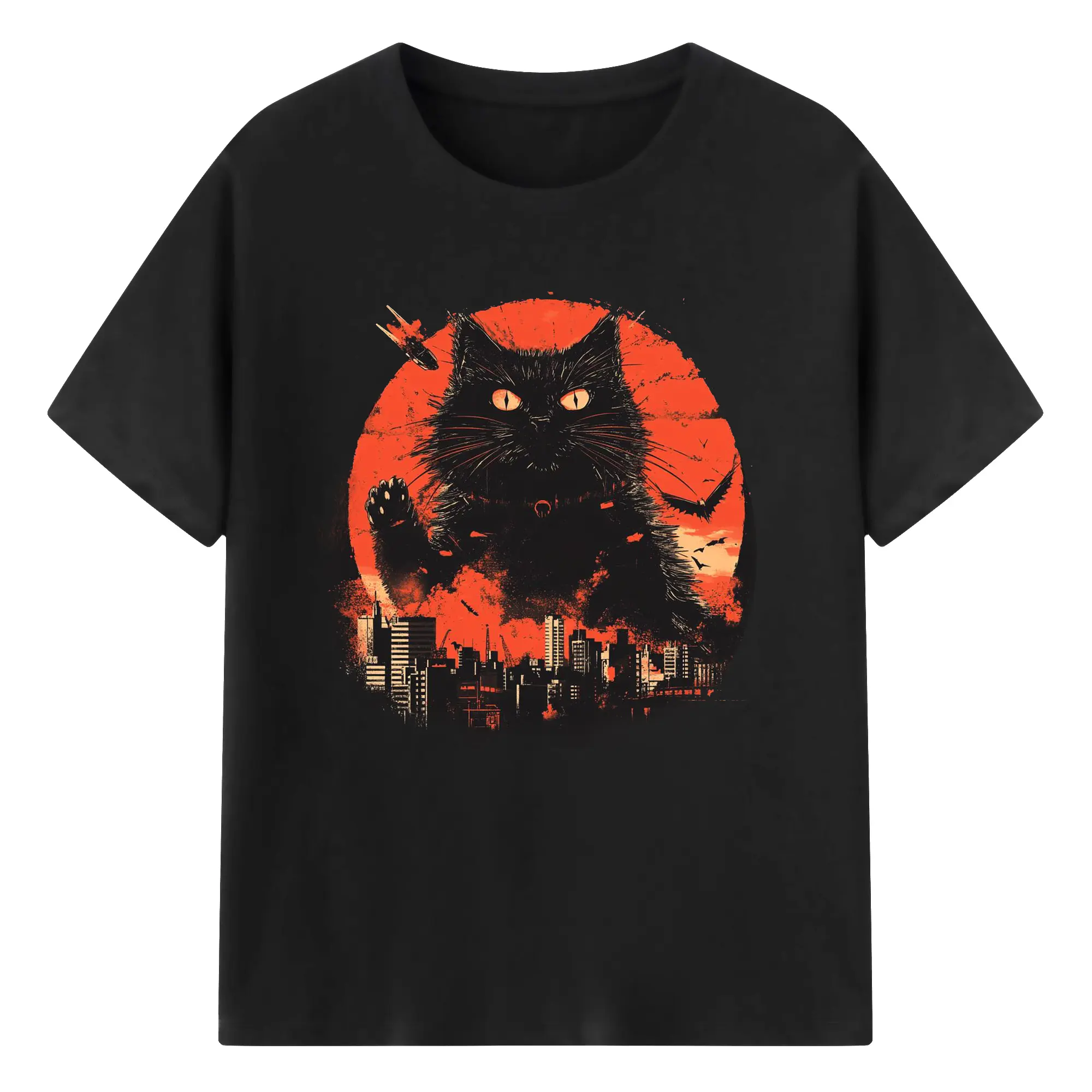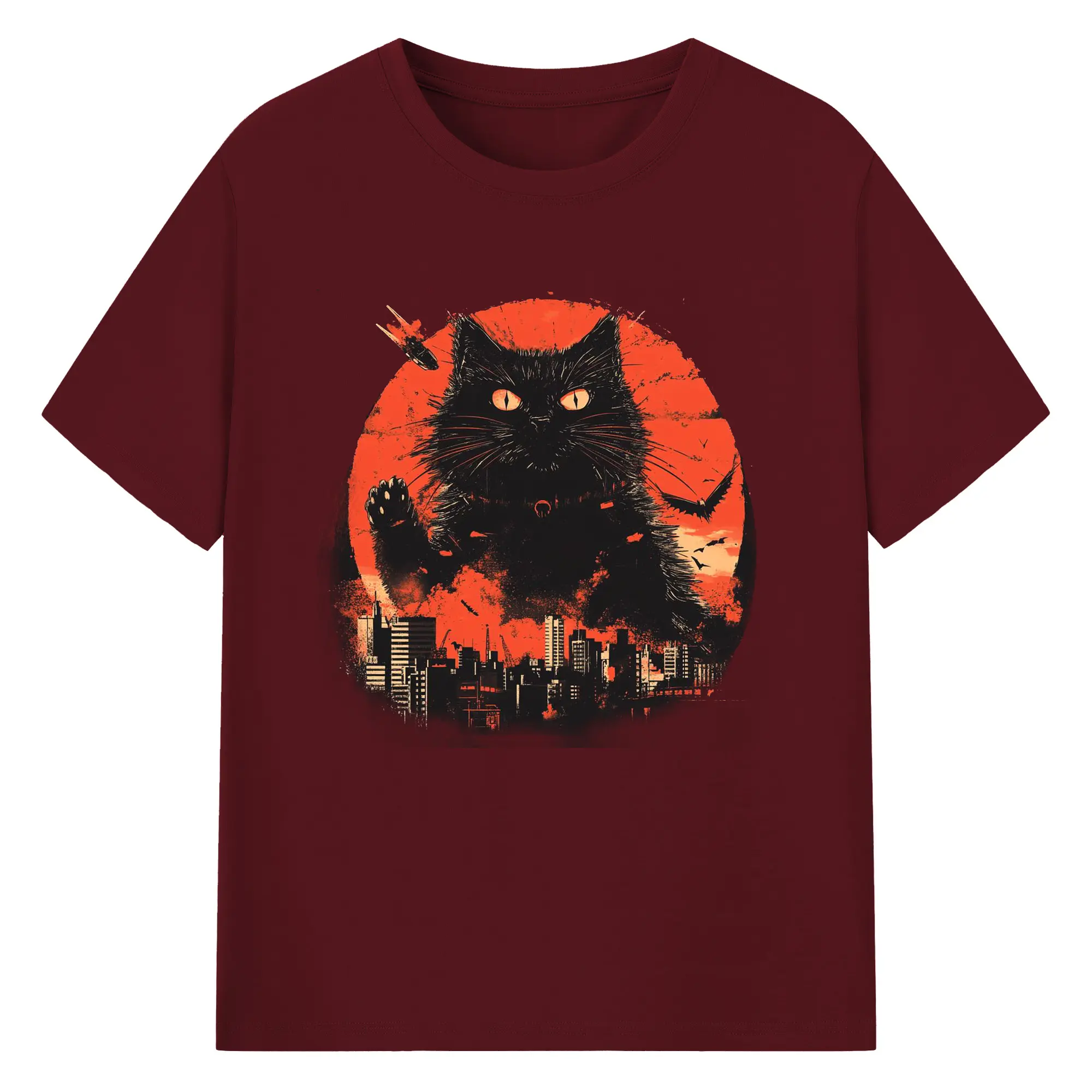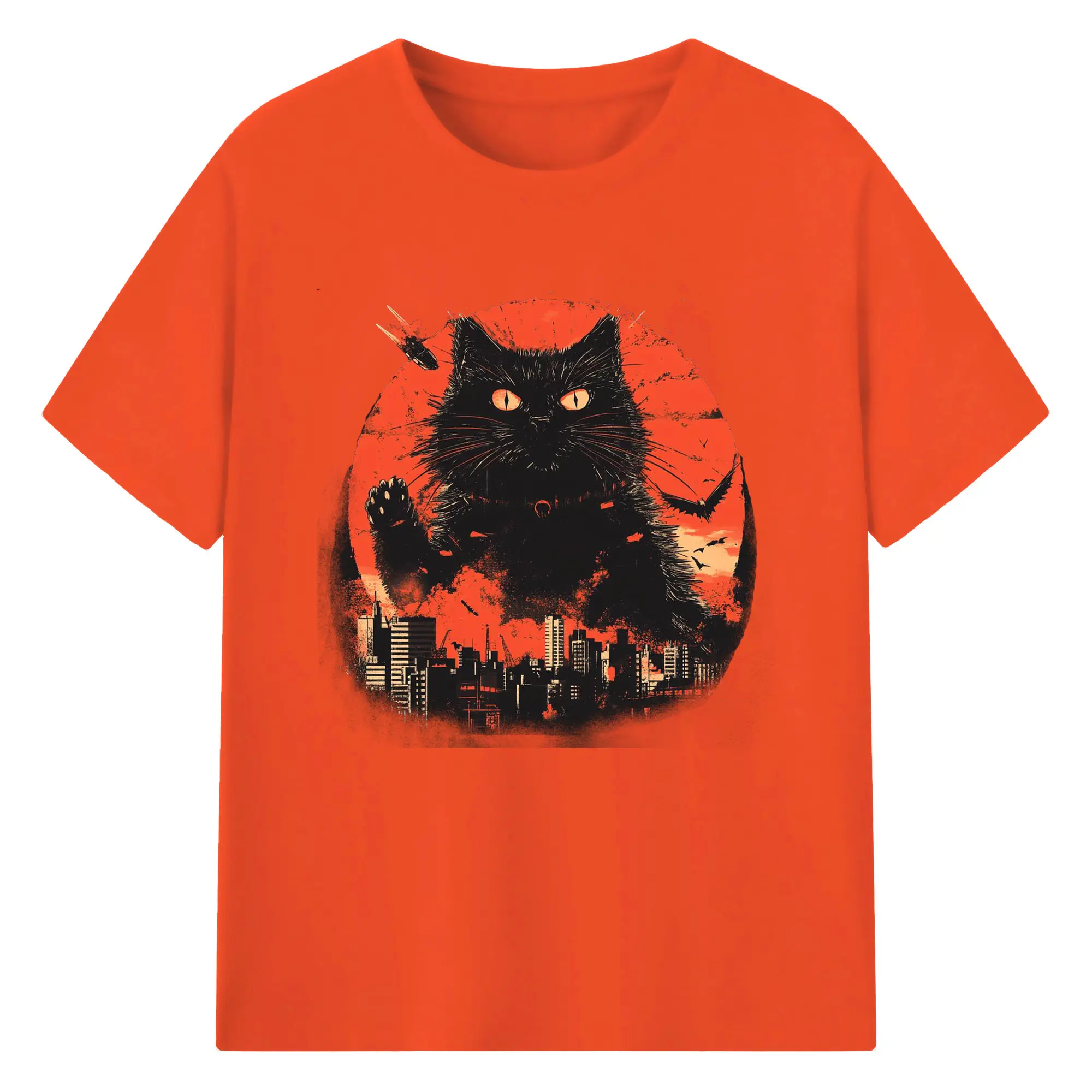 ゴジラ キャットジラ CATZILLA かわいい怪獣 - 綿100% 半袖Tシャツ ・ フロントプリント ・ 快適 通気性 ・ 日常使い 散歩 スポーツ用