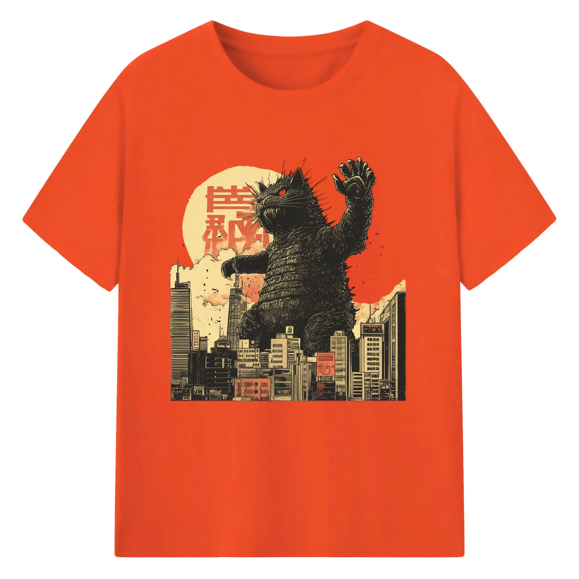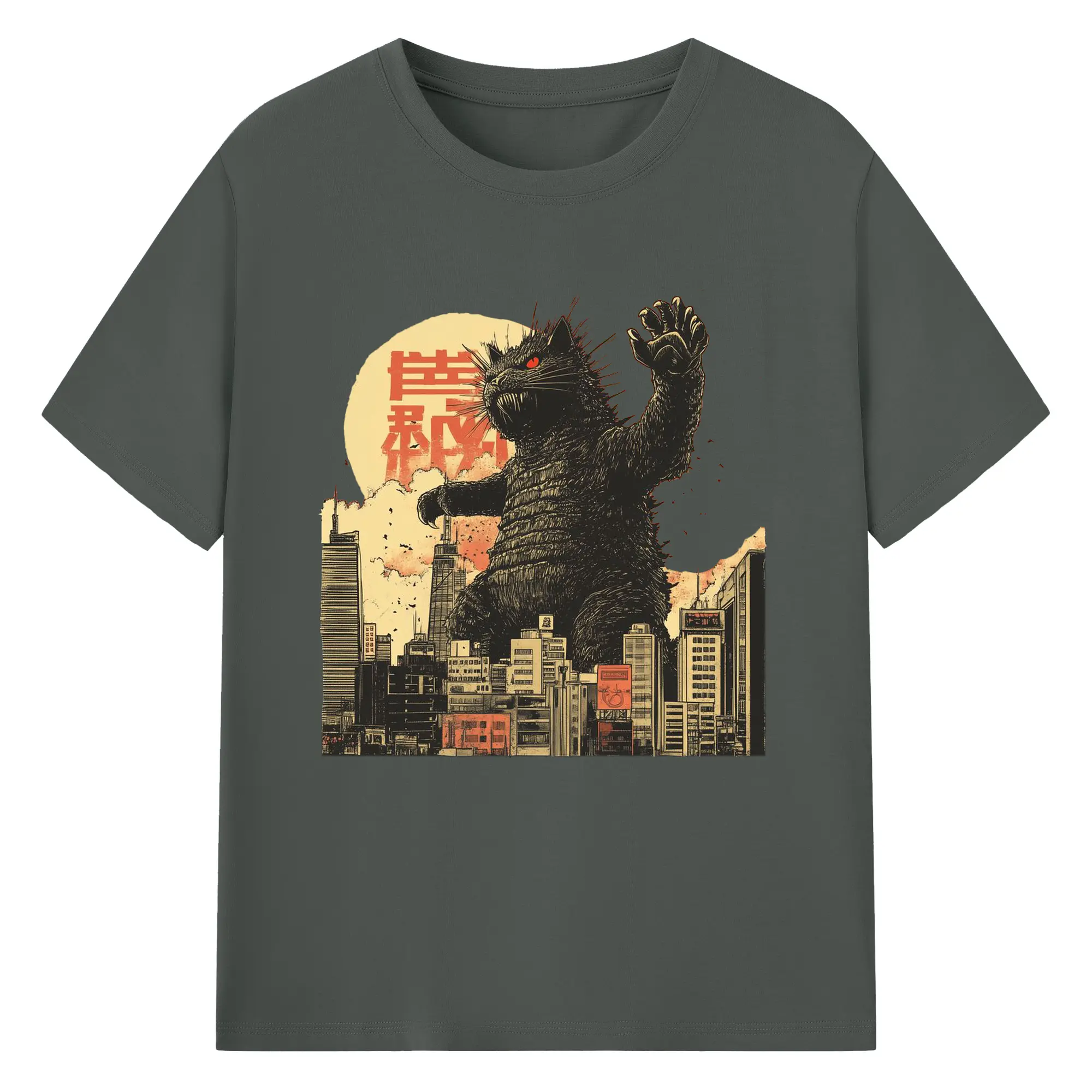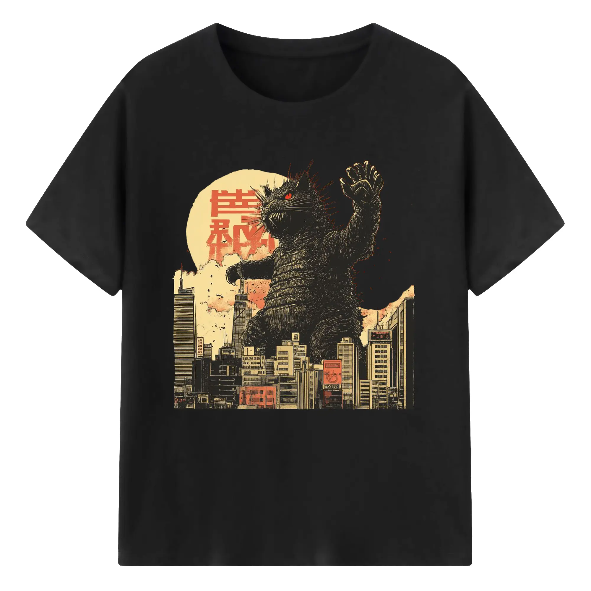 ゴジラ キャットジラ CATZILLA - 綿100% 半袖Tシャツ ・ フロントプリント ・ 快適 通気性 ・ 日常使い 散歩 スポーツ用