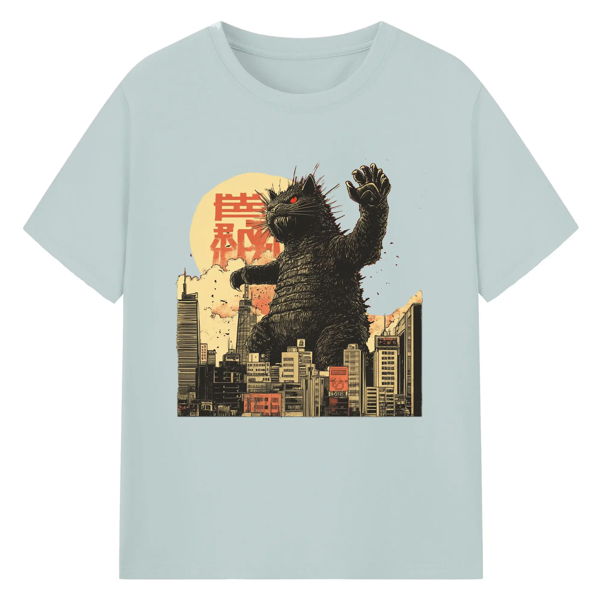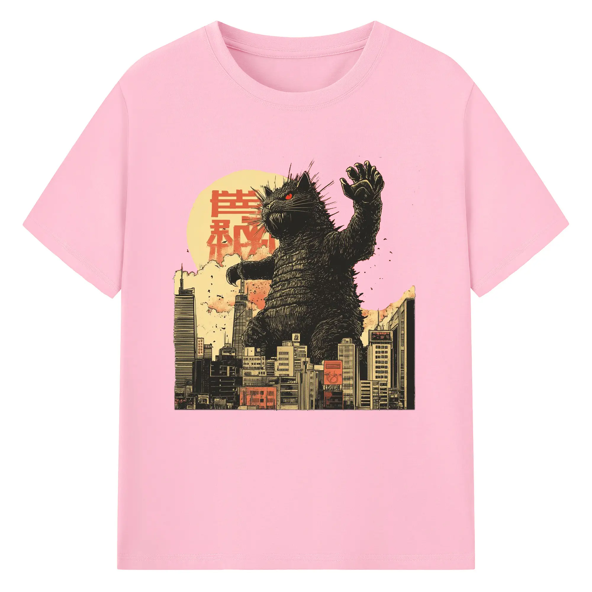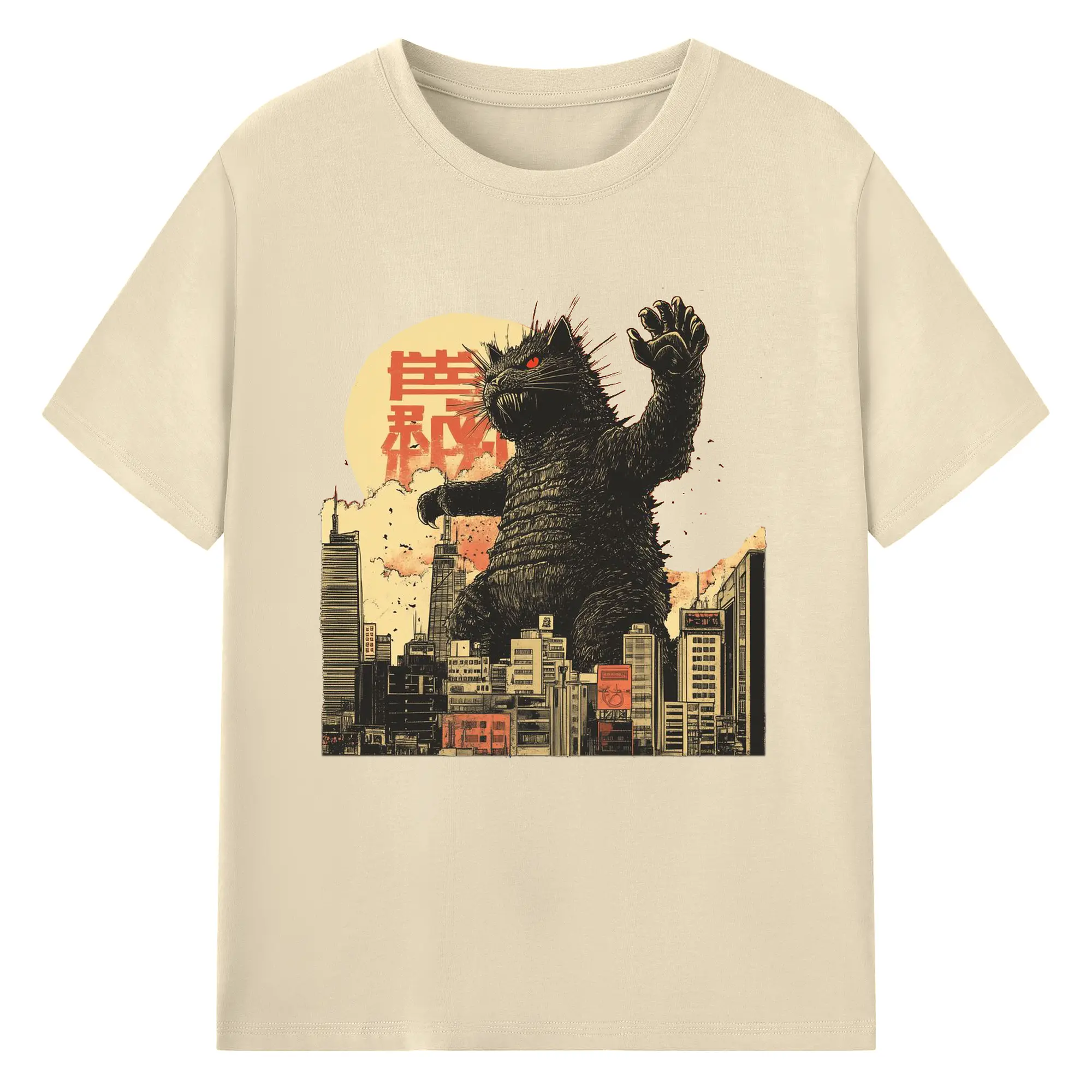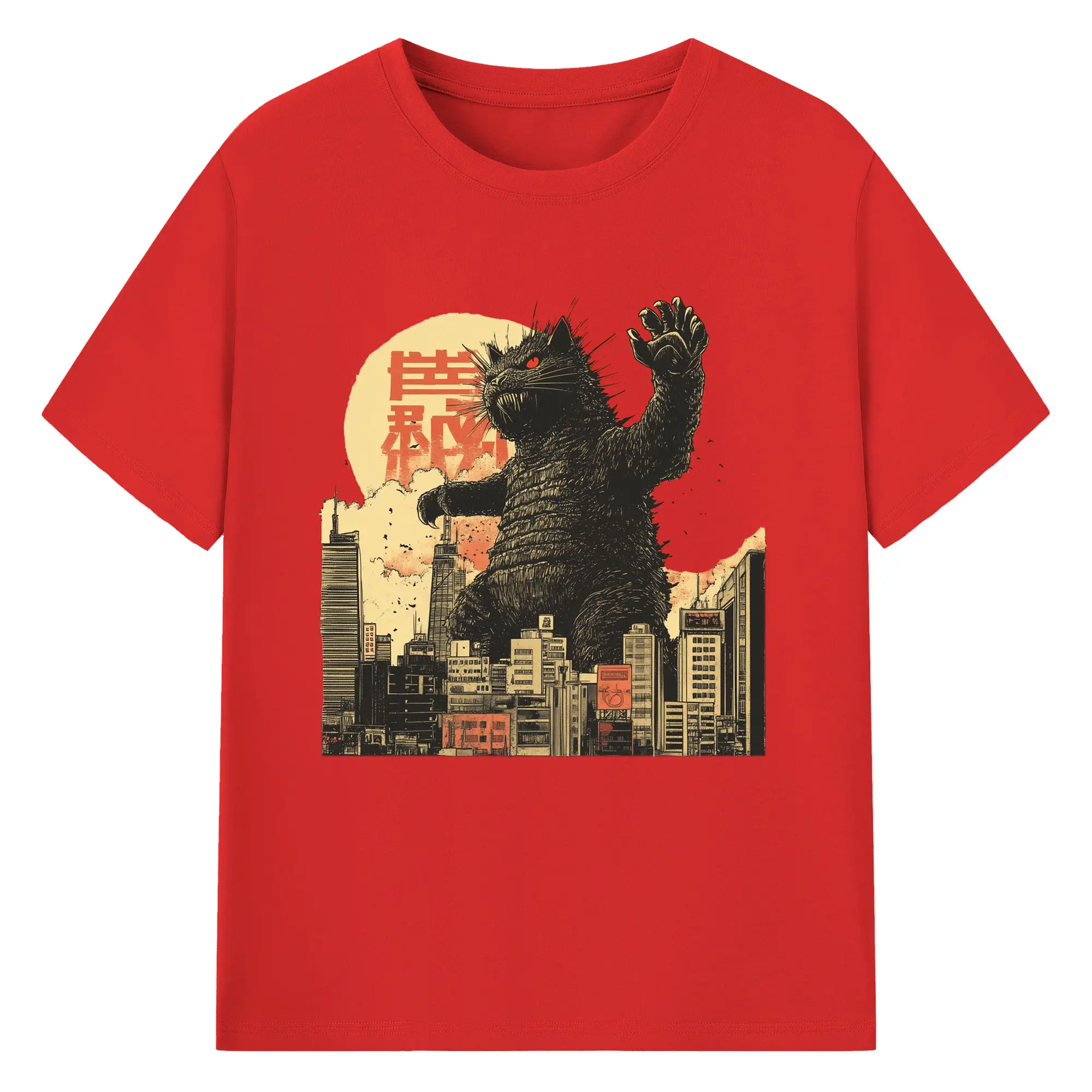 ゴジラ キャットジラ CATZILLA - 綿100% 半袖Tシャツ ・ フロントプリント ・ 快適 通気性 ・ 日常使い 散歩 スポーツ用