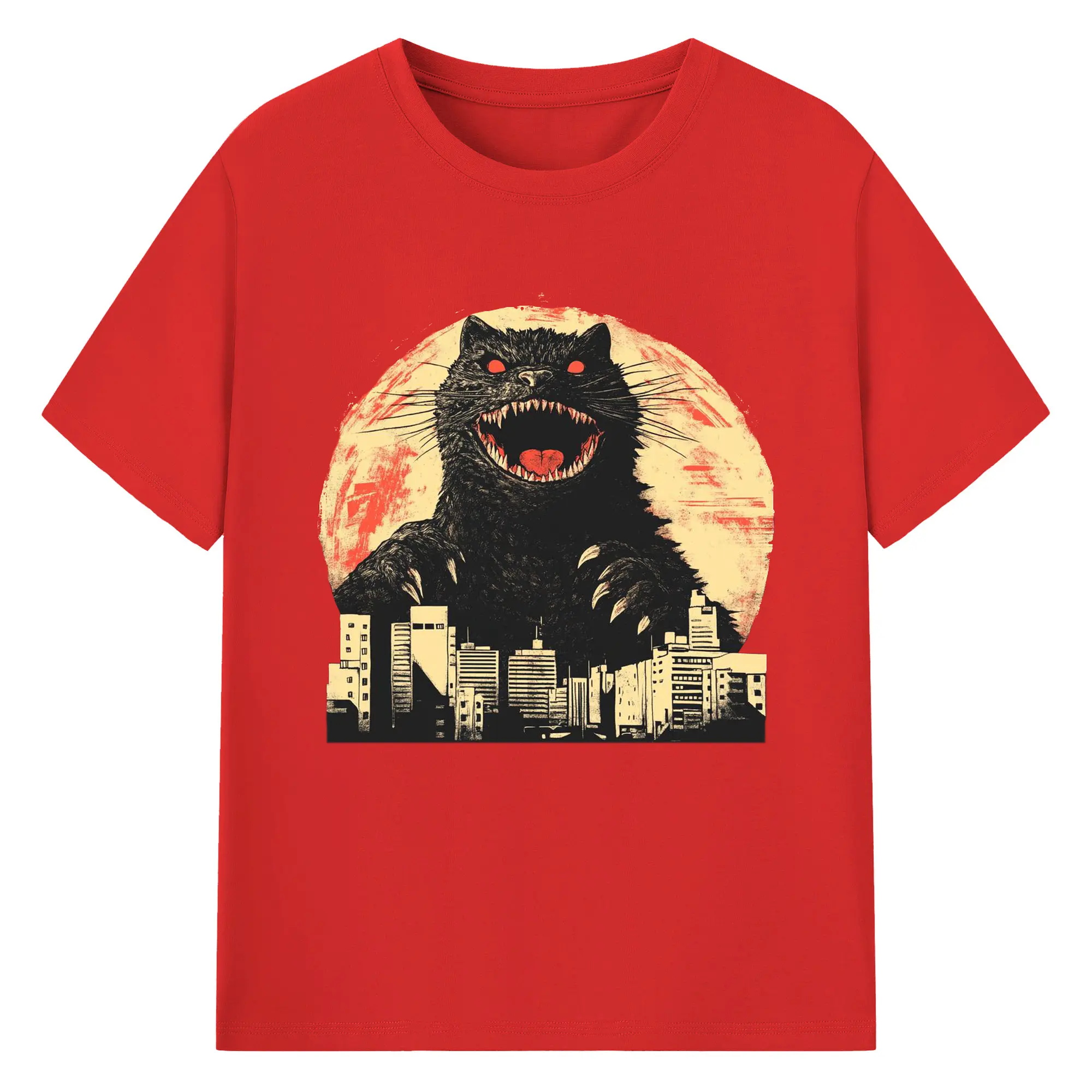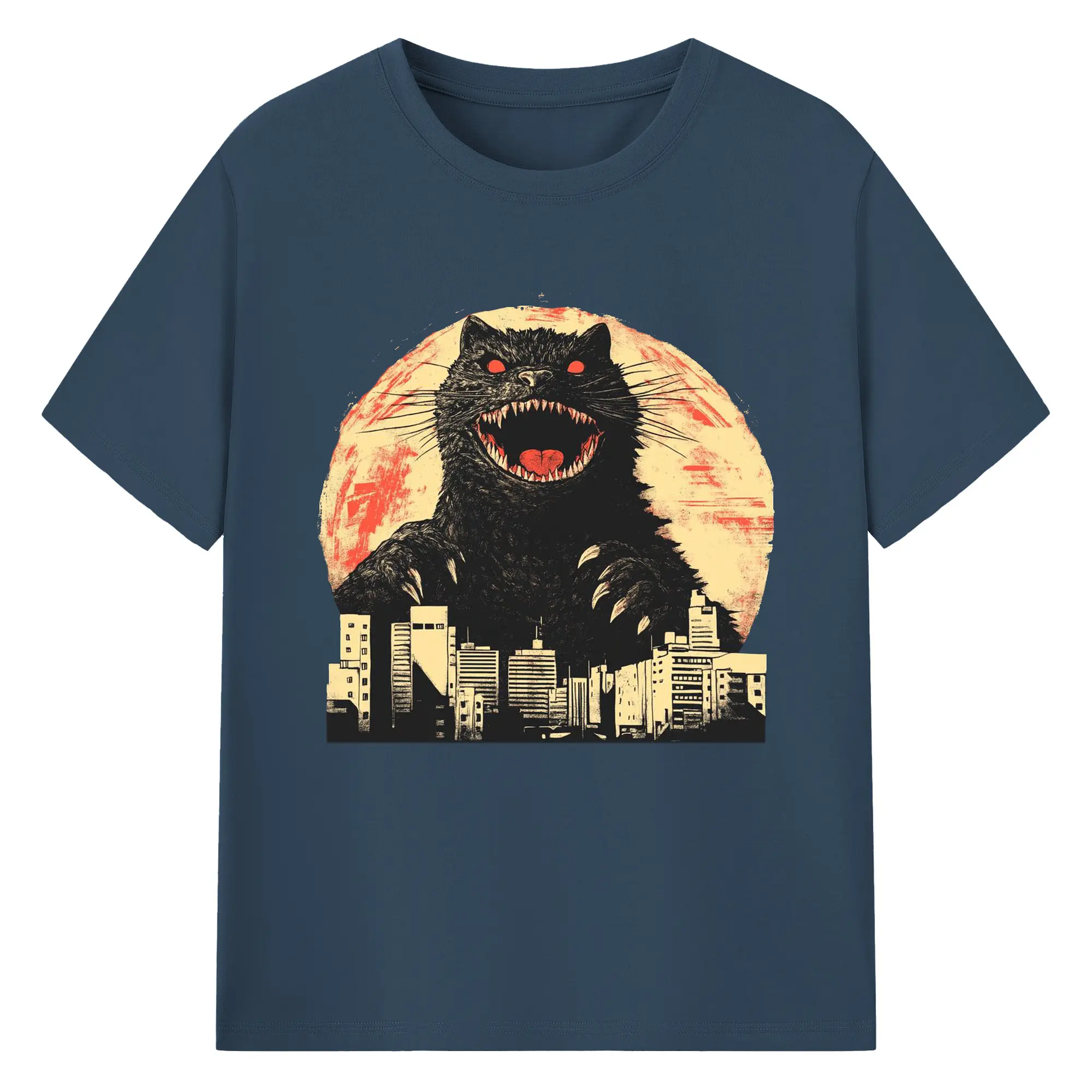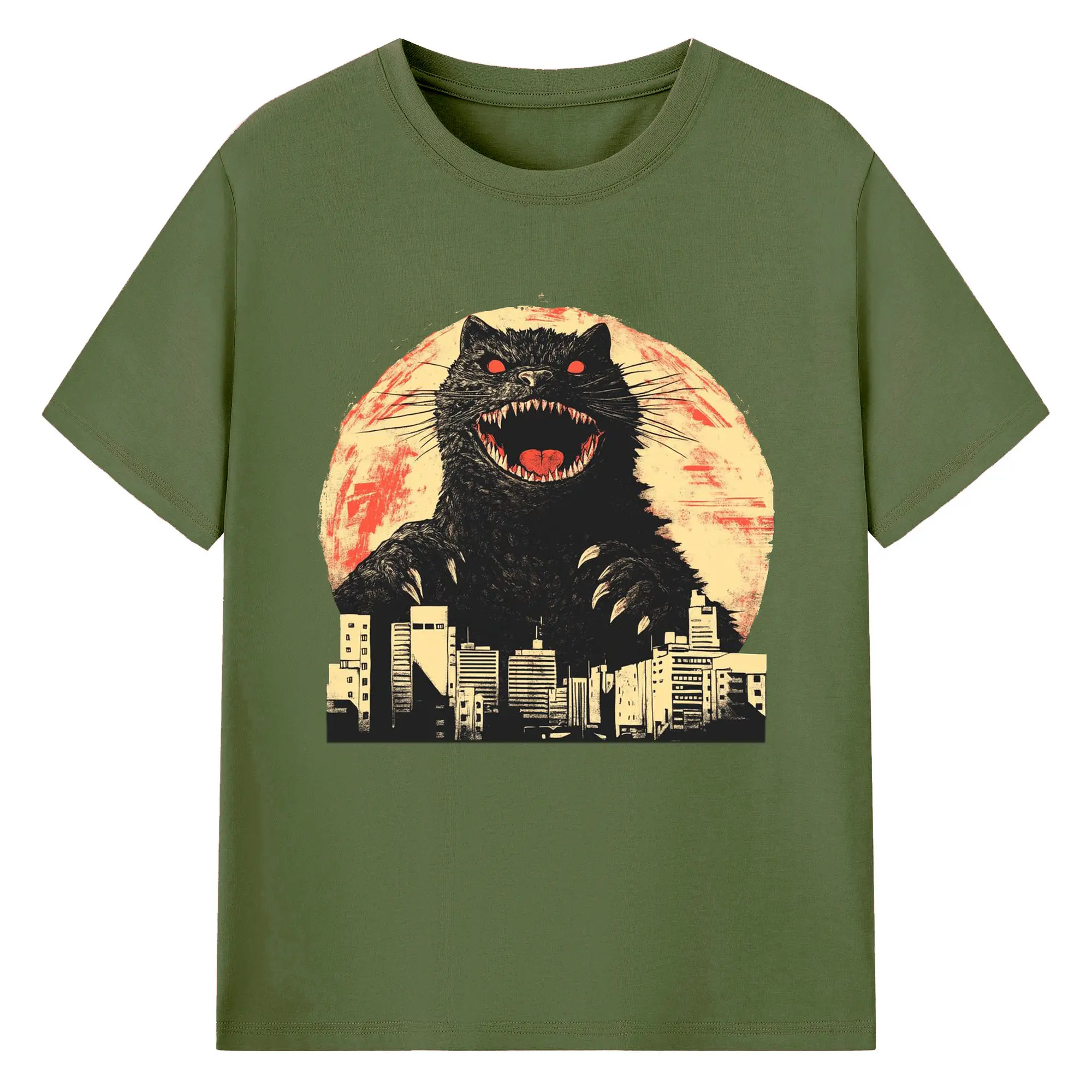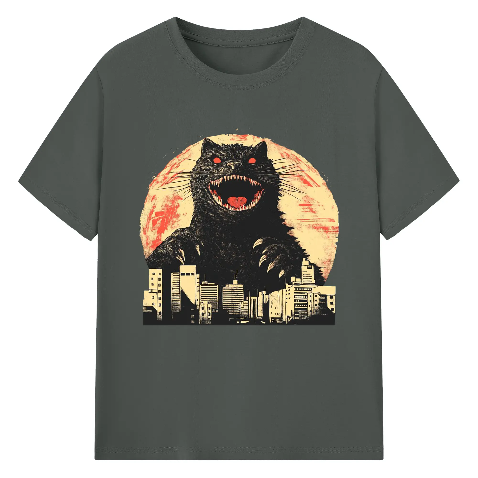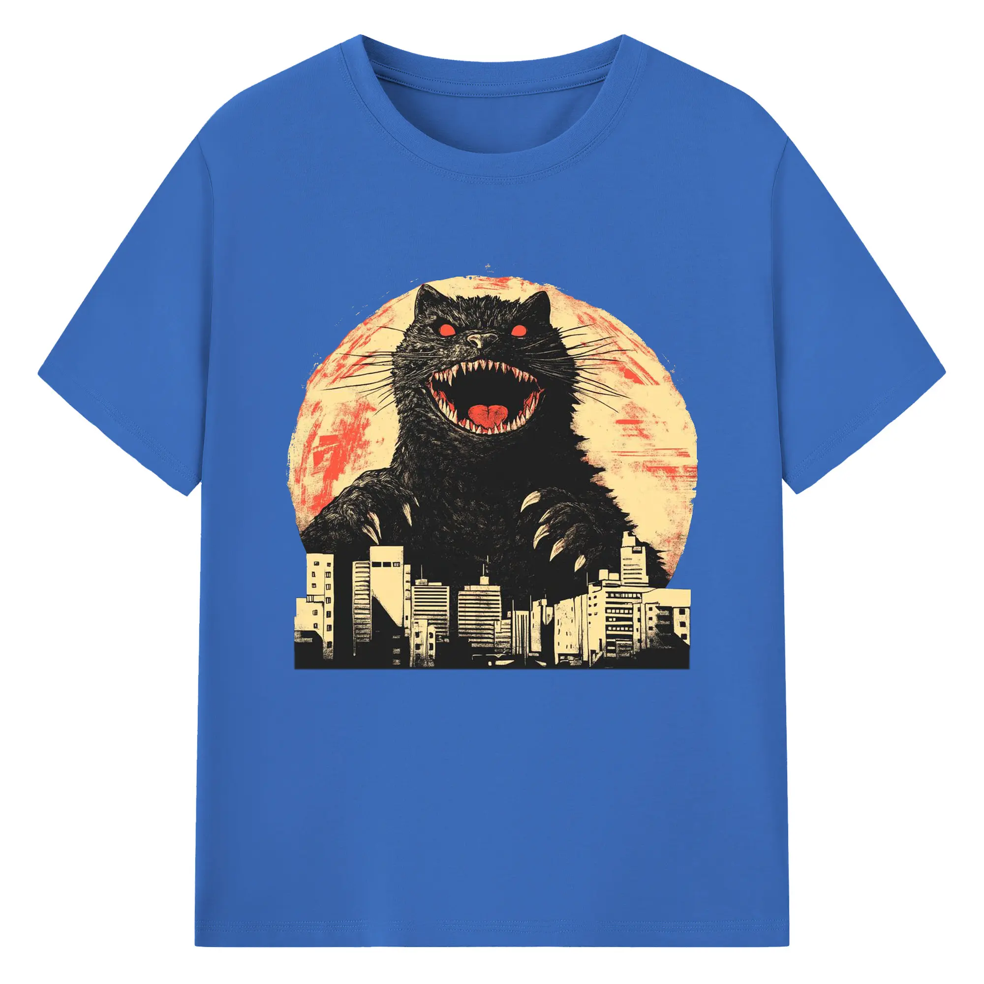 ゴジラ キャットジラ CATZILLA - 綿100% 半袖Tシャツ ・ フロントプリント ・ 快適 通気性 ・ 日常使い 散歩 スポーツ用