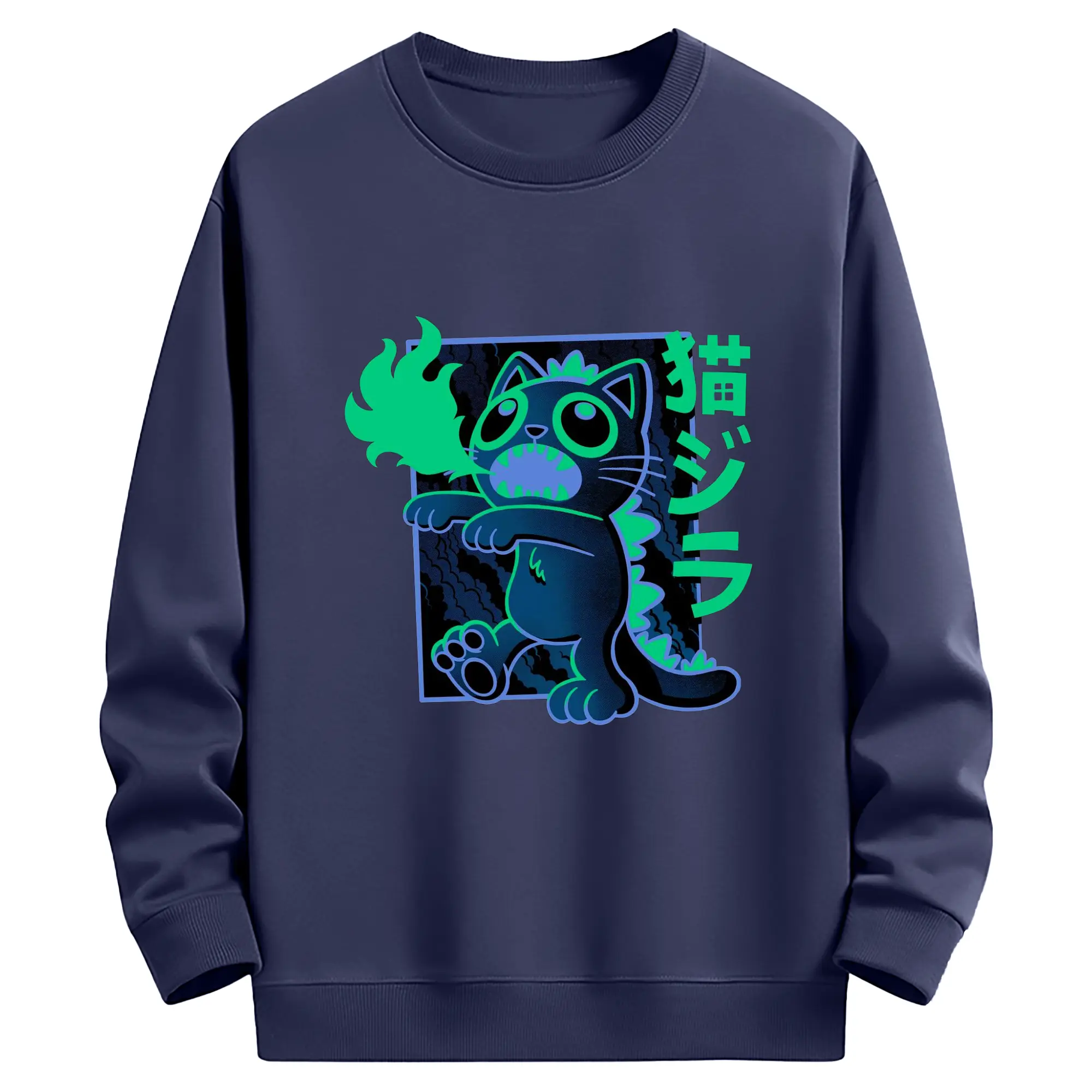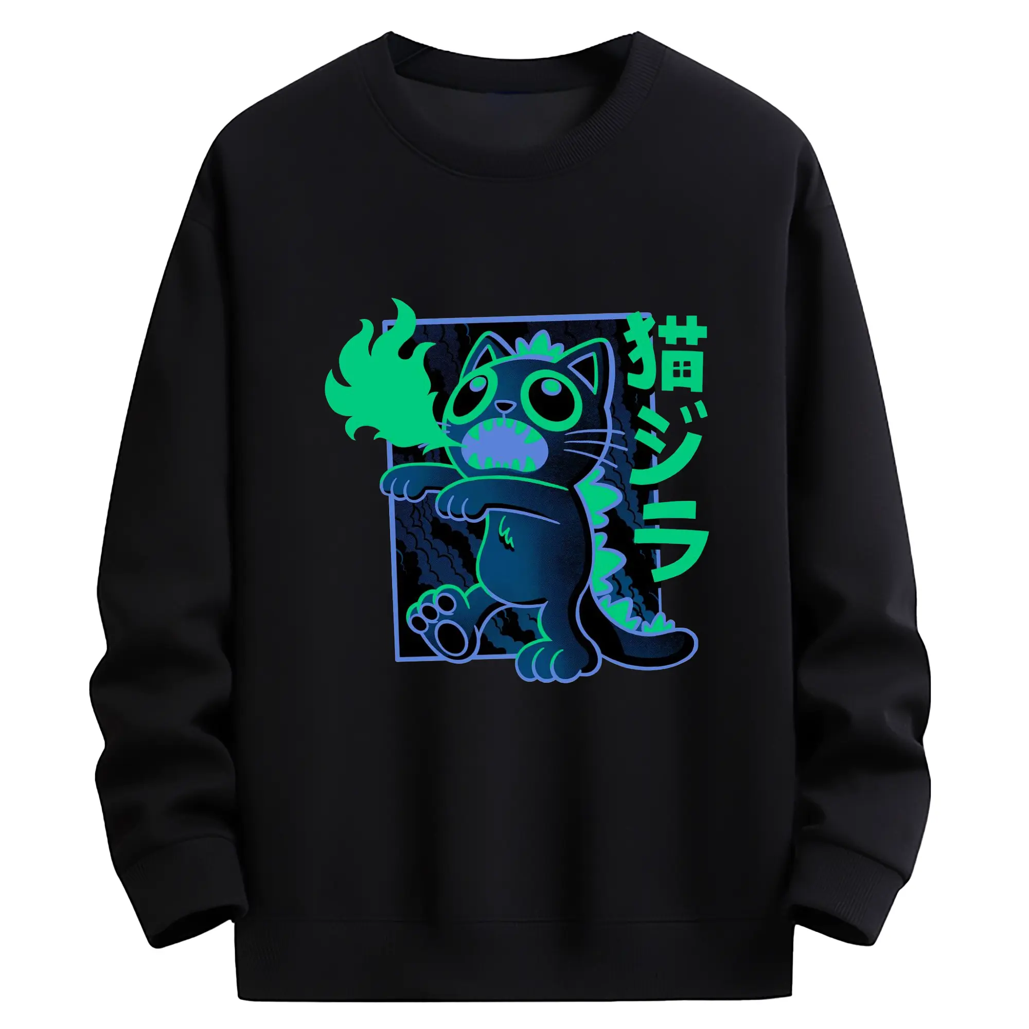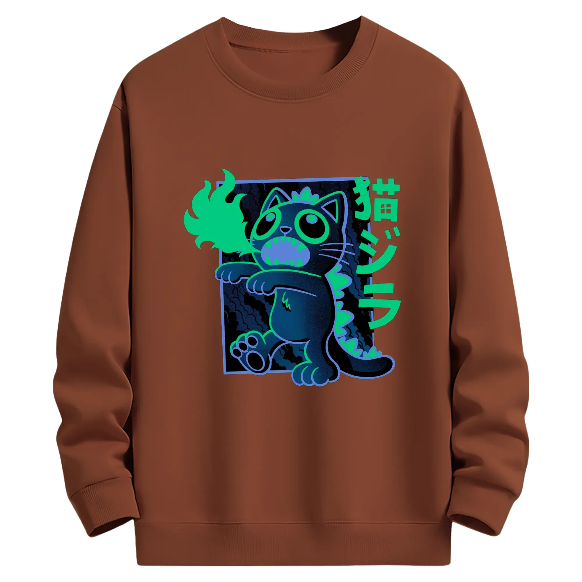 ゴジラの食事タイム - 高品質 クルーネック スウェット ・ コットン59% ポリエステル41% ・ ユニセックス 長袖 トレーナー ・ カジュアル デイリー スポーツ 散歩用