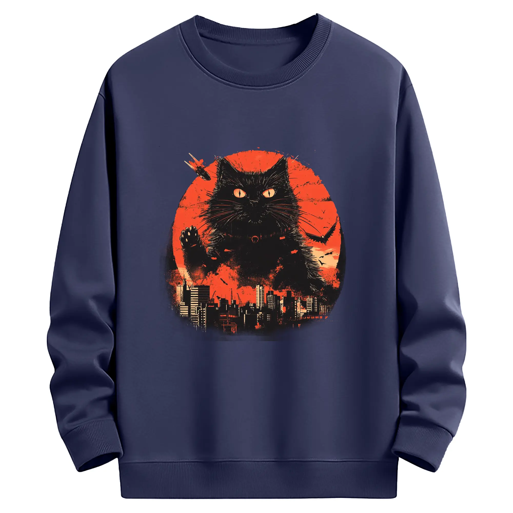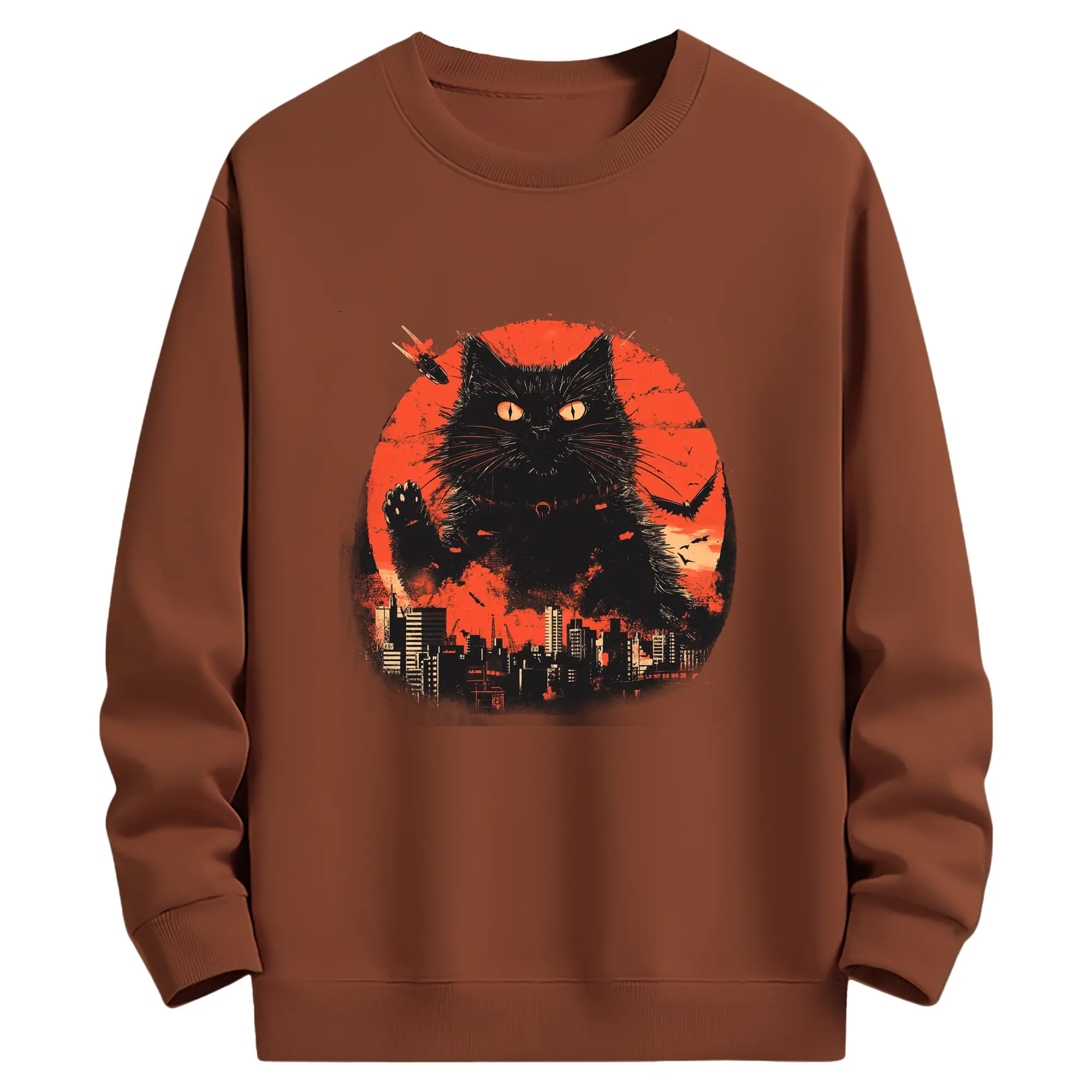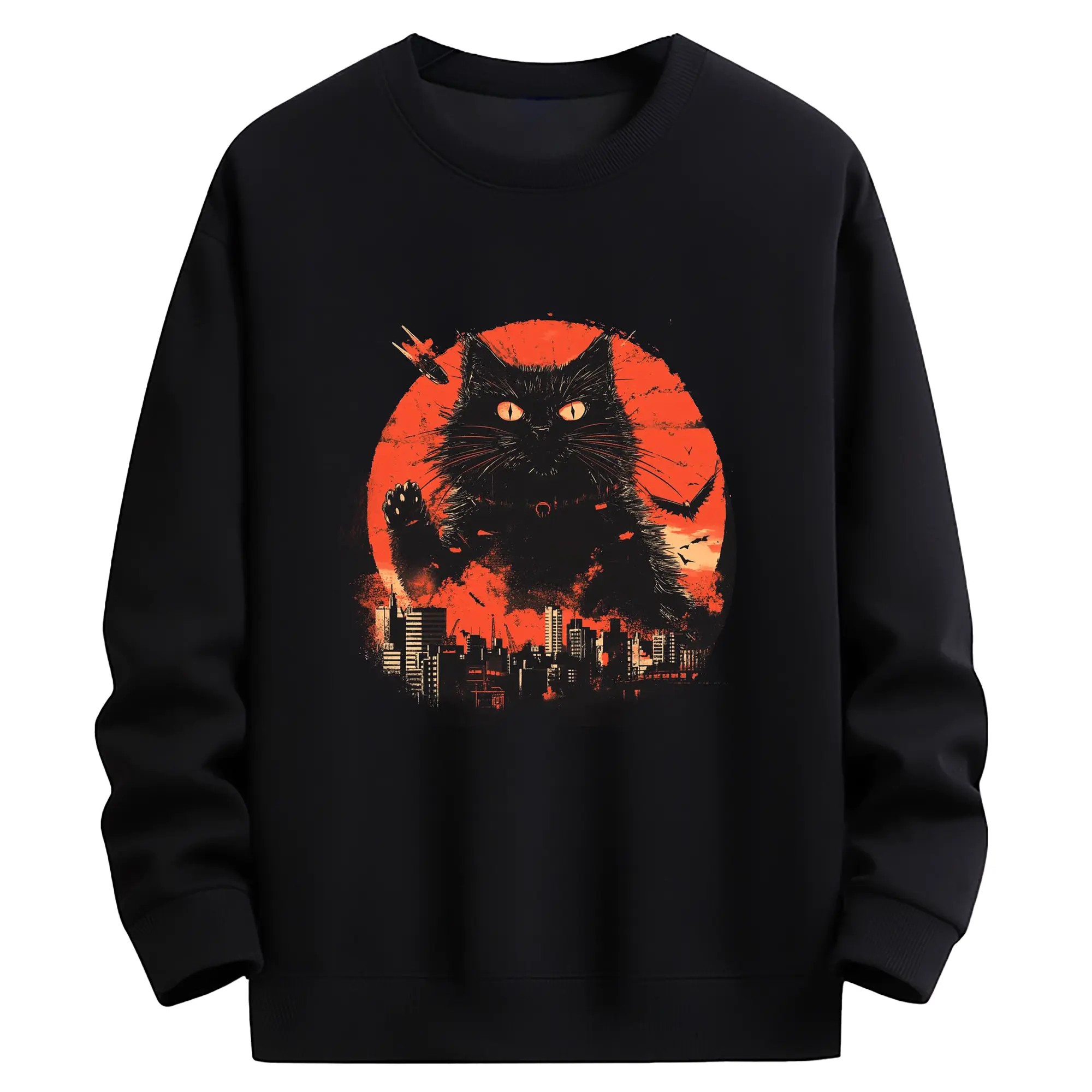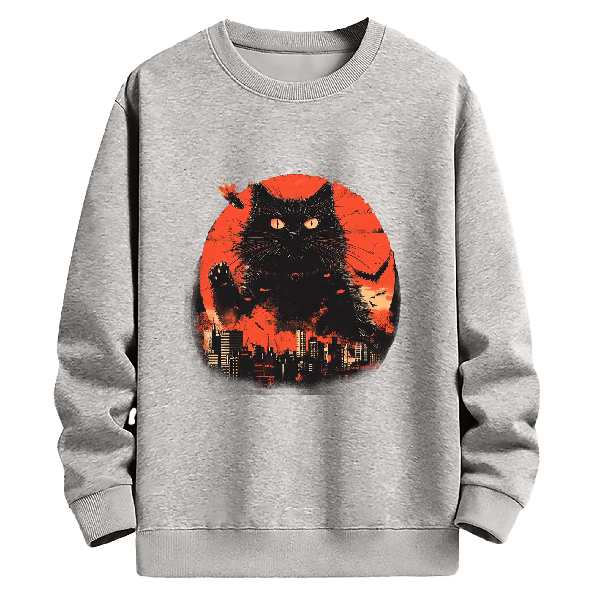 ゴジラ キャットジラ CATZILLA - 高品質 クルーネック スウェット ・ コットン59% ポリエステル41% ・ ユニセックス 長袖 トレーナー ・ カジュアル デイリー スポーツ 散歩用