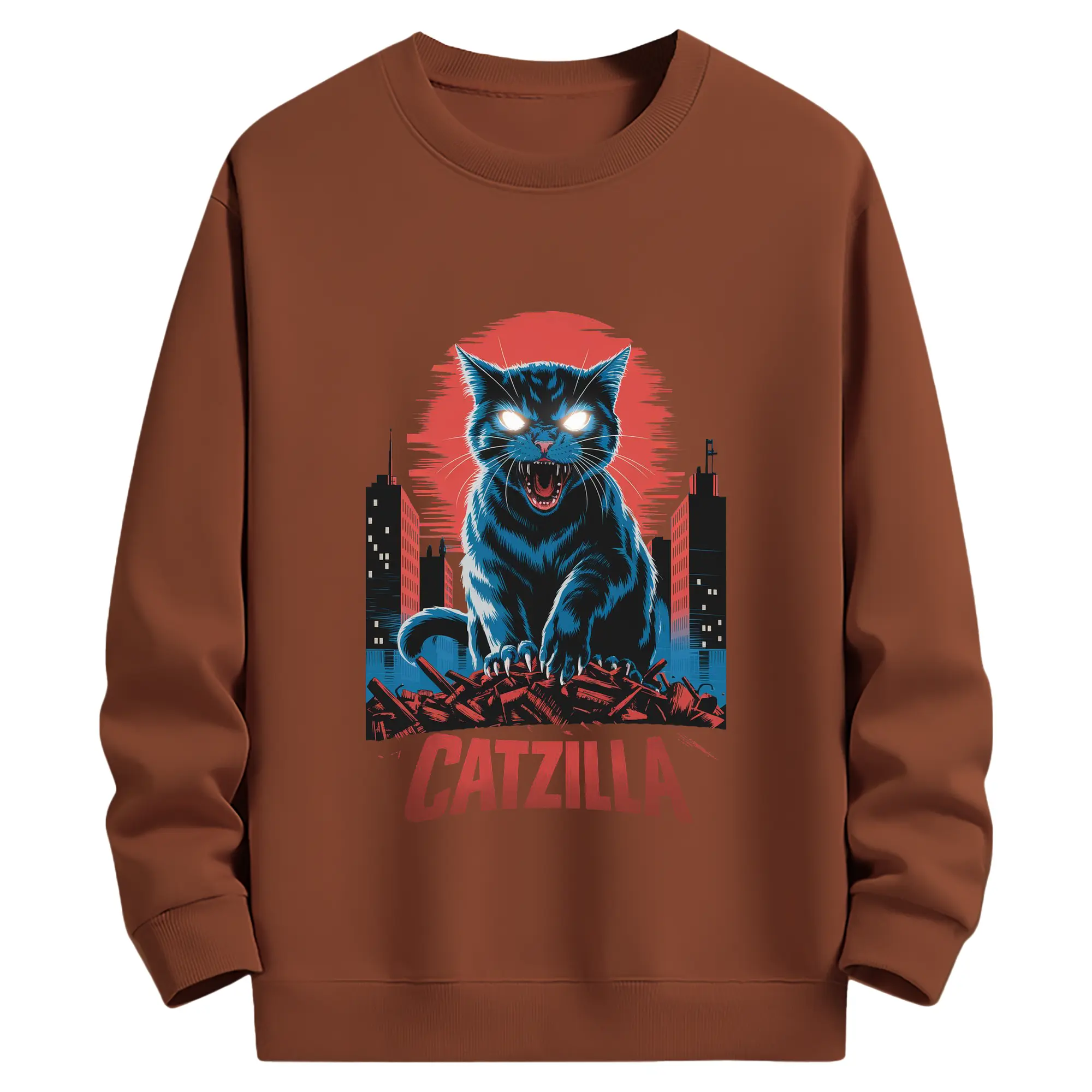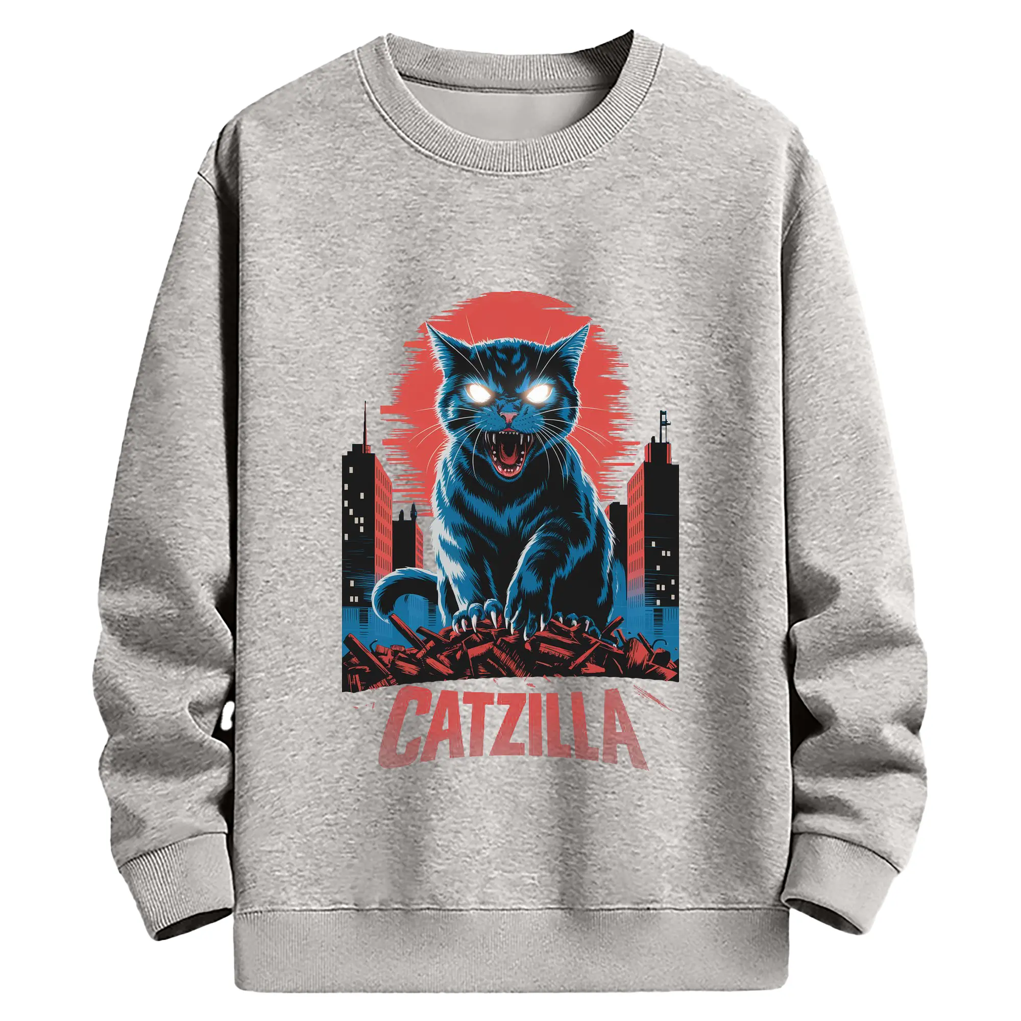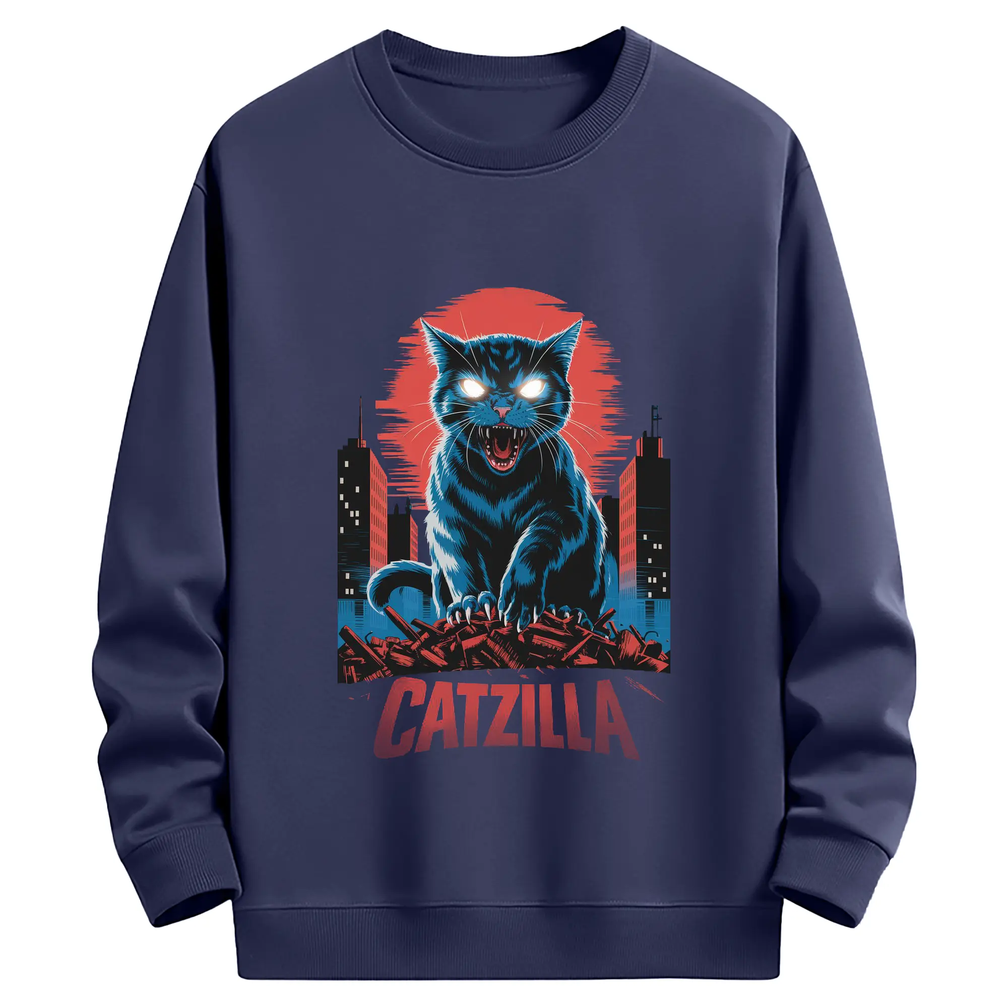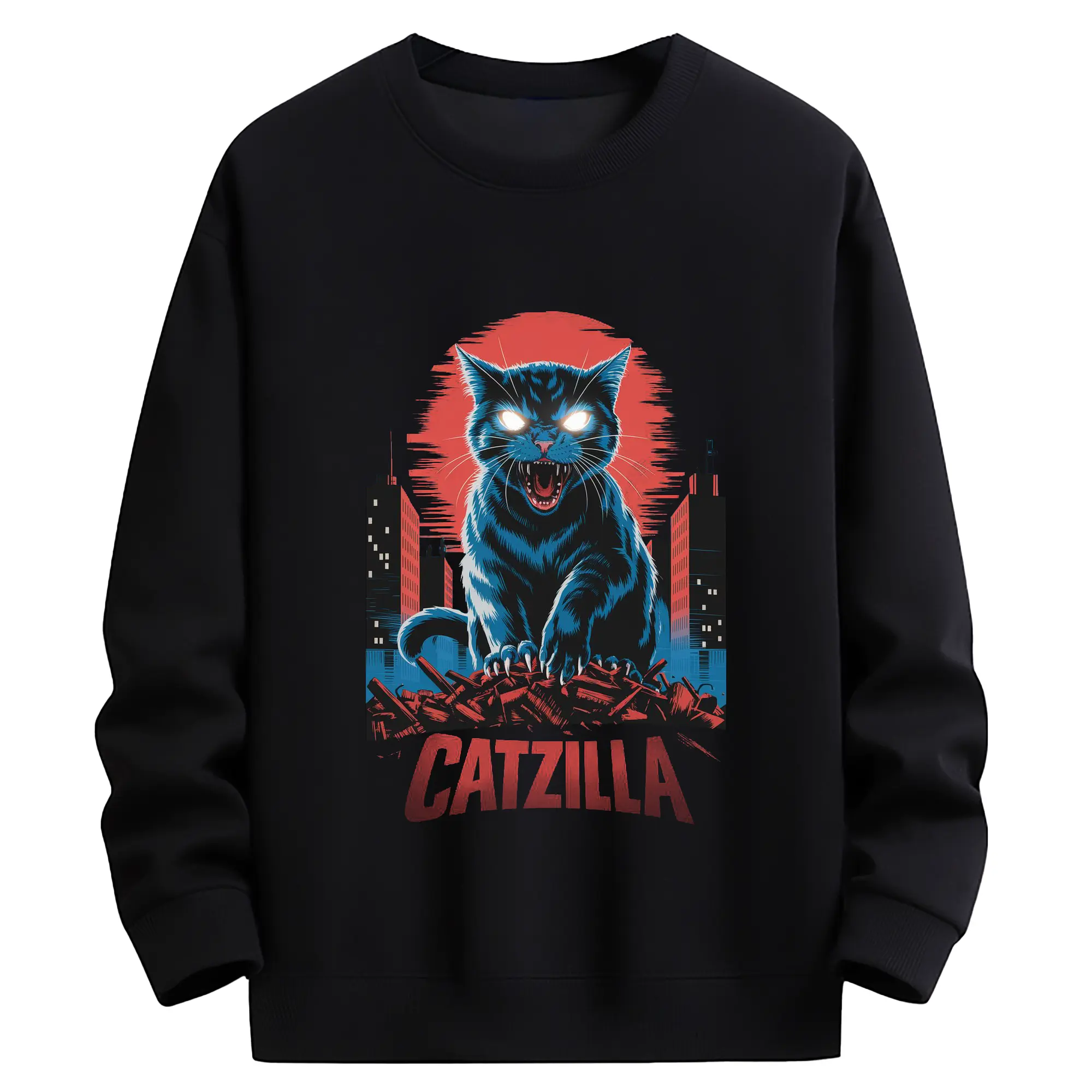 ゴジラ キャットジラ CATZILLA - 高品質 クルーネック スウェット ・ コットン59% ポリエステル41% ・ ユニセックス 長袖 トレーナー ・ カジュアル デイリー スポーツ 散歩用