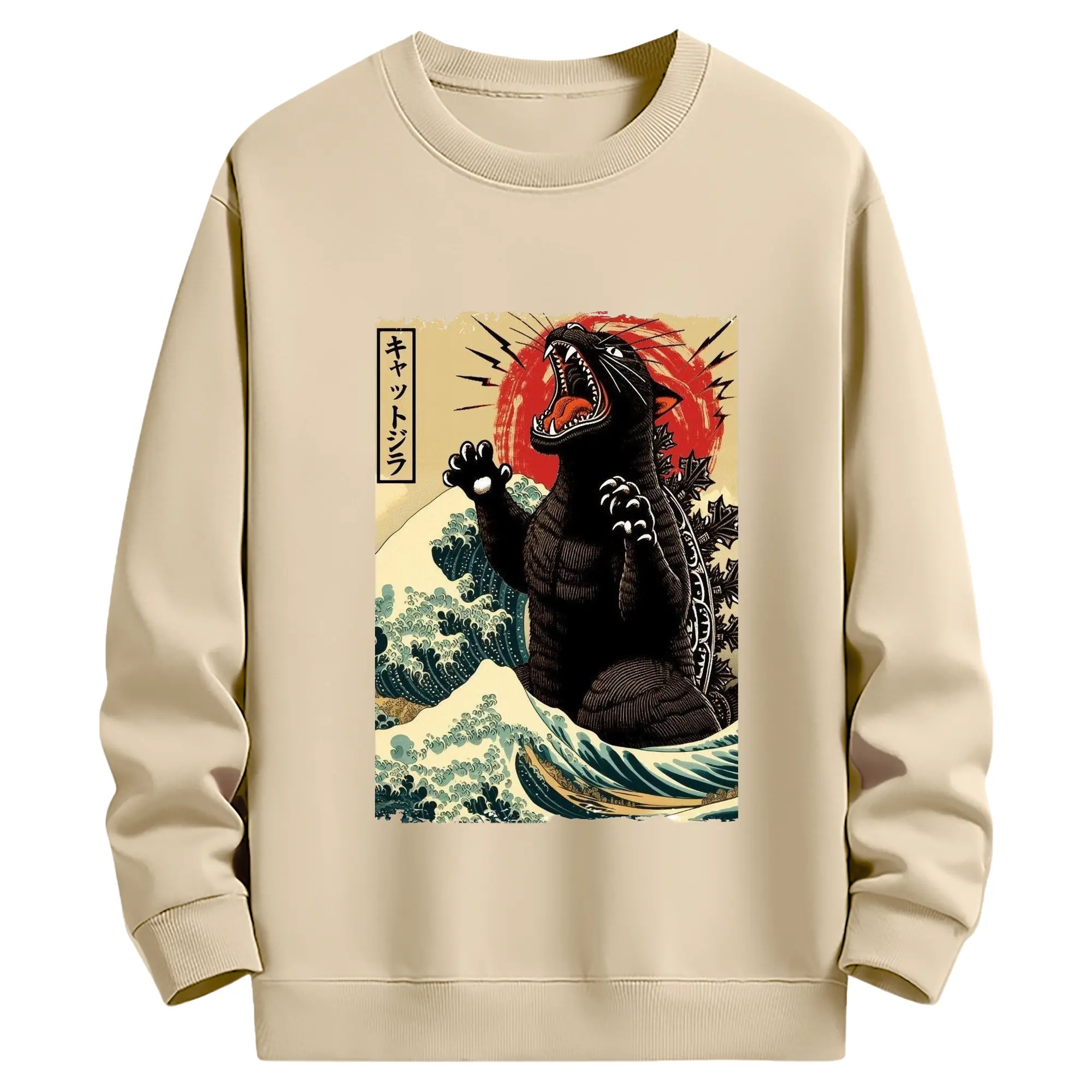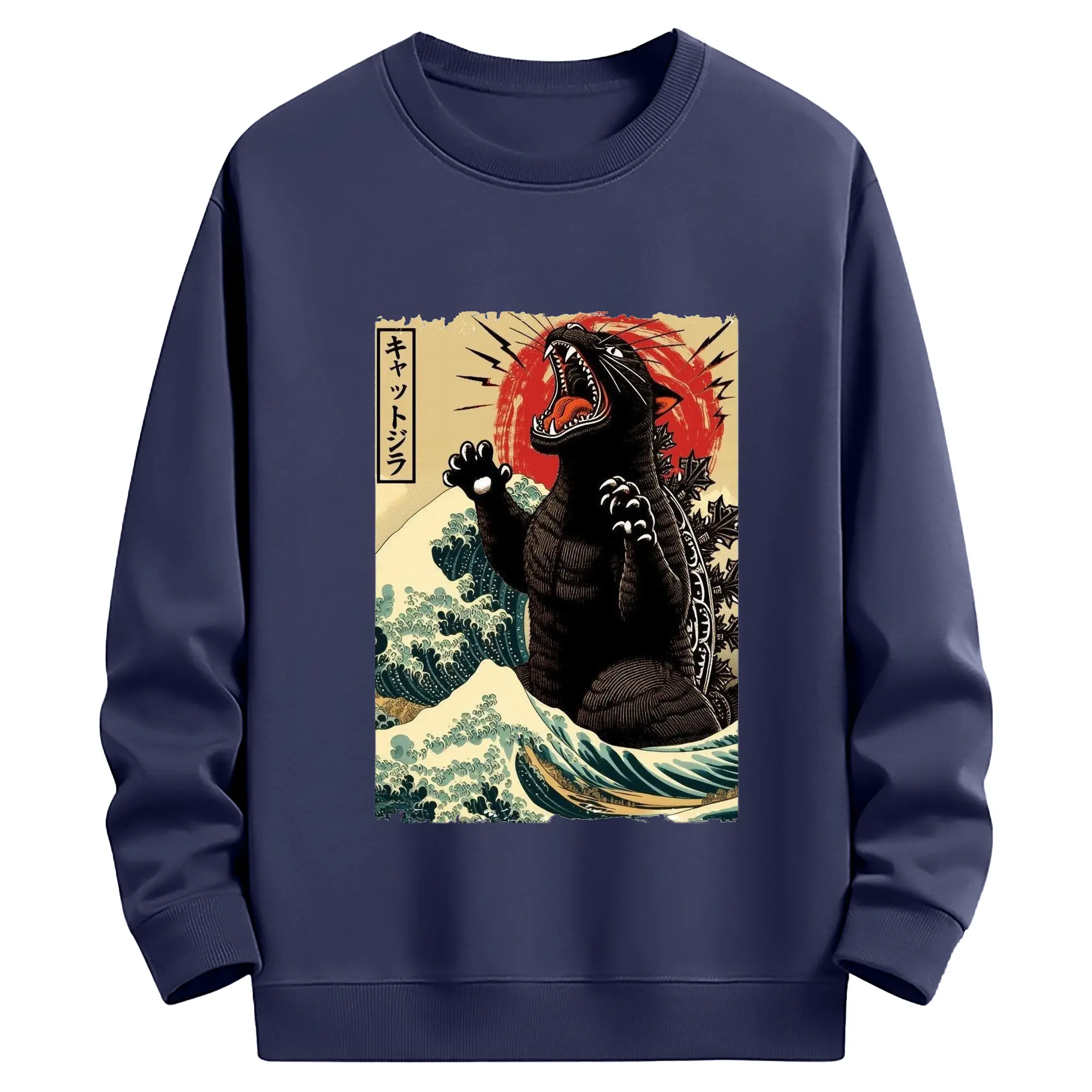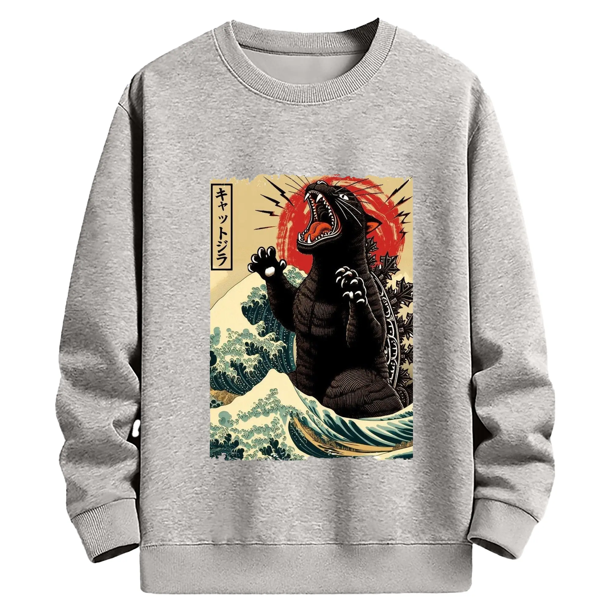 ゴジラ キャットジラ CATZILLA - 高品質 クルーネック スウェット ・ コットン59% ポリエステル41% ・ ユニセックス 長袖 トレーナー ・ カジュアル デイリー スポーツ 散歩用