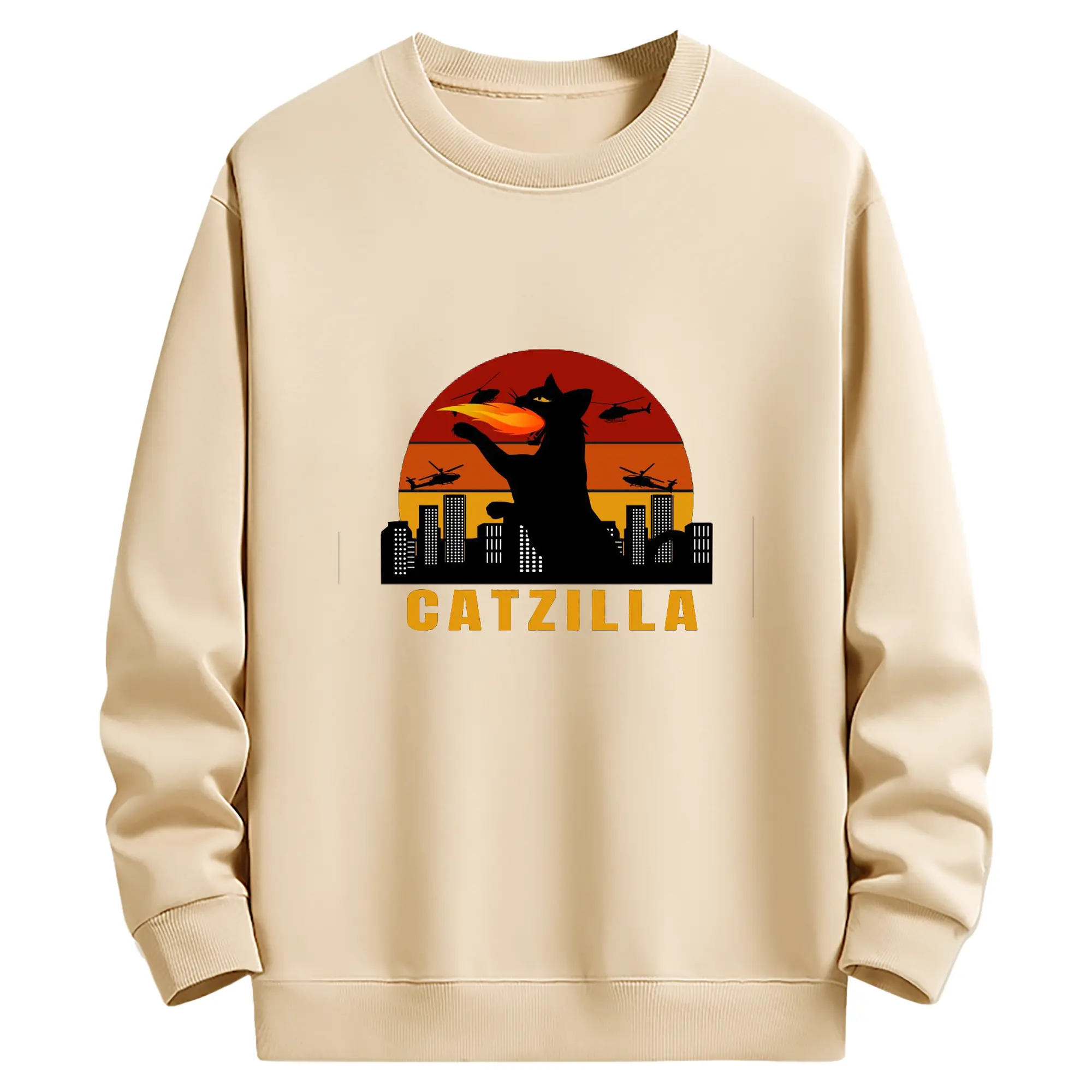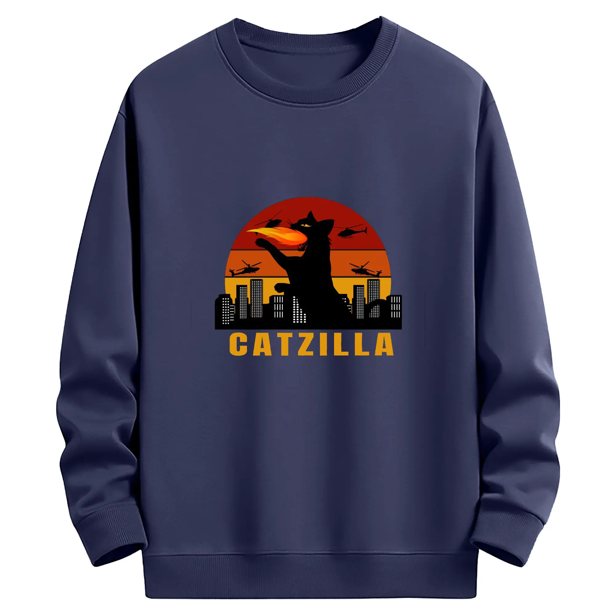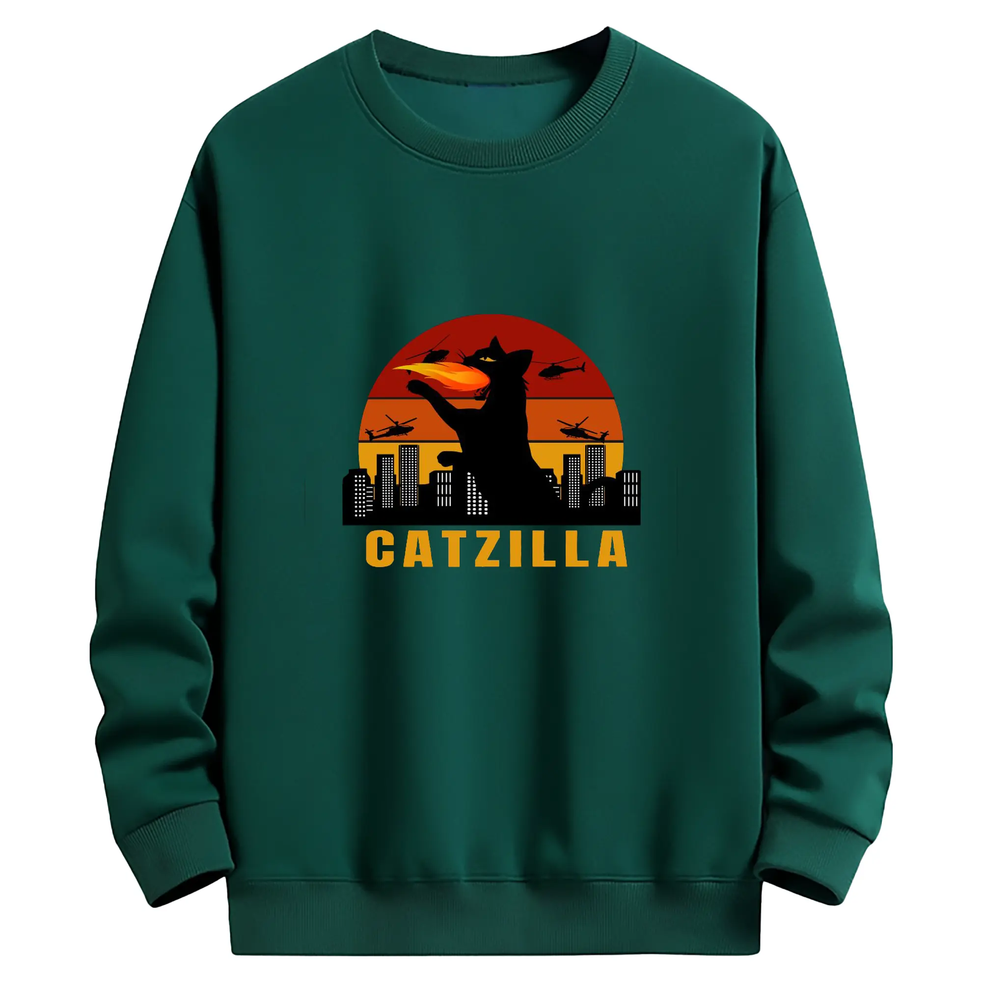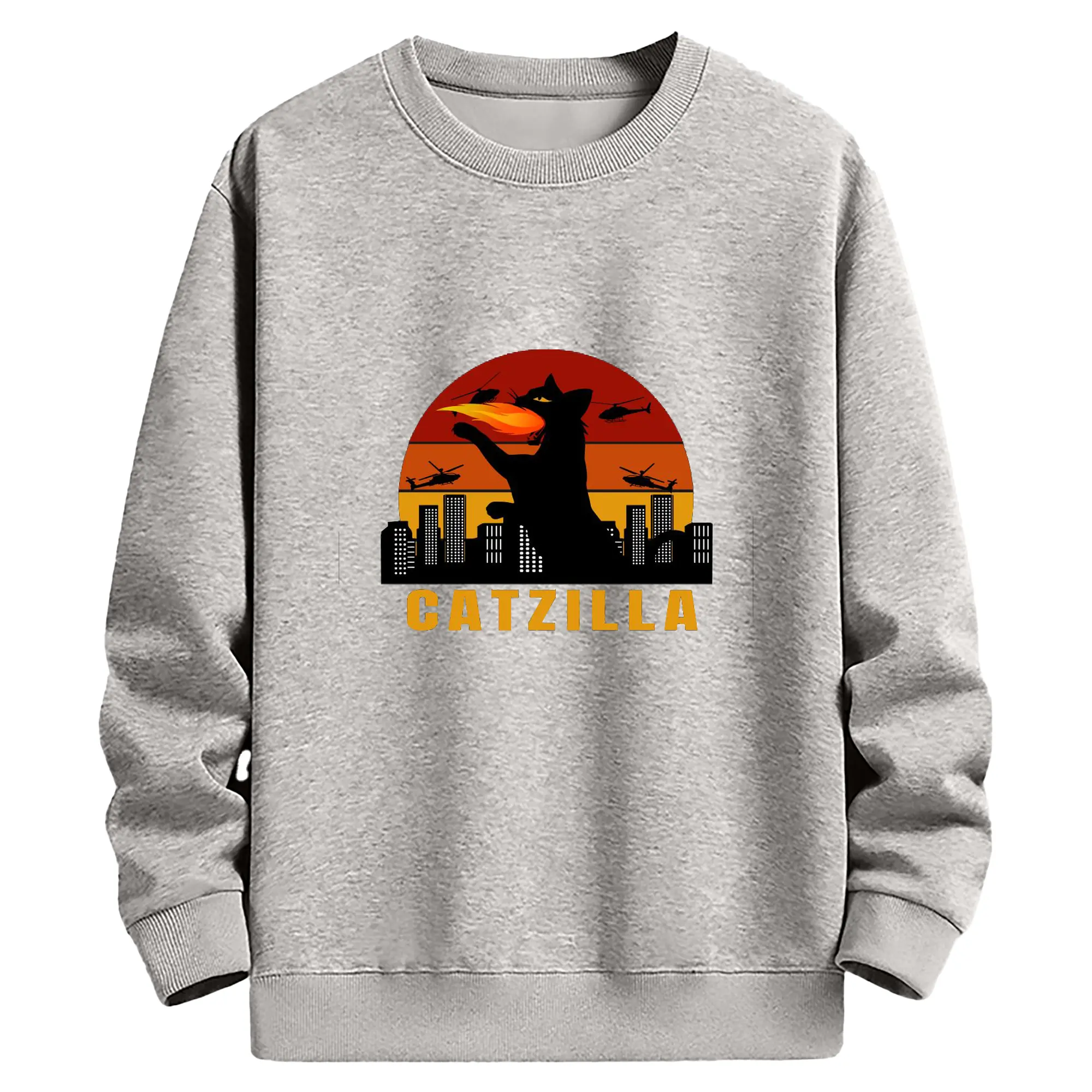 ゴジラ キャットジラ CATZILLA - 高品質 クルーネック スウェット ・ コットン59% ポリエステル41% ・ ユニセックス 長袖 トレーナー ・ カジュアル デイリー スポーツ 散歩用
