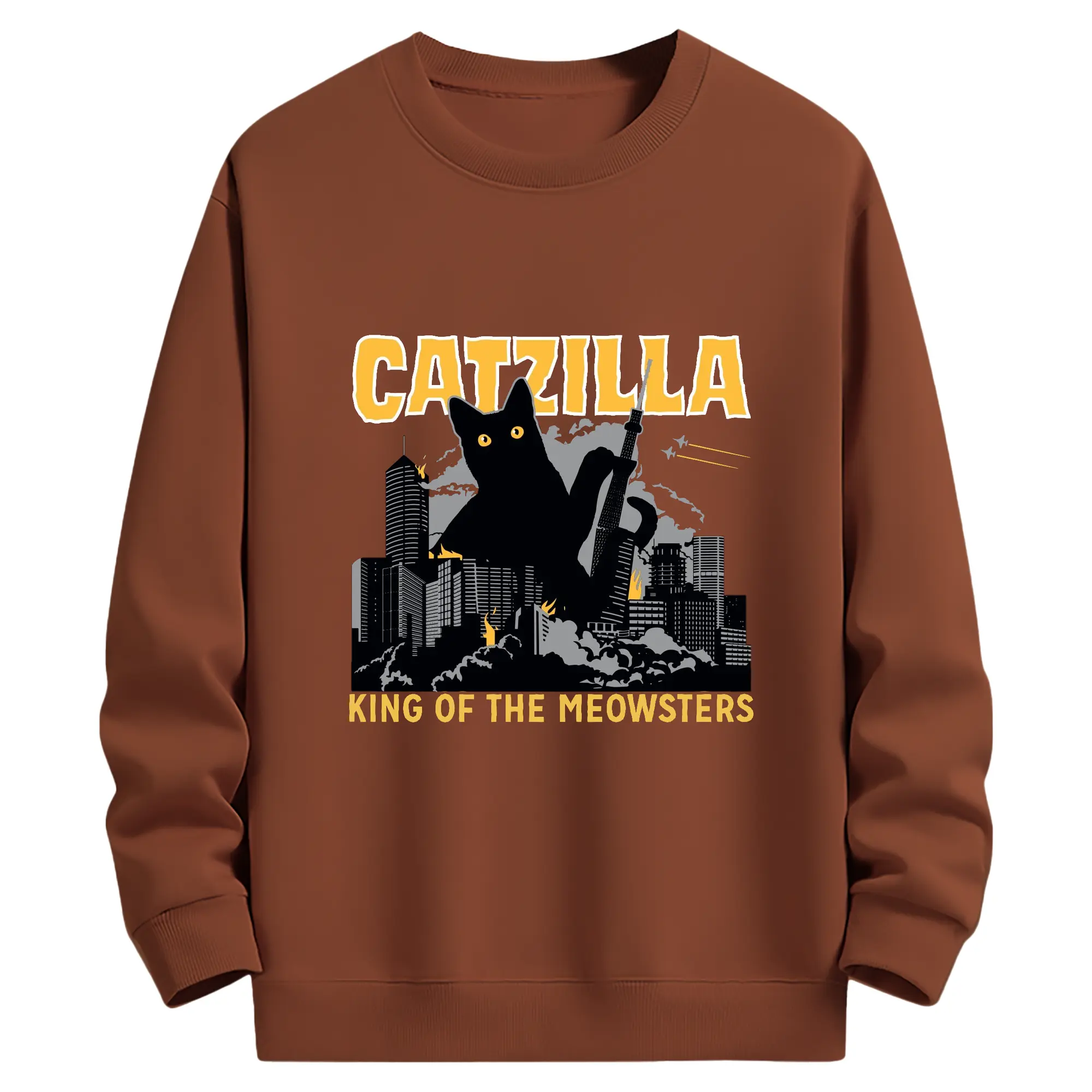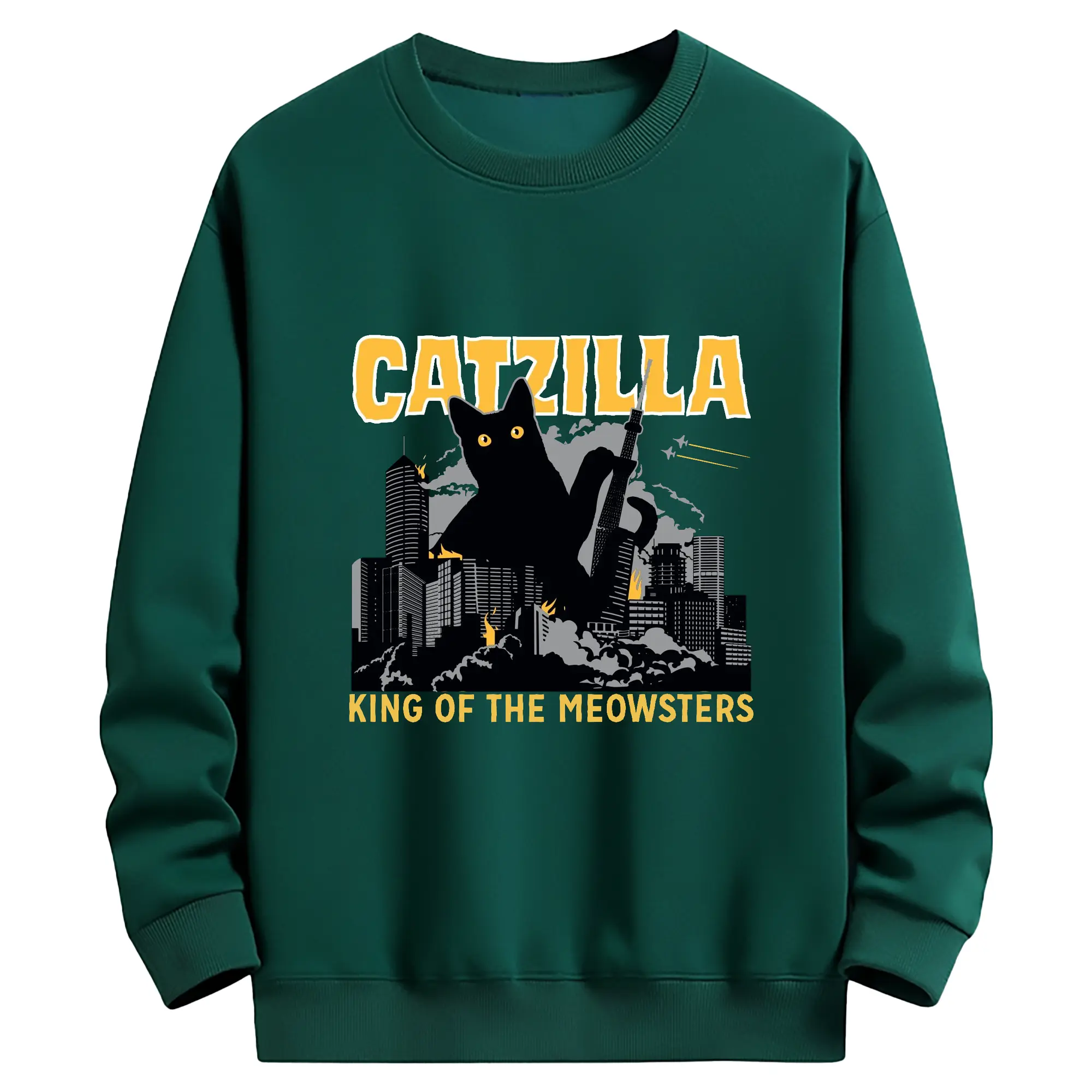 ゴジラ キャットジラ CATZILLA - 高品質 クルーネック スウェット ・ コットン59% ポリエステル41% ・ ユニセックス 長袖 トレーナー ・ カジュアル デイリー スポーツ 散歩用