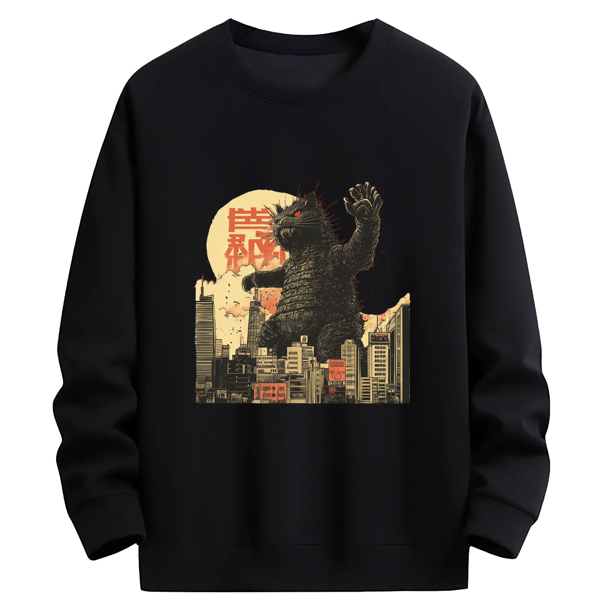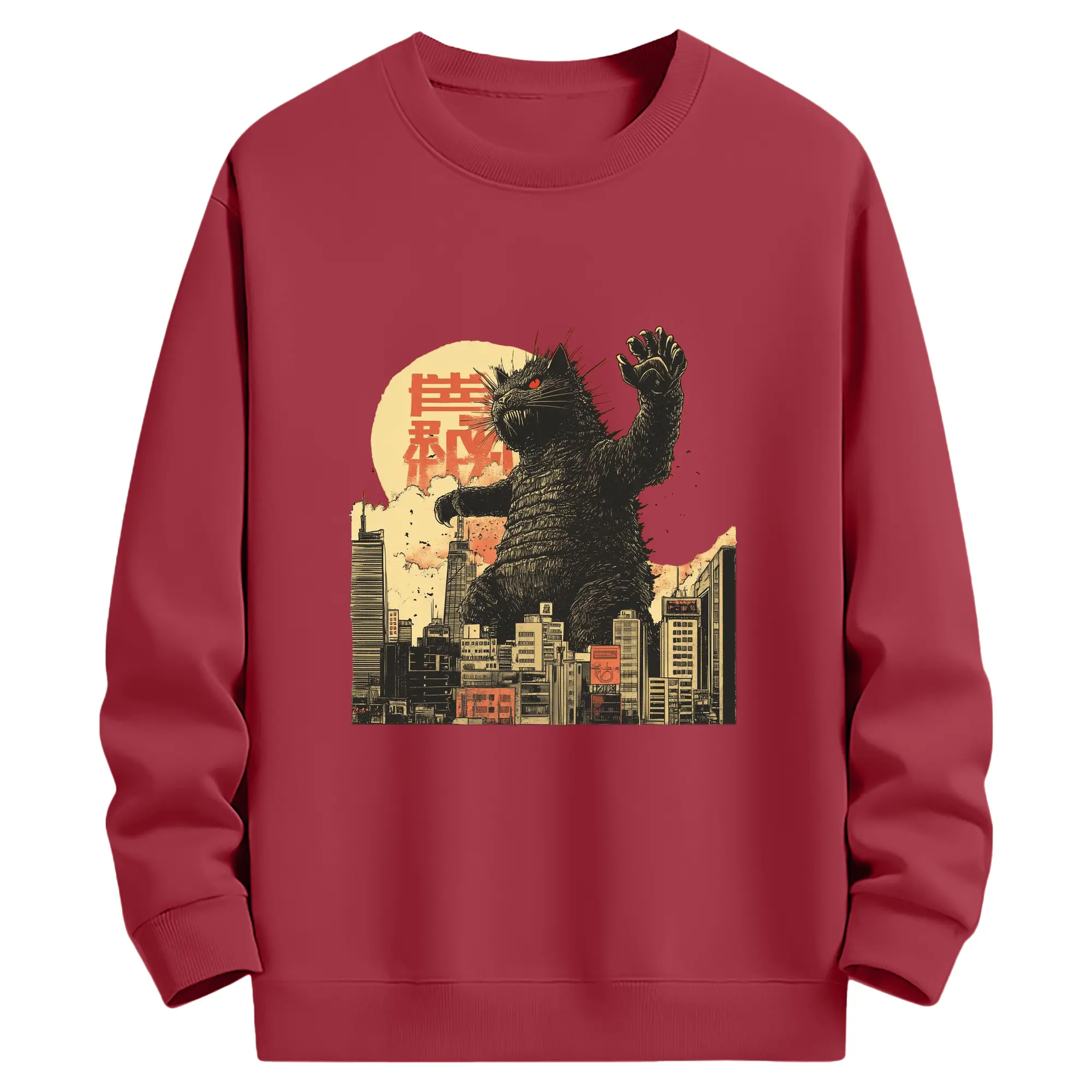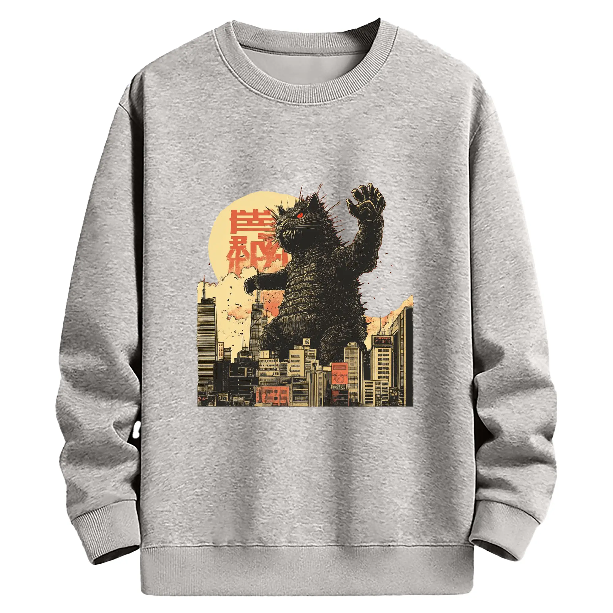 ゴジラ キャットジラ CATZILLA - 高品質 クルーネック スウェット ・ コットン59% ポリエステル41% ・ ユニセックス 長袖 トレーナー ・ カジュアル デイリー スポーツ 散歩用