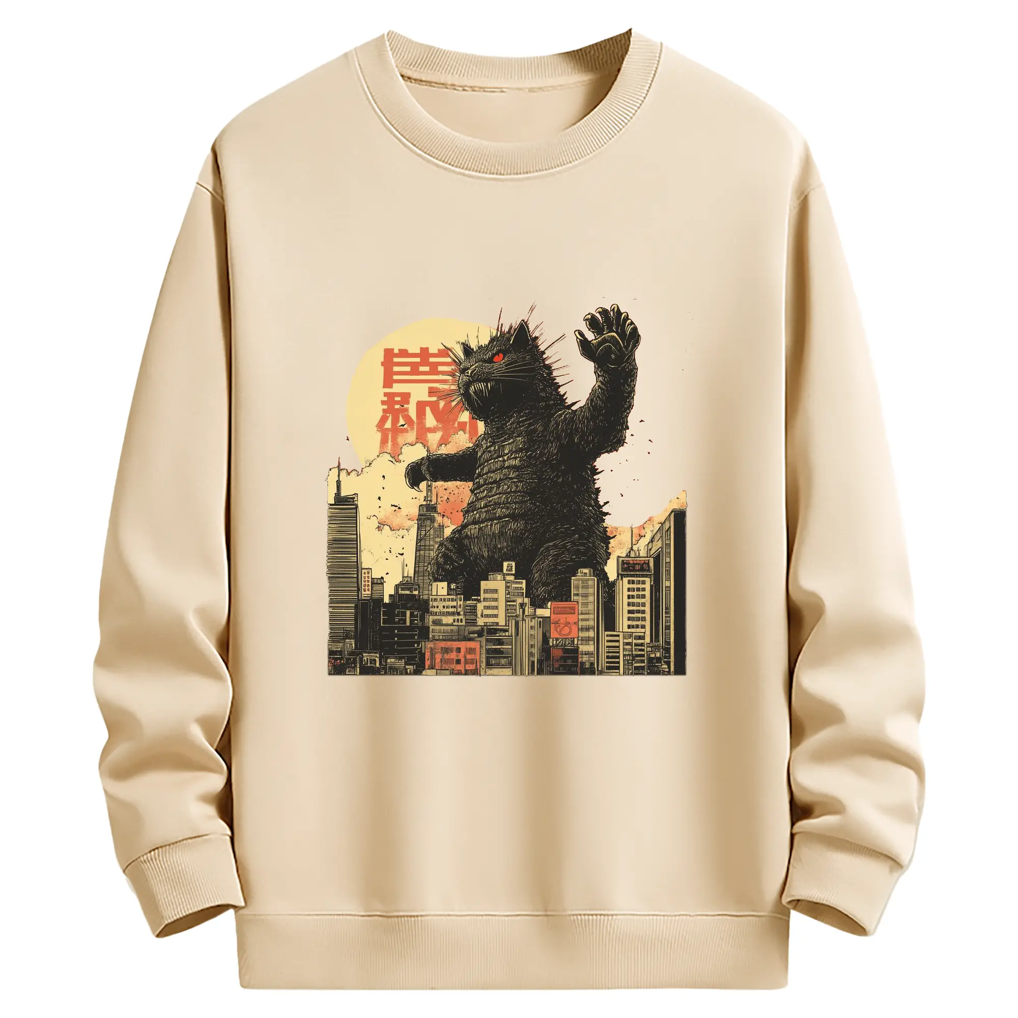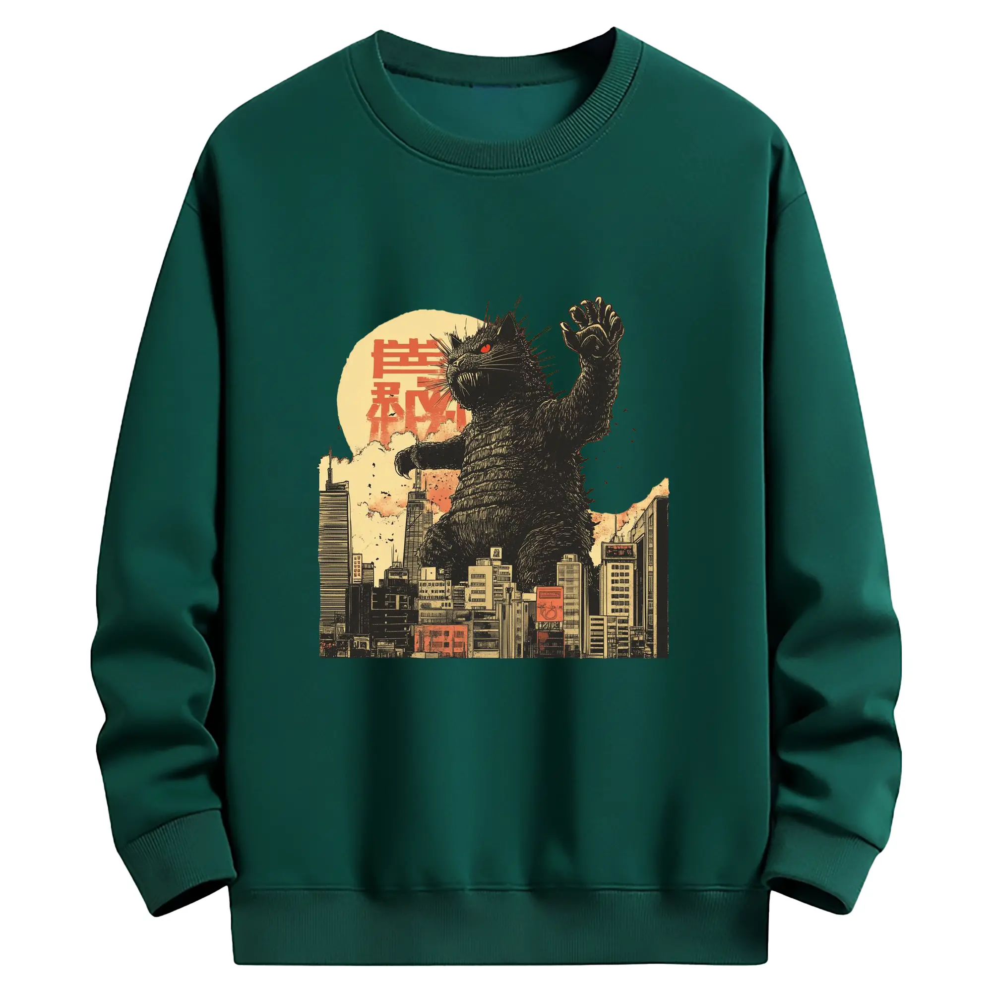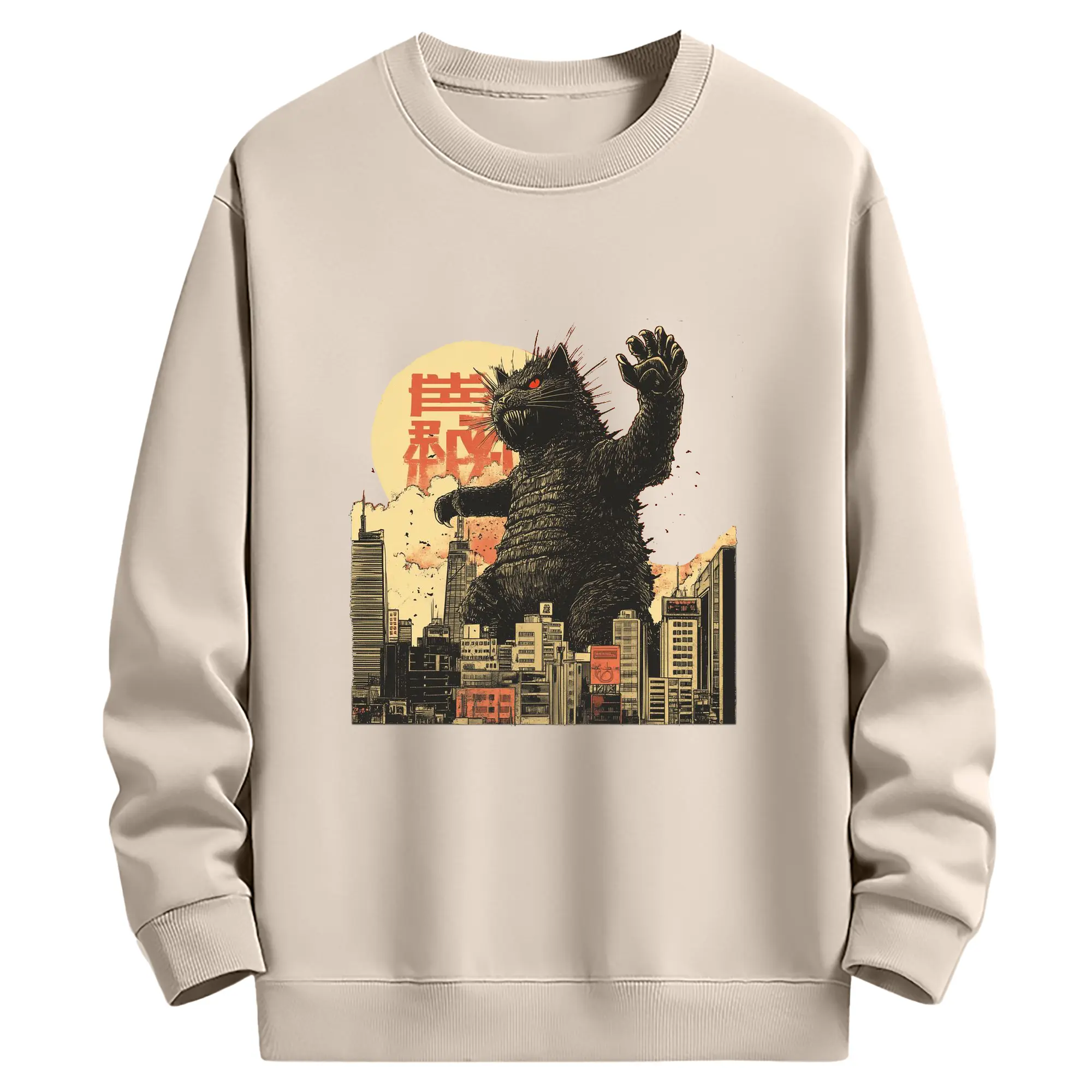 ゴジラ キャットジラ CATZILLA - 高品質 クルーネック スウェット ・ コットン59% ポリエステル41% ・ ユニセックス 長袖 トレーナー ・ カジュアル デイリー スポーツ 散歩用
