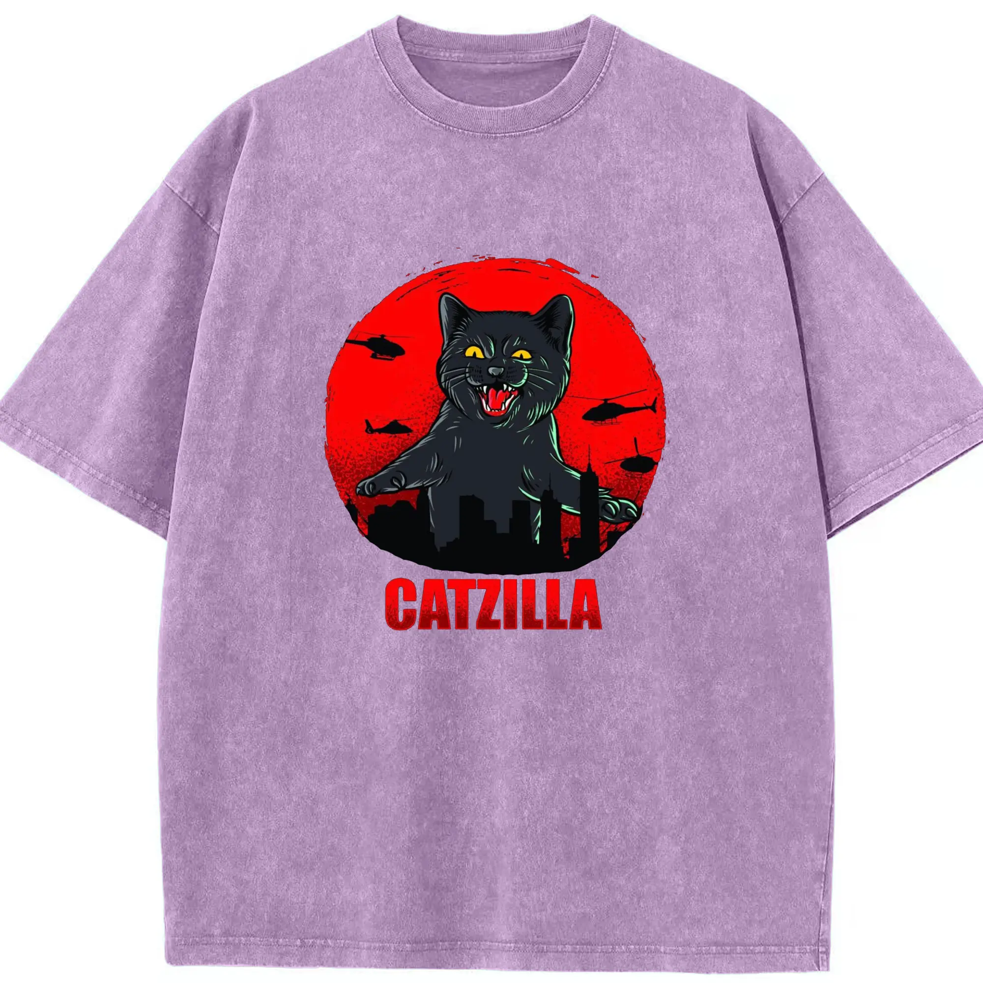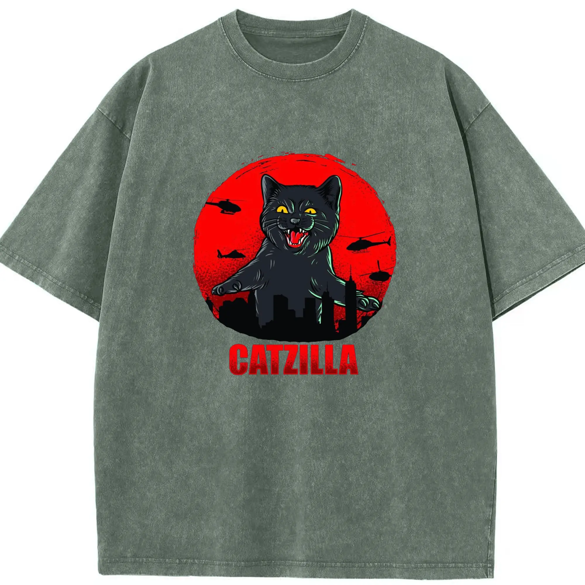 ゴジラ キャットジラ CATZILLA - 綿100% ヴィンテージ風 半袖Tシャツ ・ フロントプリント ・ 柔らか肌触り ・ 通気性 快適 ・ スポーツ カジュアル 外出用