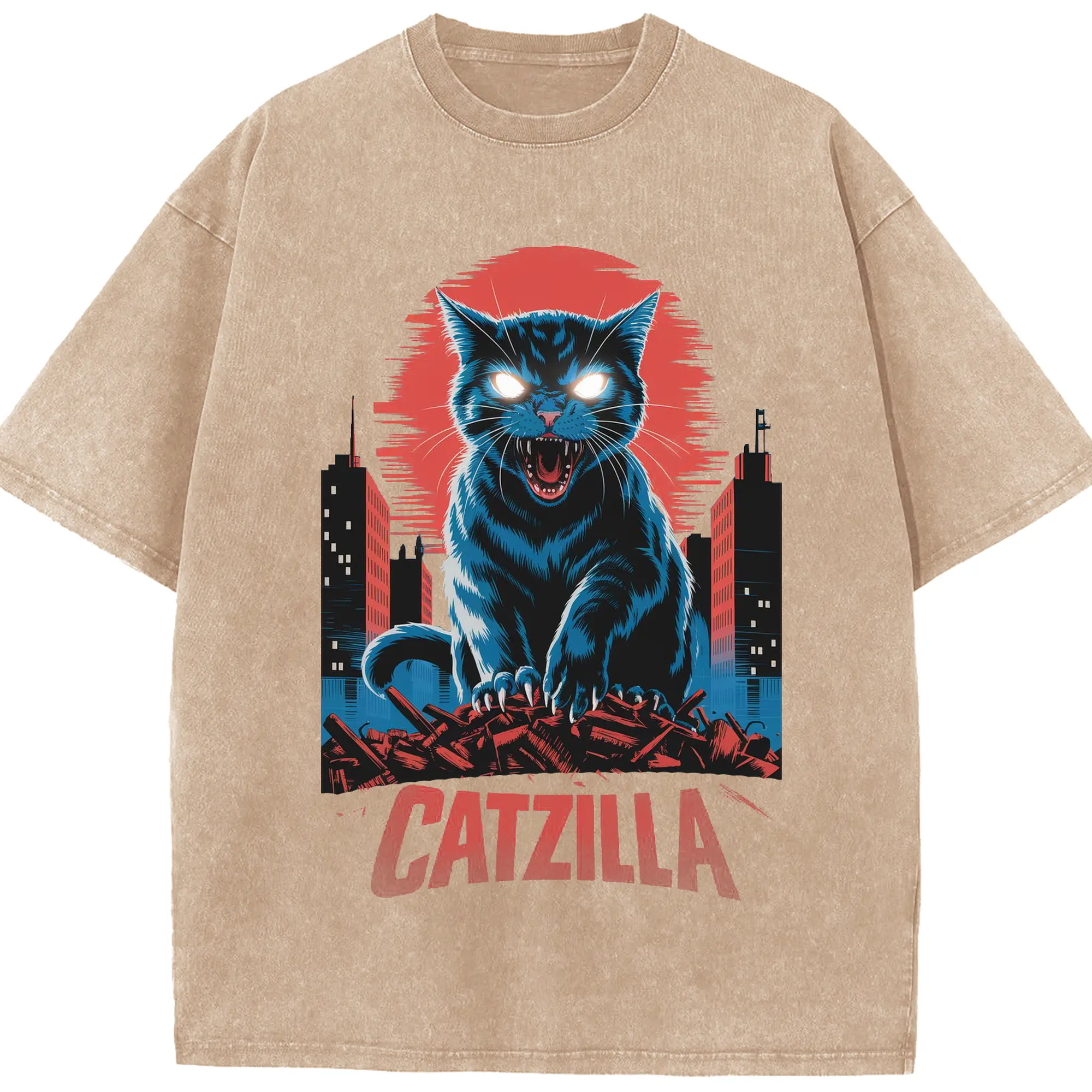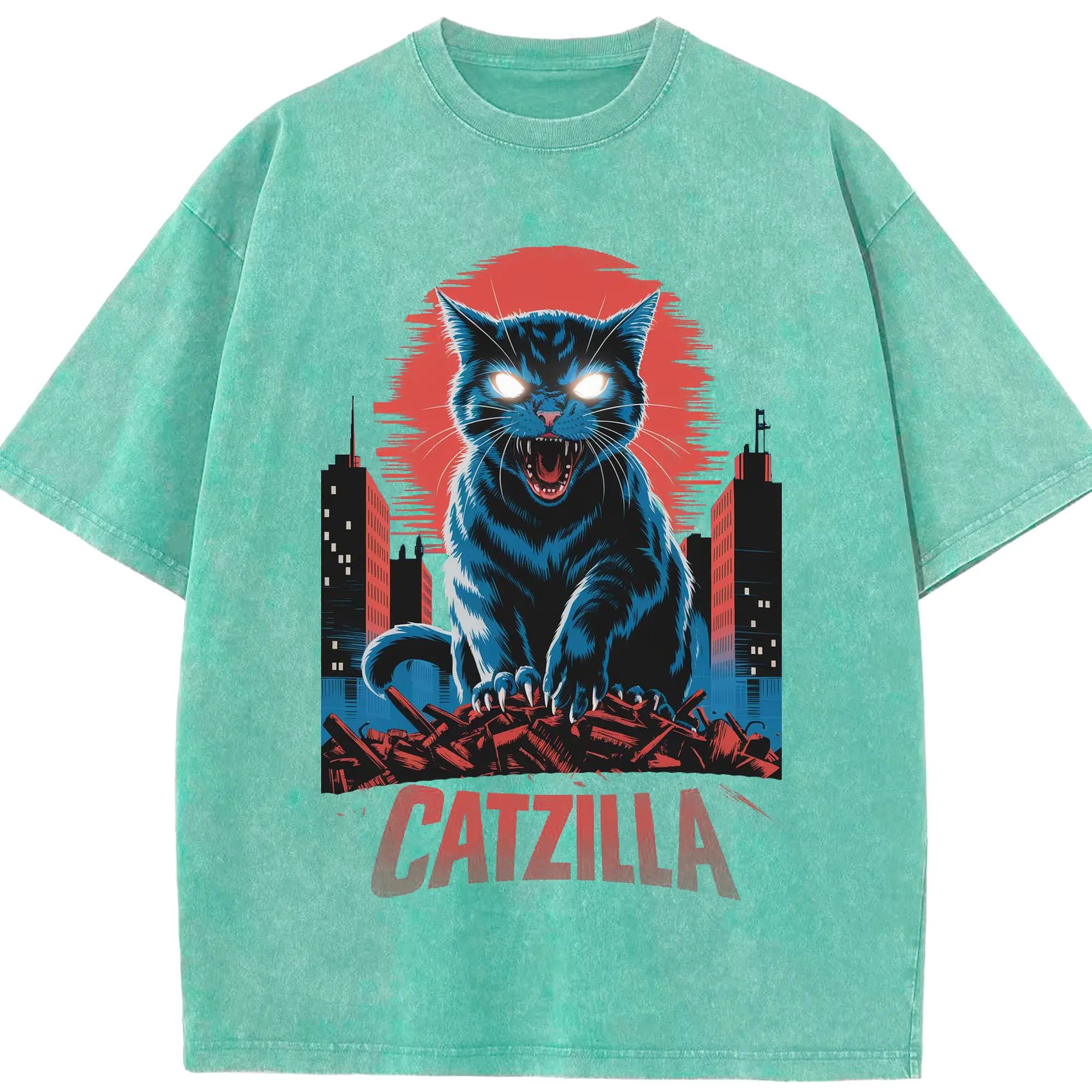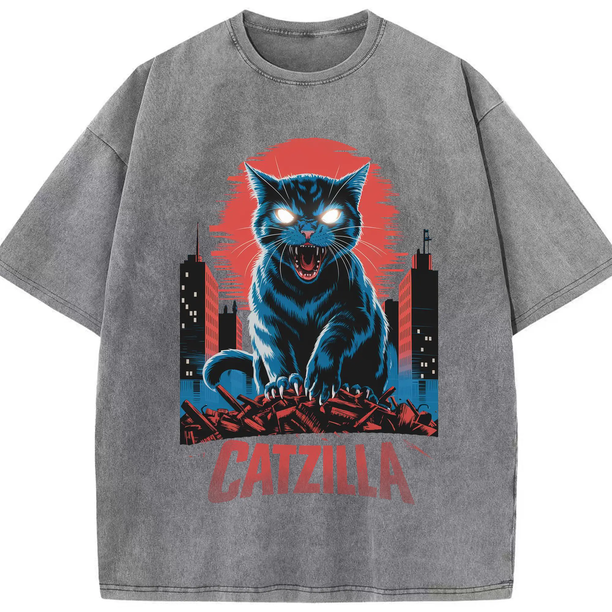 ゴジラ キャットジラ CATZILLA - 綿100% ヴィンテージ風 半袖Tシャツ ・ フロントプリント ・ 柔らか肌触り ・ 通気性 快適 ・ スポーツ カジュアル 外出用