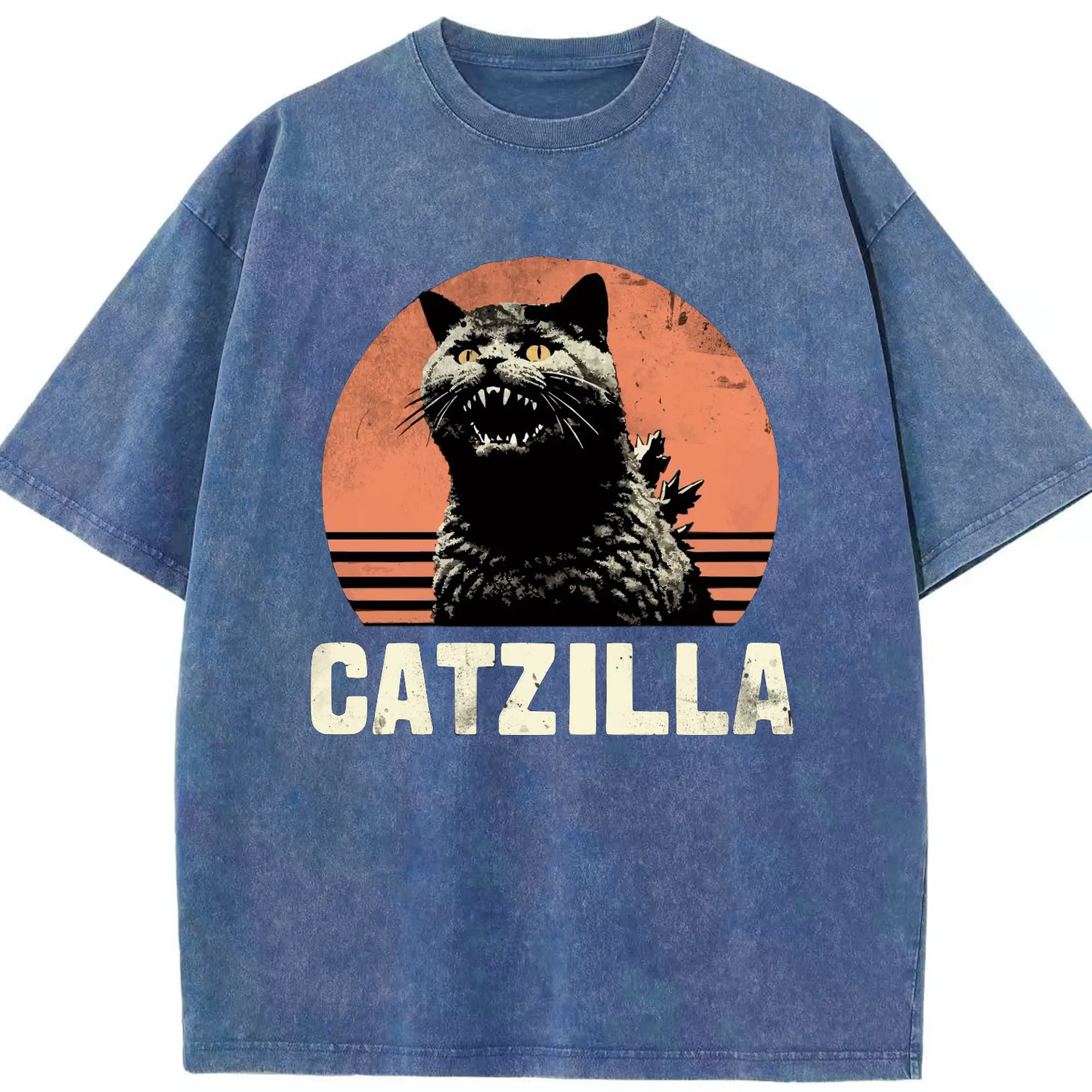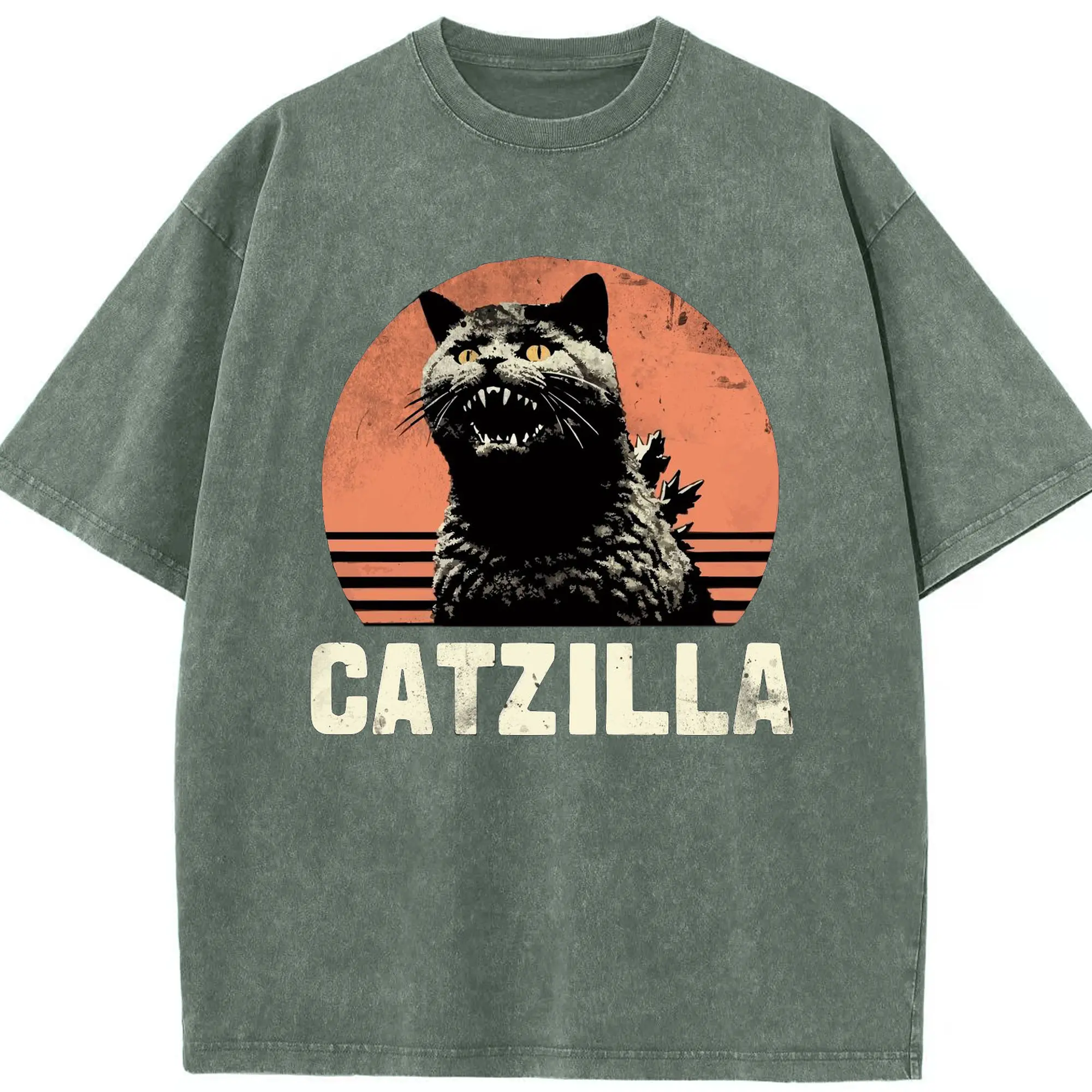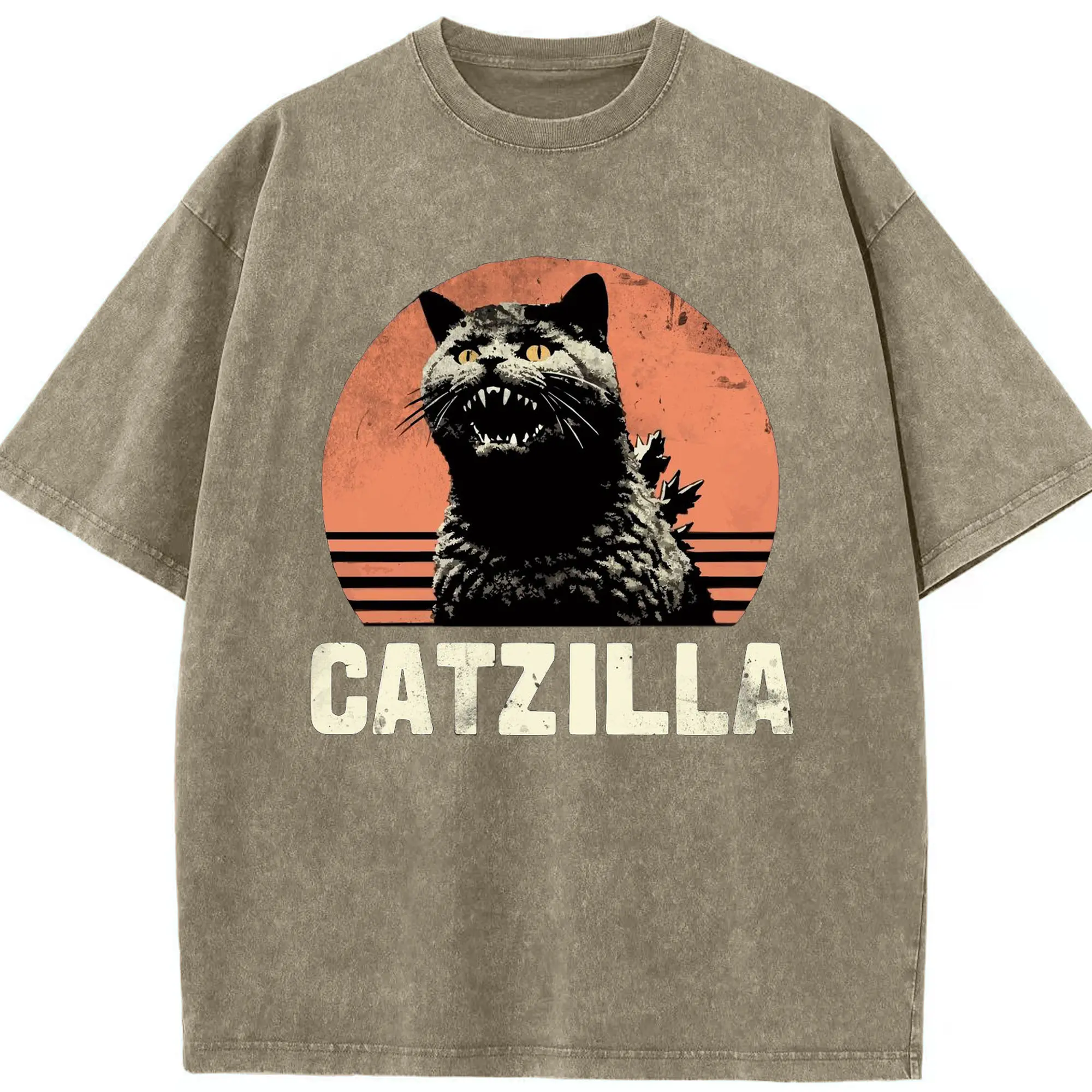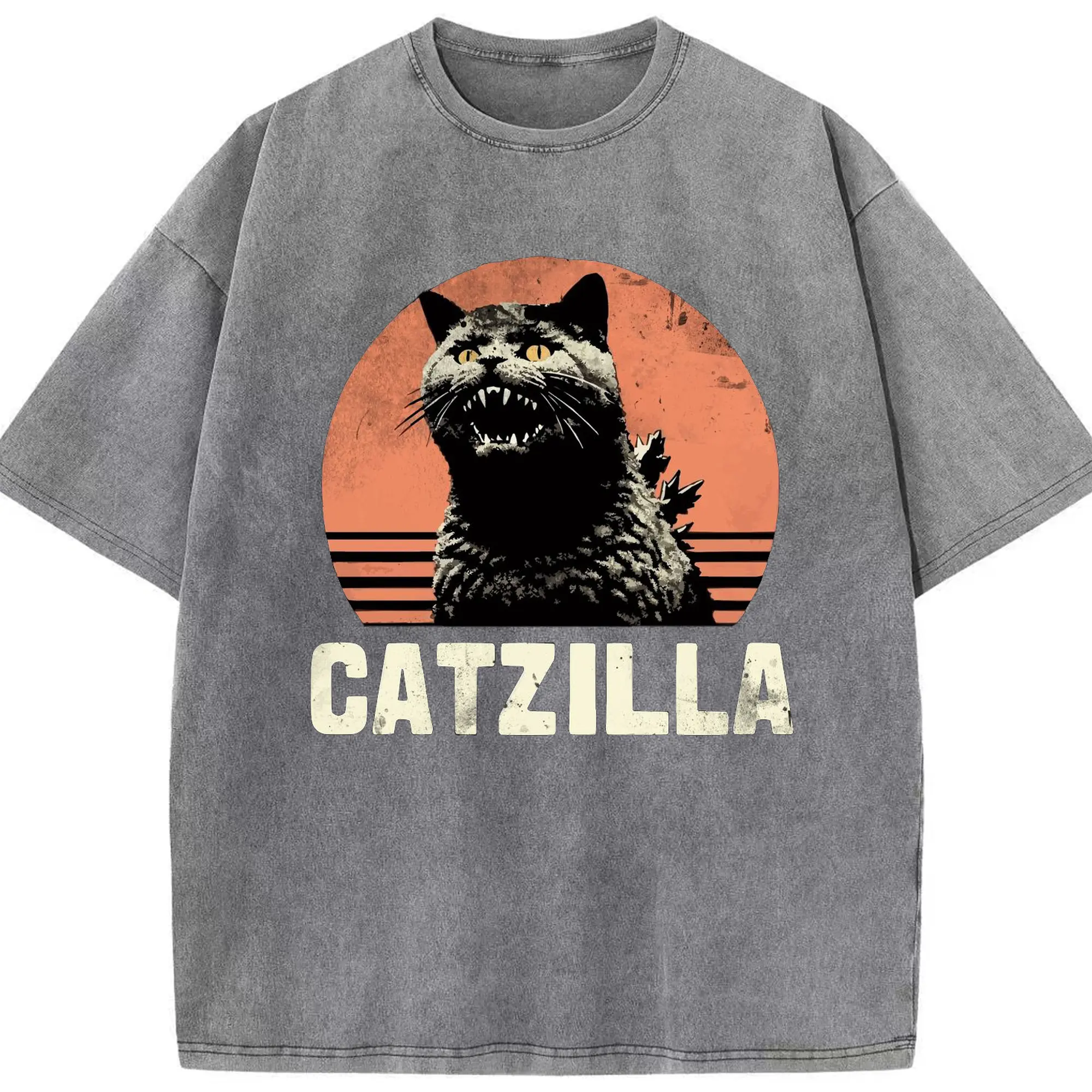ゴジラ キャットジラ CATZILLA - 綿100% ヴィンテージ風 半袖Tシャツ ・ フロントプリント ・ 柔らか肌触り ・ 通気性 快適 ・ スポーツ カジュアル 外出用