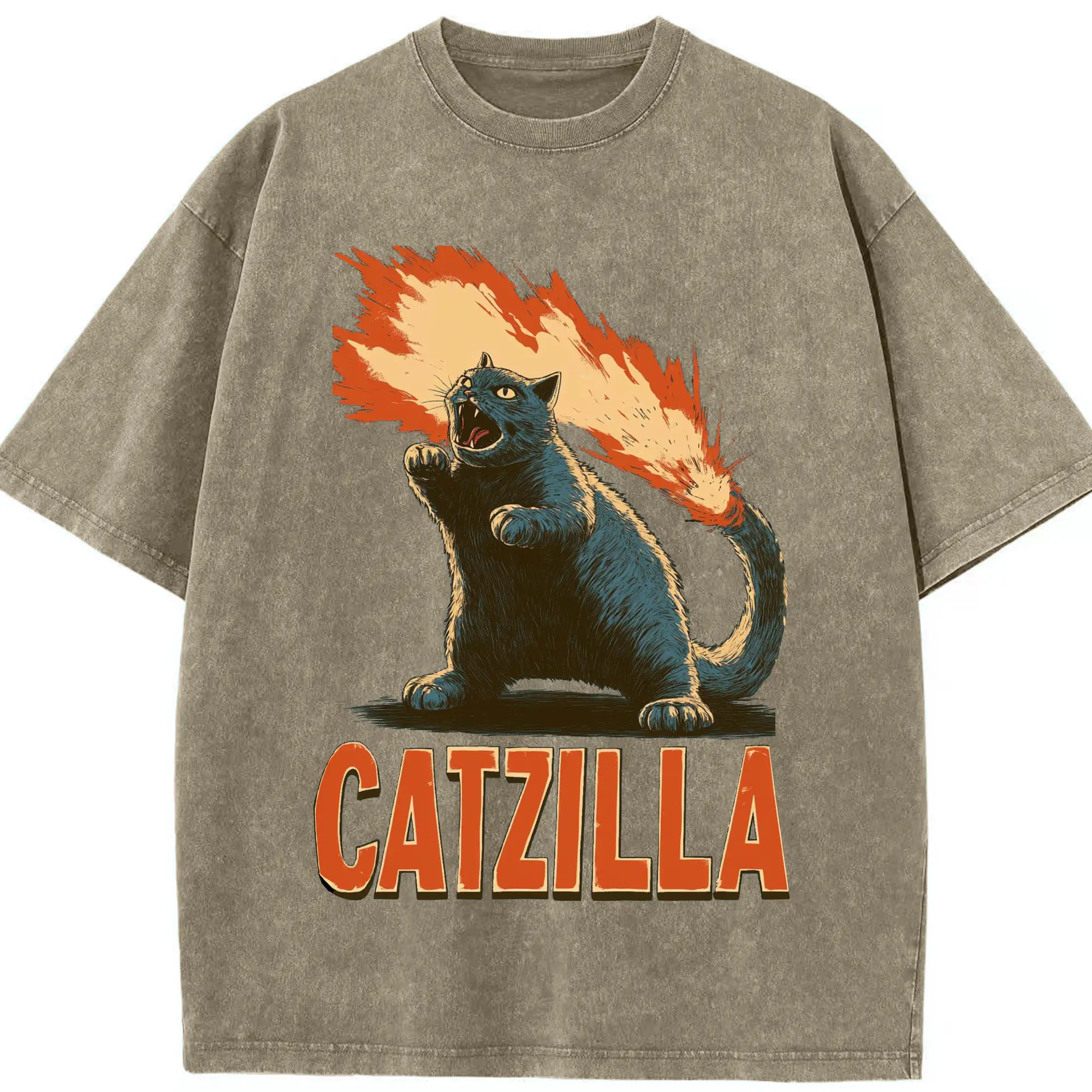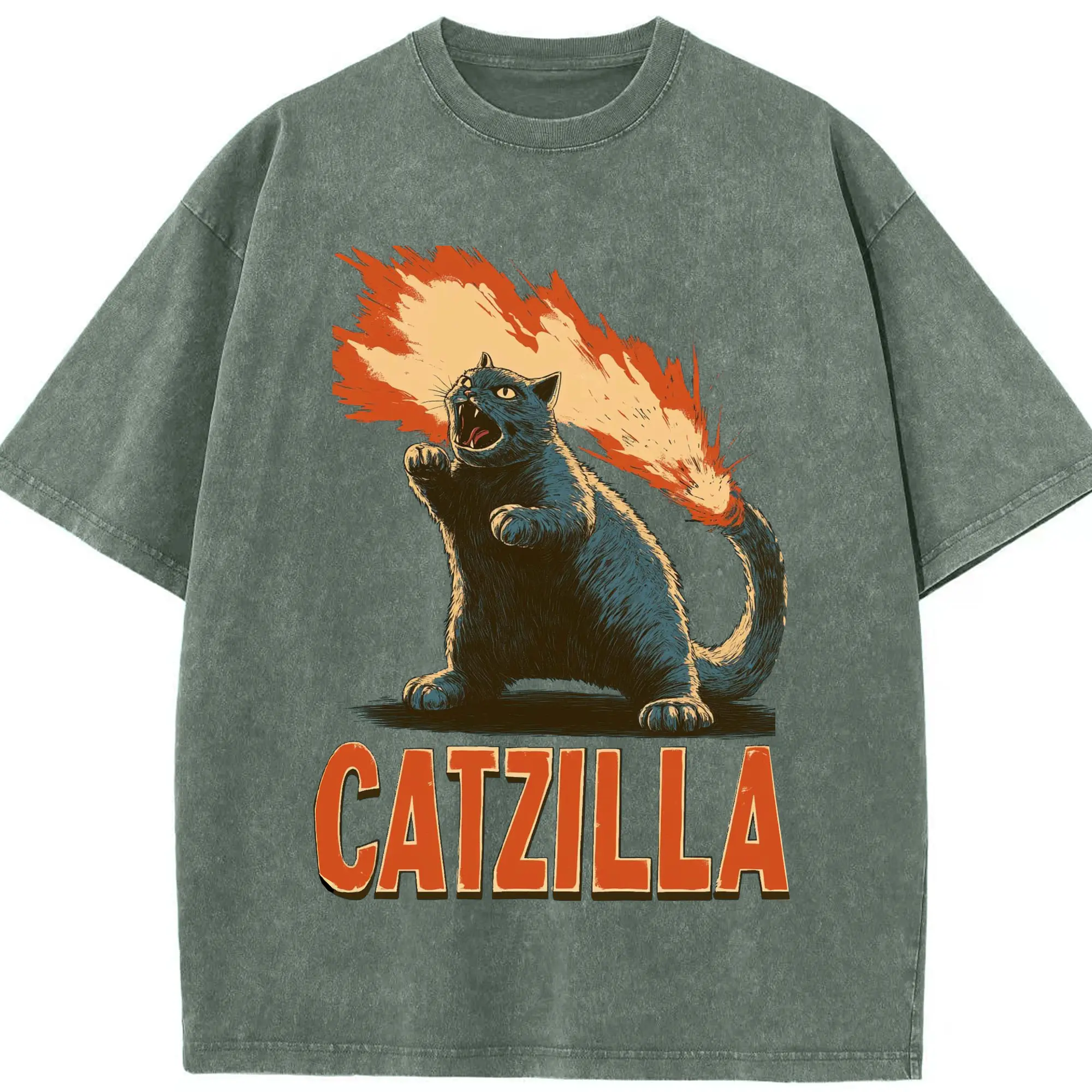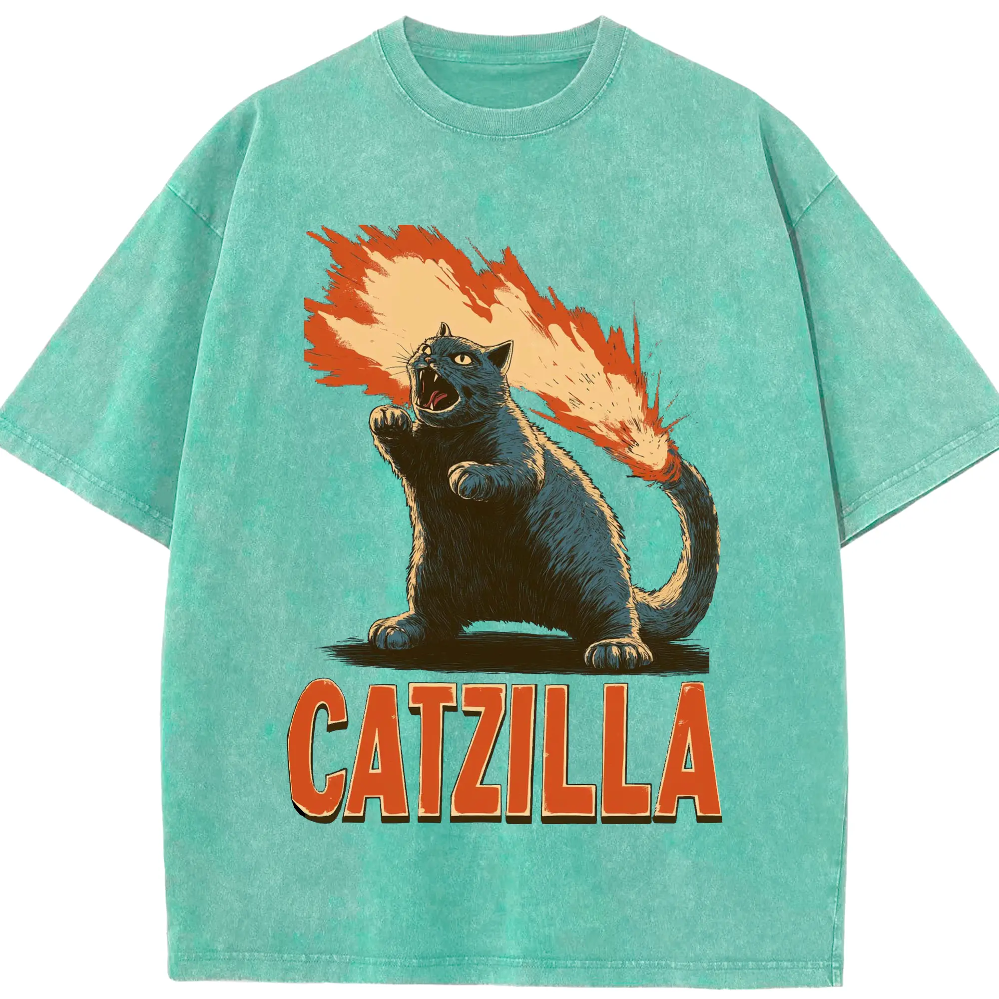 ゴジラ キャットジラ CATZILLA - 綿100% ヴィンテージ風 半袖Tシャツ ・ フロントプリント ・ 柔らか肌触り ・ 通気性 快適 ・ スポーツ カジュアル 外出用
