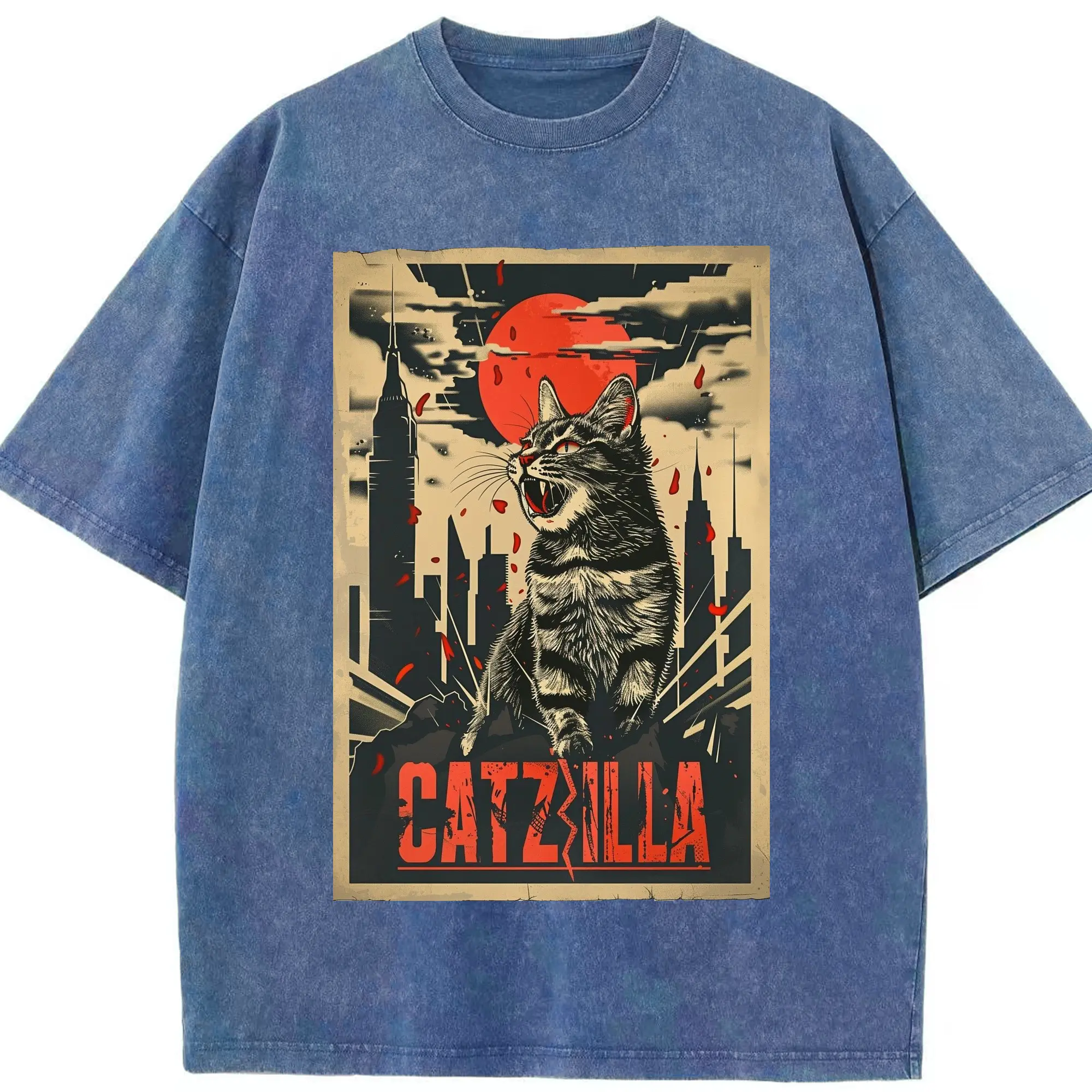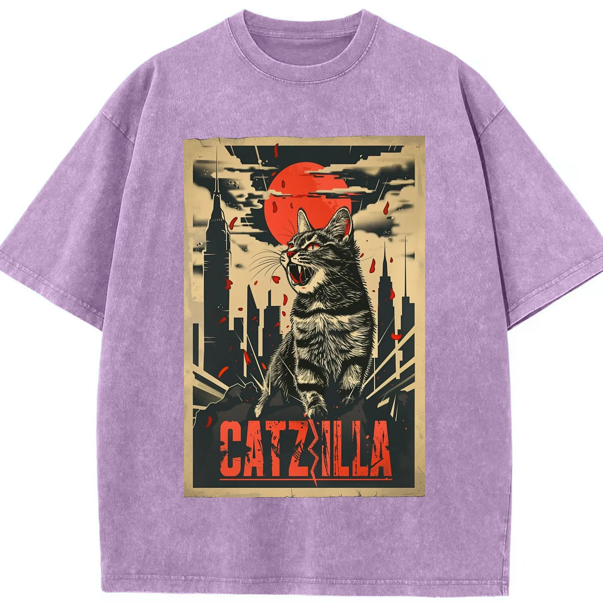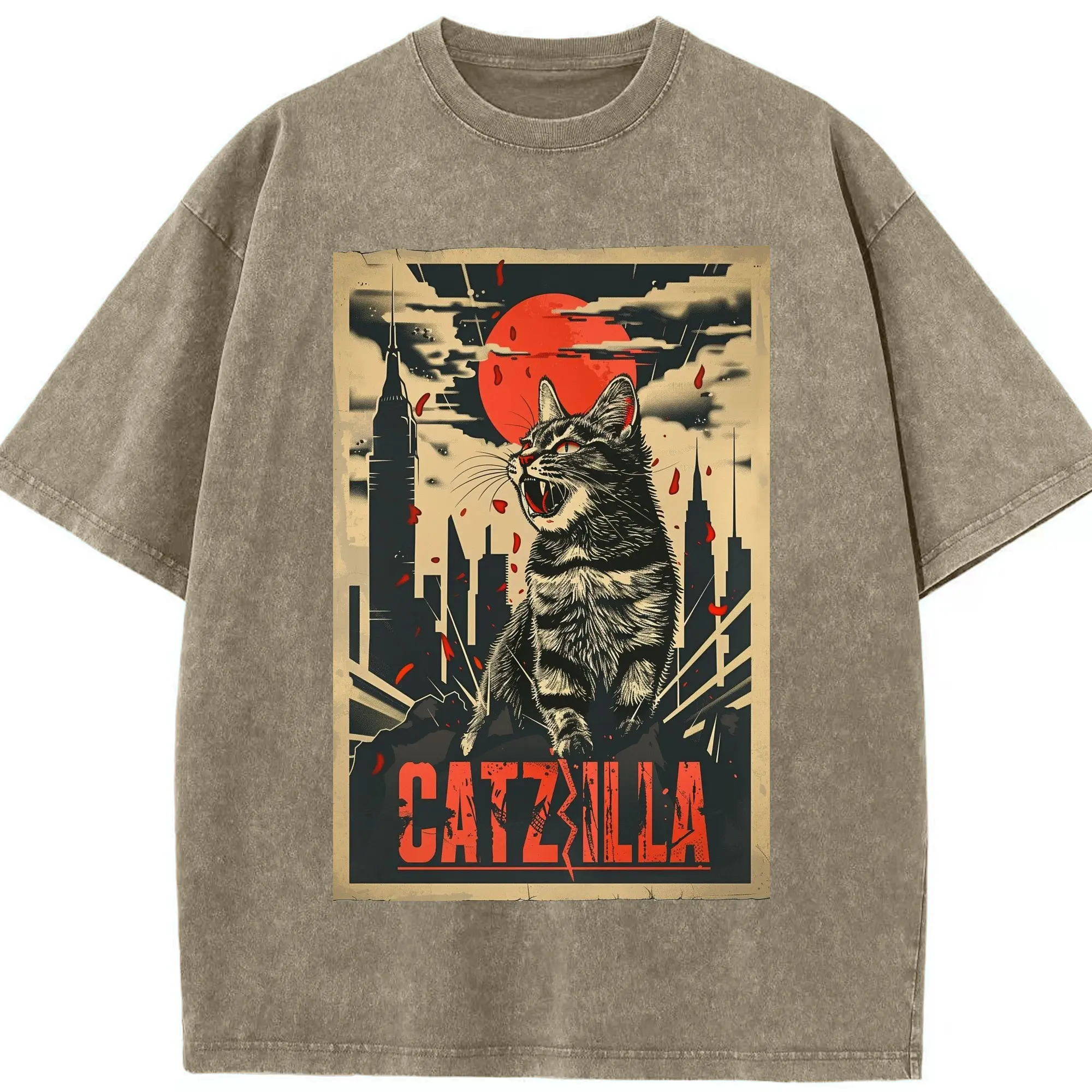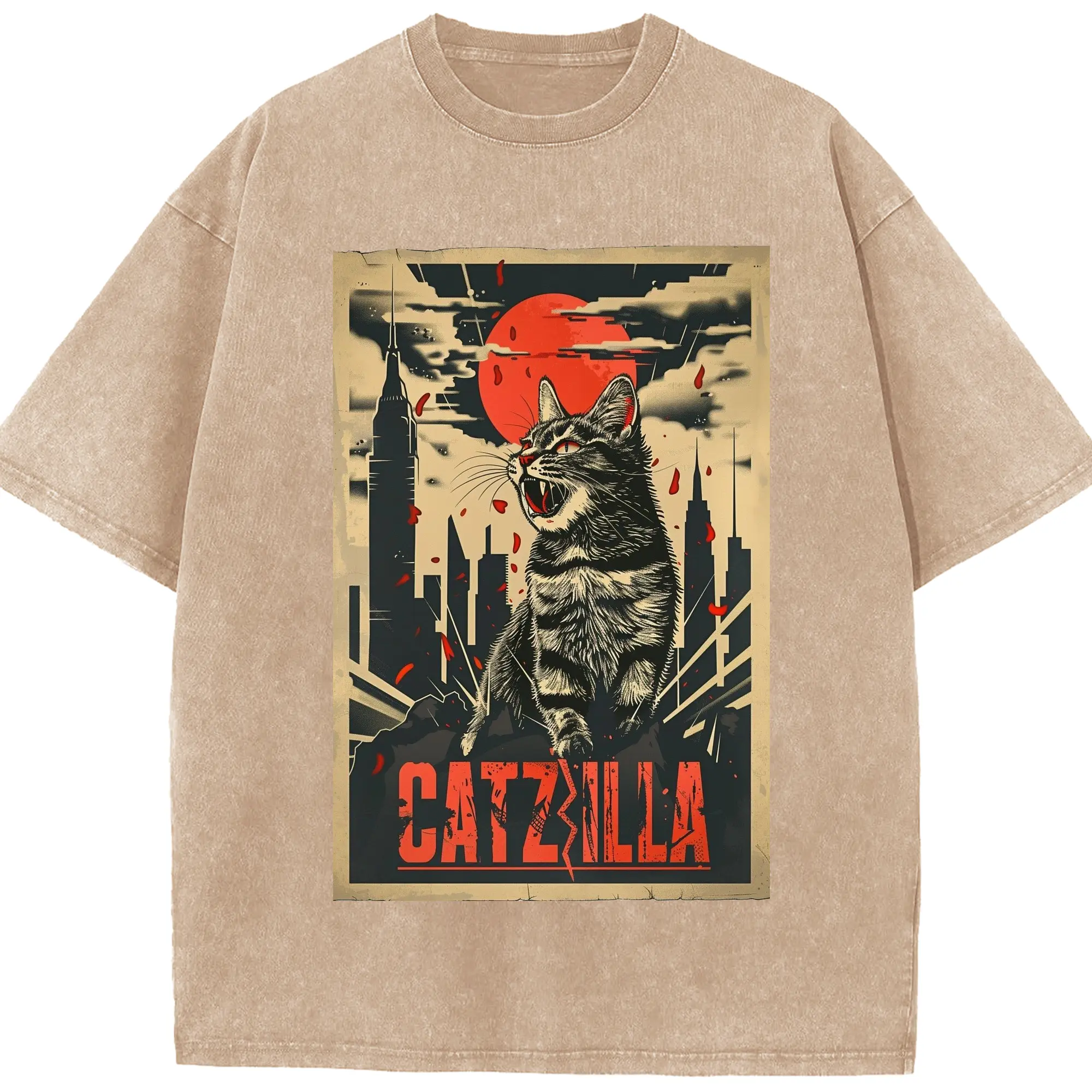 ゴジラ キャットジラ CATZILLA - 綿100% ヴィンテージ風 半袖Tシャツ ・ フロントプリント ・ 柔らか肌触り ・ 通気性 快適 ・ スポーツ カジュアル 外出用