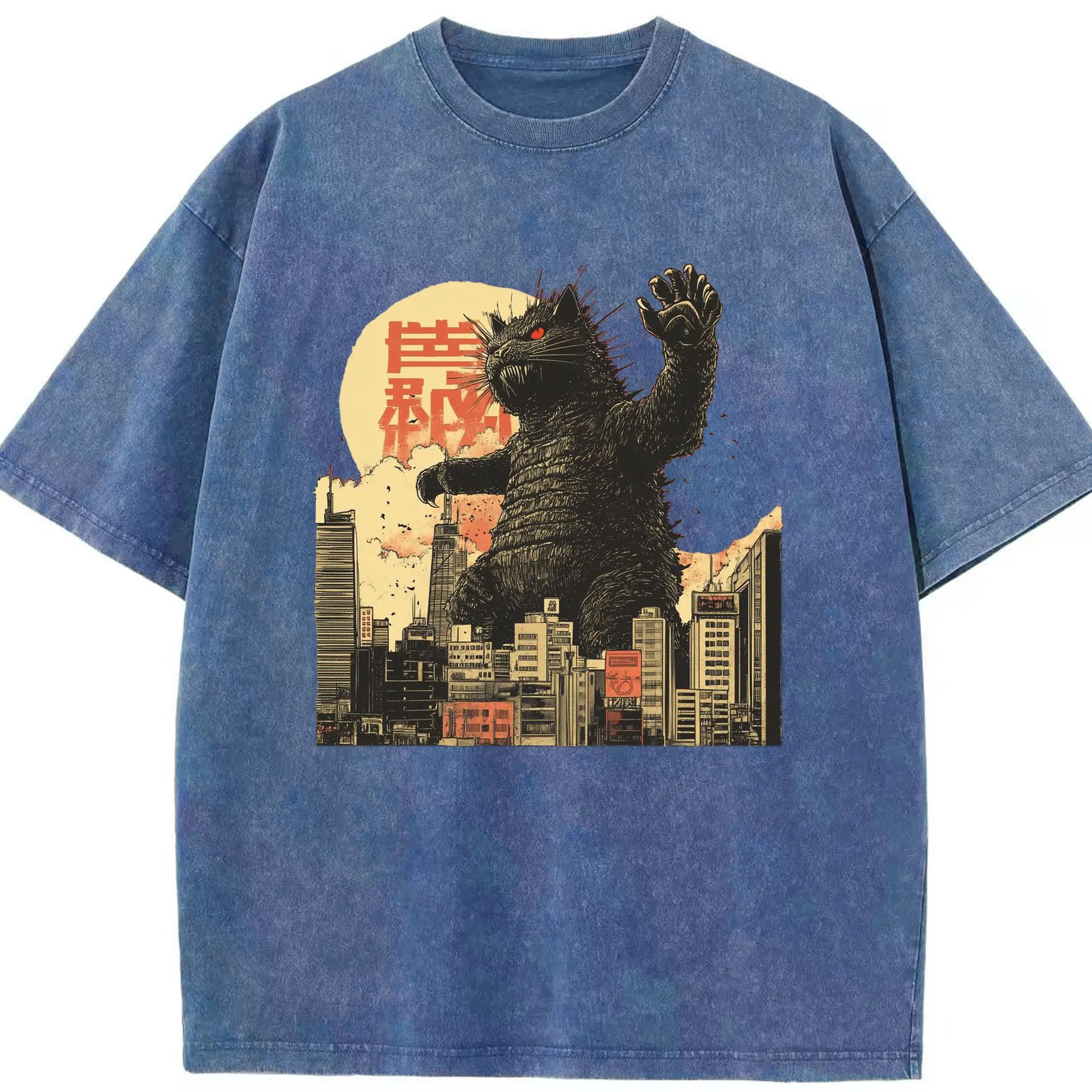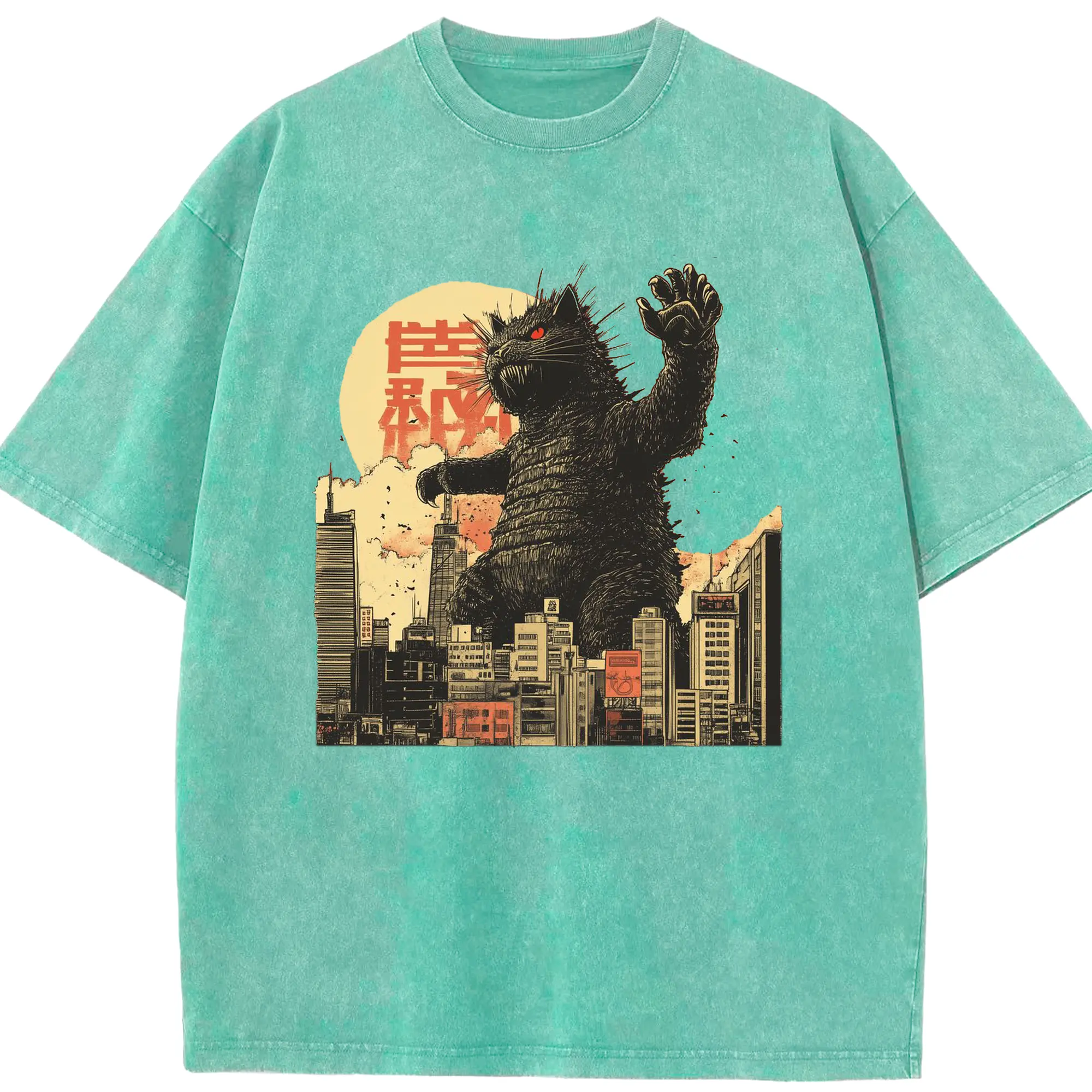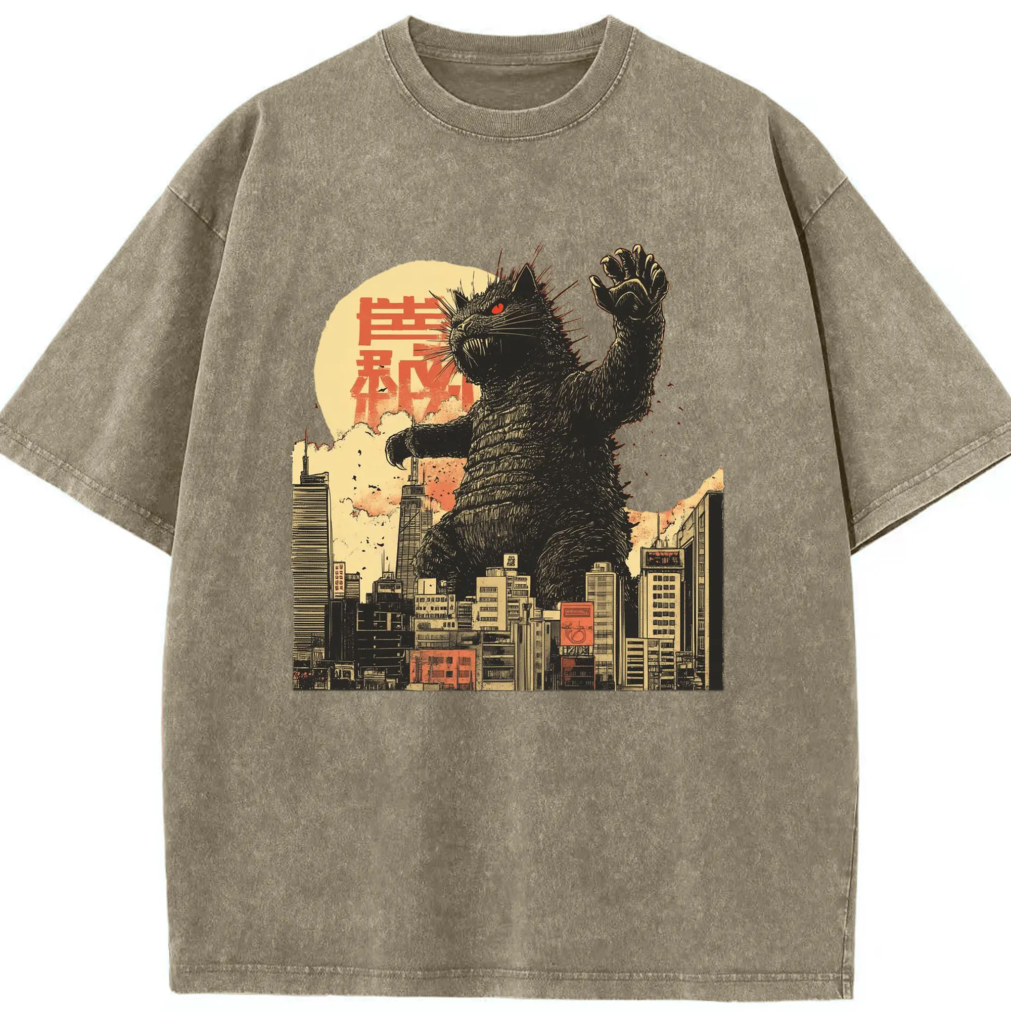 ゴジラ キャットジラ CATZILLA - 綿100% ヴィンテージ風 半袖Tシャツ ・ フロントプリント ・ 柔らか肌触り ・ 通気性 快適 ・ スポーツ カジュアル 外出用