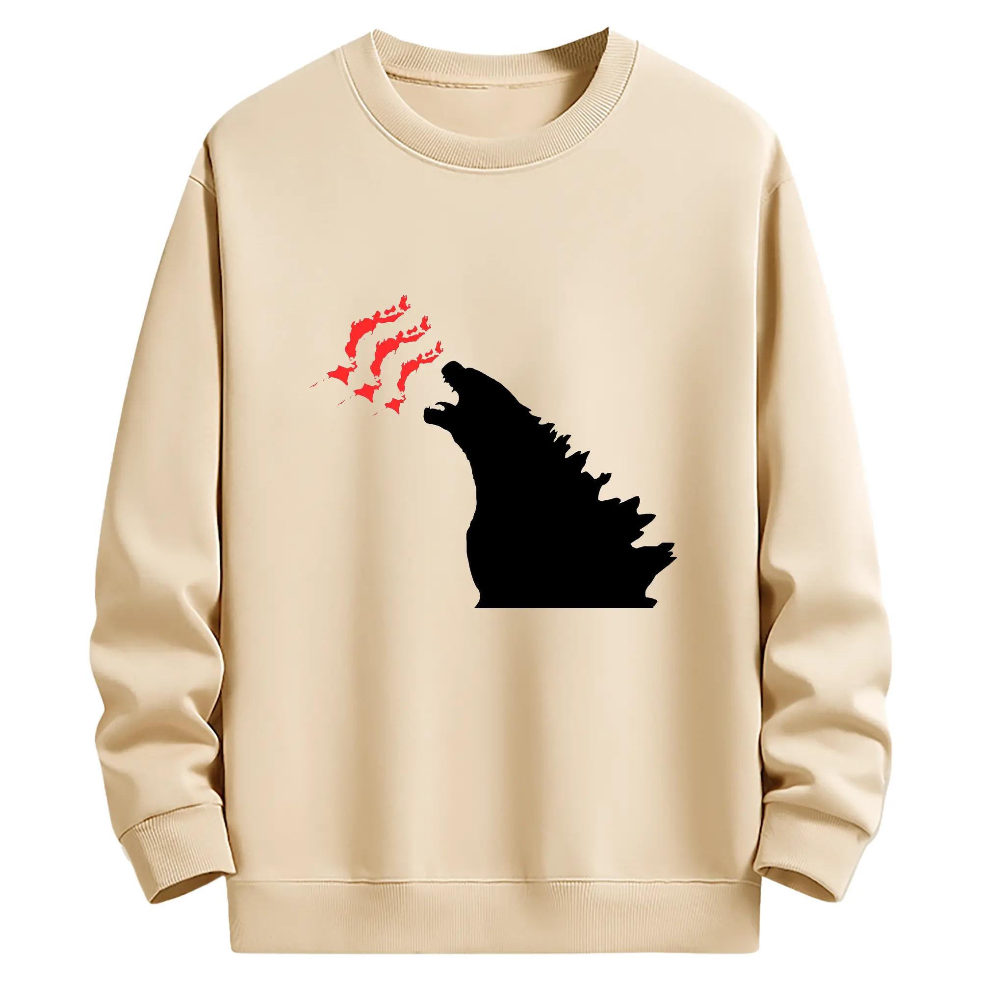 ゴジラ - 高品質 クルーネック スウェット ・ コットン59% ポリエステル41% ・ ユニセックス 長袖 トレーナー ・ カジュアル デイリー スポーツ 散歩用