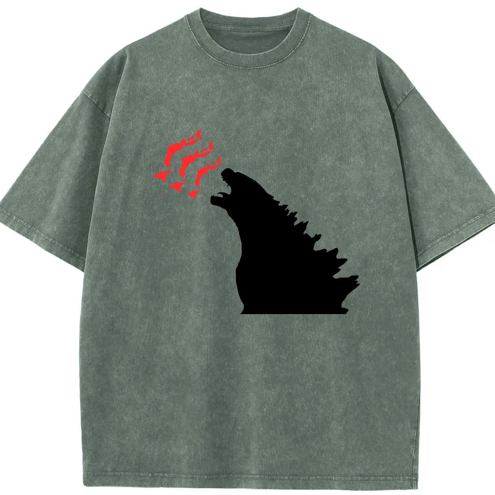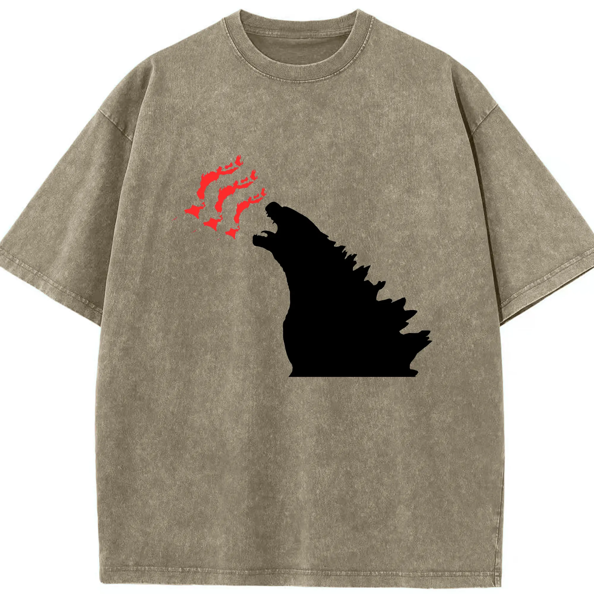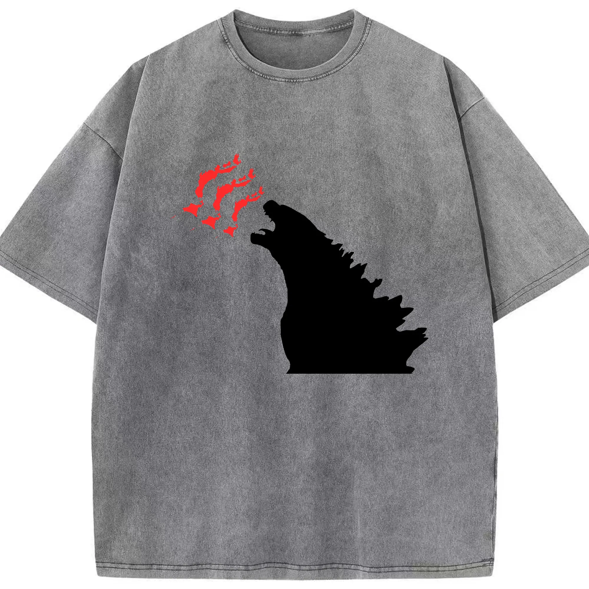 ゴジラ デストロイア - 綿100% ヴィンテージ風 半袖Tシャツ ・ フロントプリント ・ 柔らか肌触り ・ 通気性 快適 ・ スポーツ カジュアル 外出用