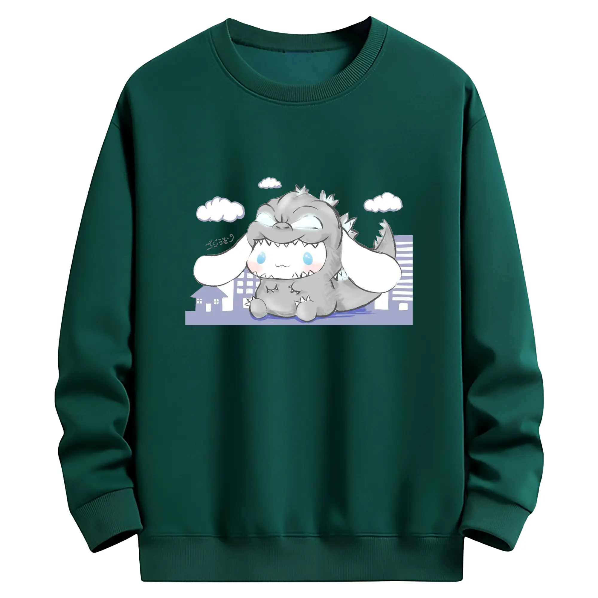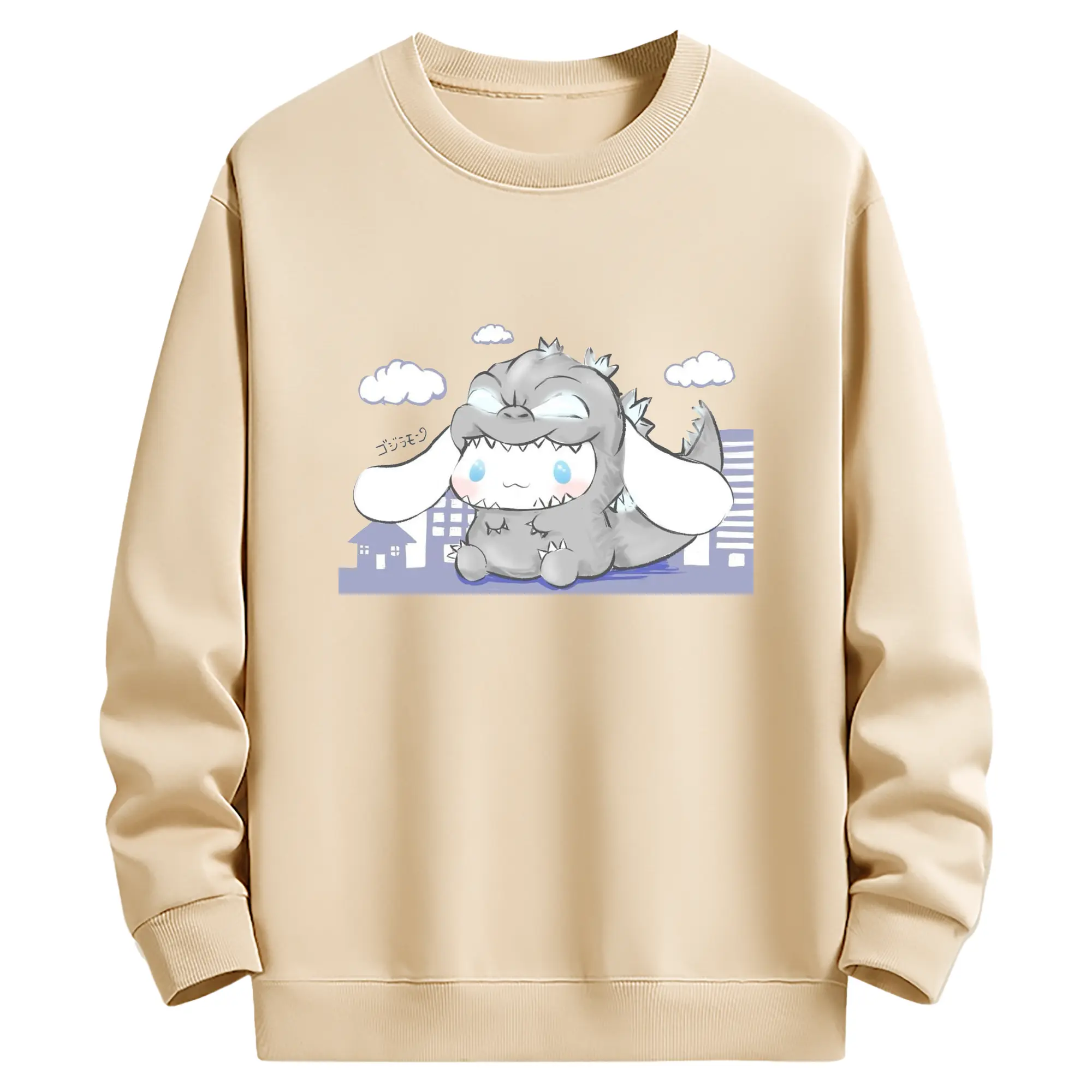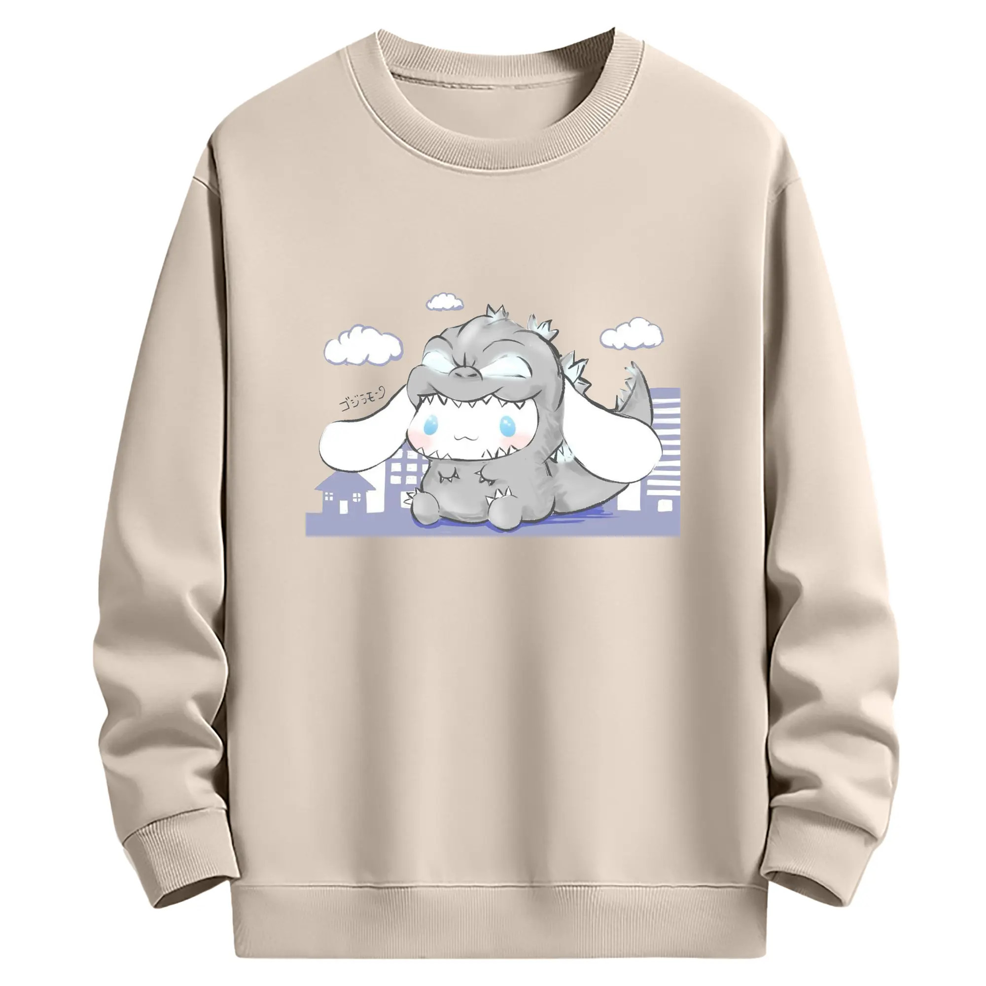 ゴジラ コラボ シナモロール×ゴジラ - 高品質 クルーネック スウェット ・ コットン59% ポリエステル41% ・ ユニセックス 長袖 トレーナー ・ カジュアル デイリー スポーツ 散歩用