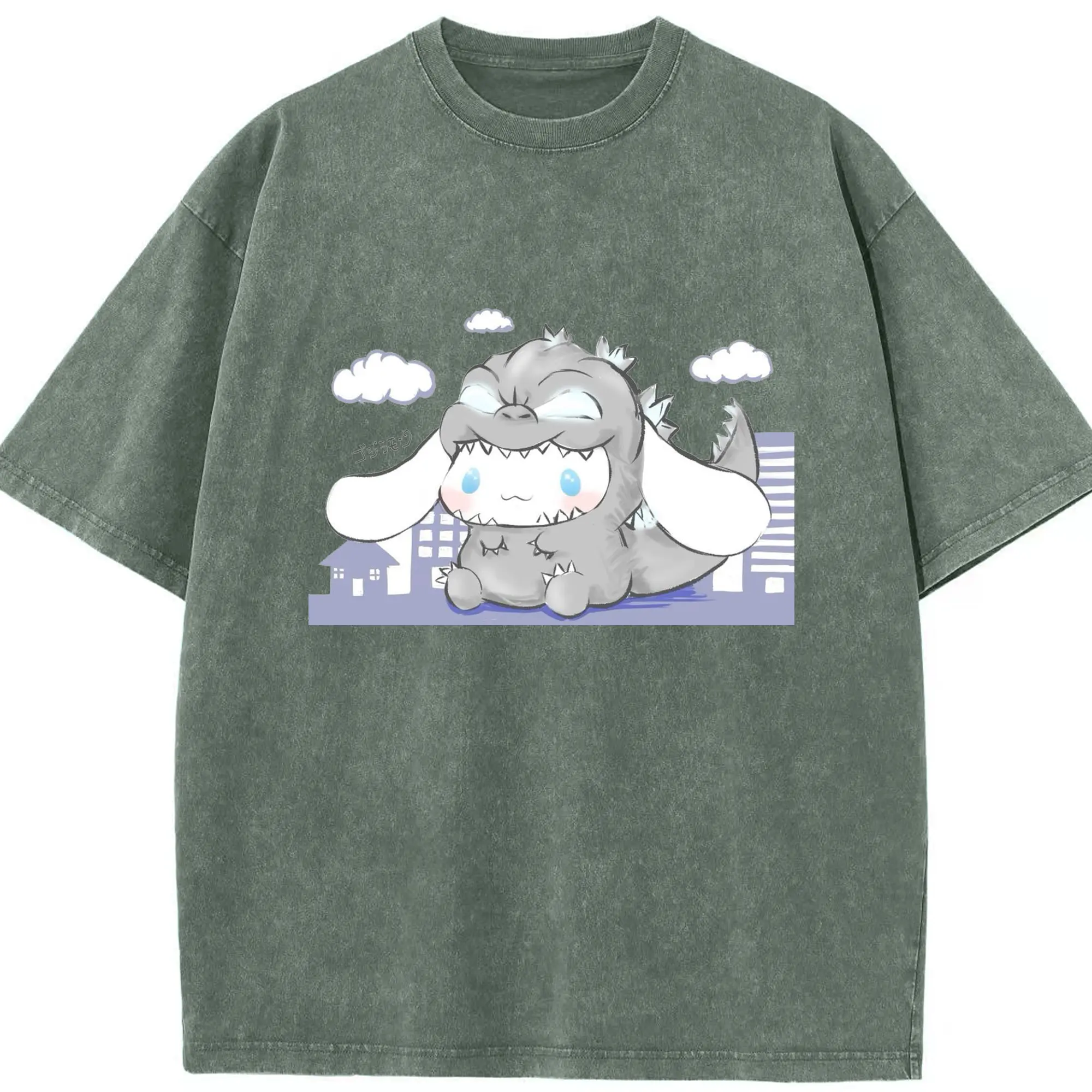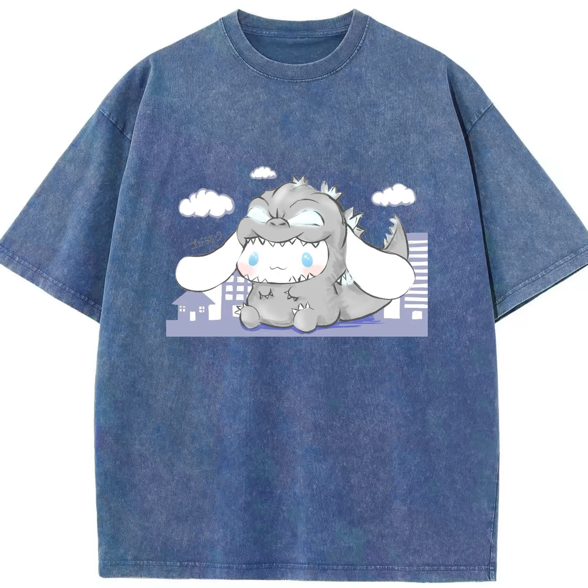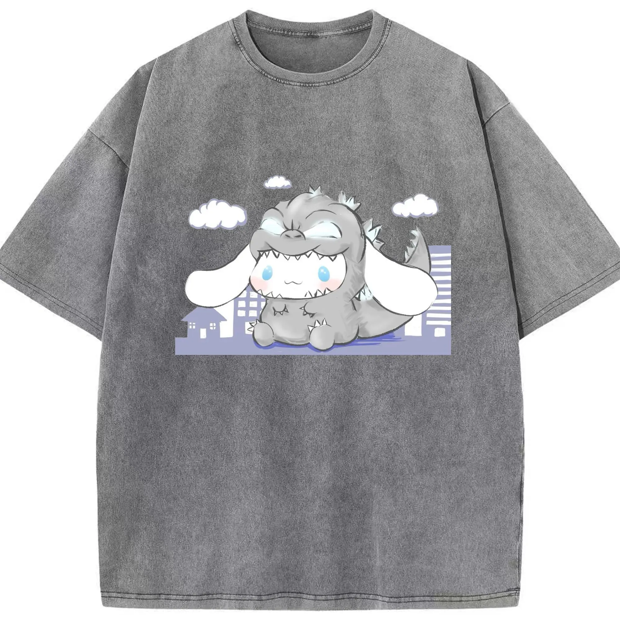 ゴジラ コラボ シナモロール×ゴジラ - 綿100% ヴィンテージ風 半袖Tシャツ ・ フロントプリント ・ 柔らか肌触り ・ 通気性 快適 ・ スポーツ カジュアル 外出用